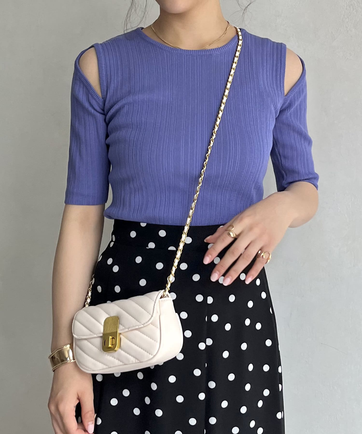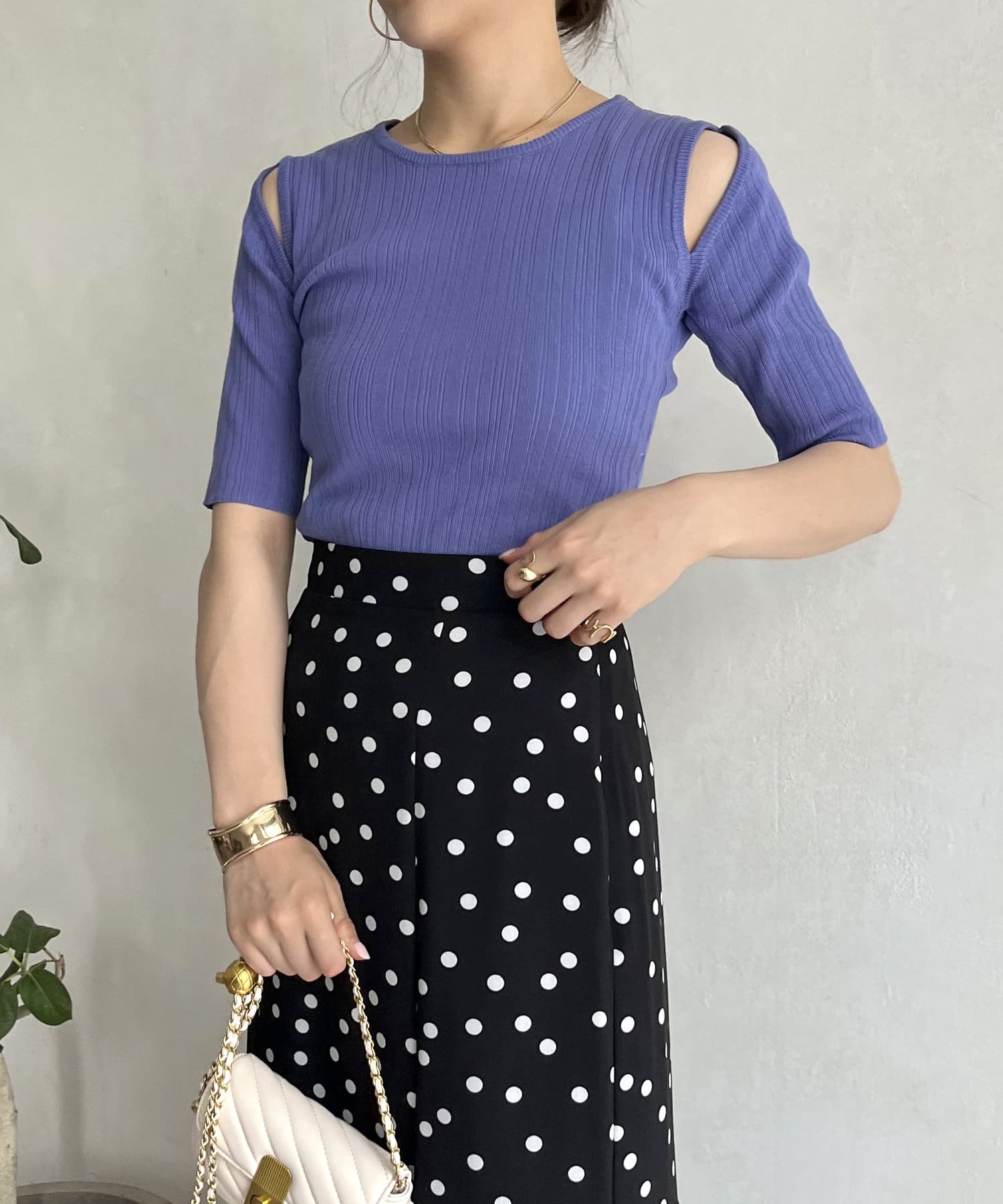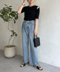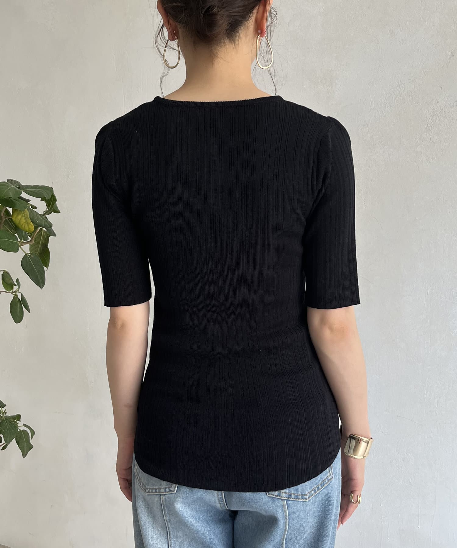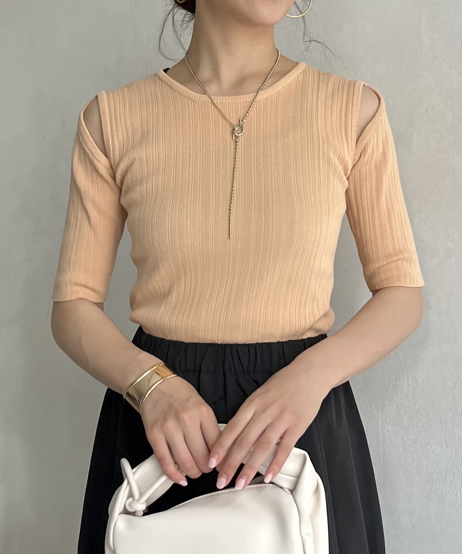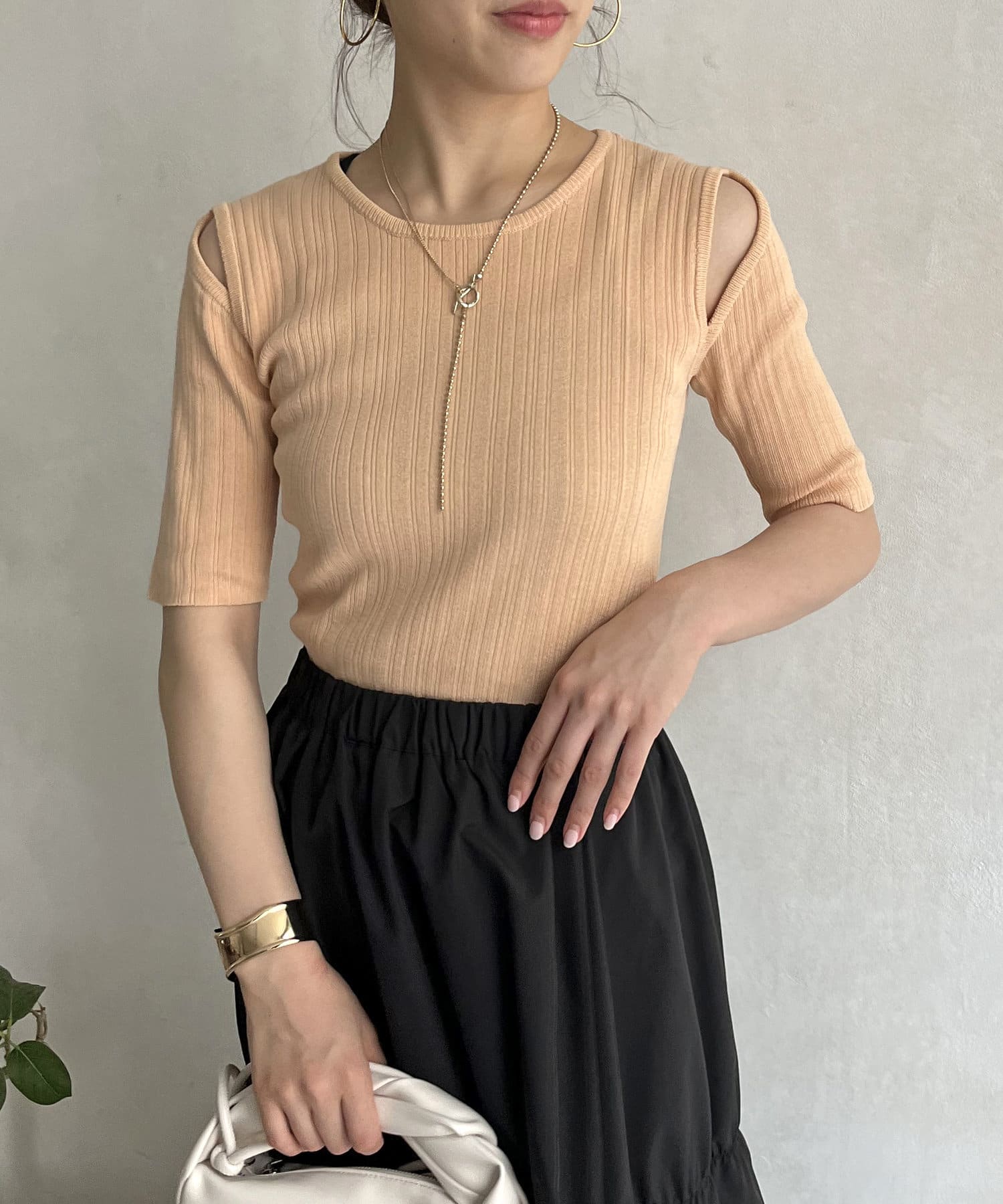 オープンショルダーハーフスリーブニット