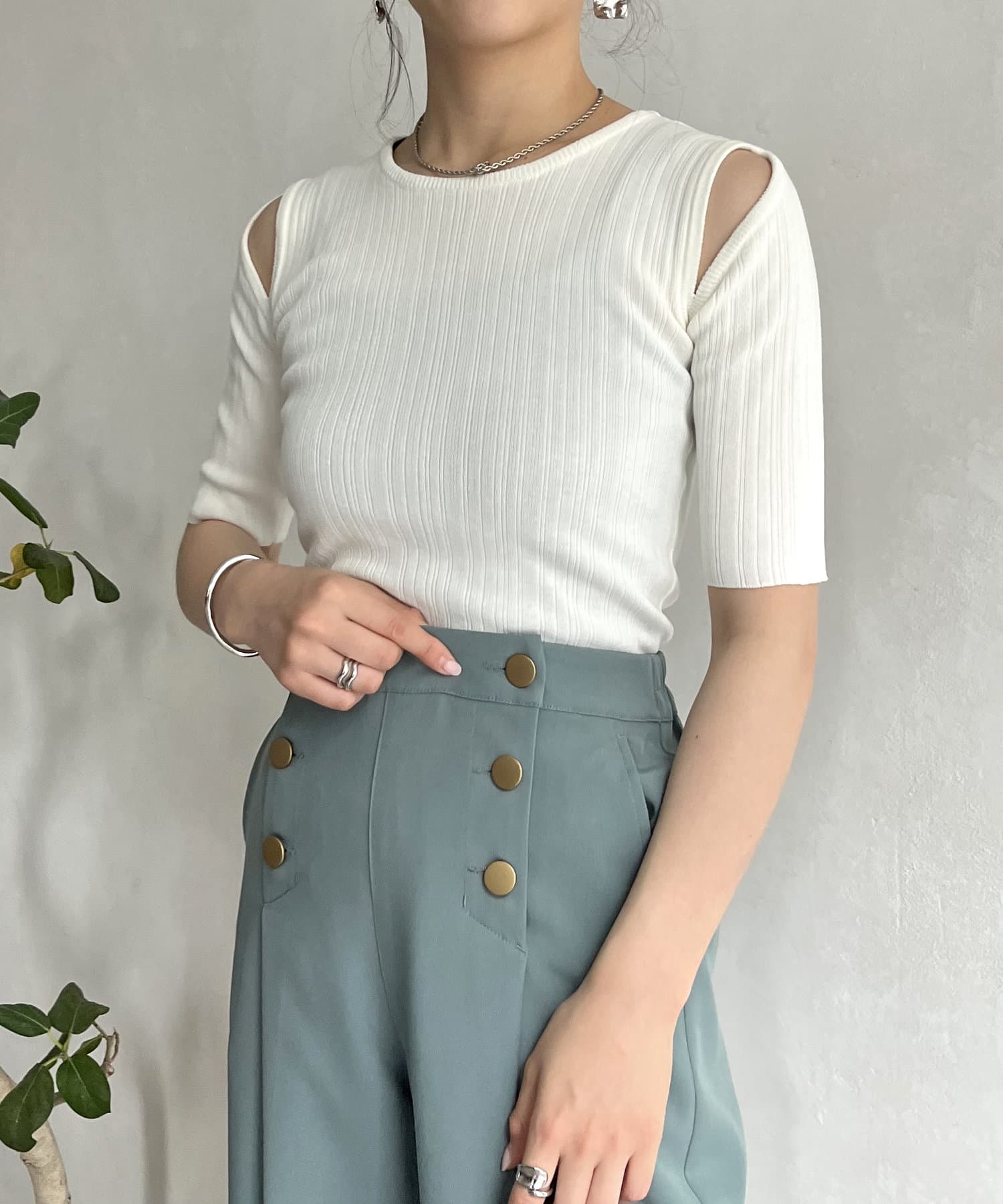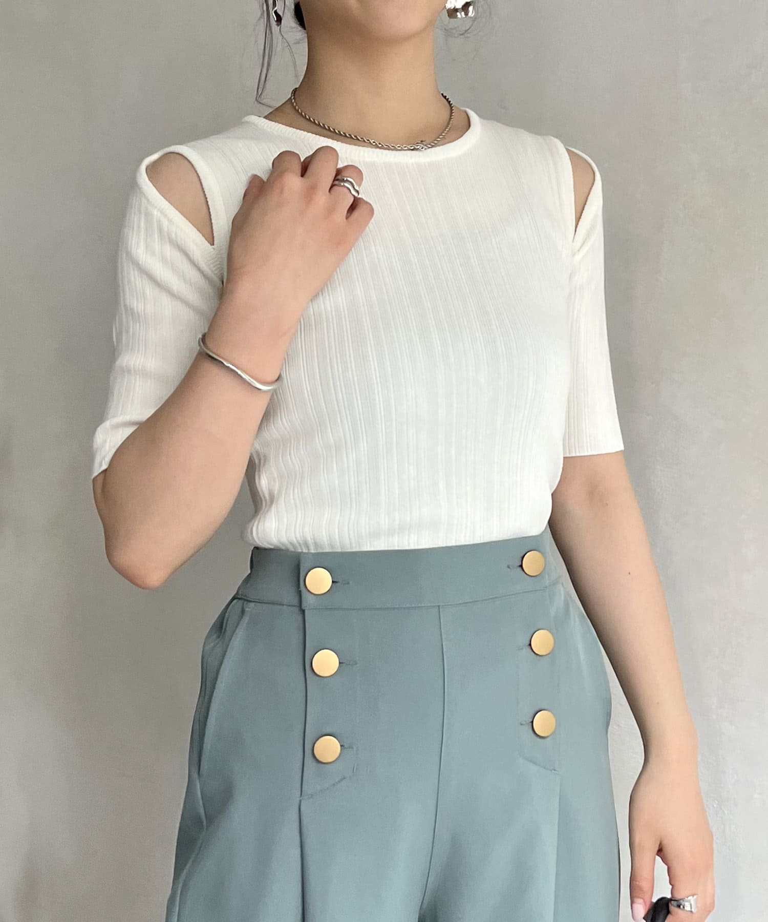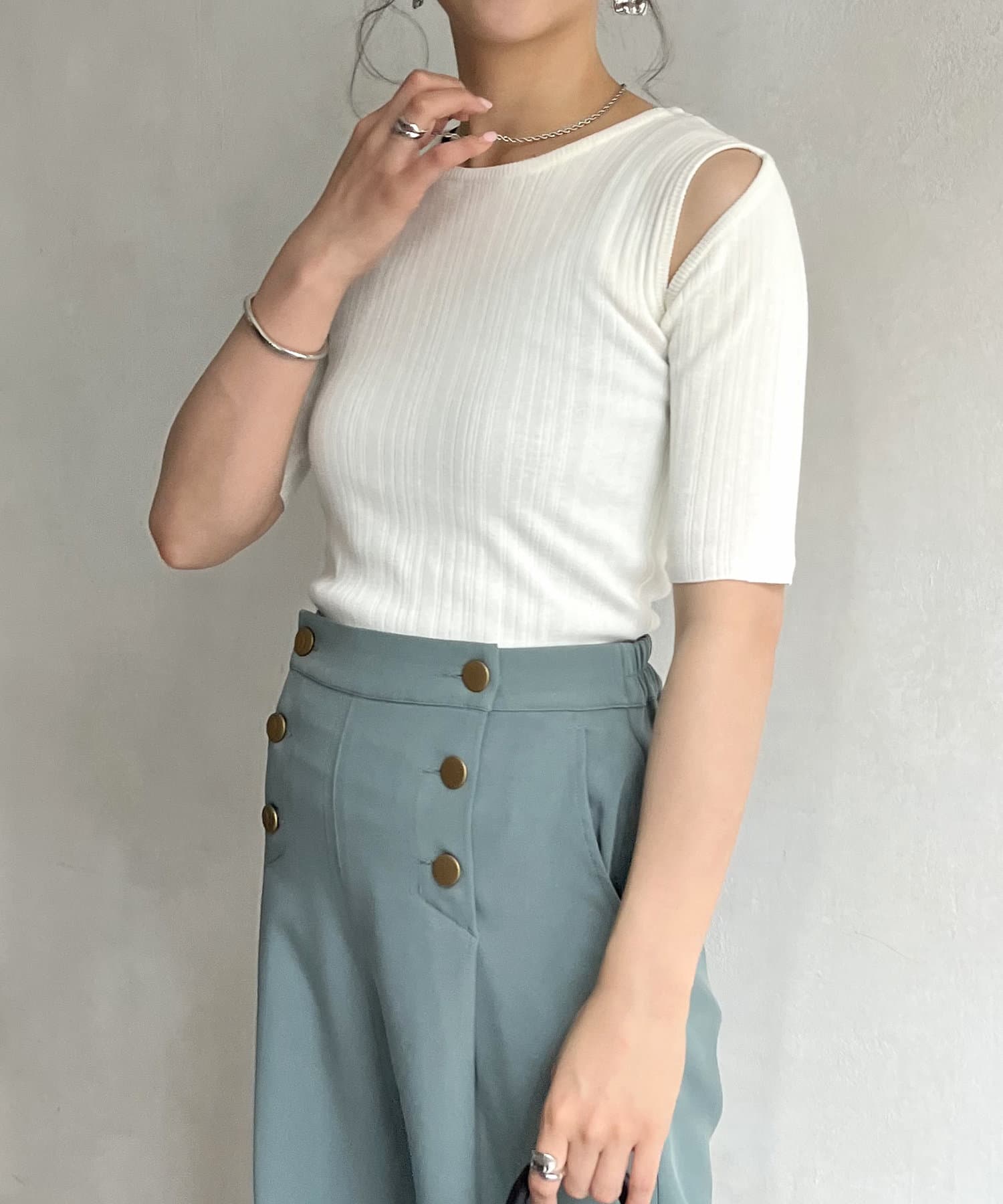 トレンド満載のカットデザイントップス