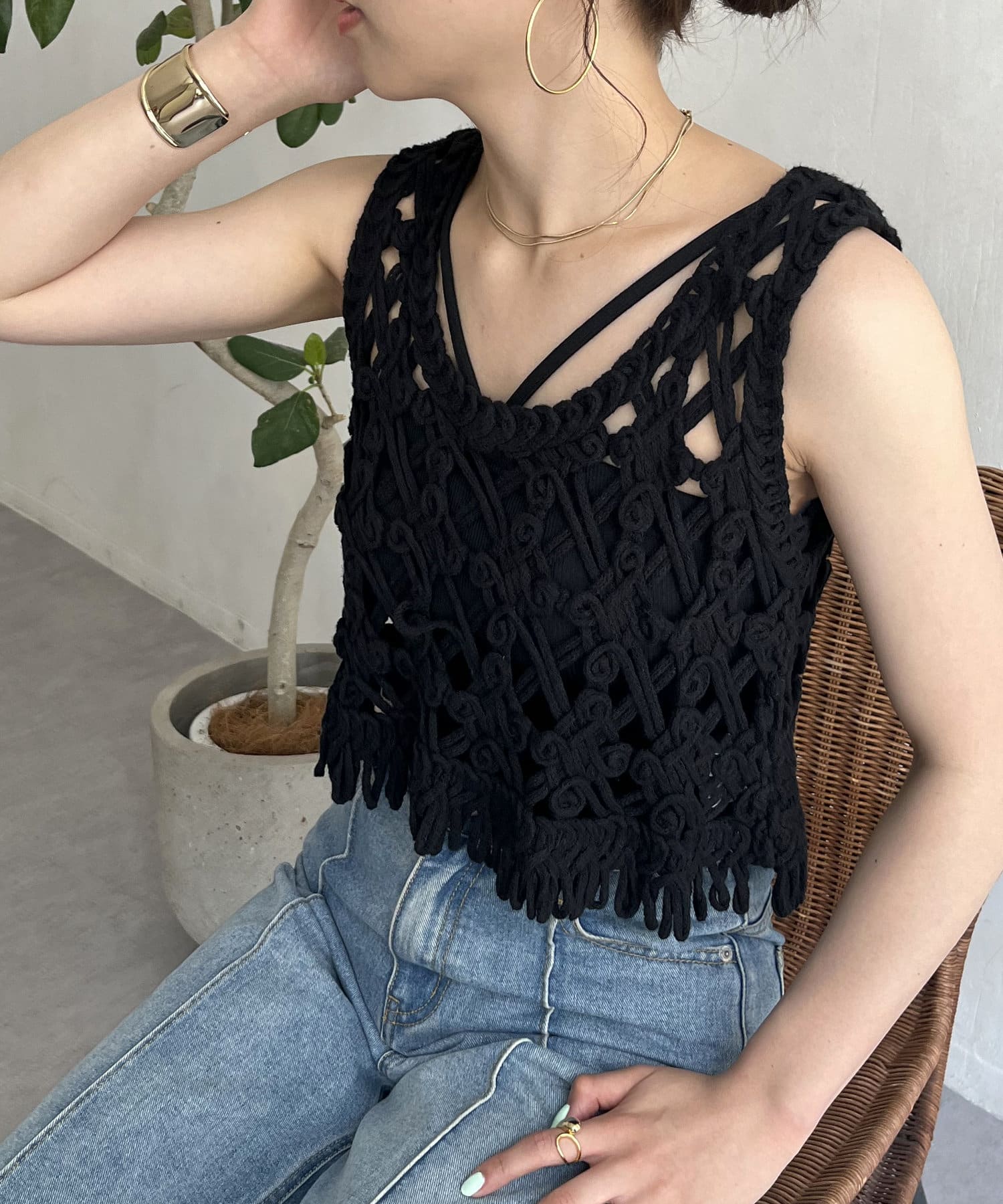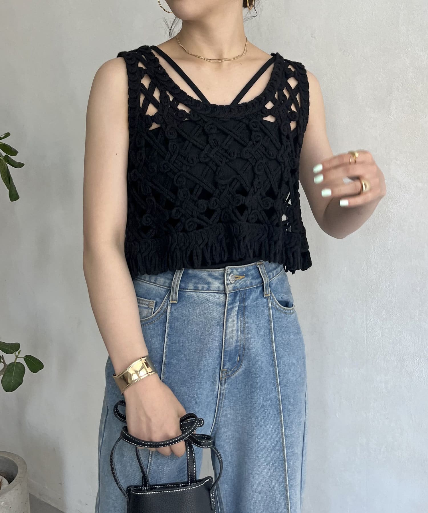 ●一着でこなれ感を演出してくれるかぎ針編みベスト