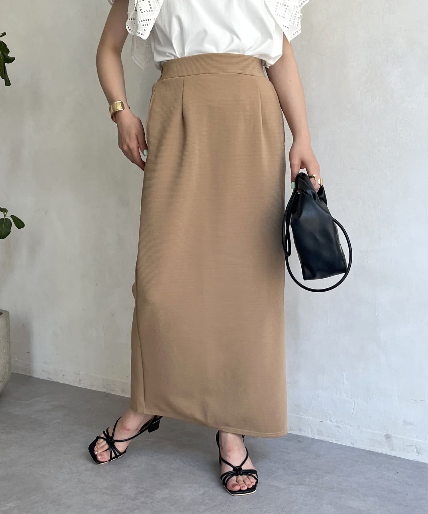 【ウエストゴム仕様】バックスリットリップルポンチナロースカート