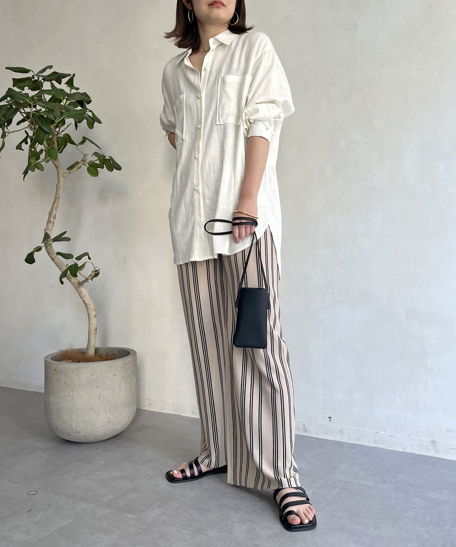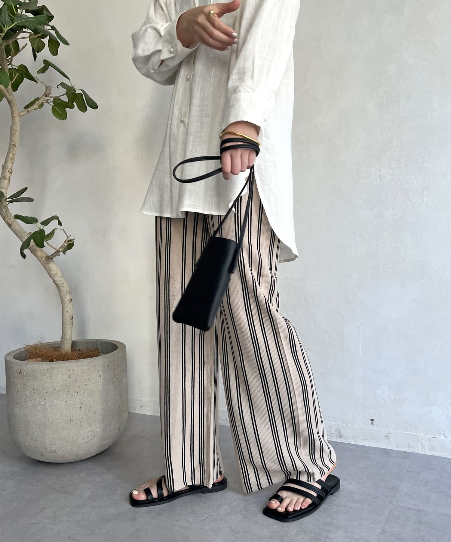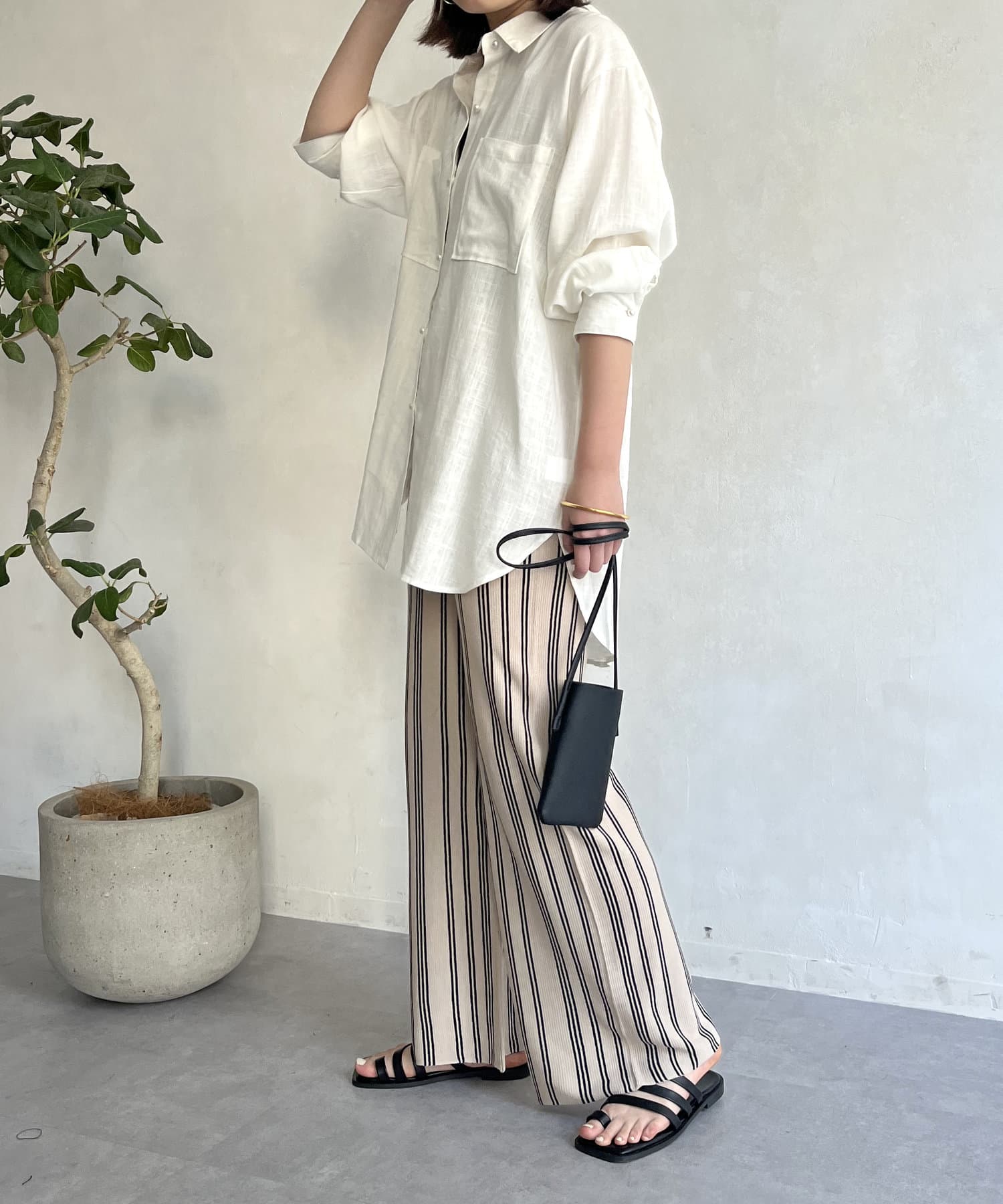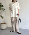 ●ストライプ柄のワイドなシルエットで縦長効果で着やせ効果も◎