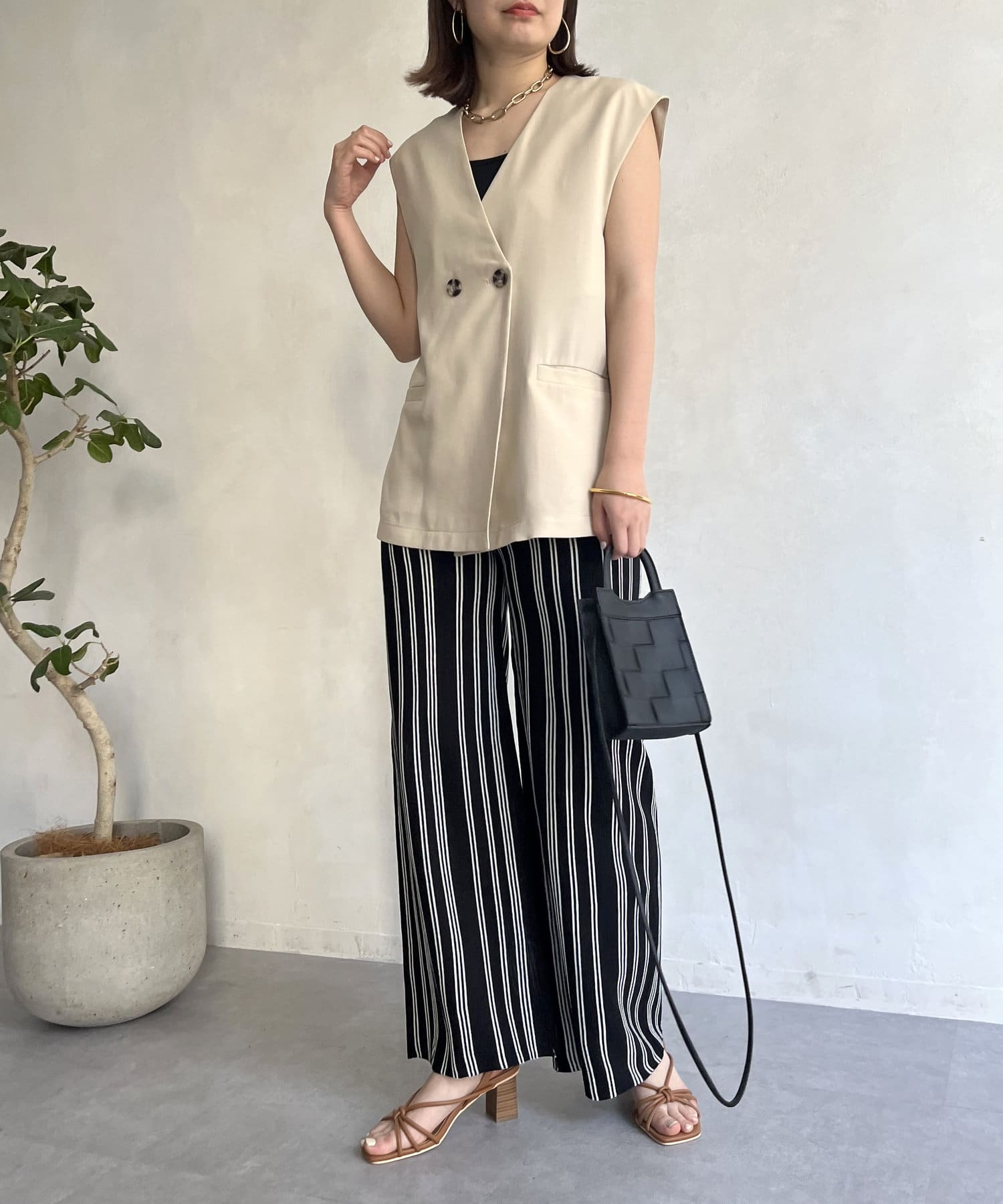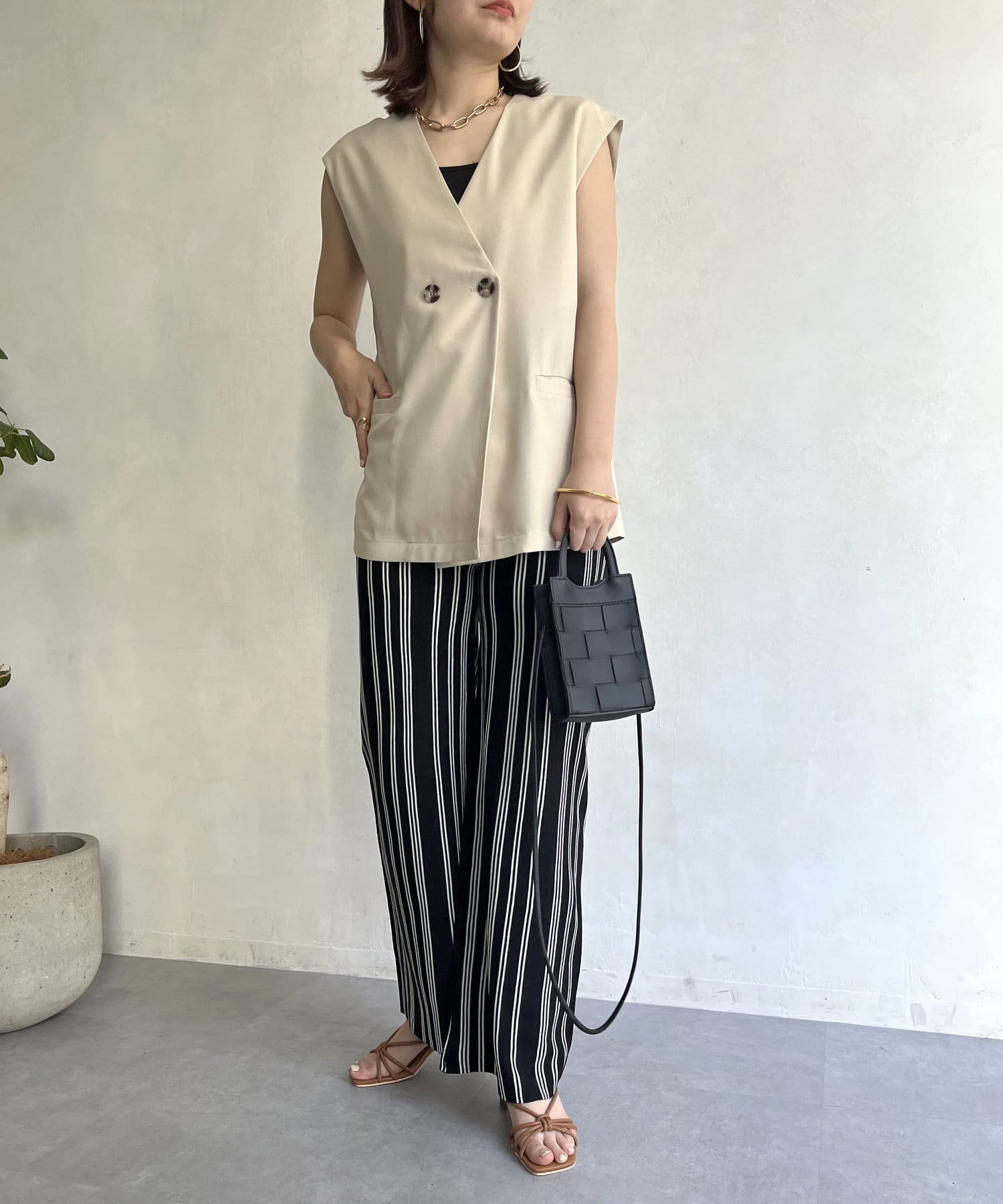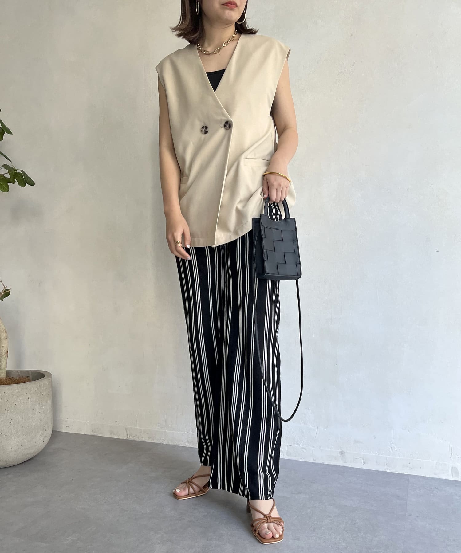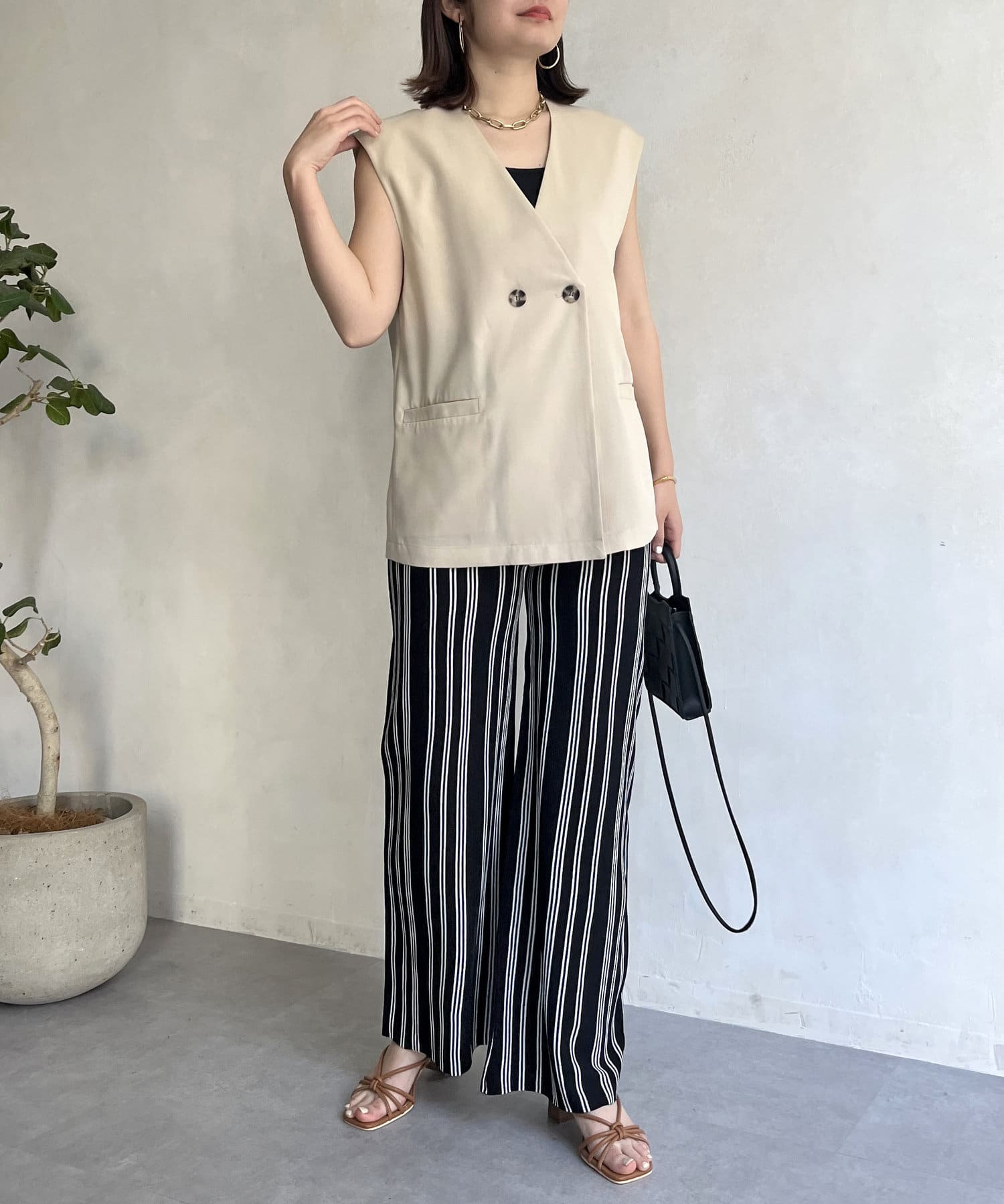 ●ストライプ柄のワイドなシルエットで縦長効果で着やせ効果も◎
