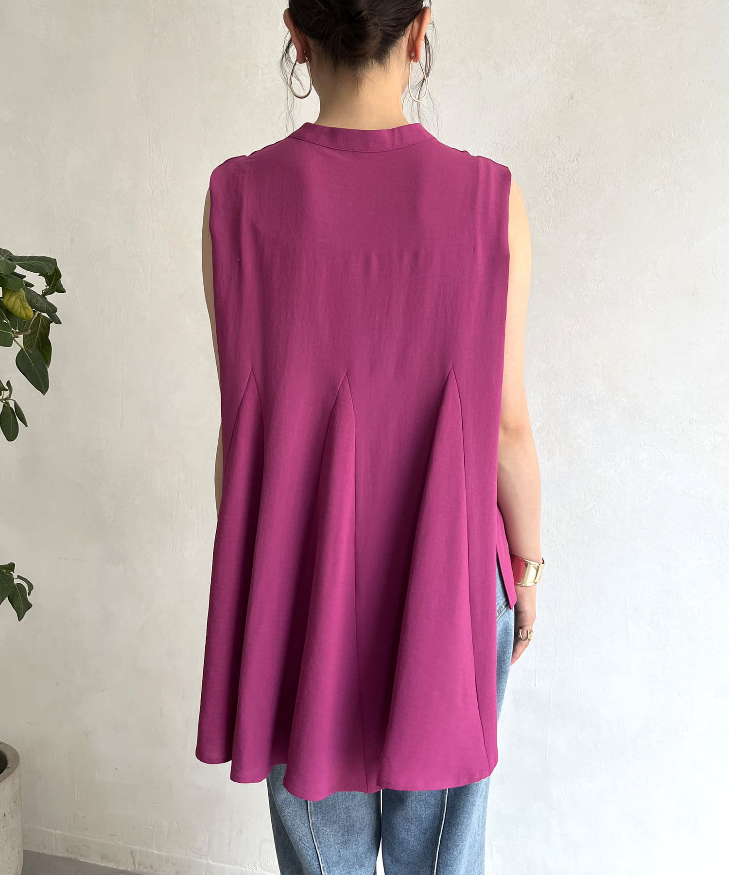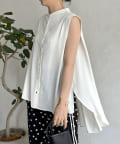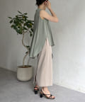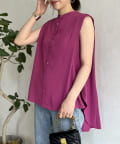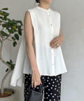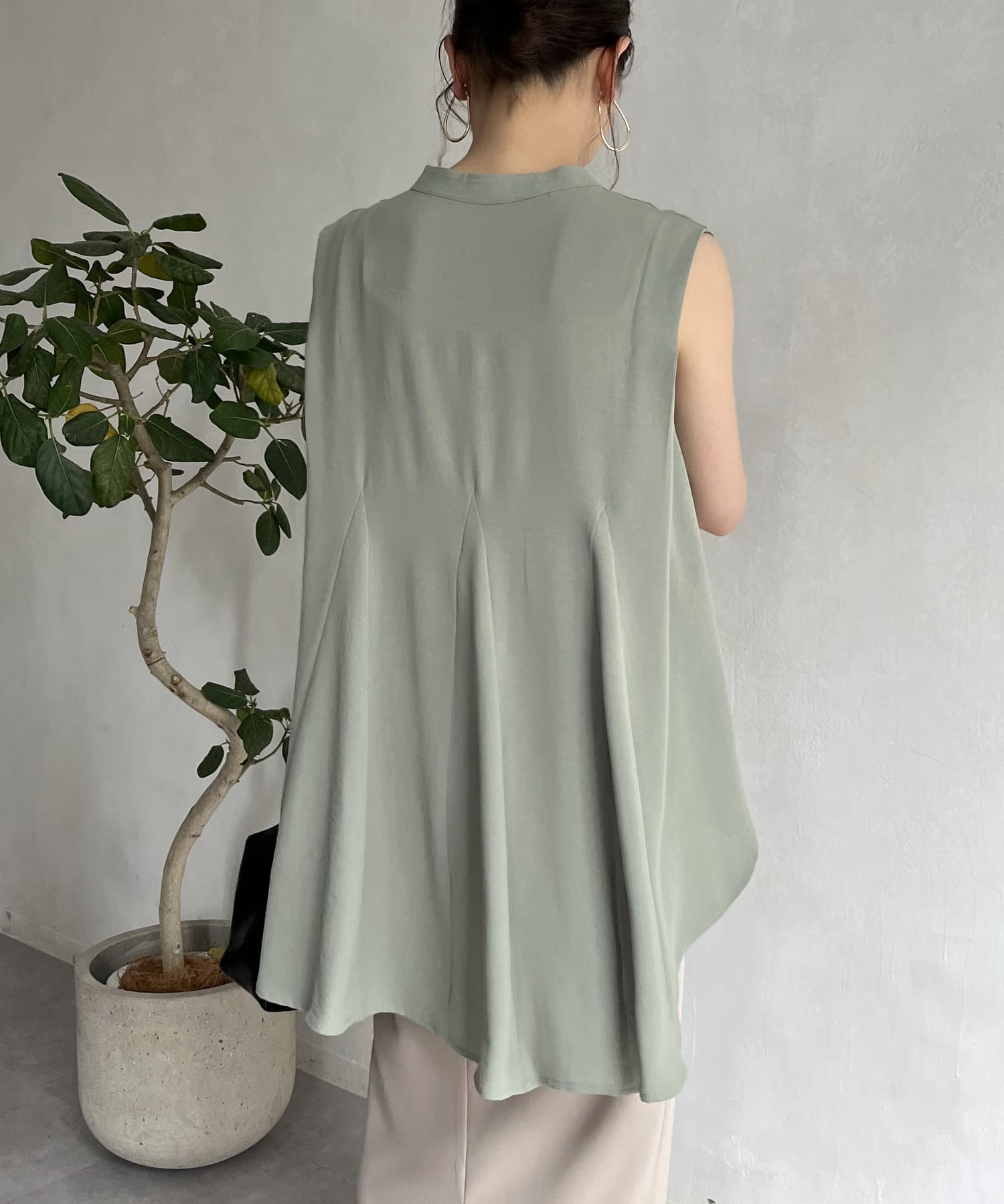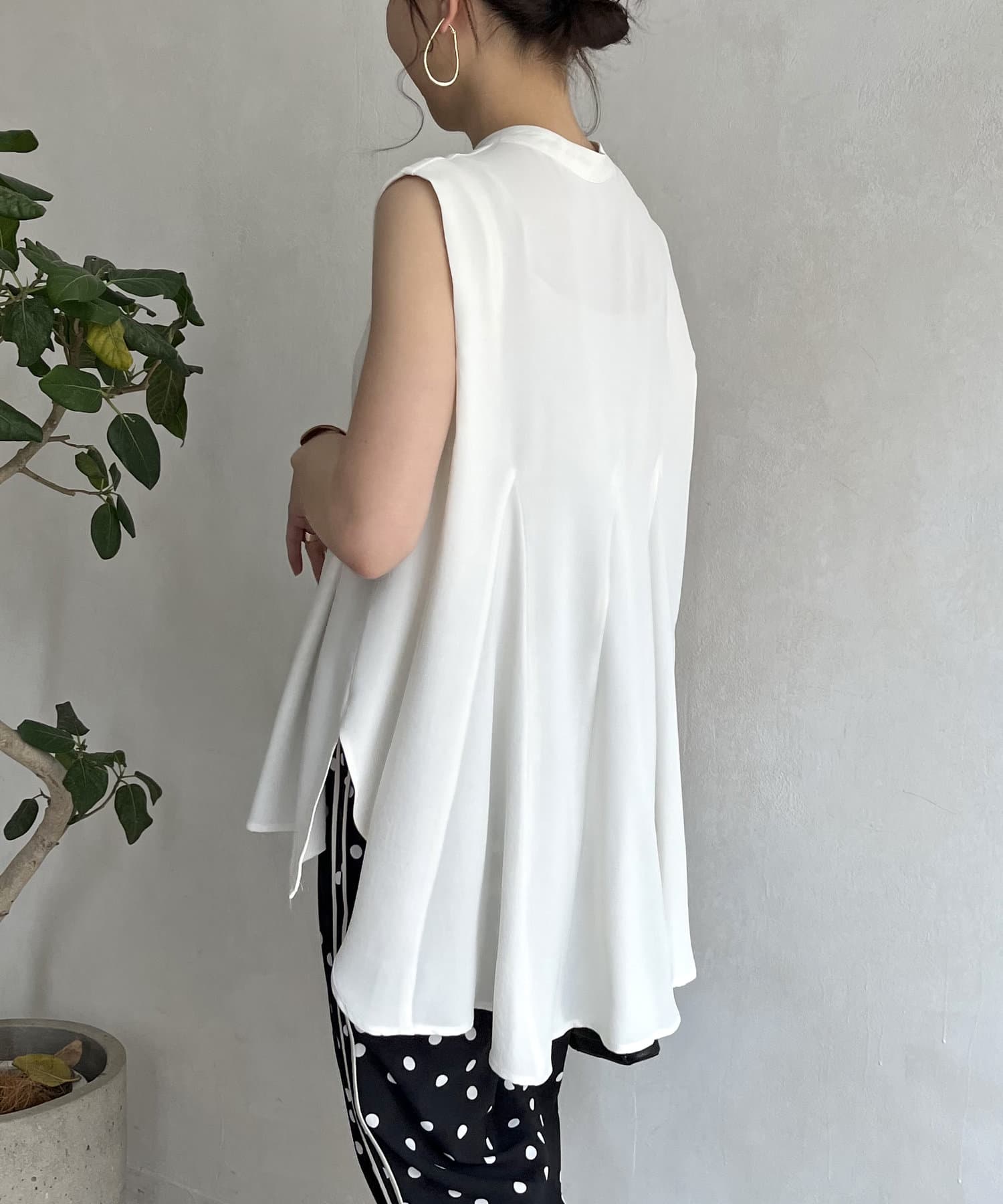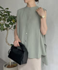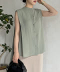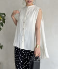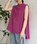バックフレア袖タックブラウス