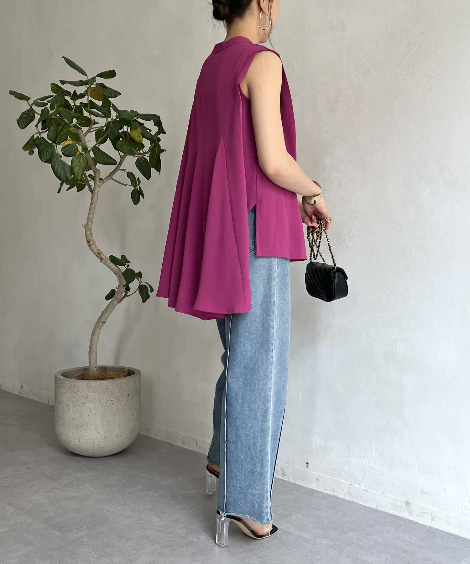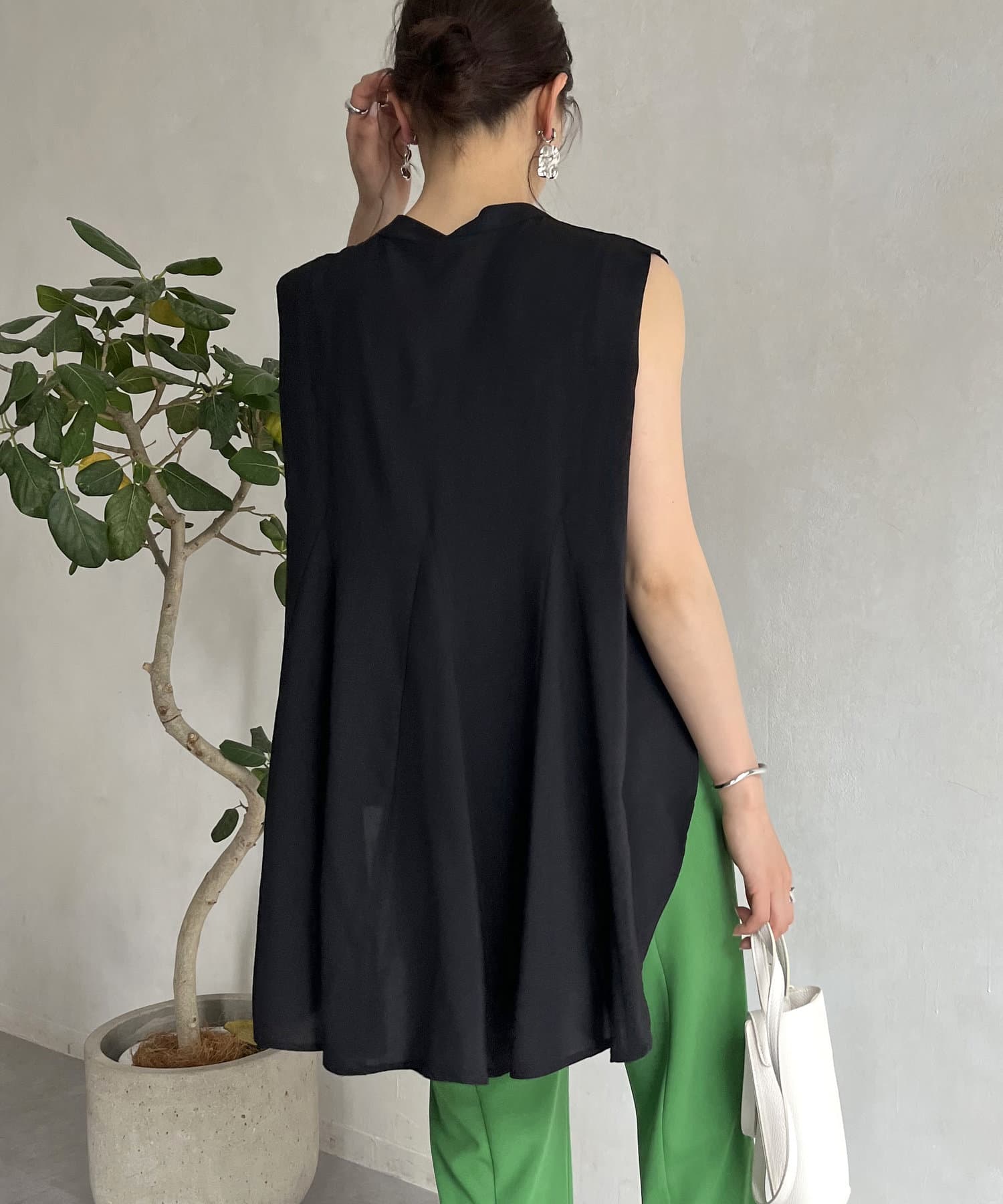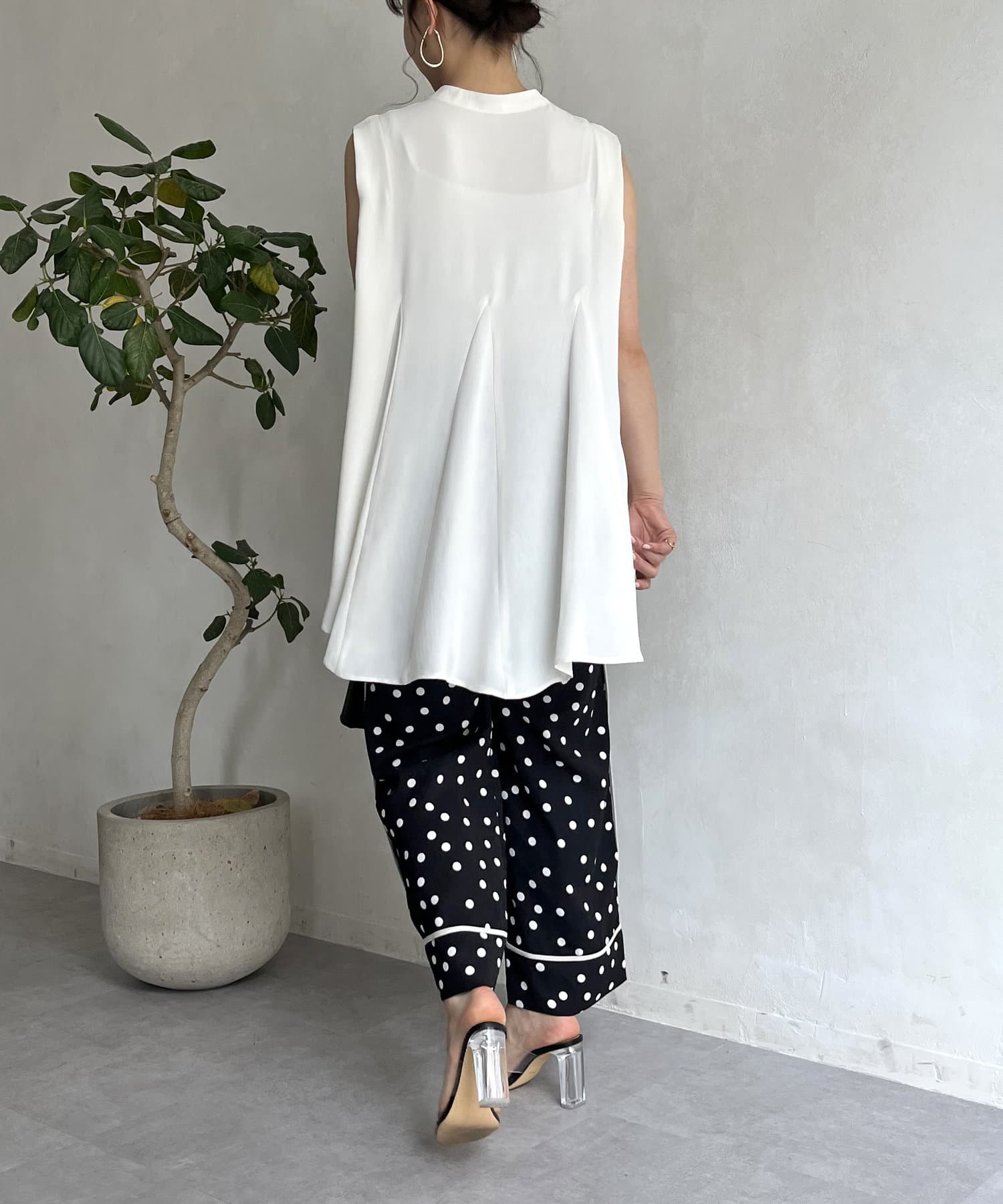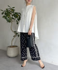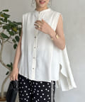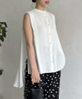 バックフレア袖タックブラウス