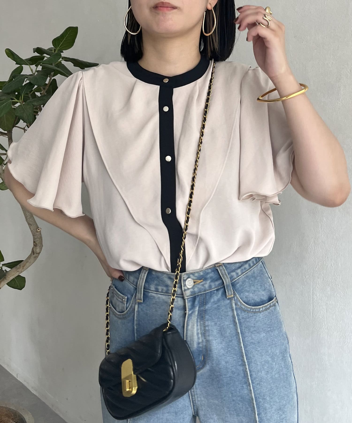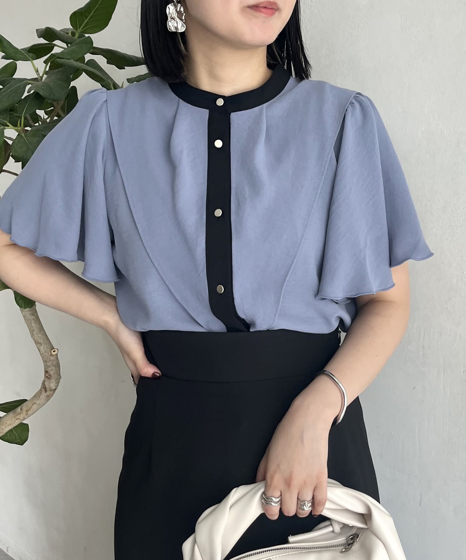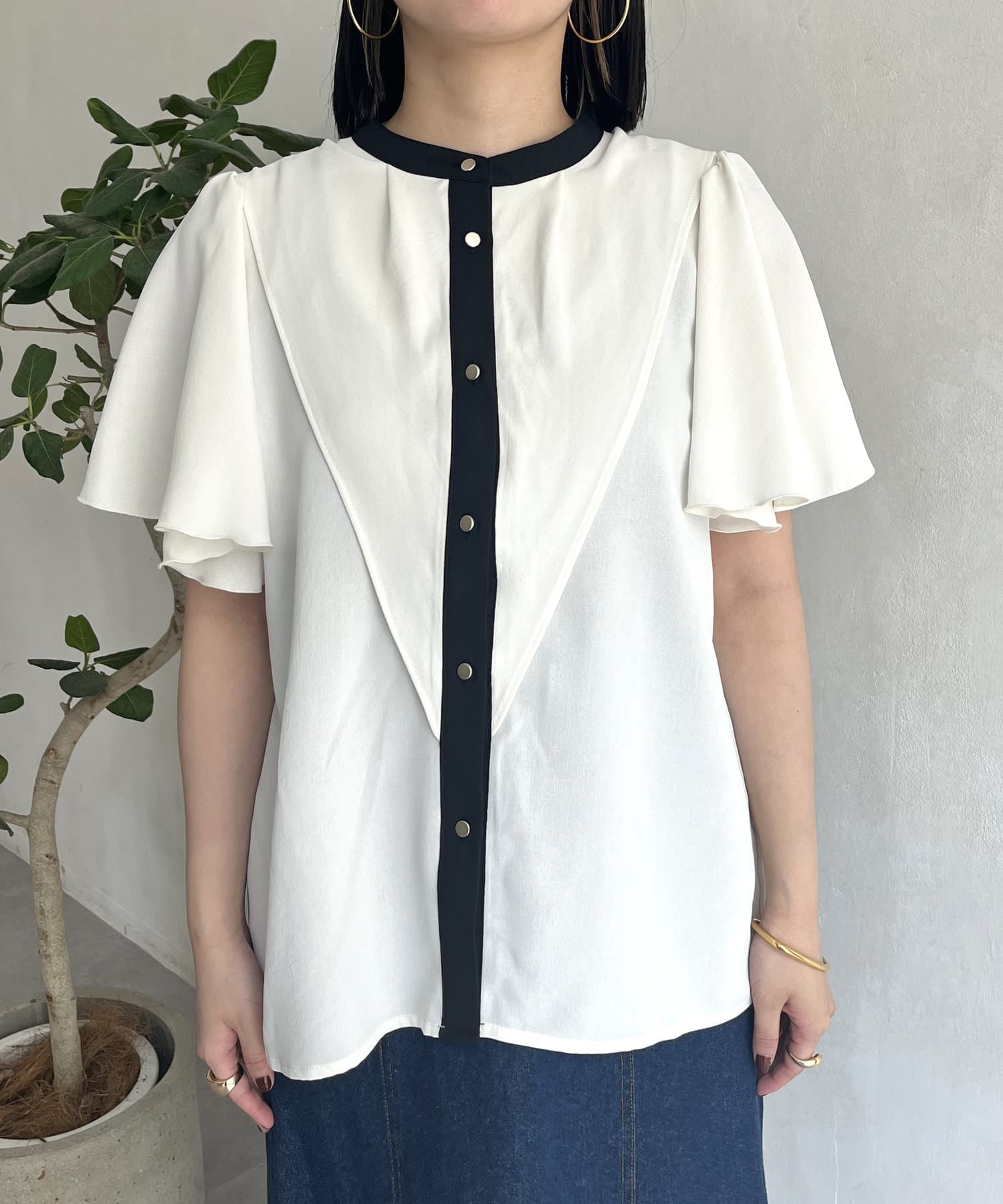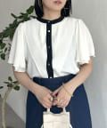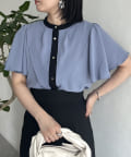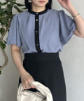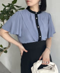 ケープカラー袖フリルブラウス