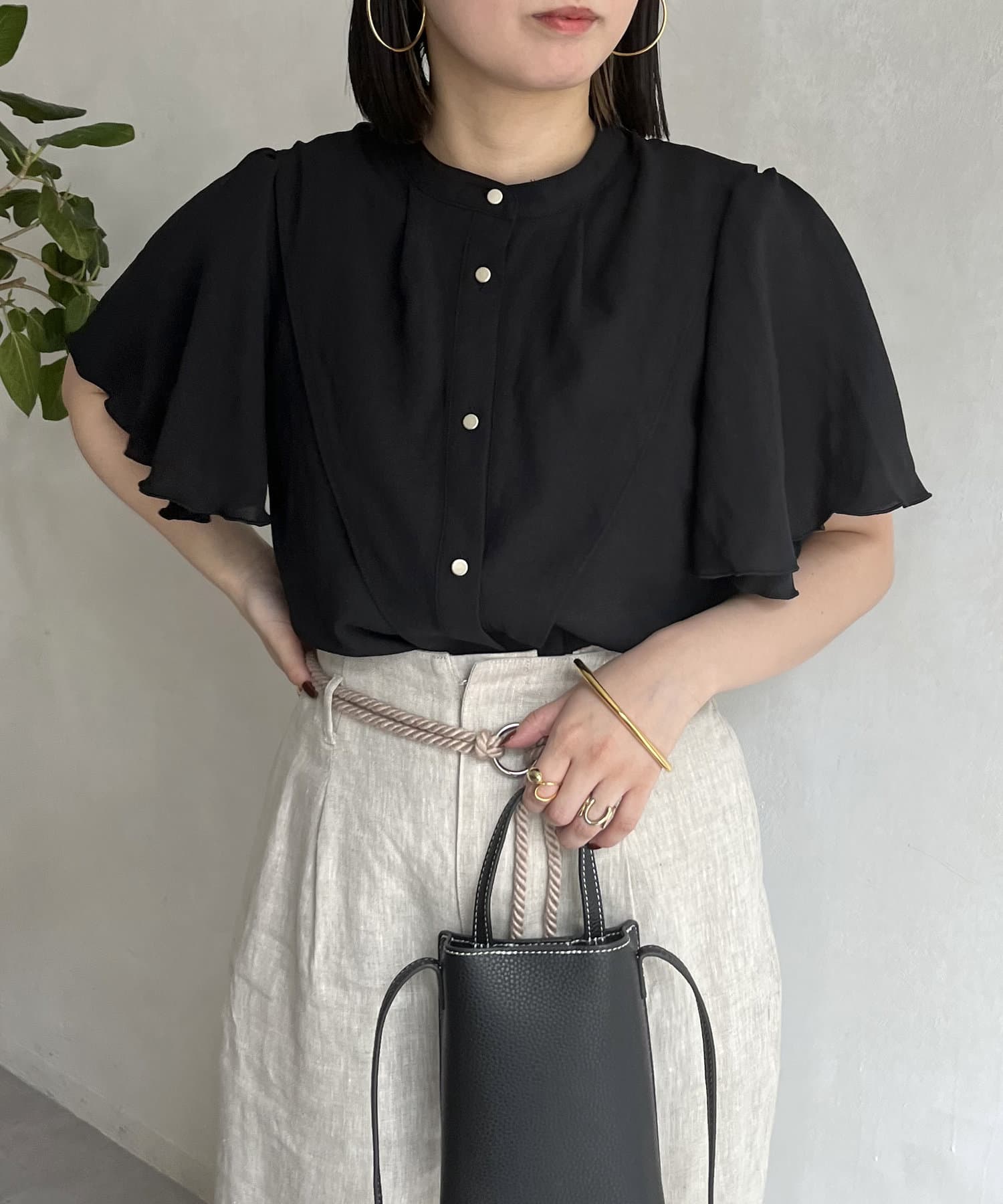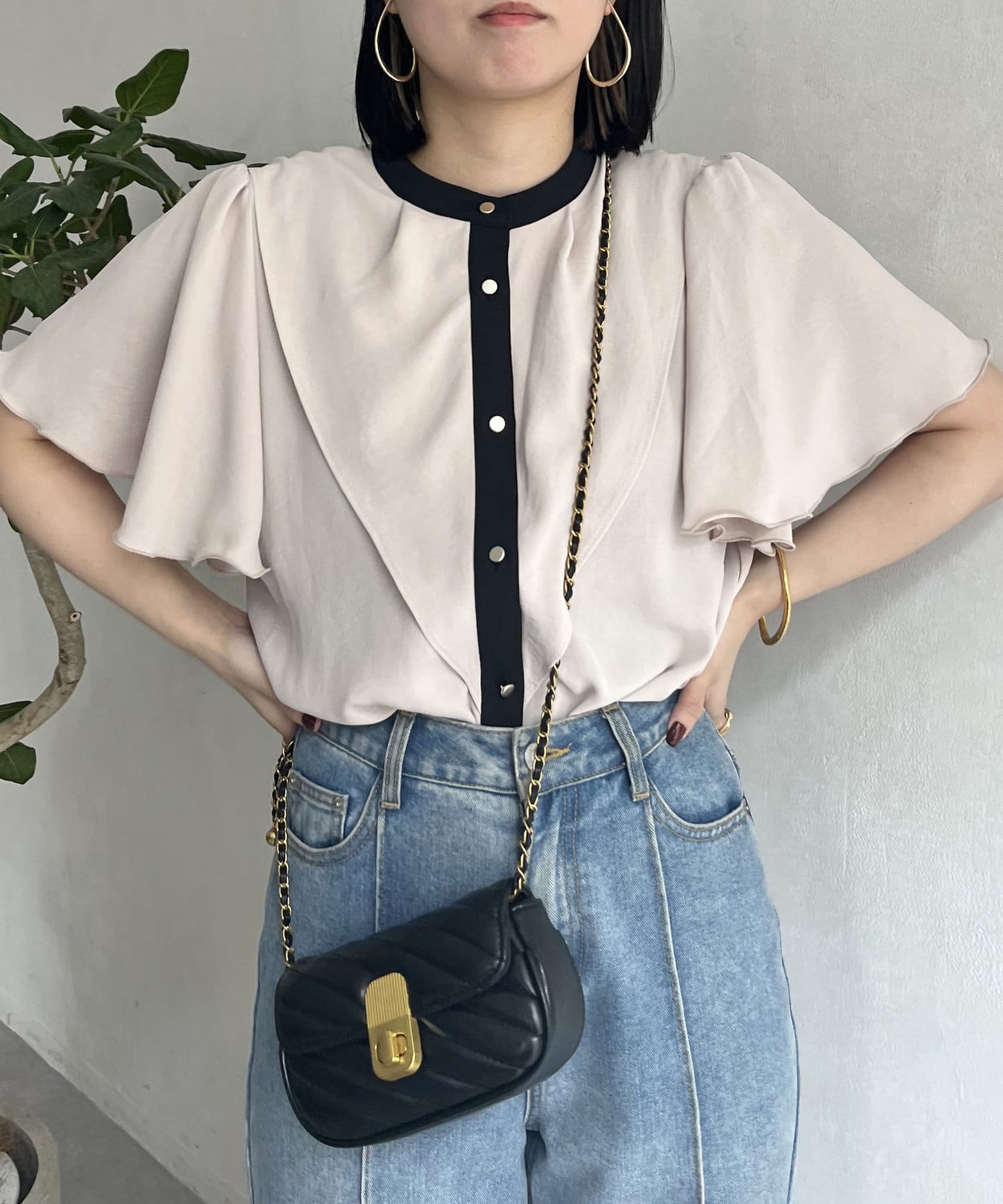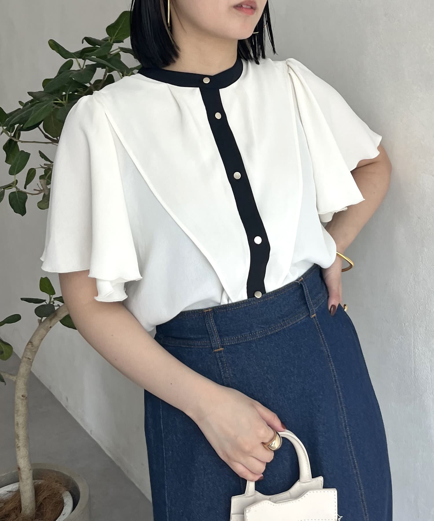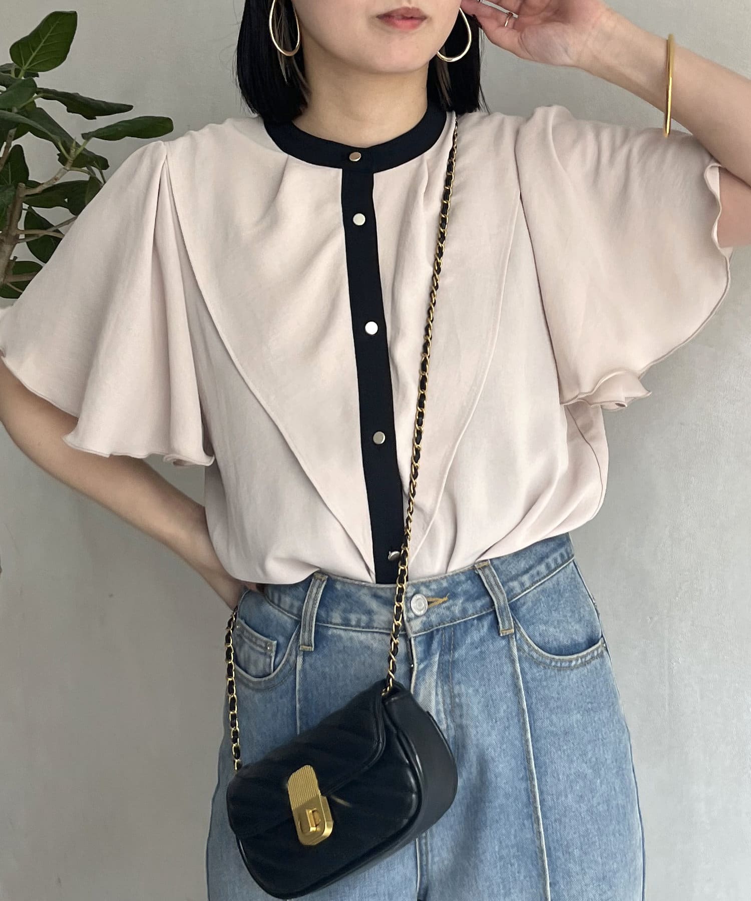 ケープカラー袖フリルブラウス