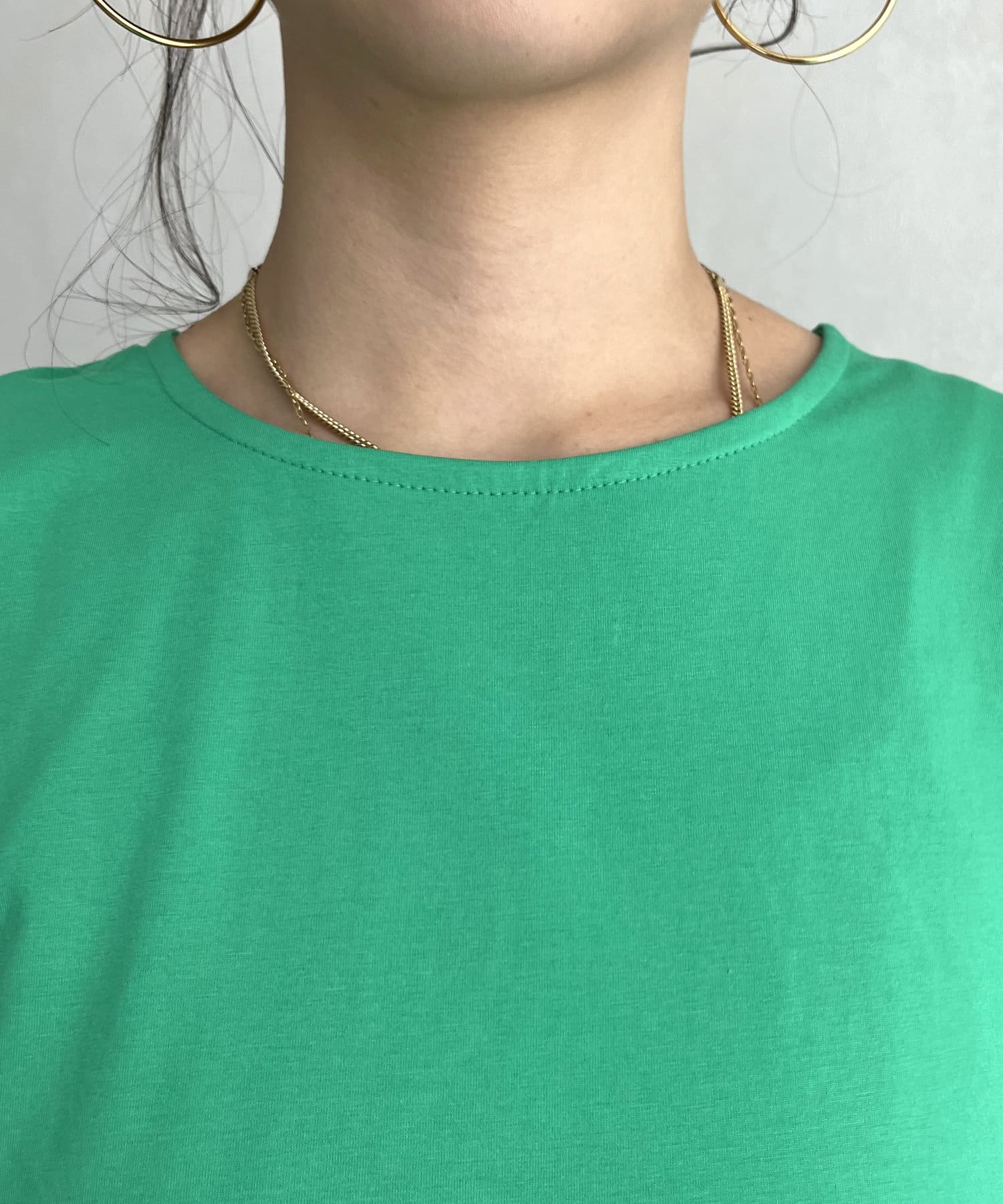 異素材切り替えがこなれ見えなドルマンカットソー