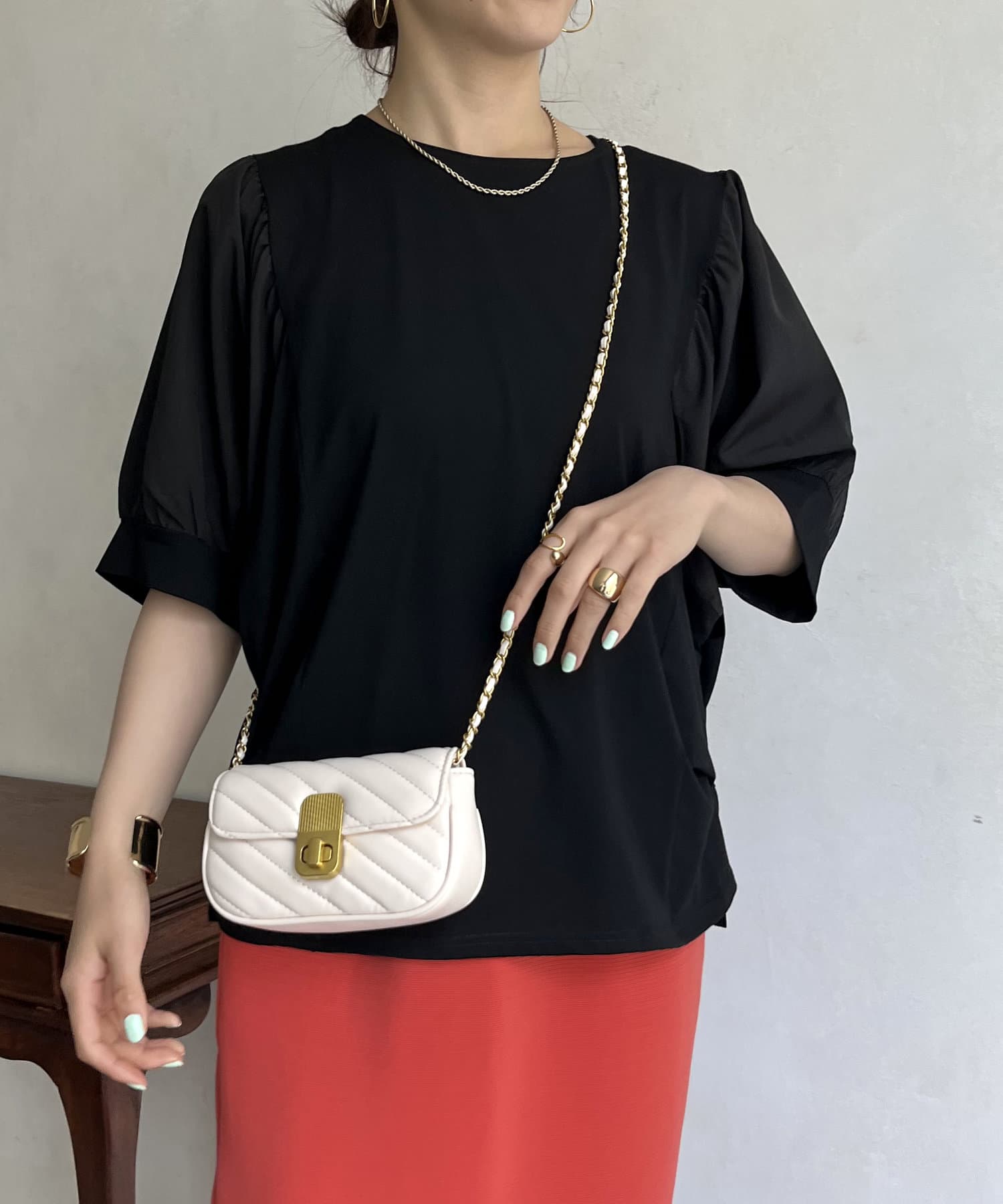 ●ドルマンデザインが女性らしい丸みのあるシルエットを演出