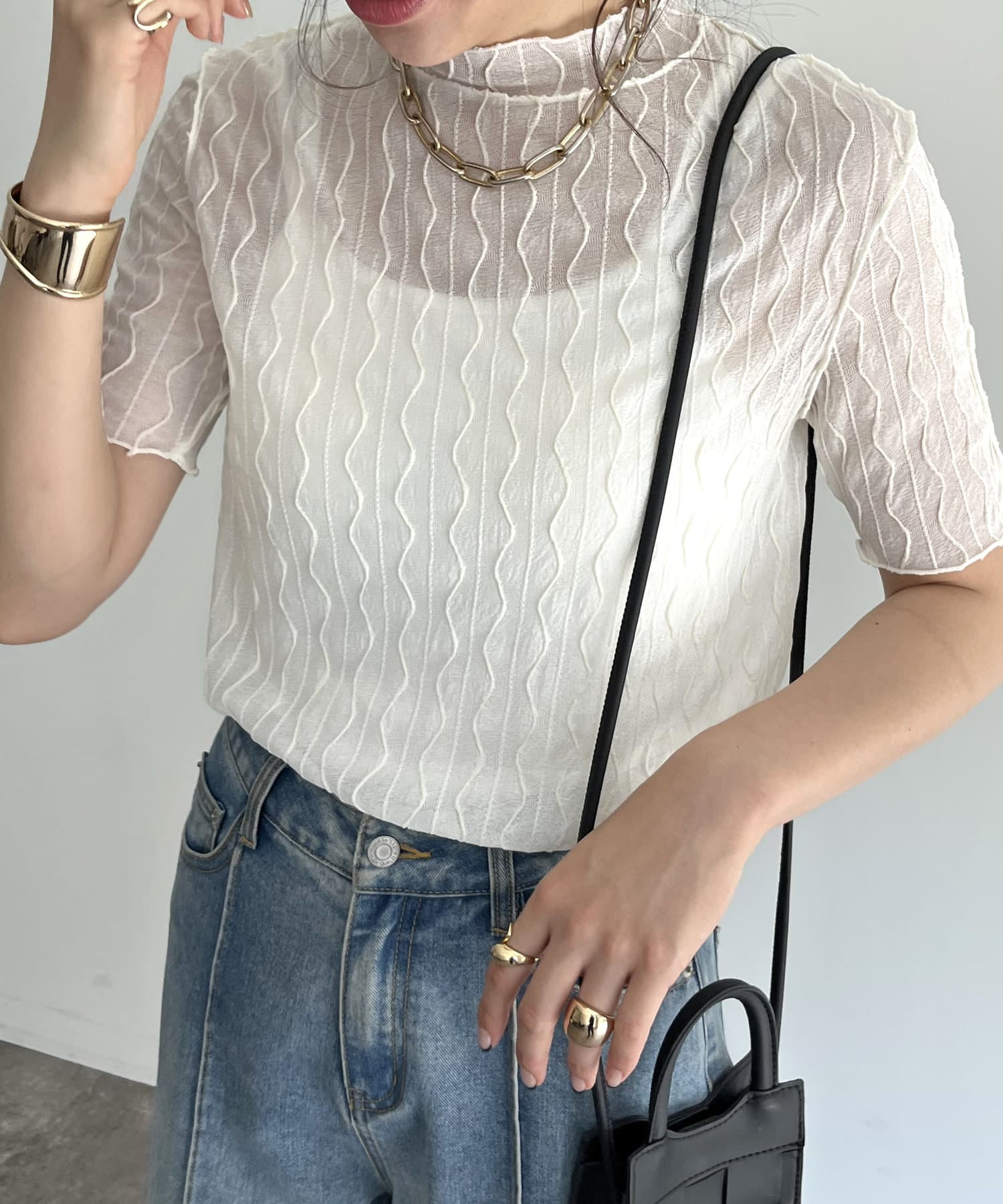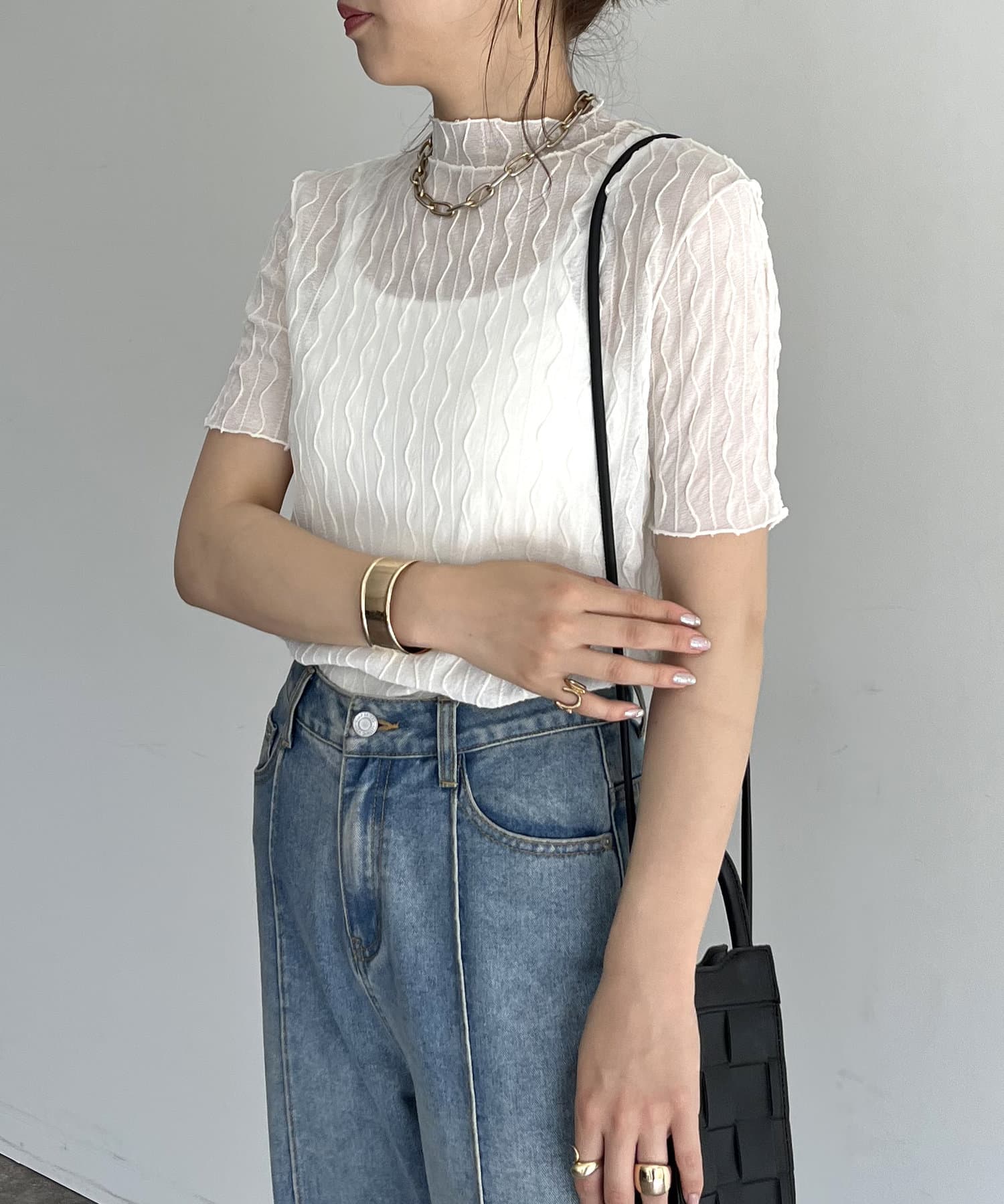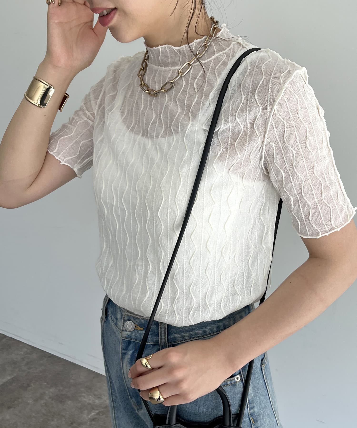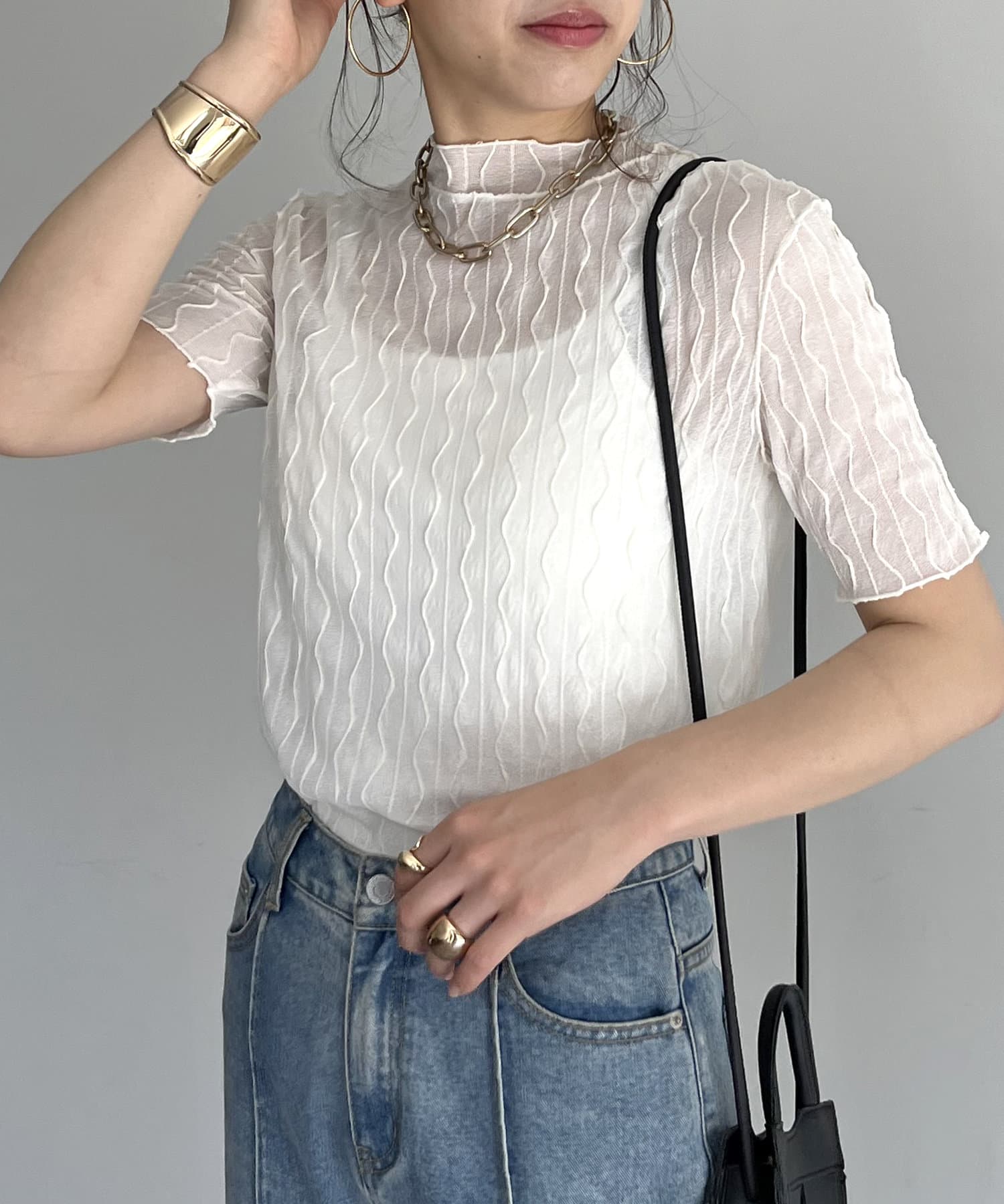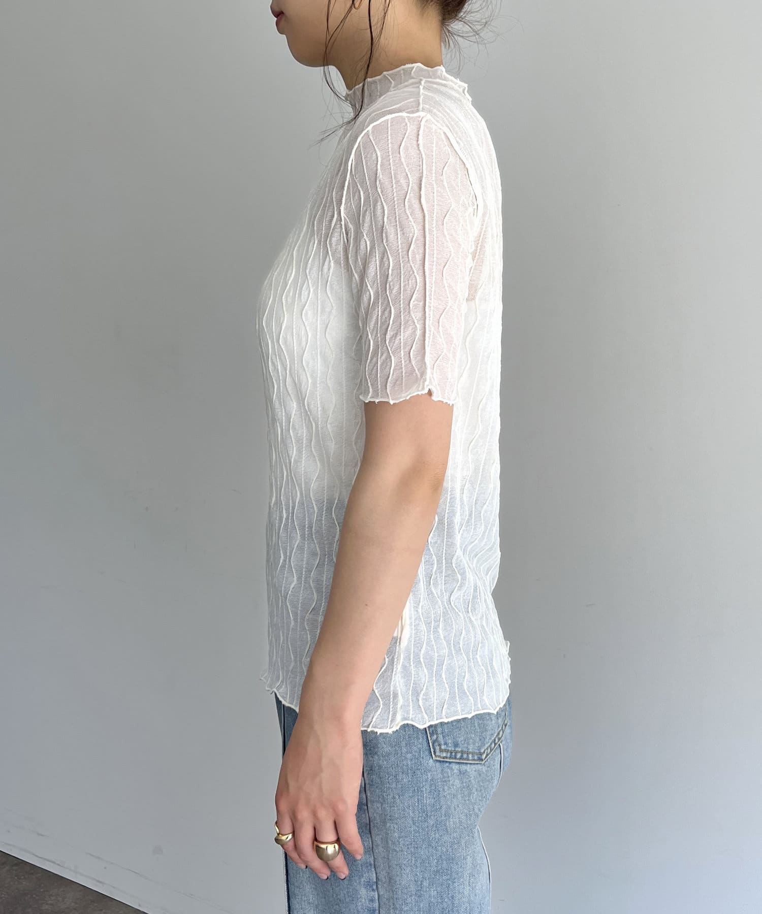 《WEB限定》ウェーブシアーハーフスリーブカットソー