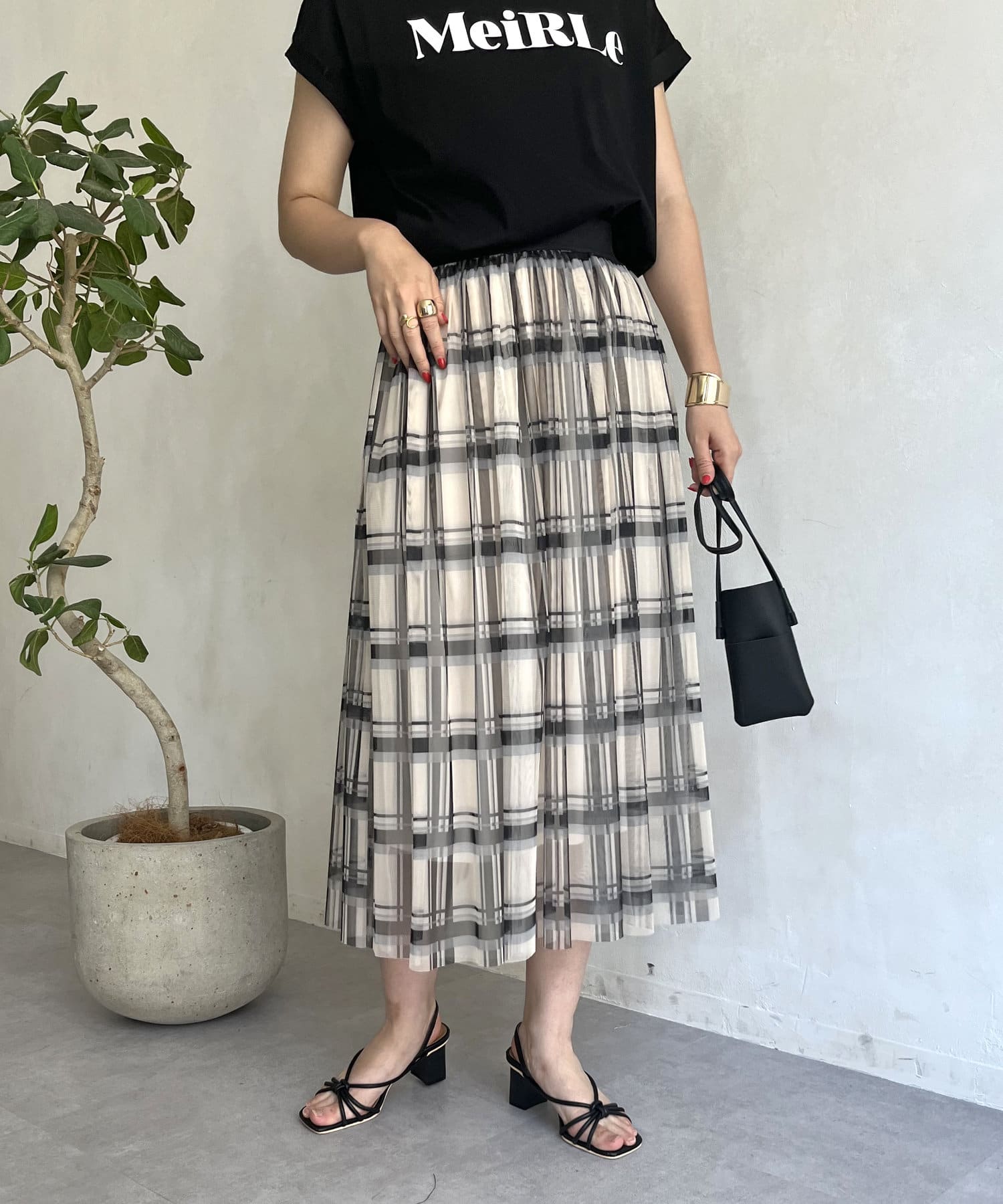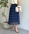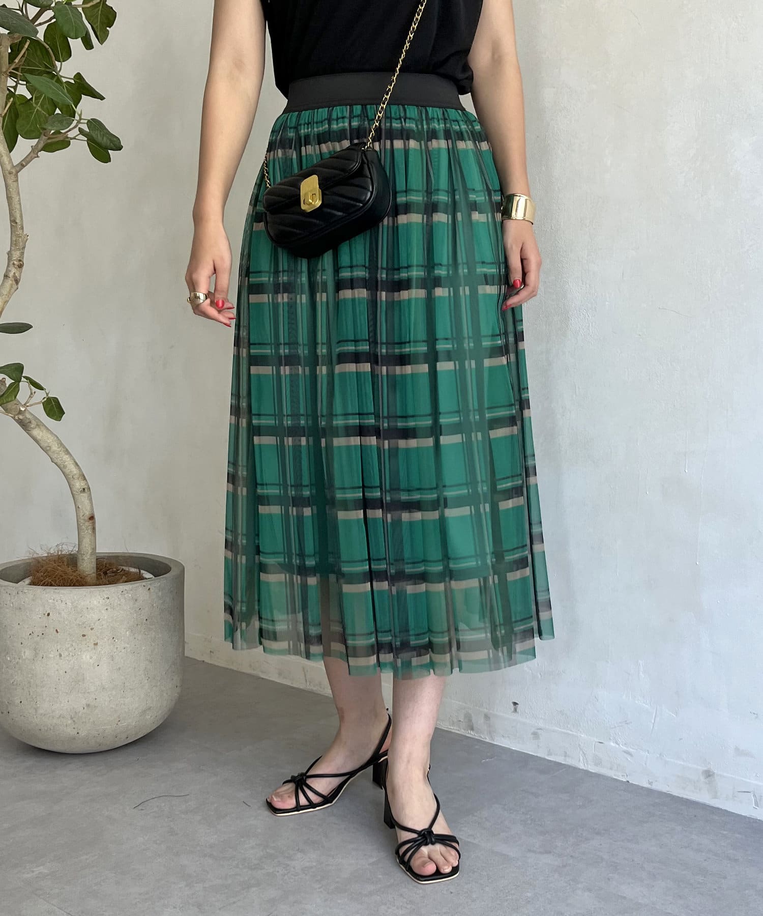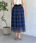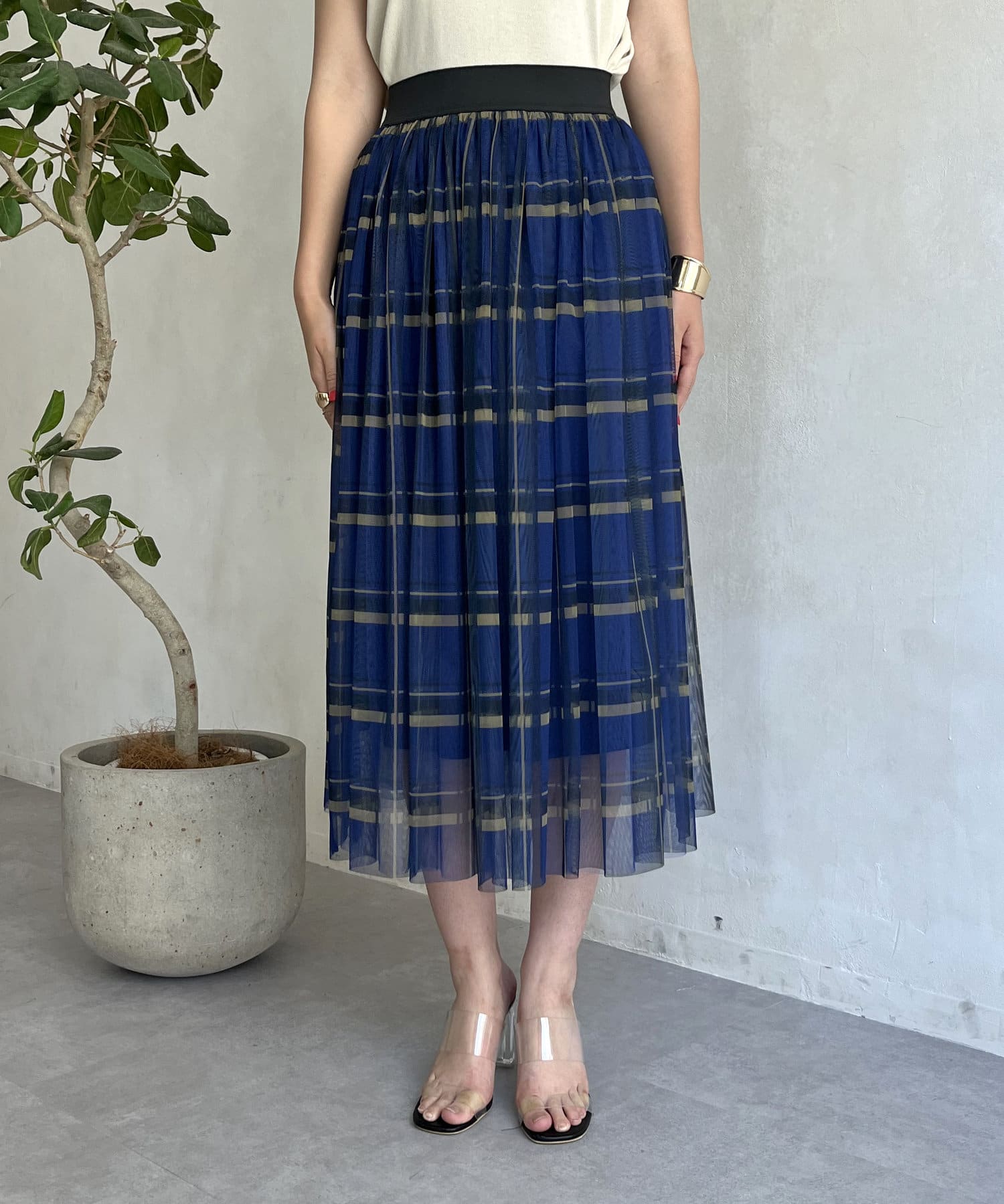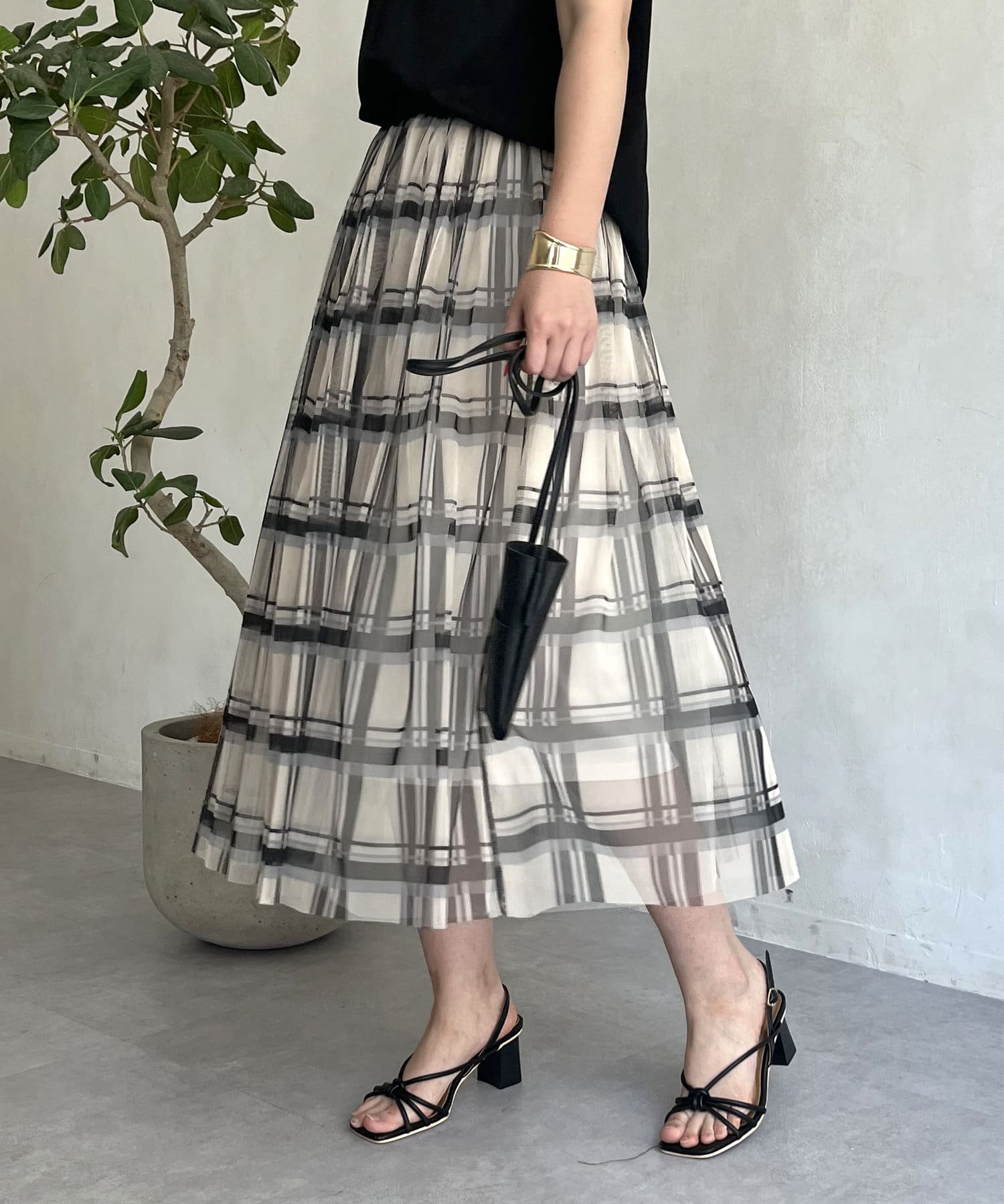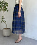 【ウエストゴム仕様】チュールチェックフレアスカート