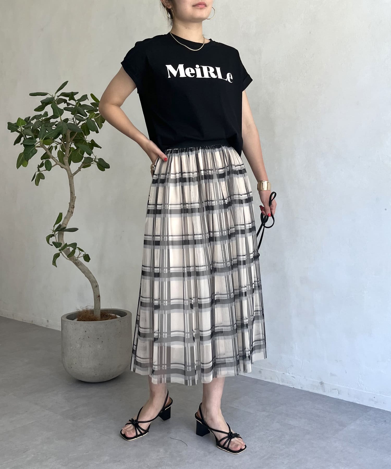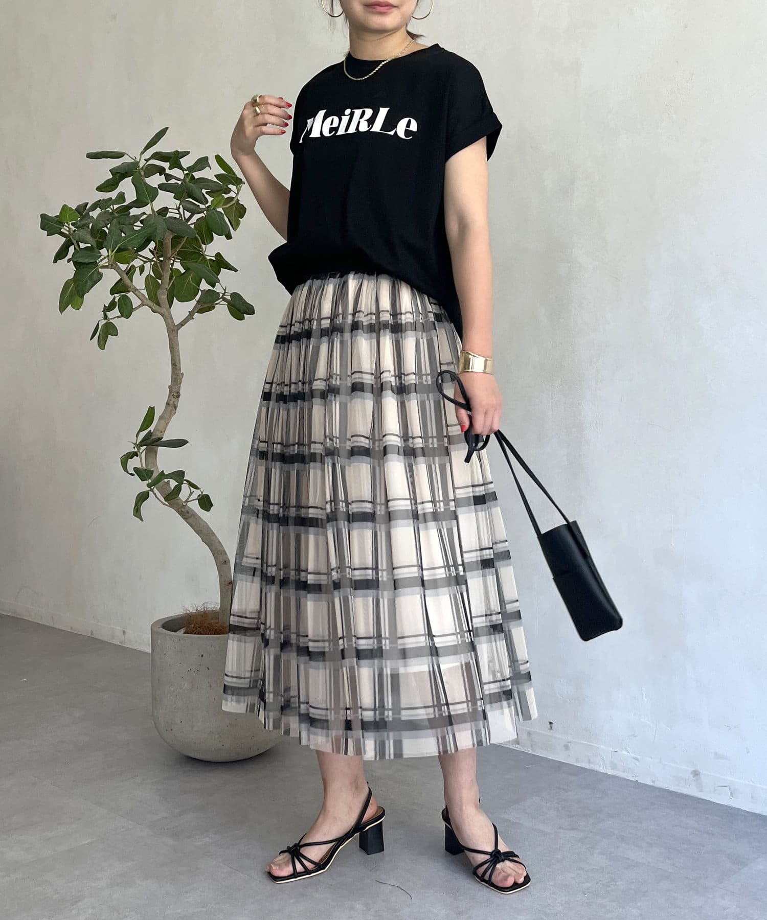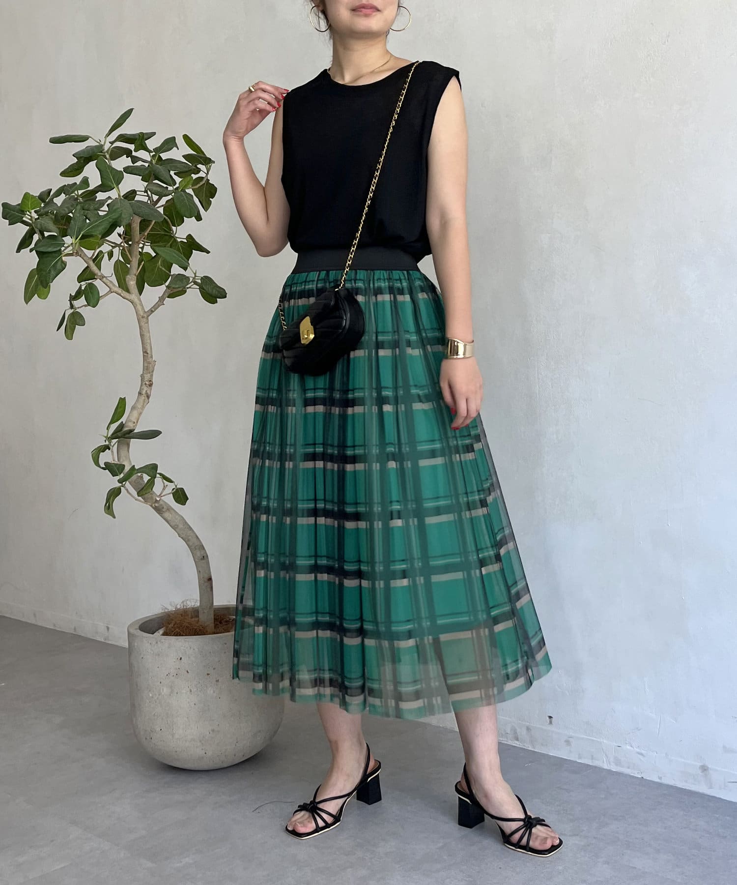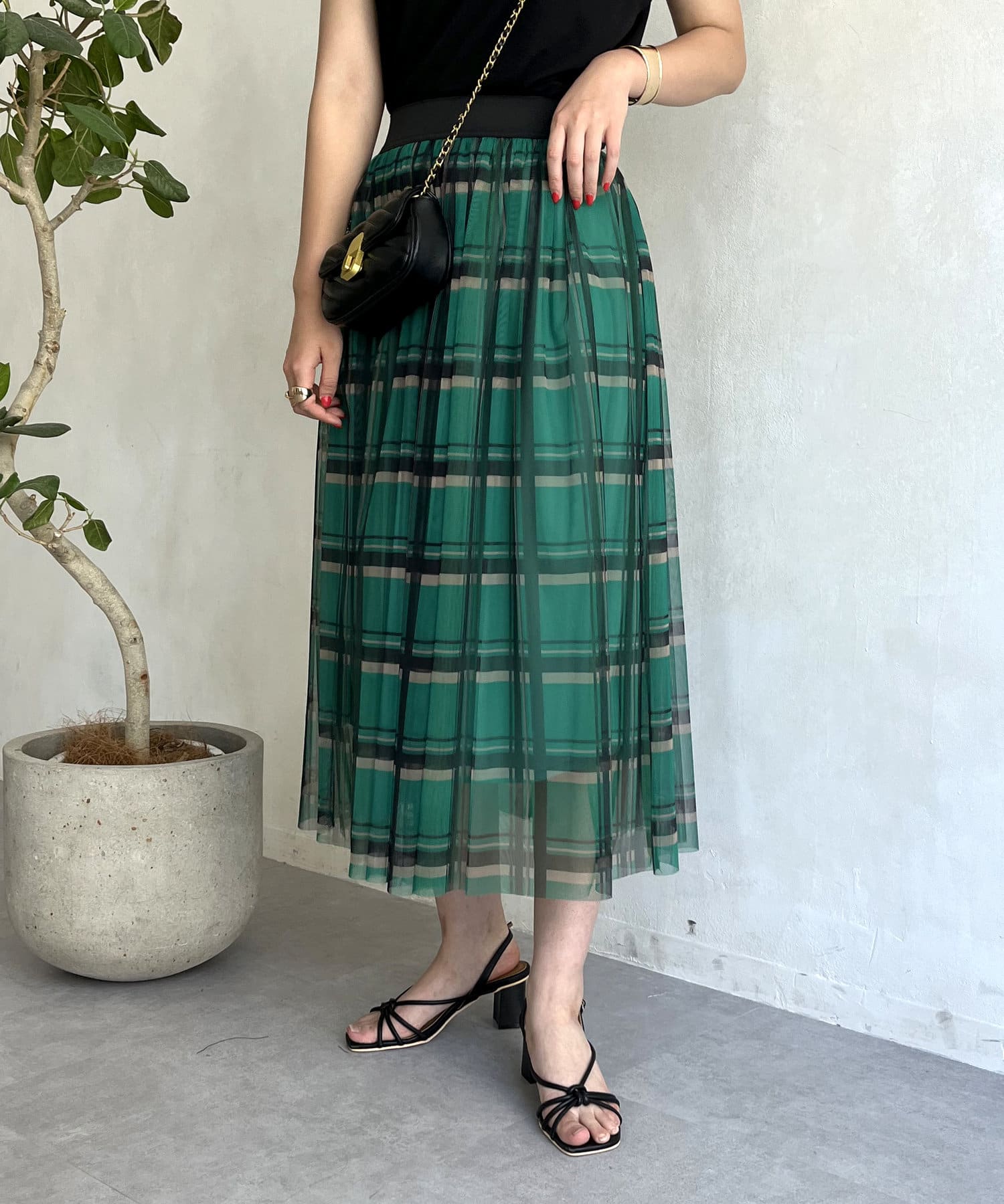 【ウエストゴム仕様】チュールチェックフレアスカート