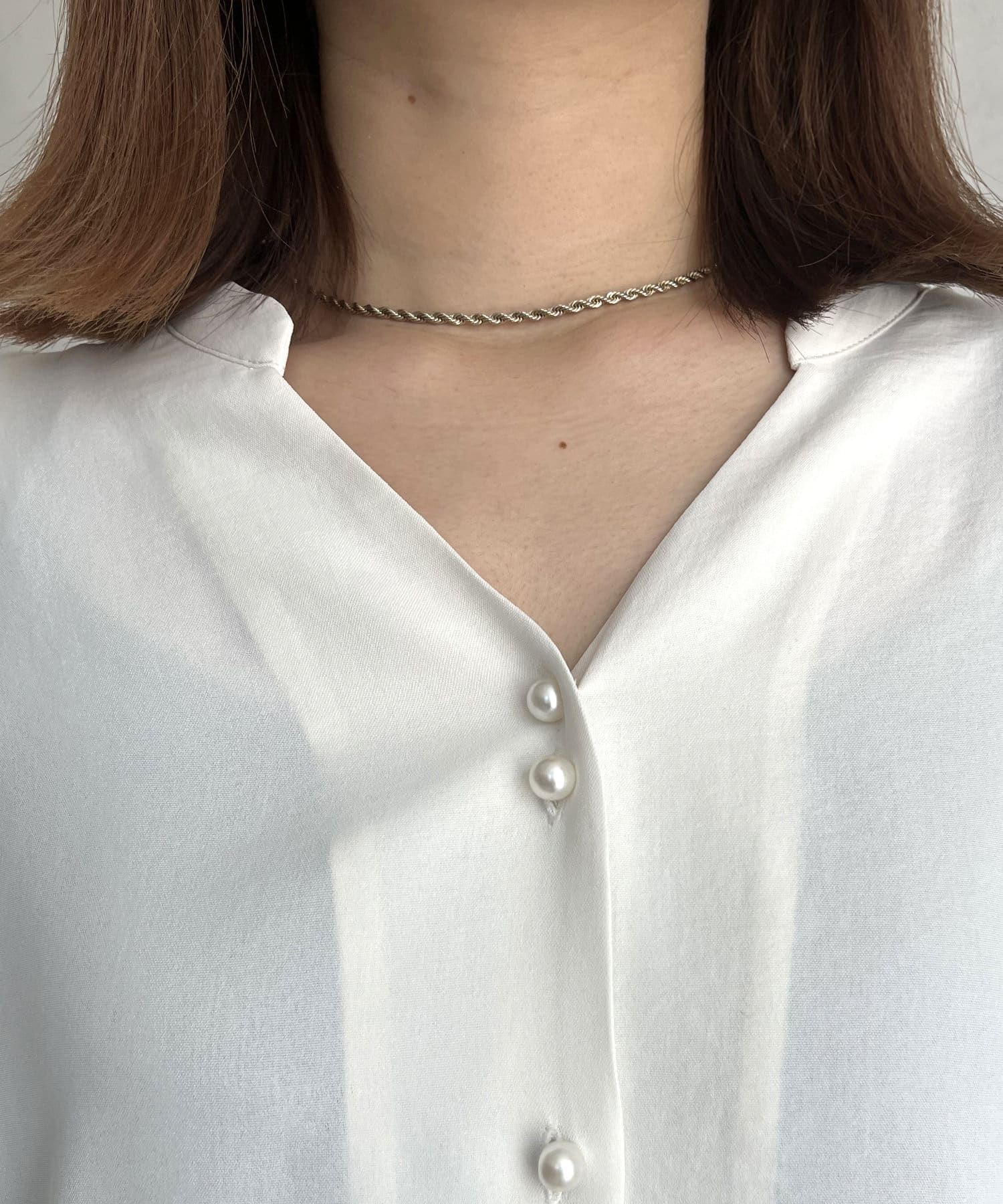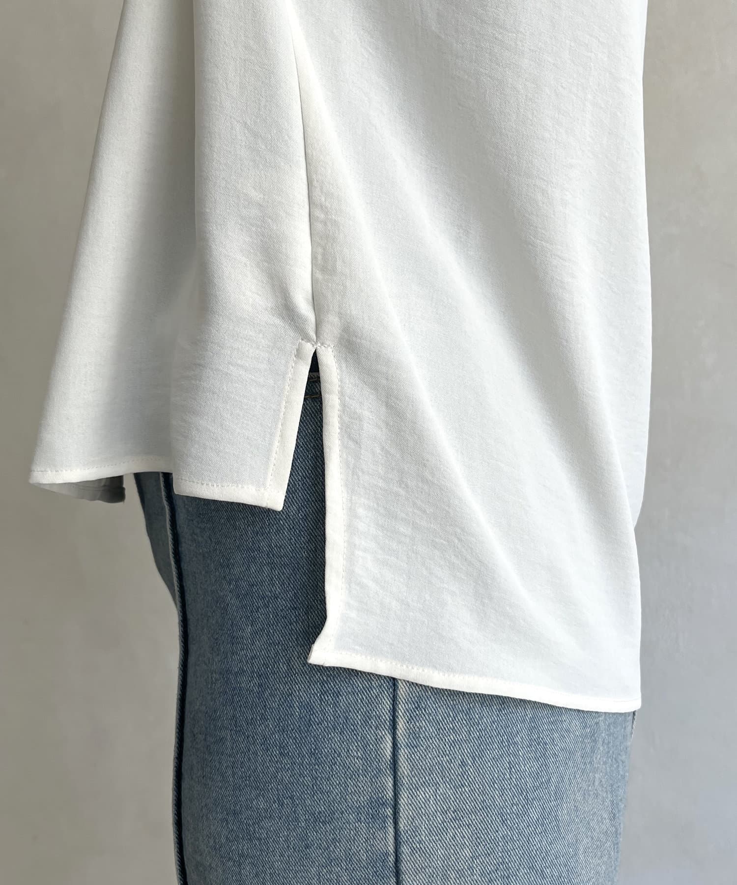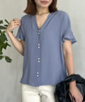 ●V開きのネックデザインで顔回りがスッキリ見える効果も◎