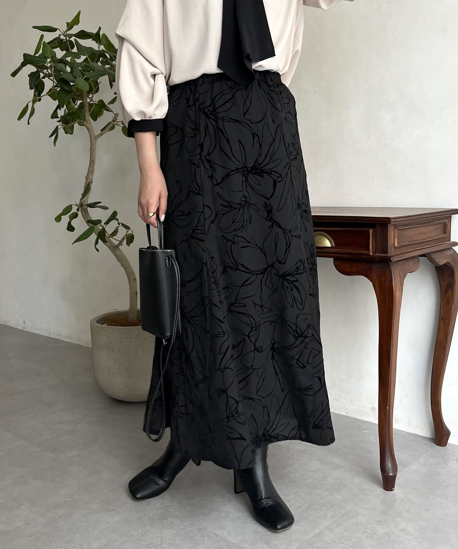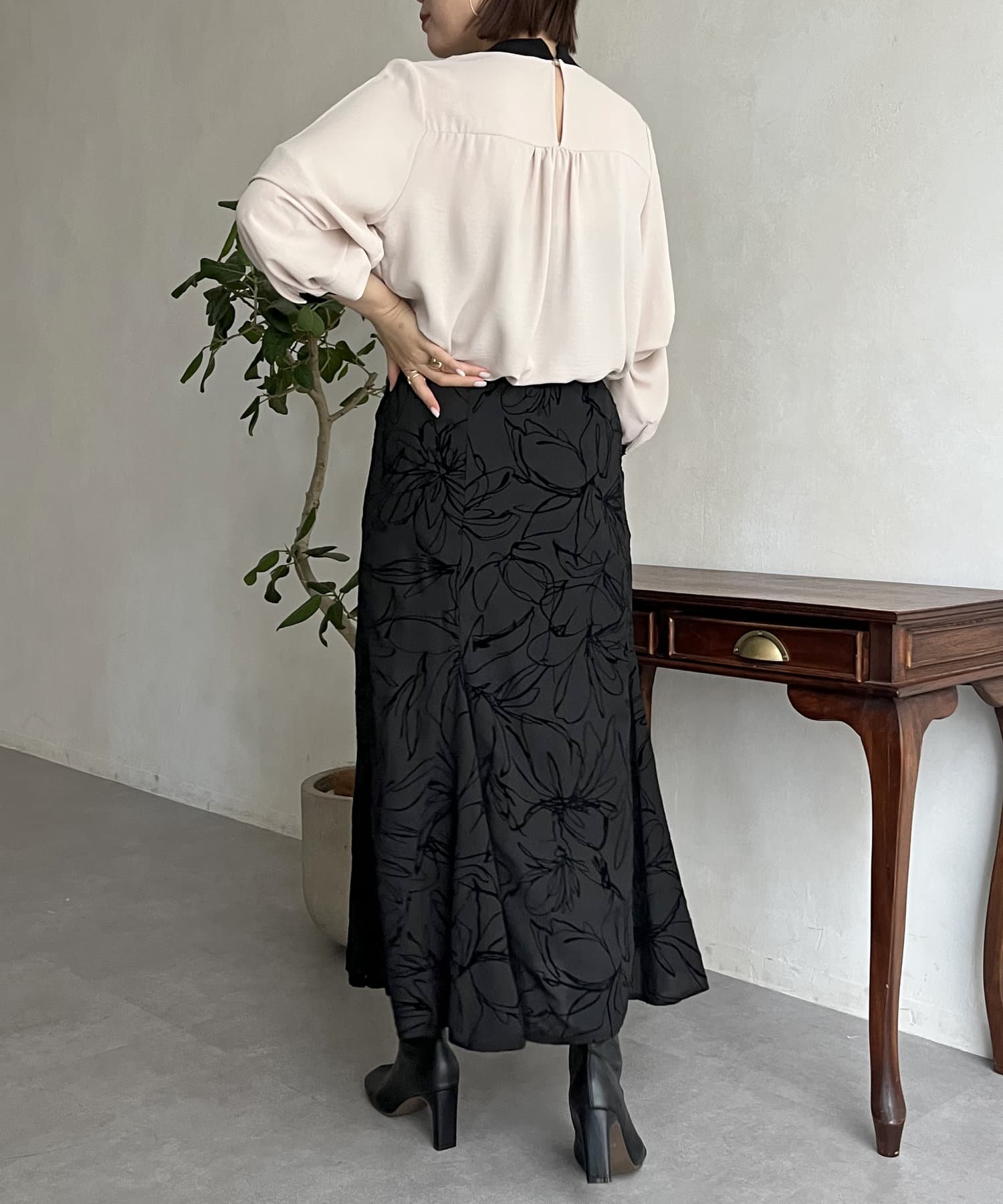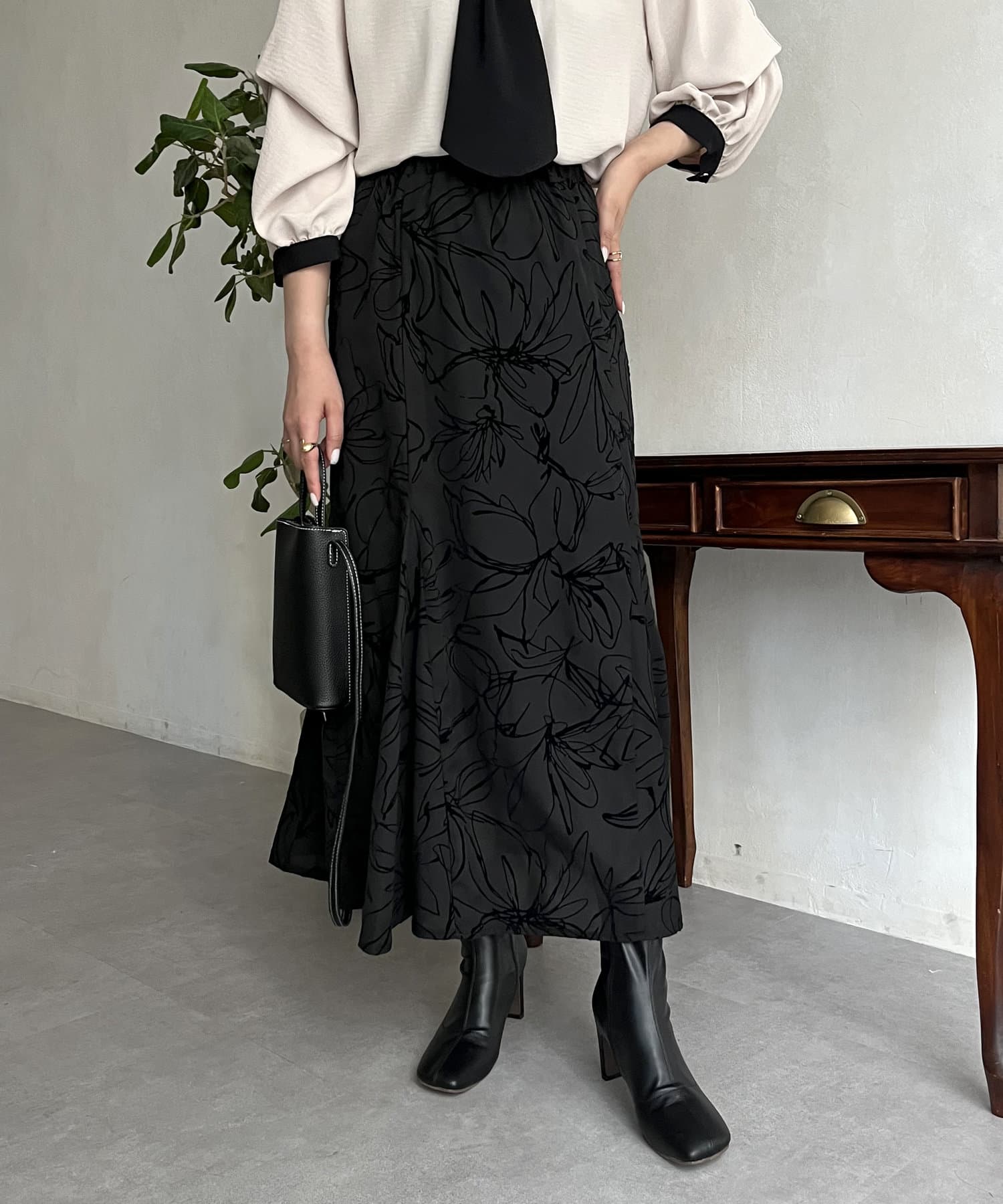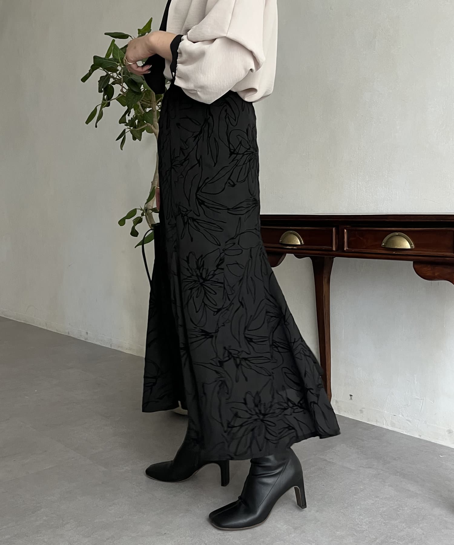 フロッキー線花柄マーメイドスカート