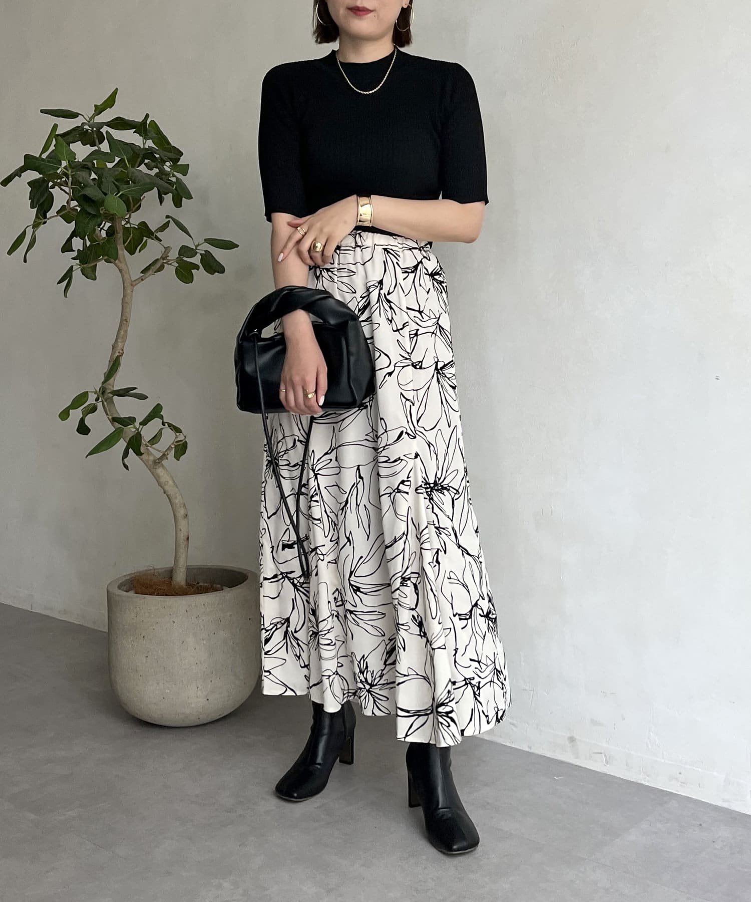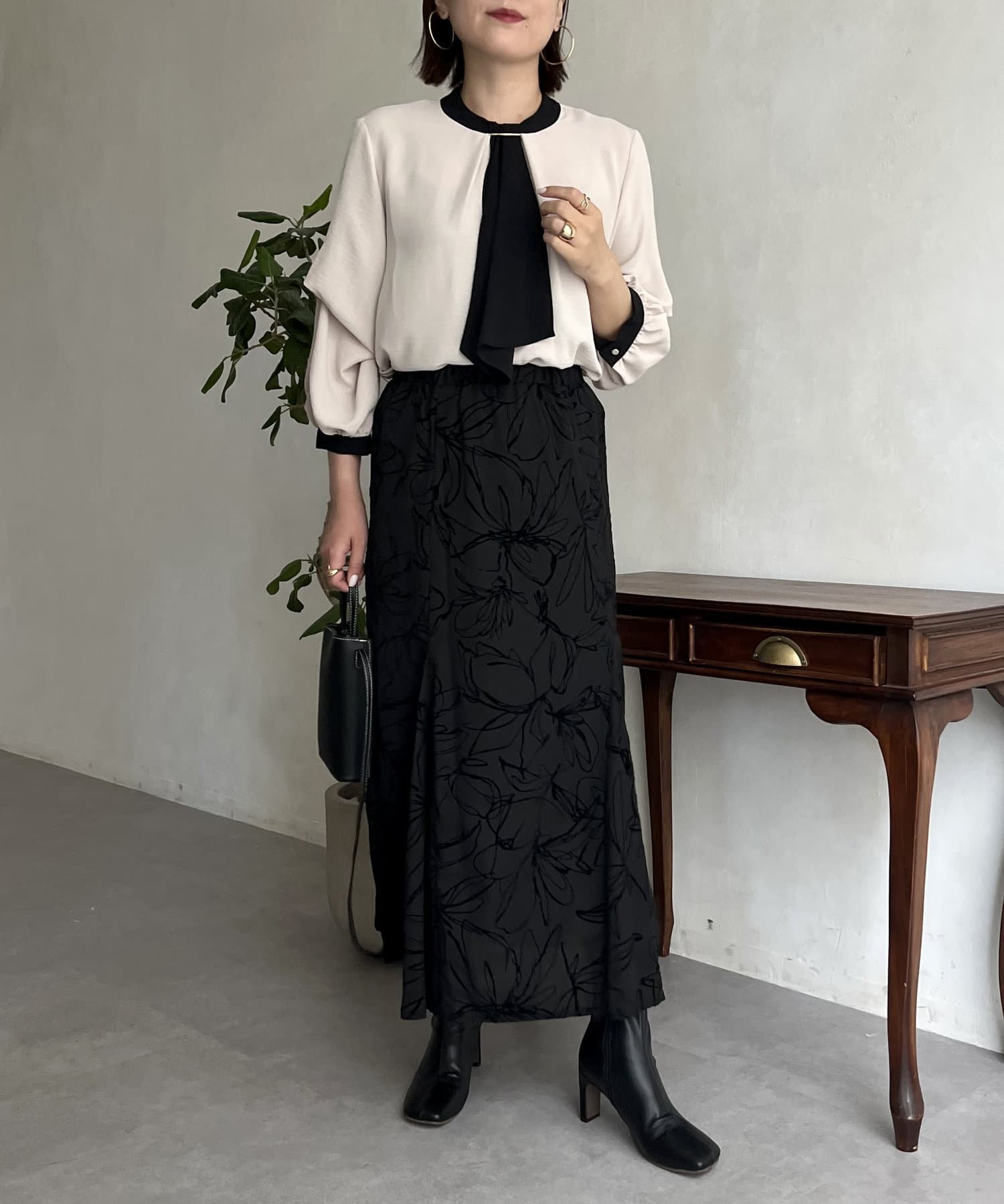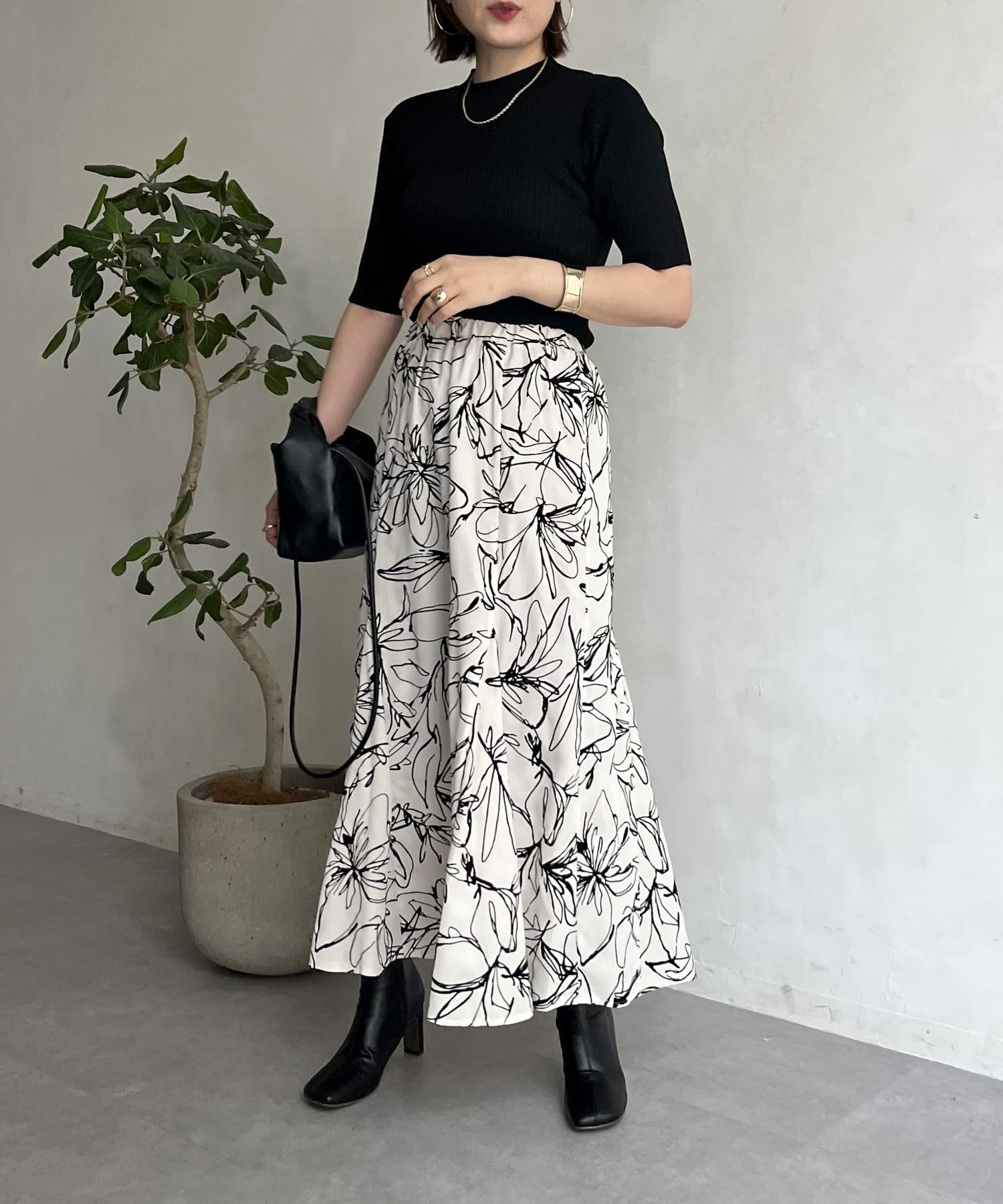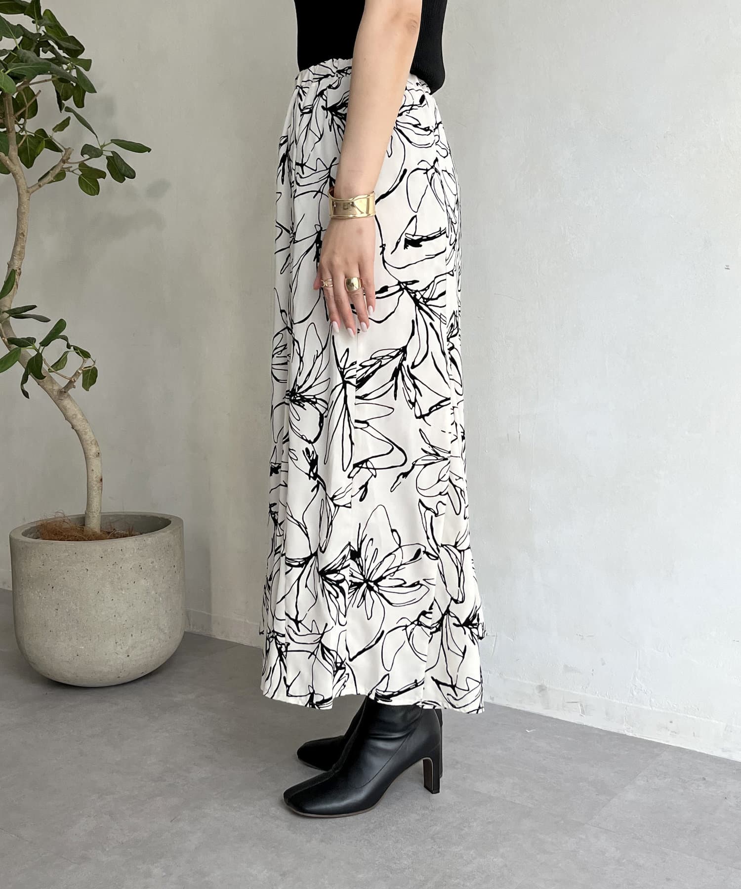 フロッキー線花柄マーメイドスカート