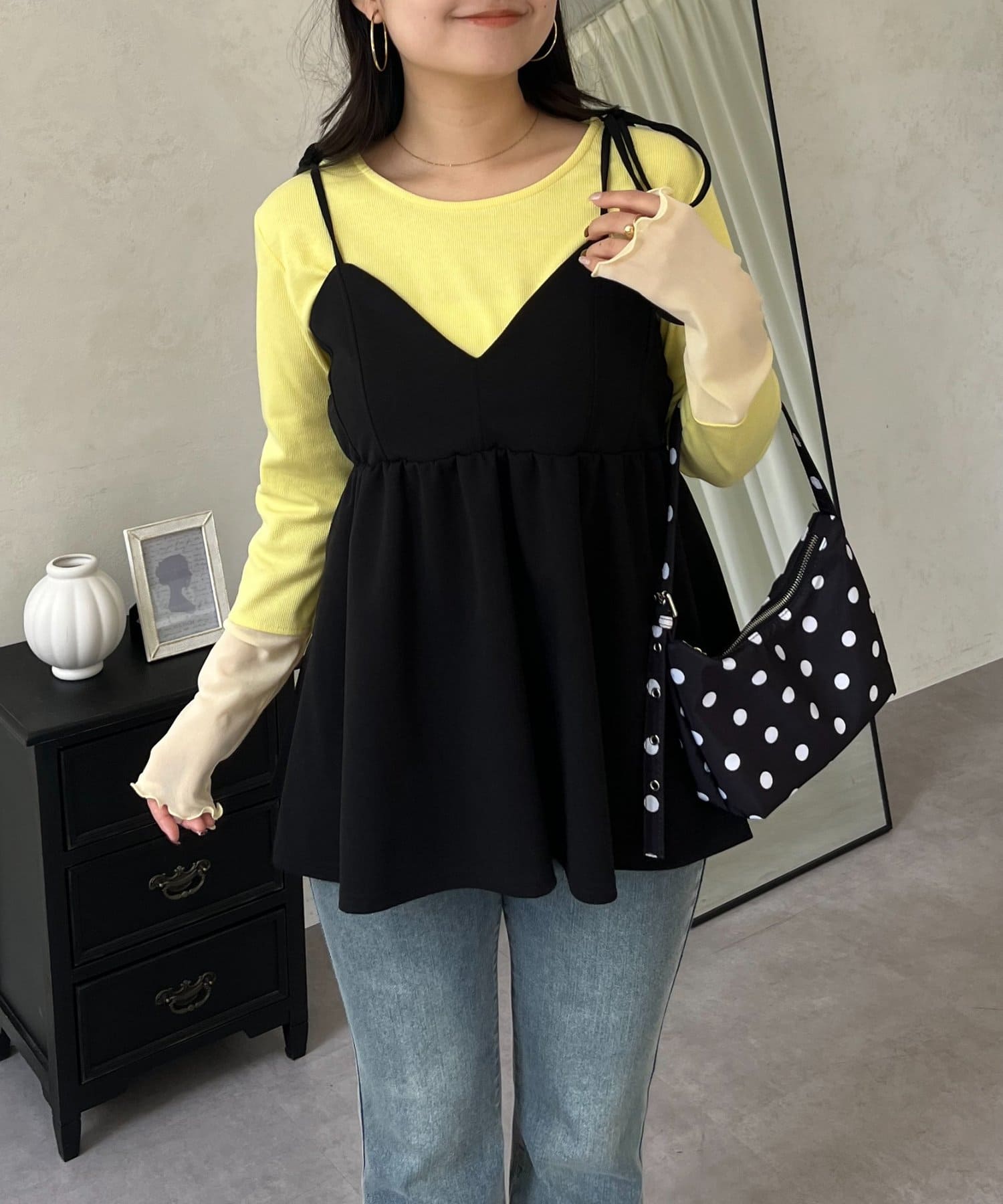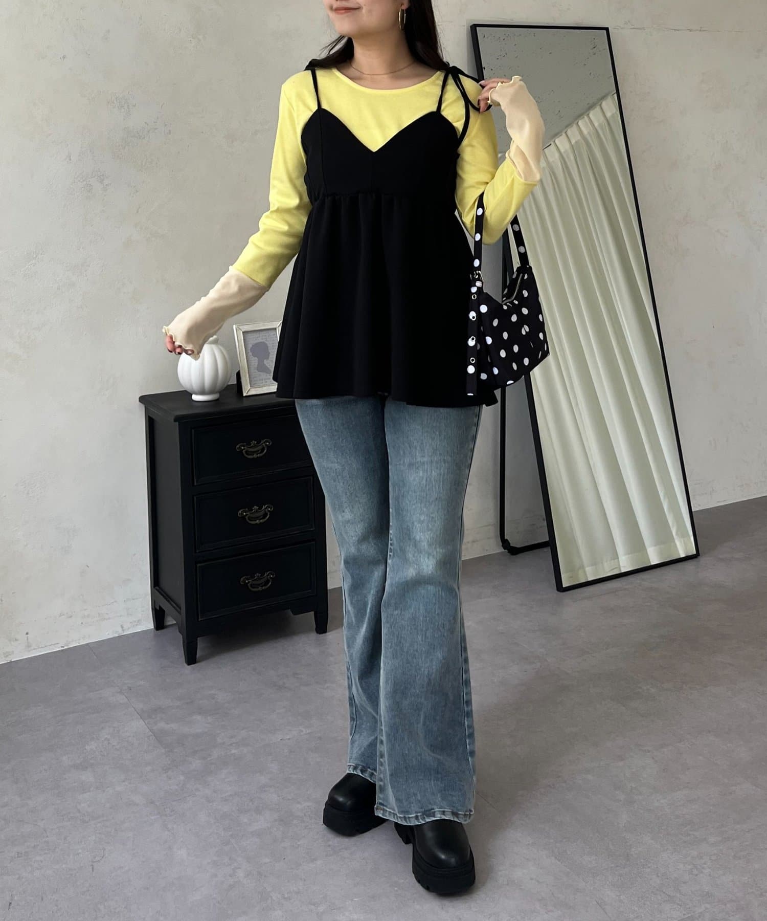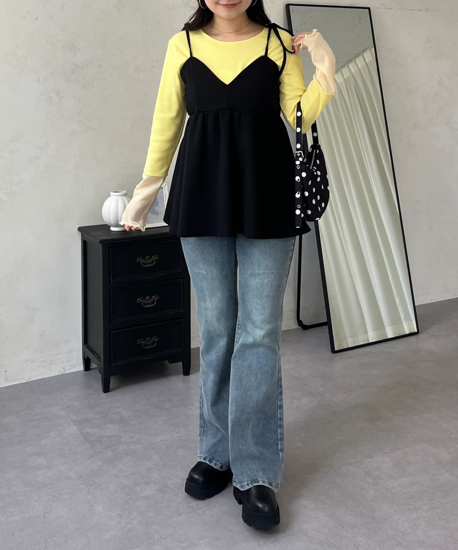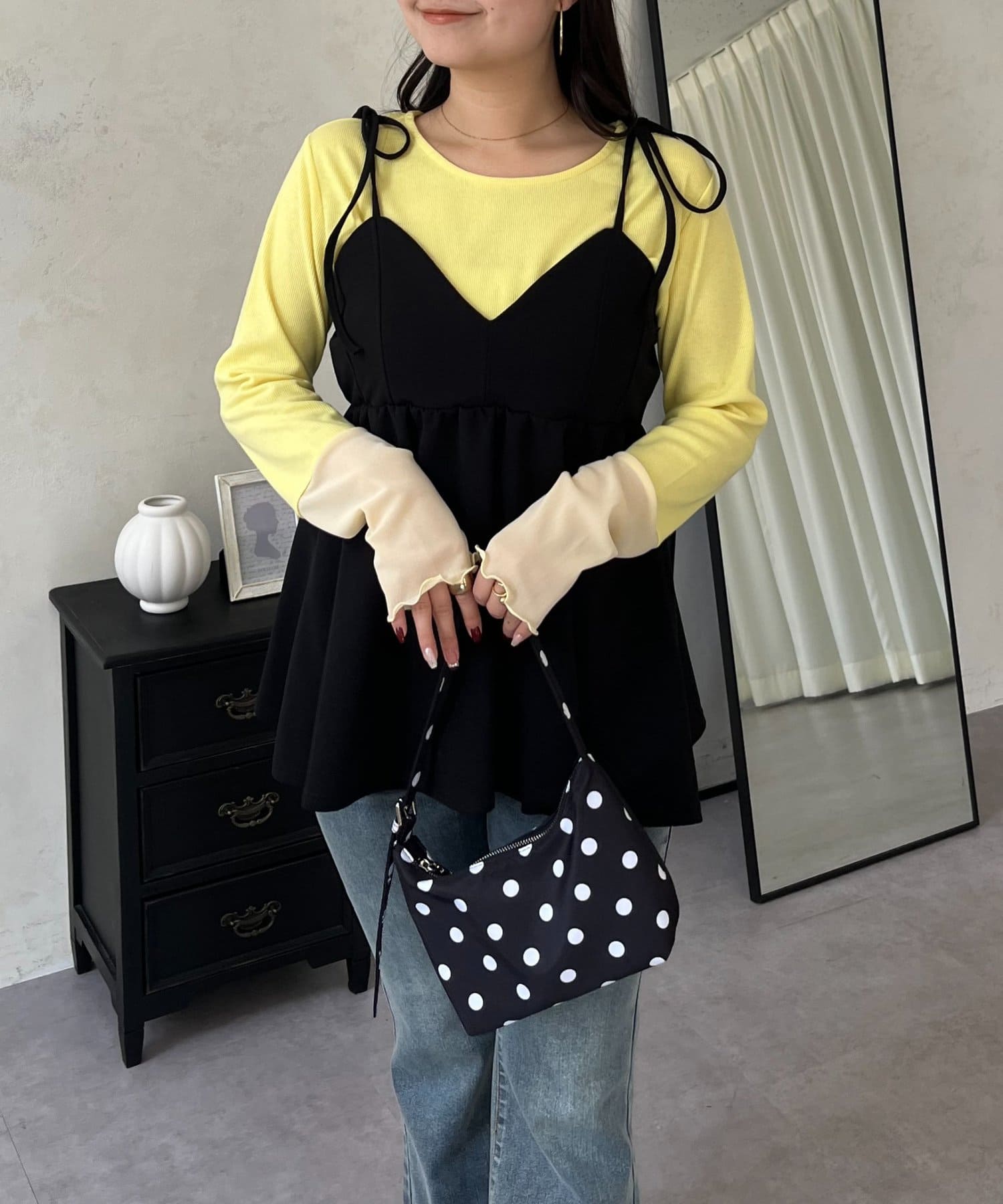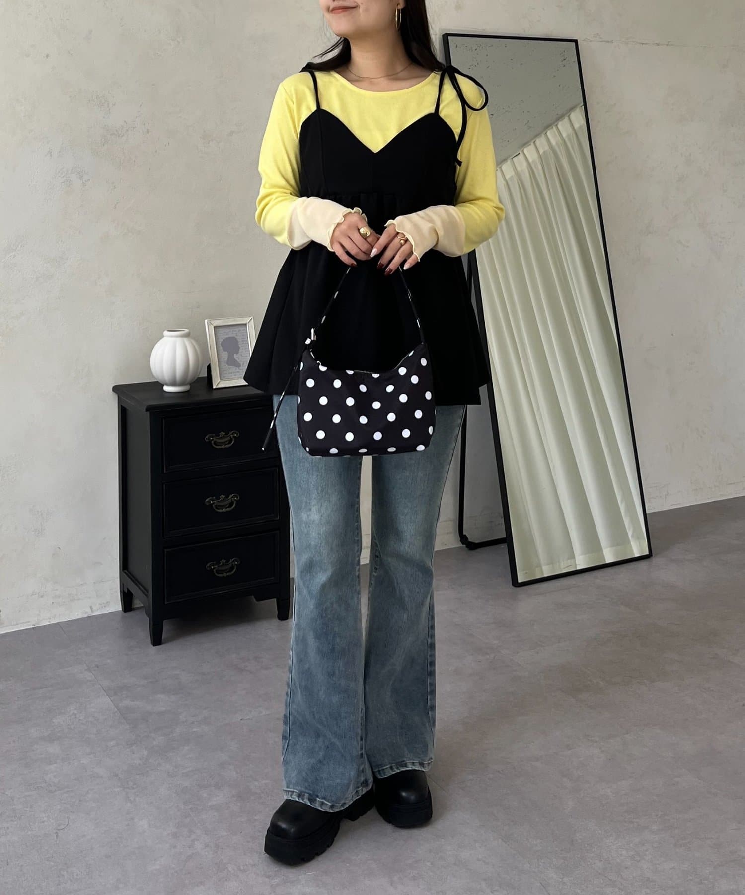 購入場所:パルクローゼット胸元も開いているので、ブラキャミソールと合わせたりしています。