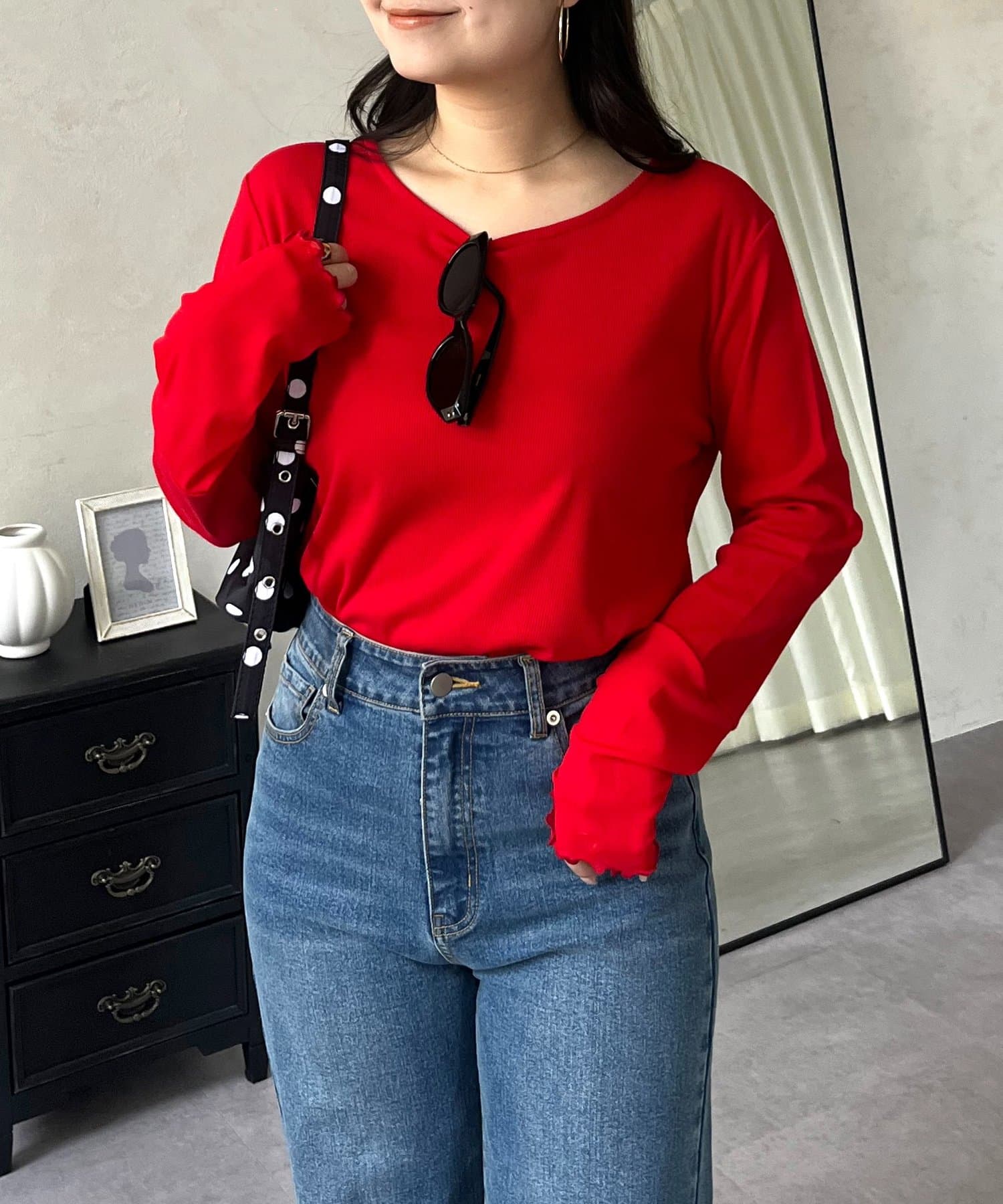 袖のシアーがとてもポイントになっていて、カーディガンと合わせた時に袖口からシアーを見せる様に着るととてもかわいいです。