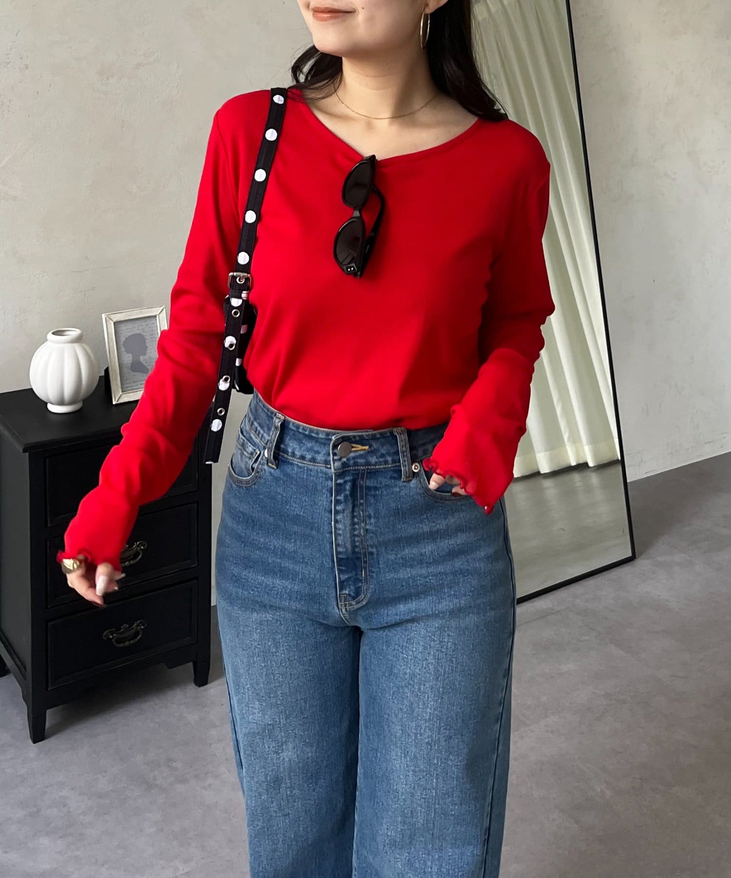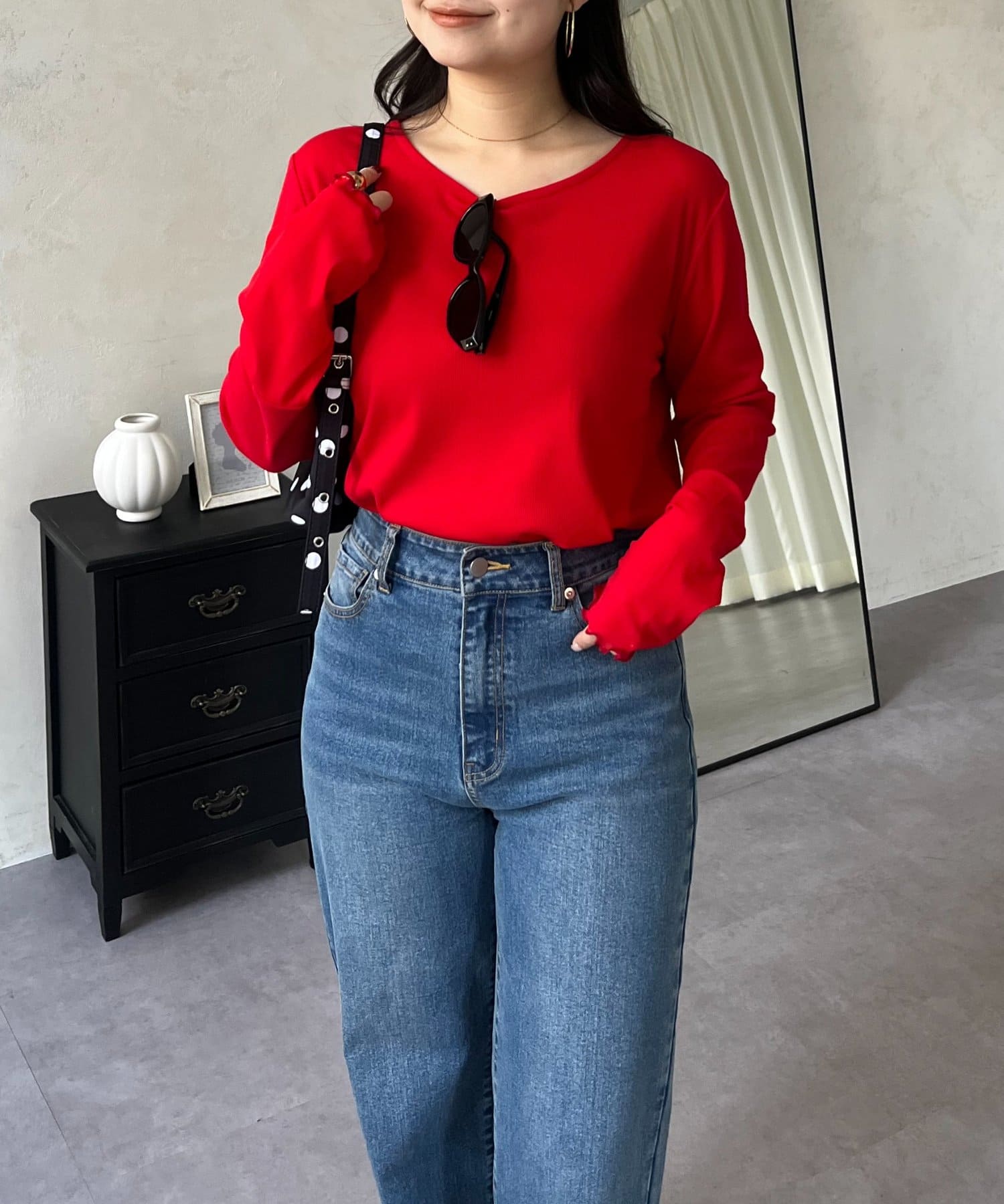 購入場所:パルクローゼット首の開き具合が丁度よくレイヤードしやすいです。伸縮性もあり着心地も良いです。高身長なので、もう少し着丈感が欲しかったかな。