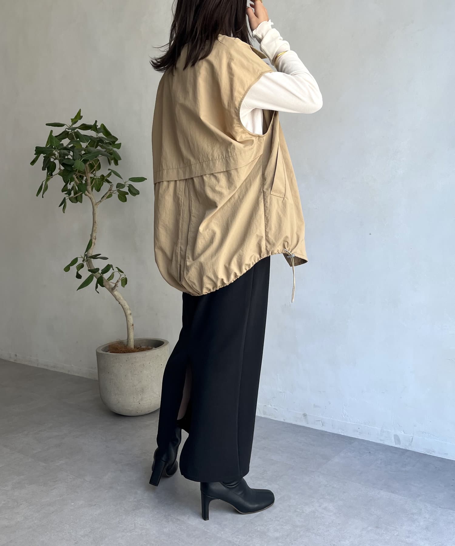 ●裾の部分が絞れる仕様のためその日の気分に合わせて印象を変えられます!