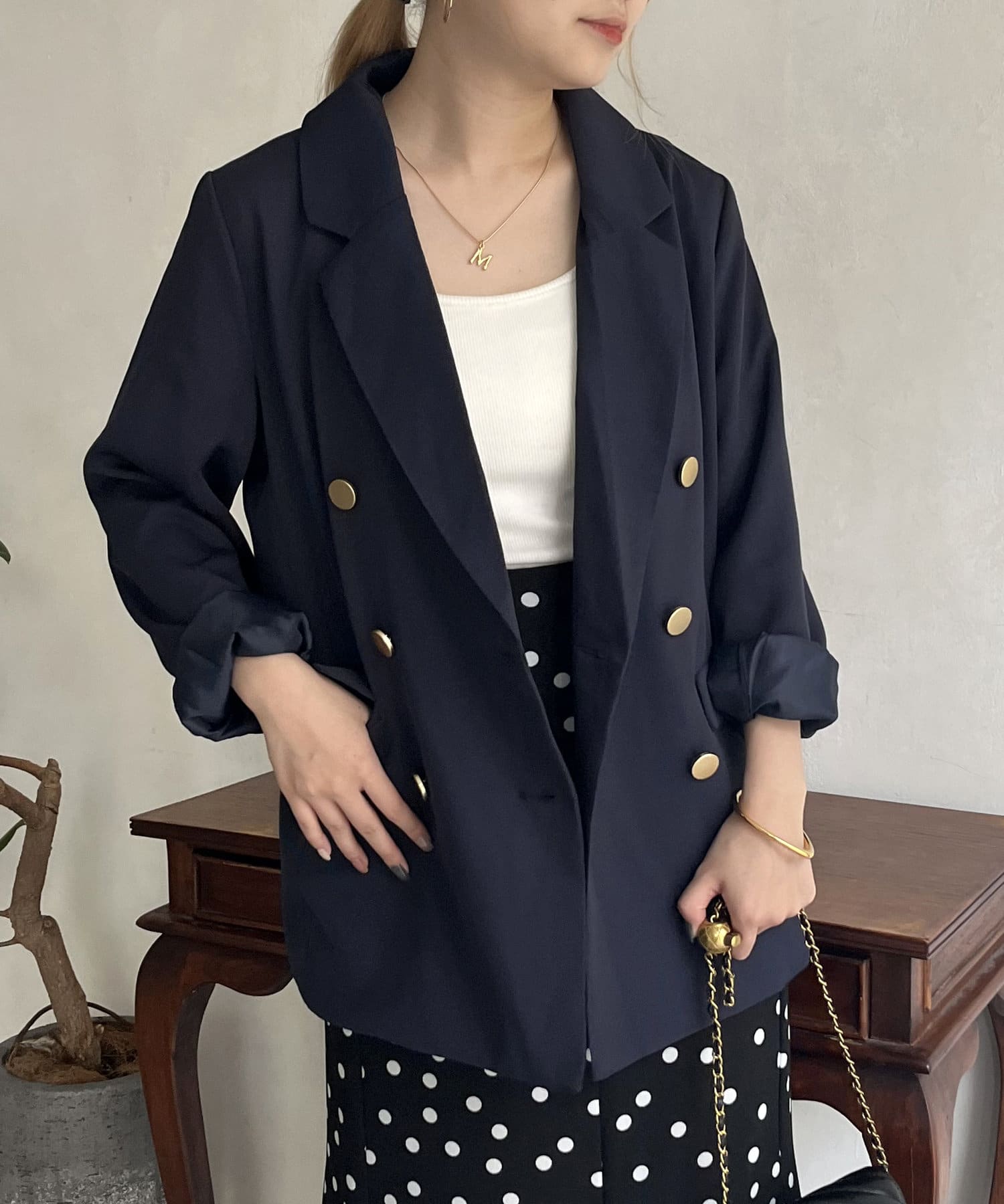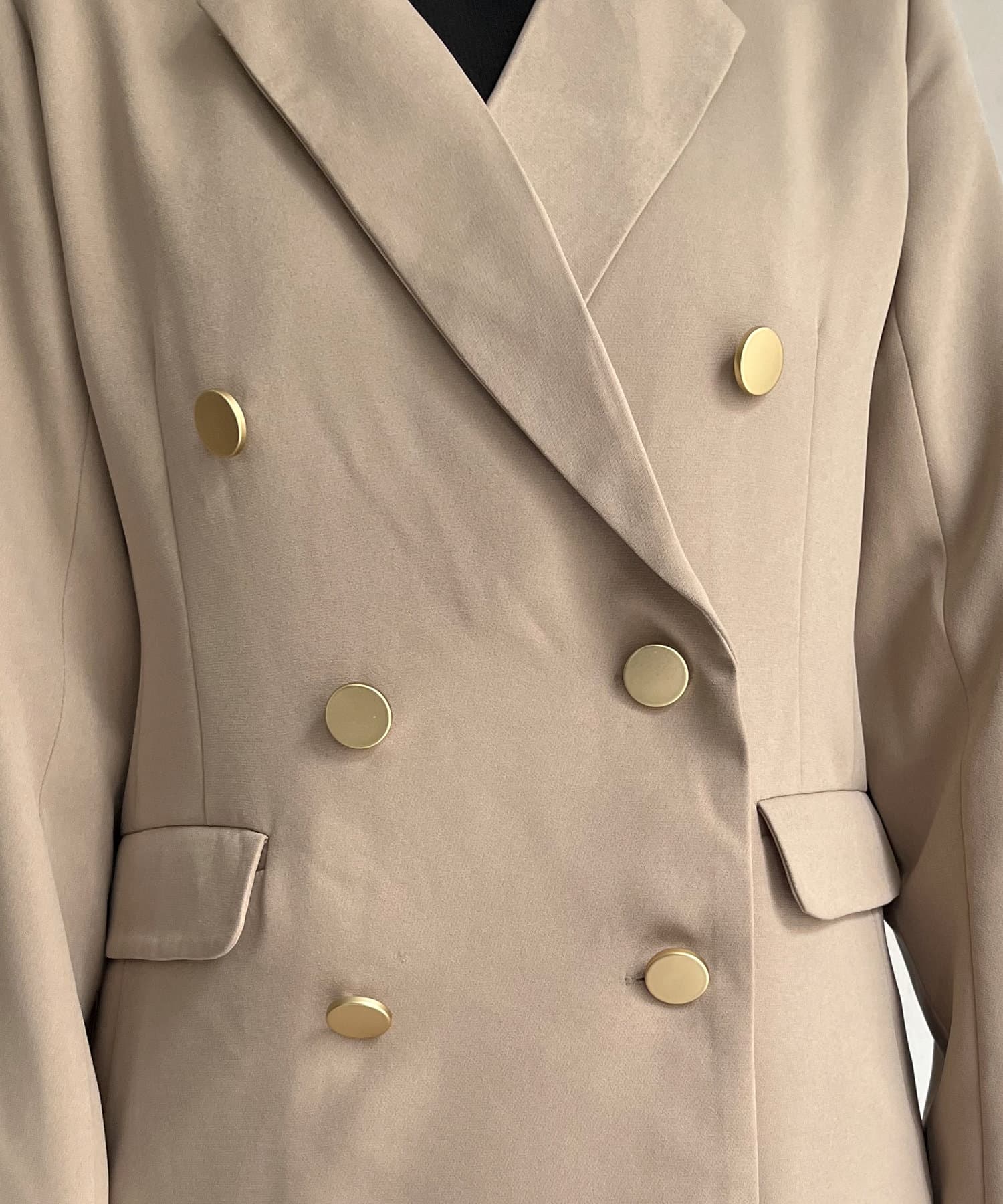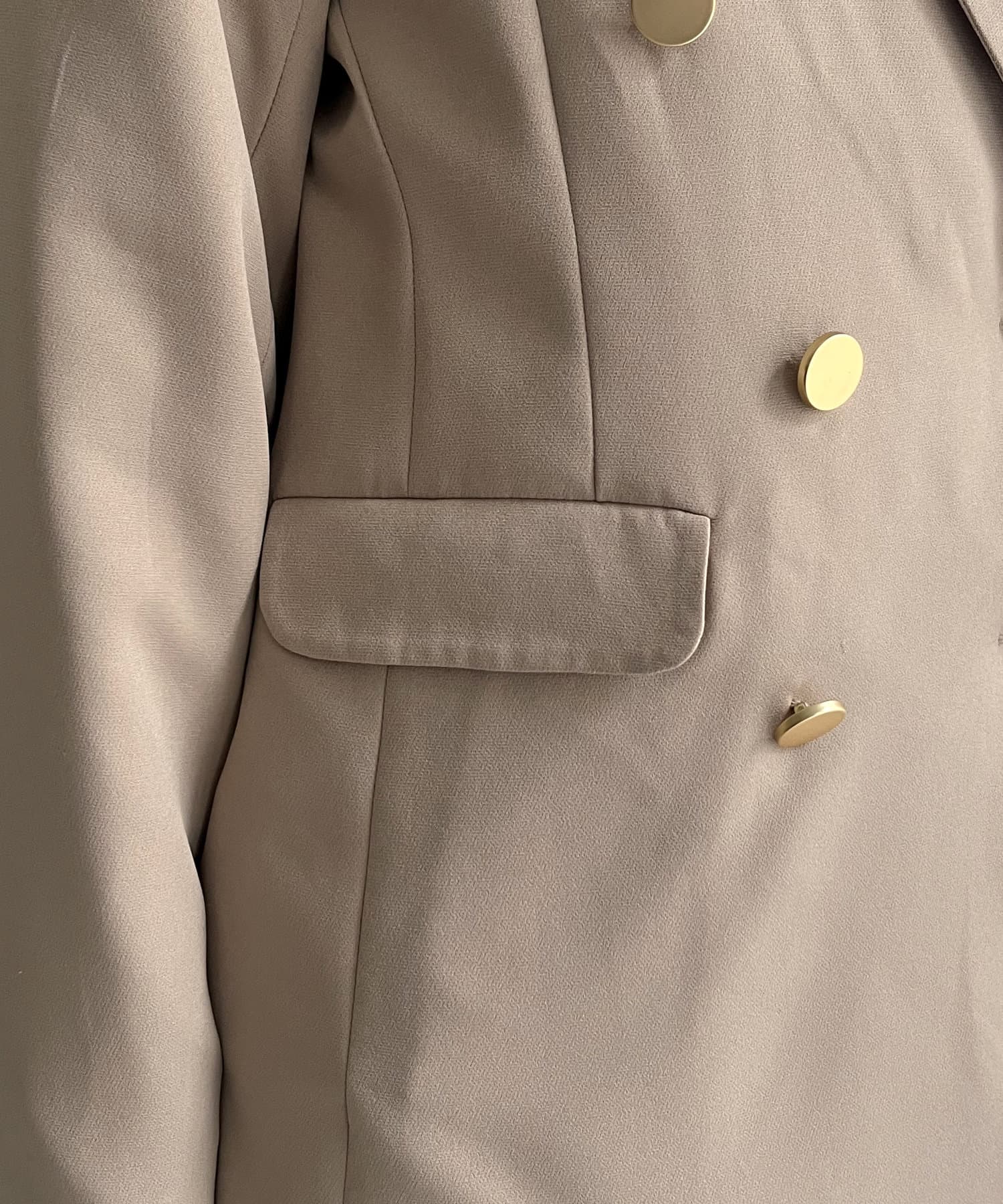 ゴールドのWボタンが上品見えするジャケット