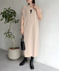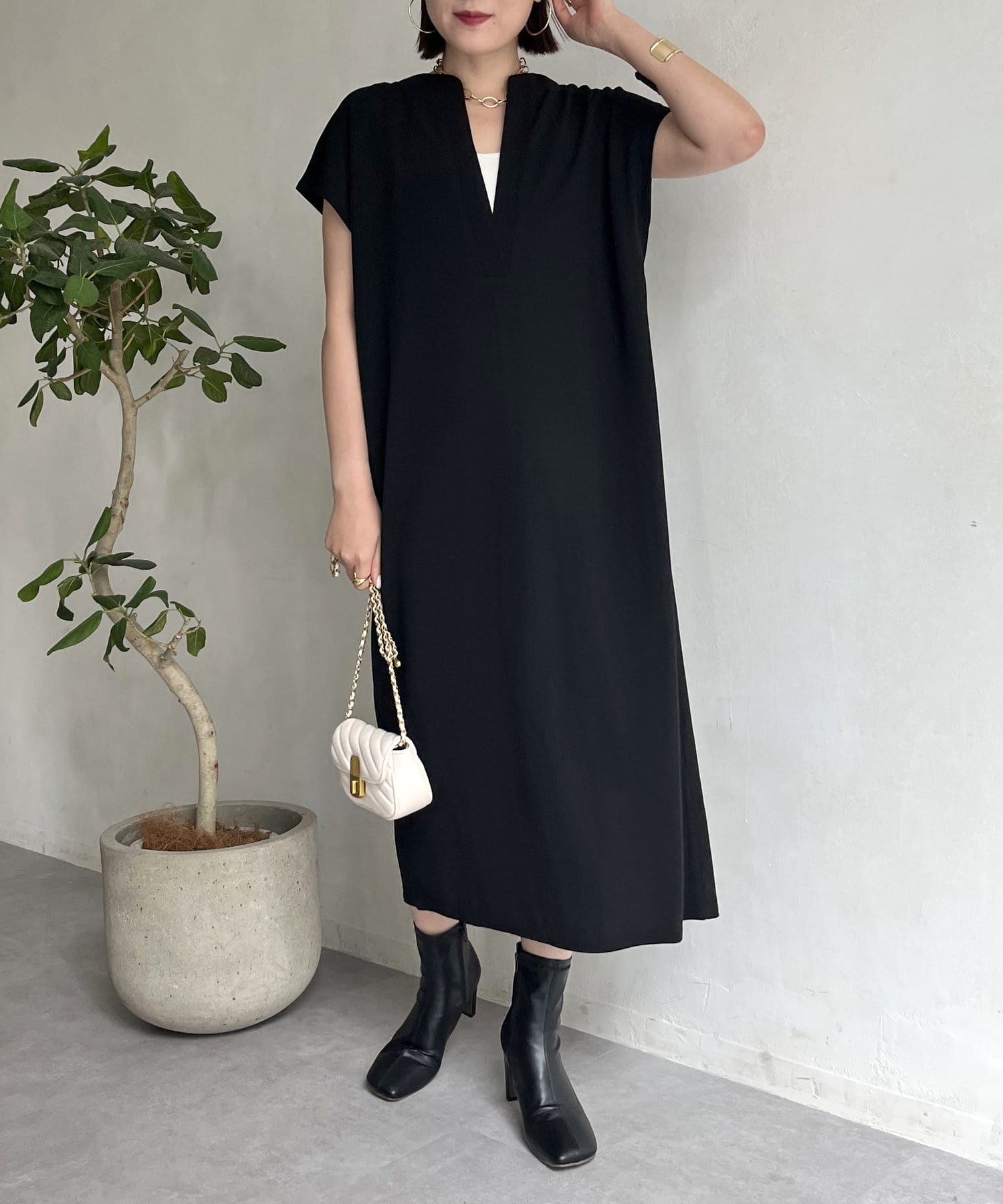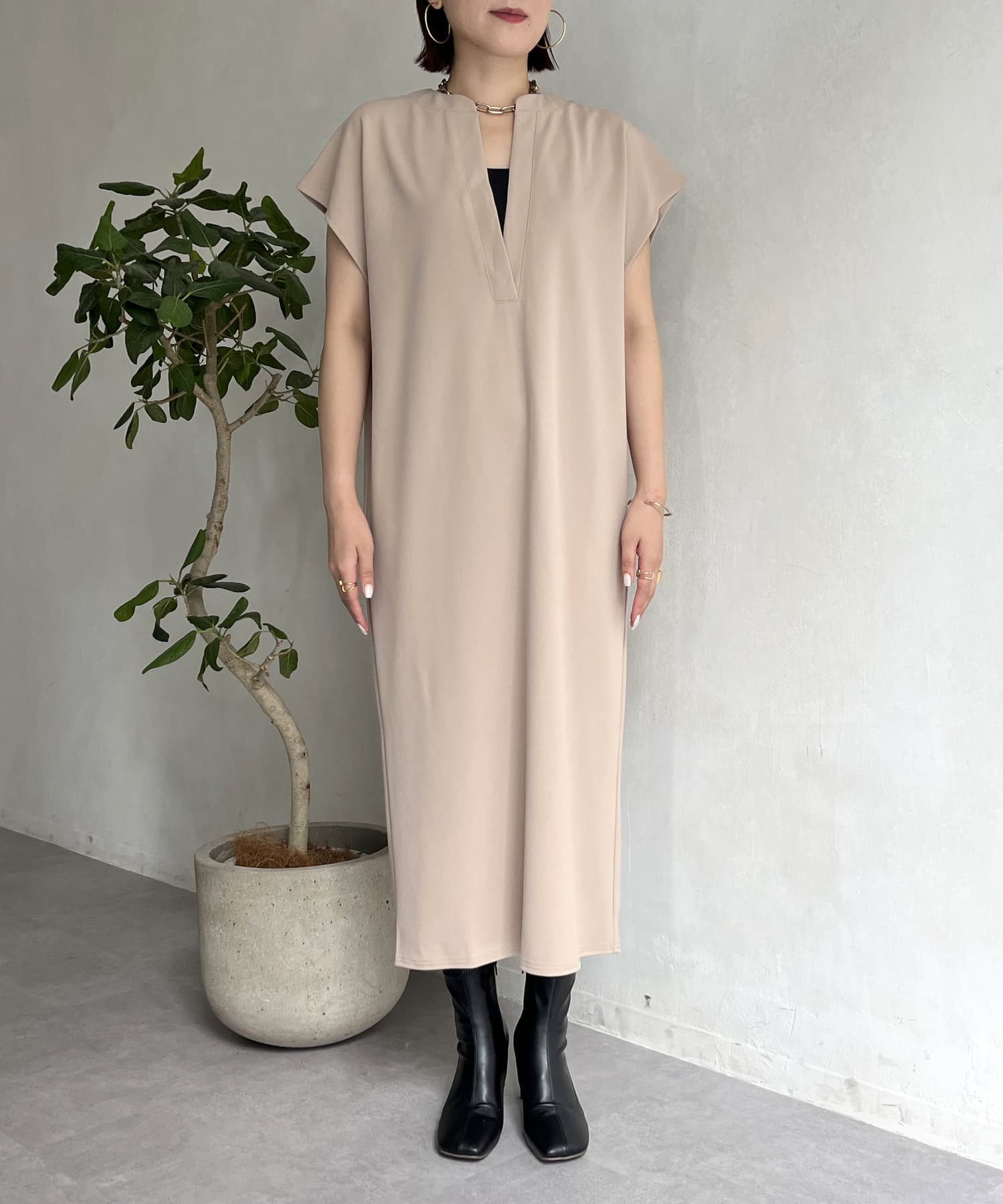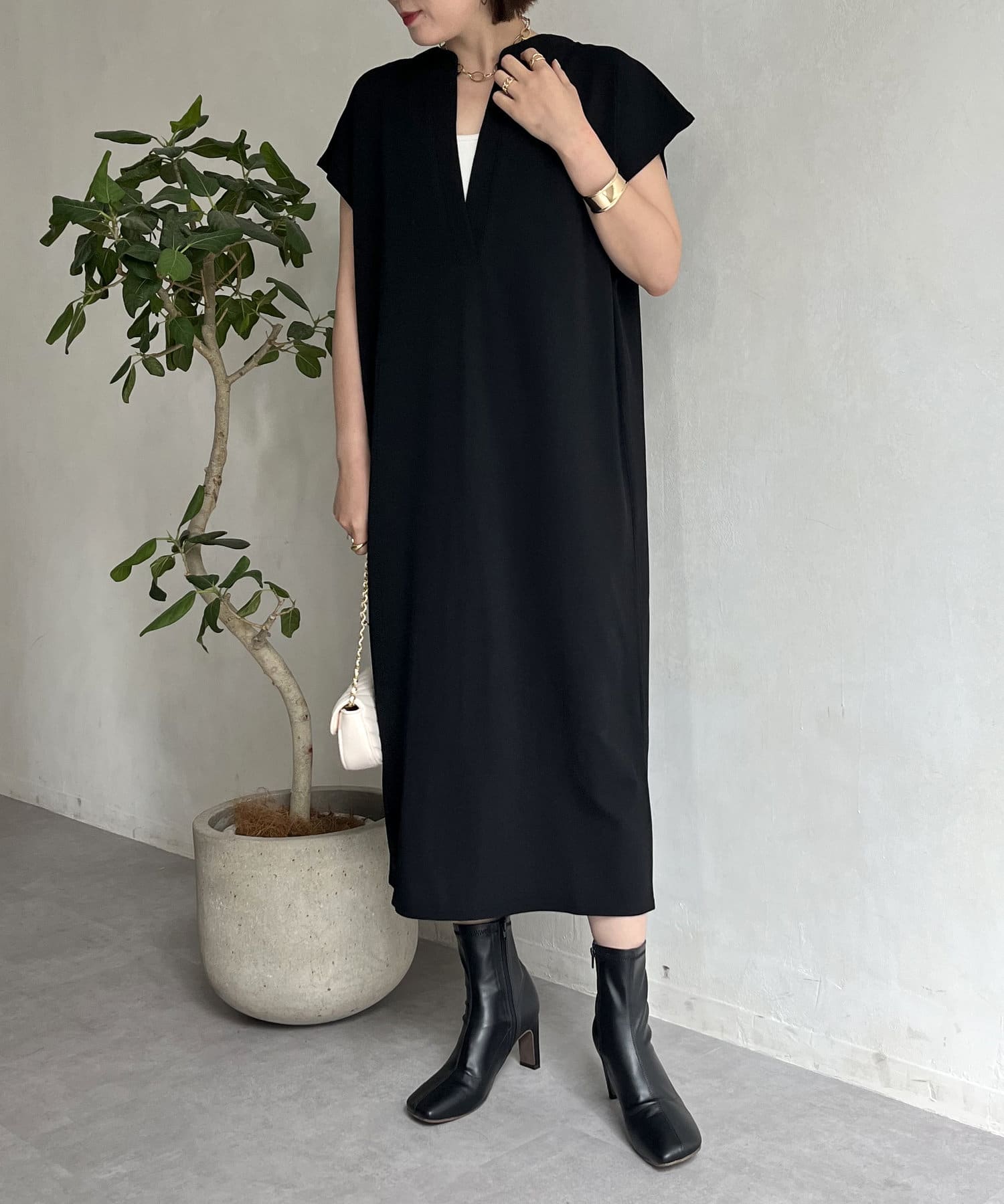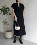 ストレッチジョーゼットキーネック / Vネック/ 大人ワンピ