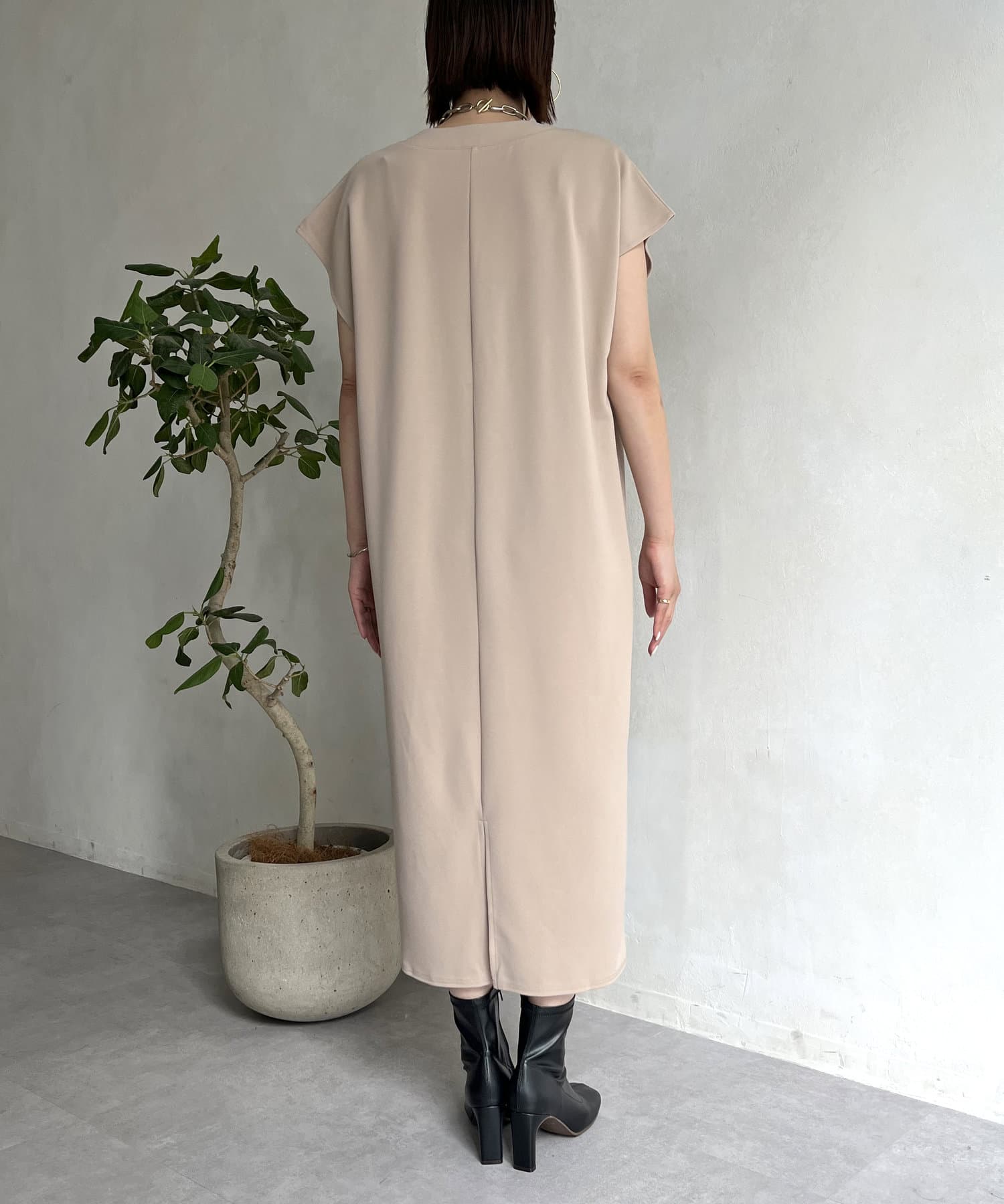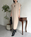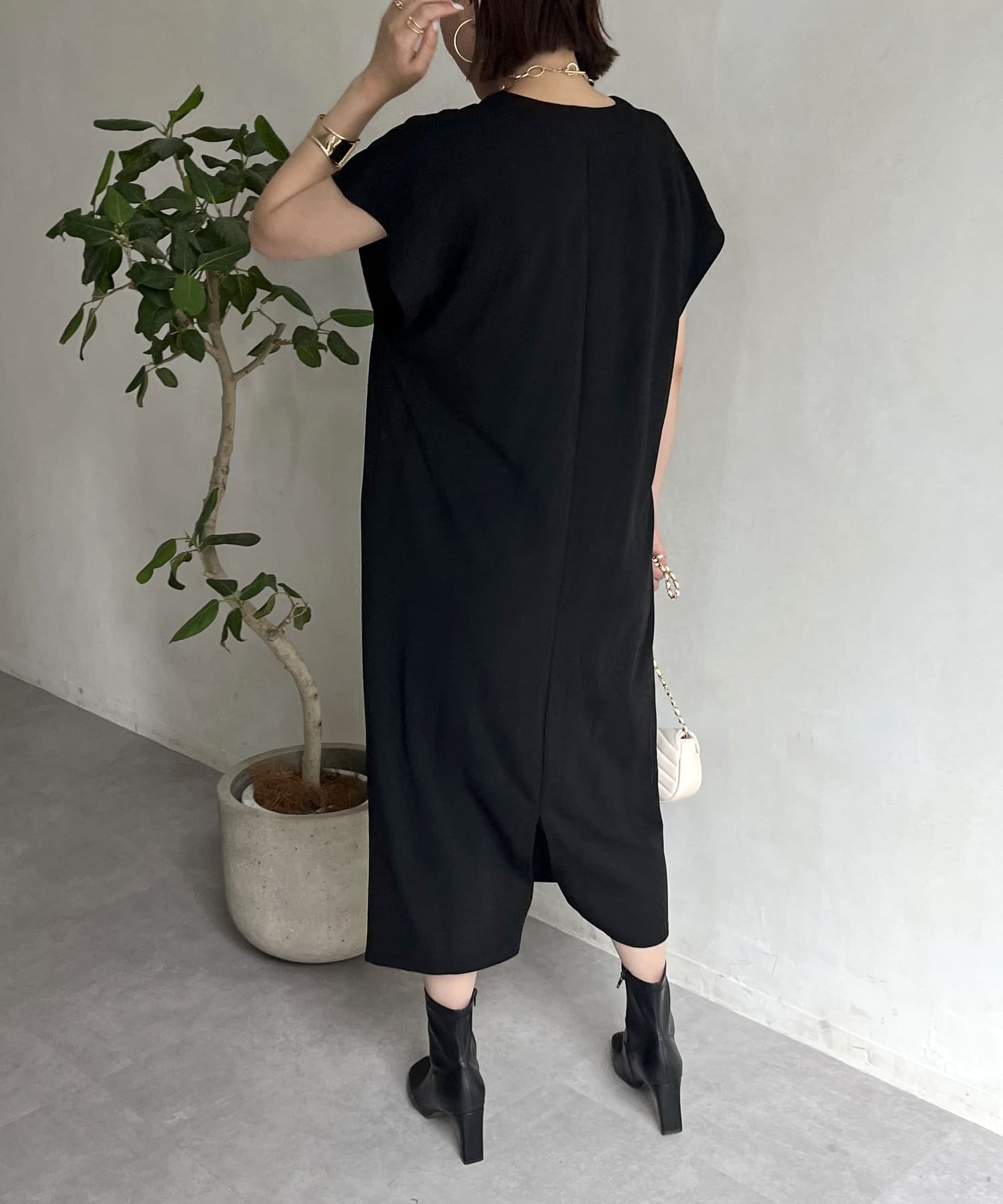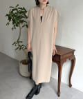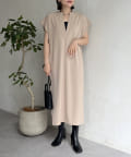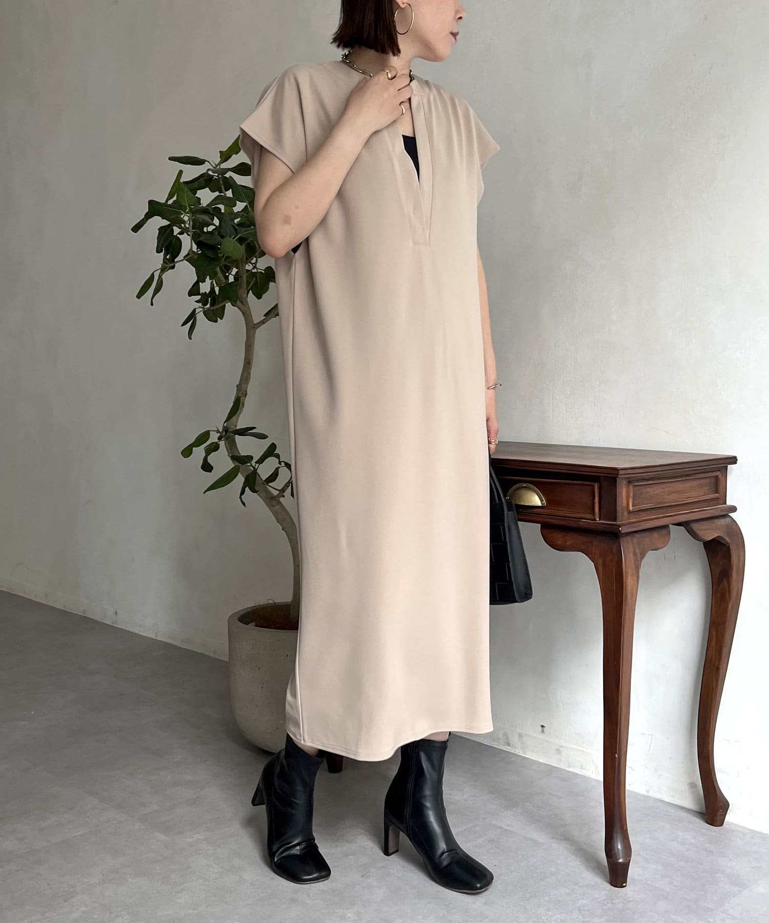ストレッチジョーゼットキーネック / Vネック/ 大人ワンピ