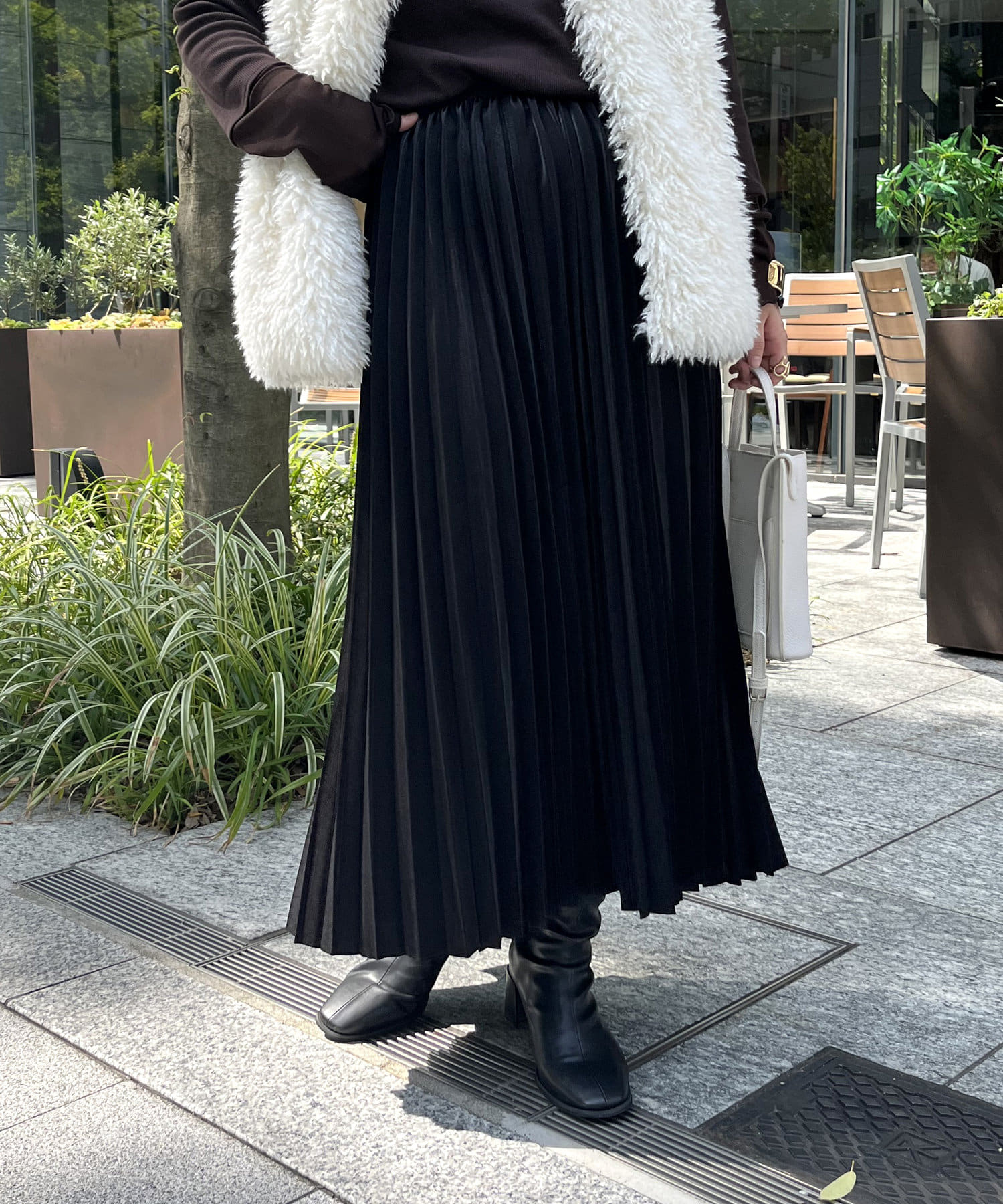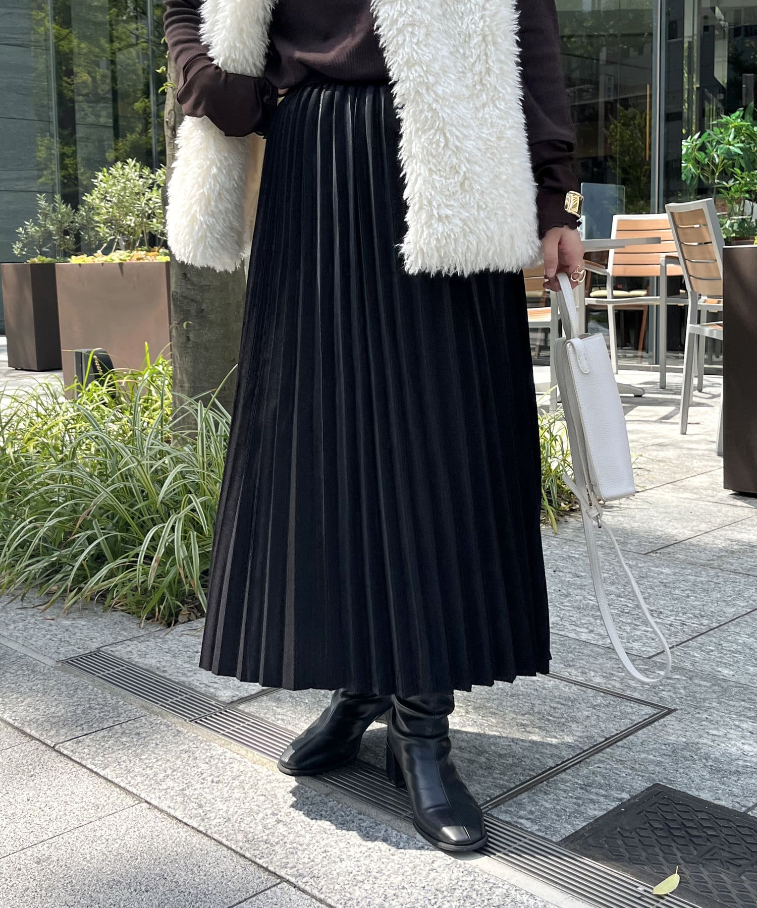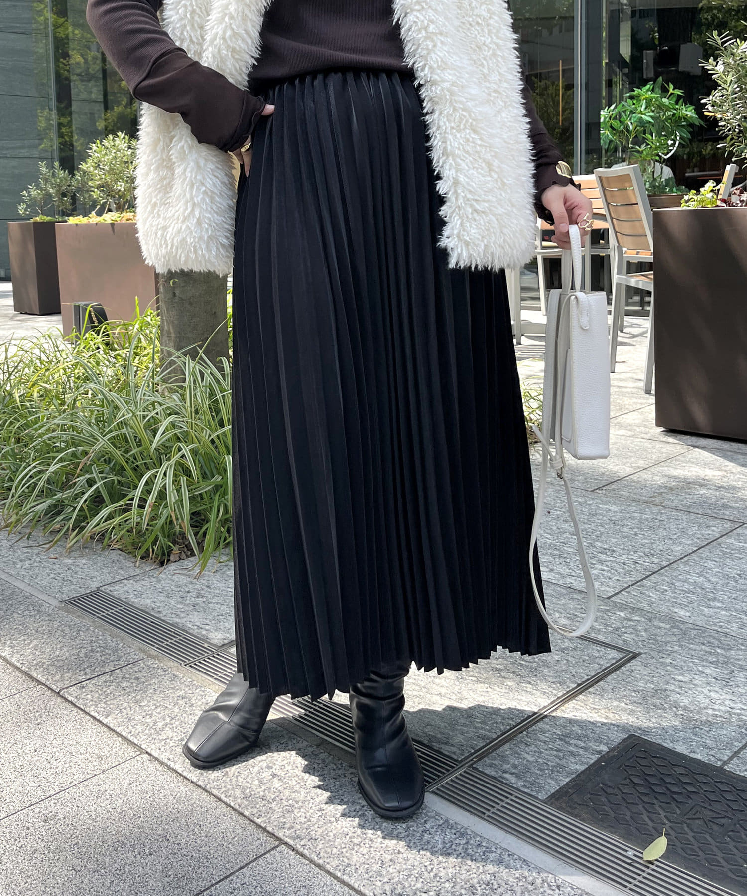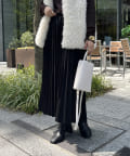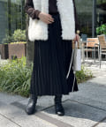 光沢感とプリーツが女性らしさを演出してくれるスカート