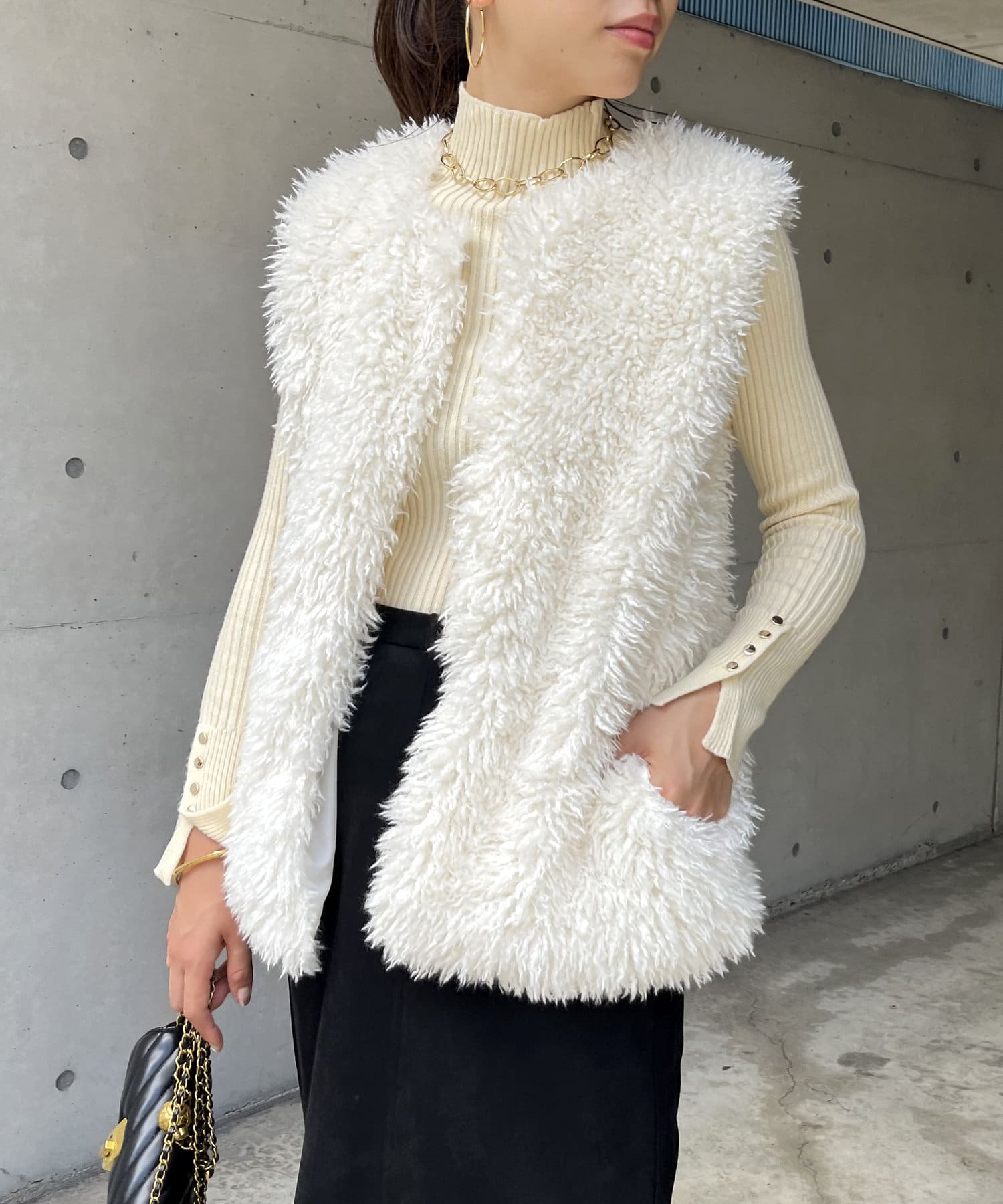 ●ふわふわのファーが一気に旬ムードが高まるベスト!