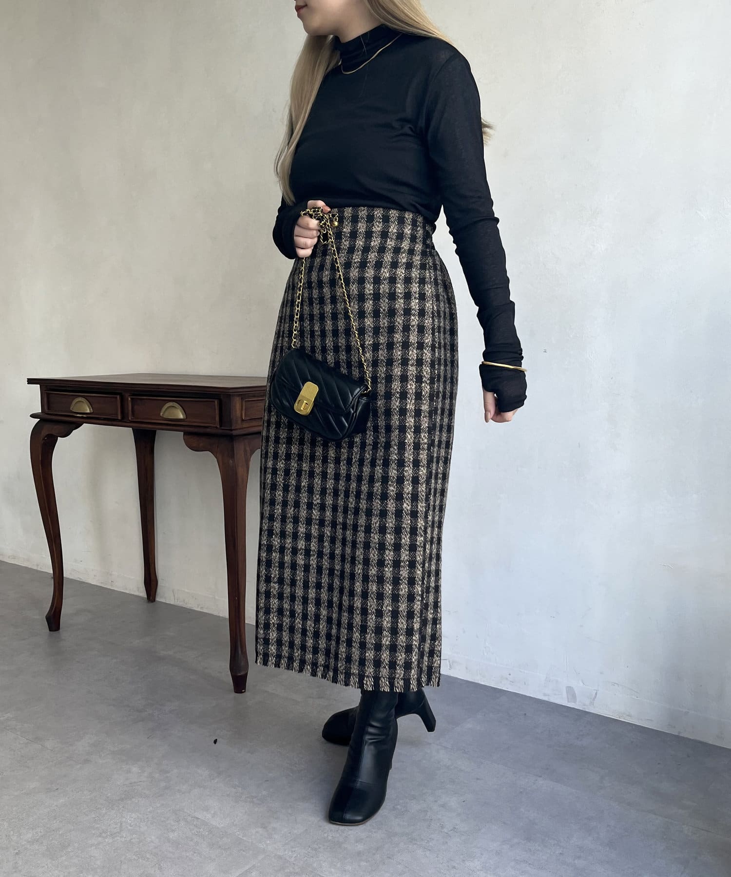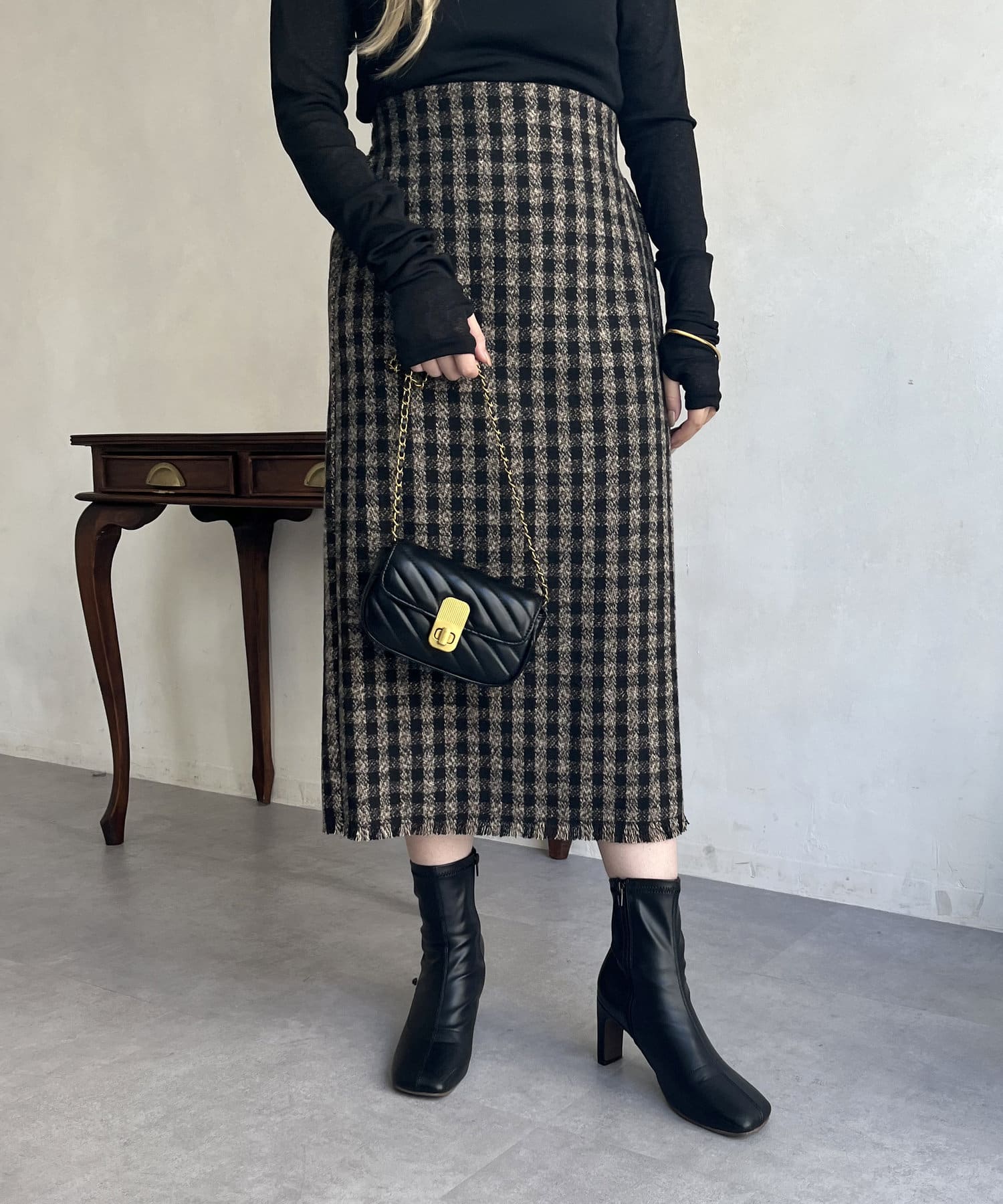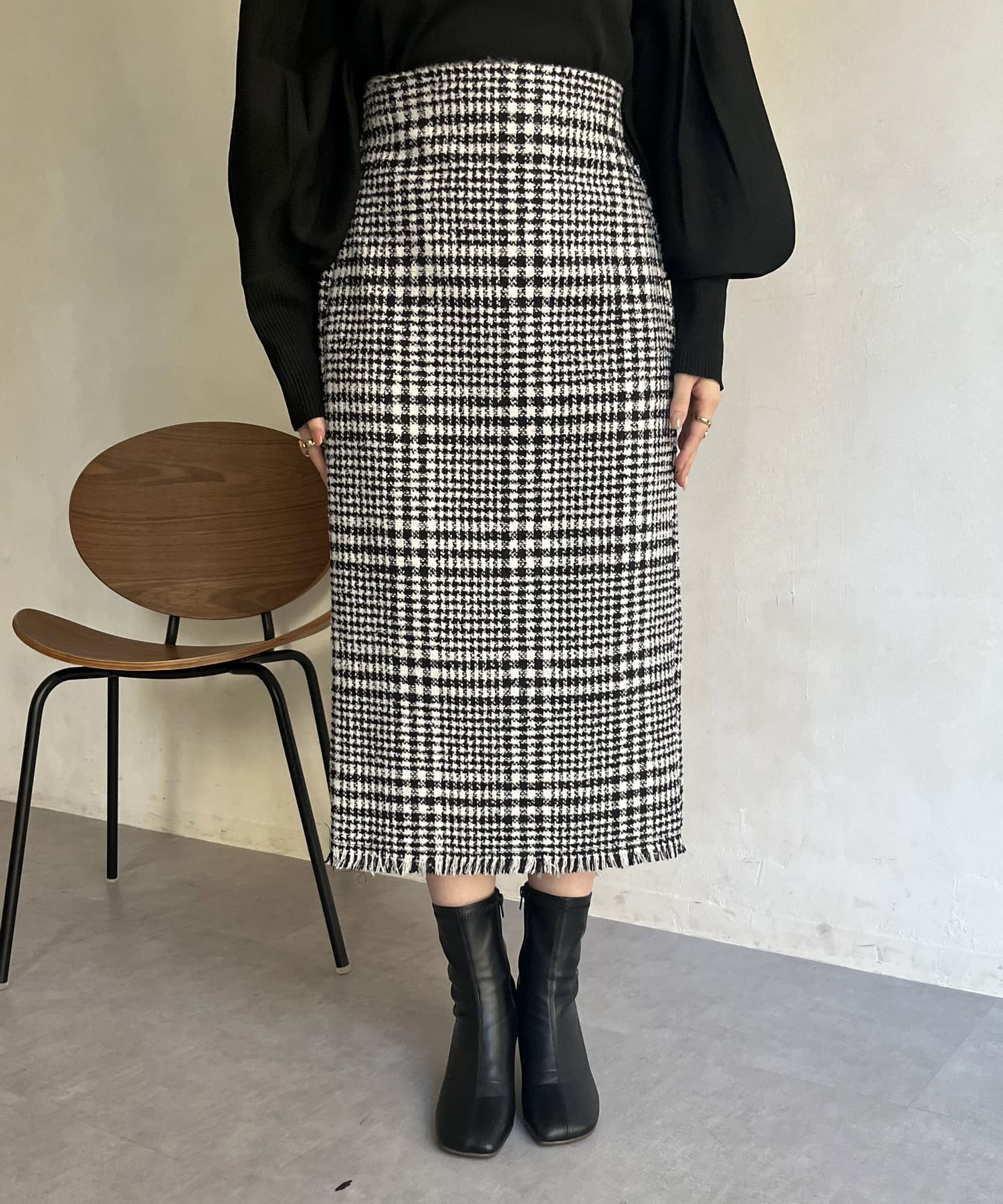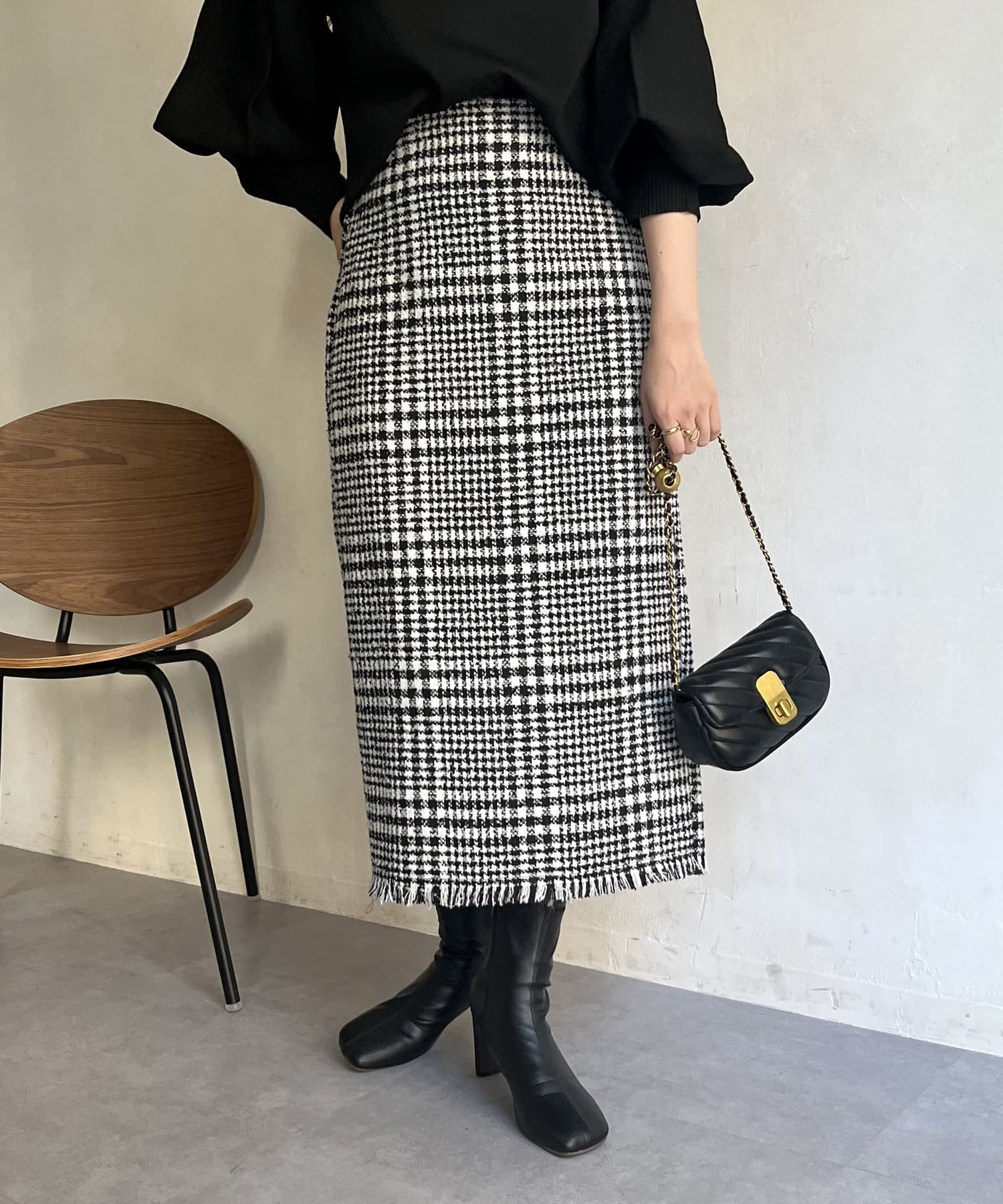 ツイードチェックが一気にシーズンムードにしてくれるタイトスカート