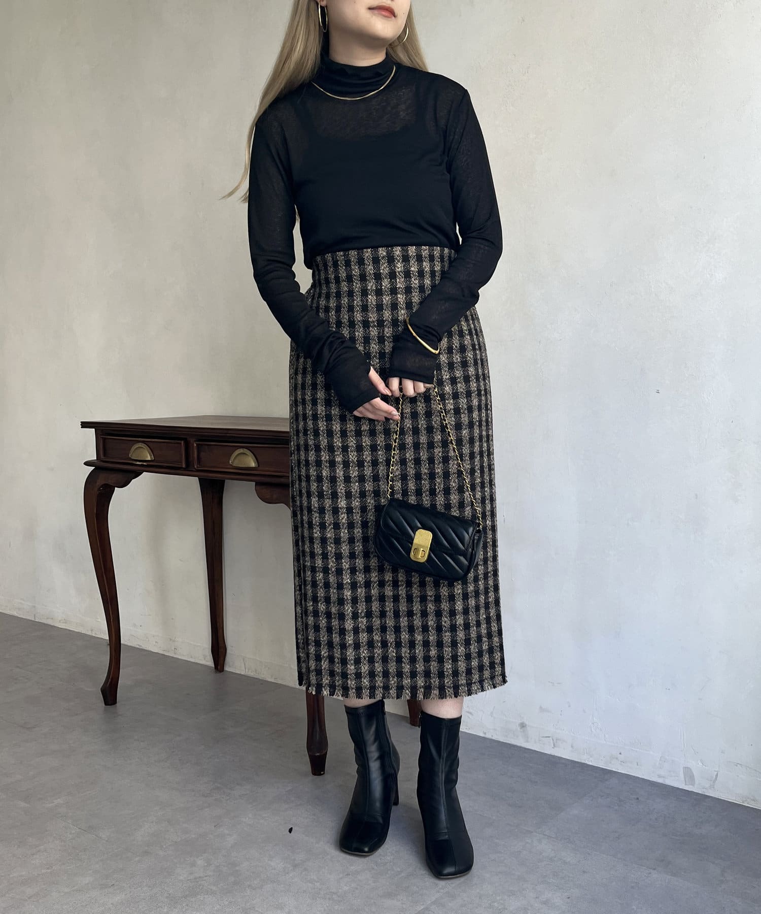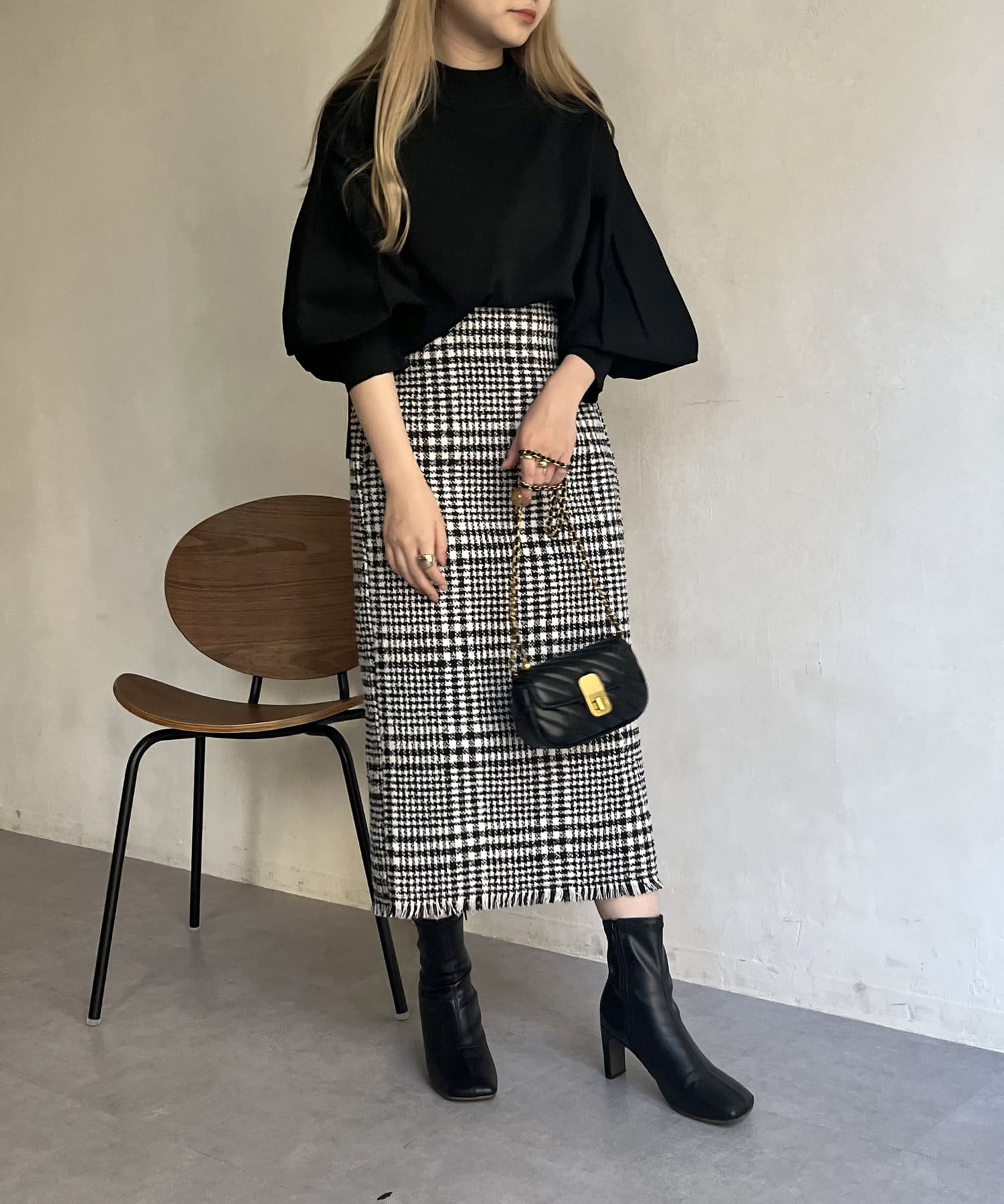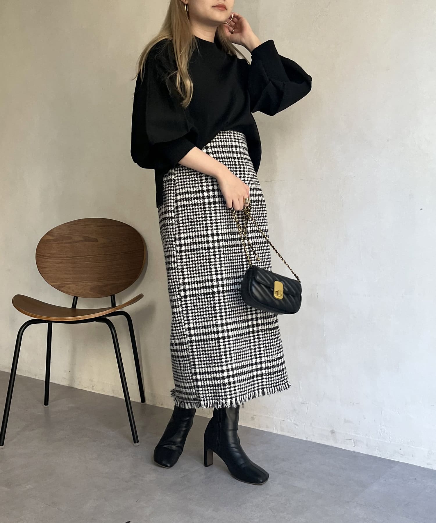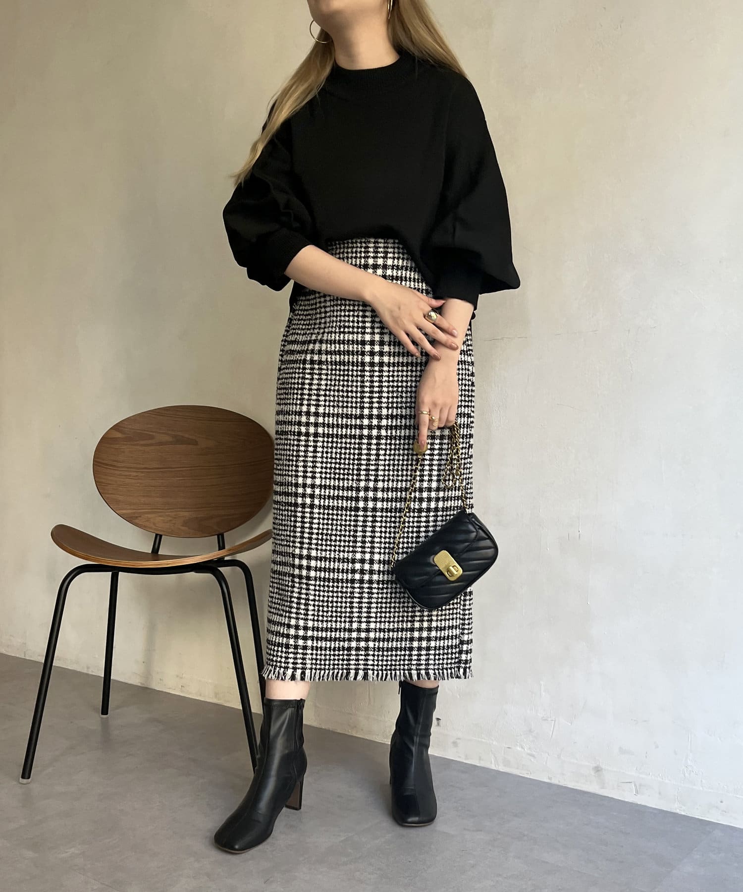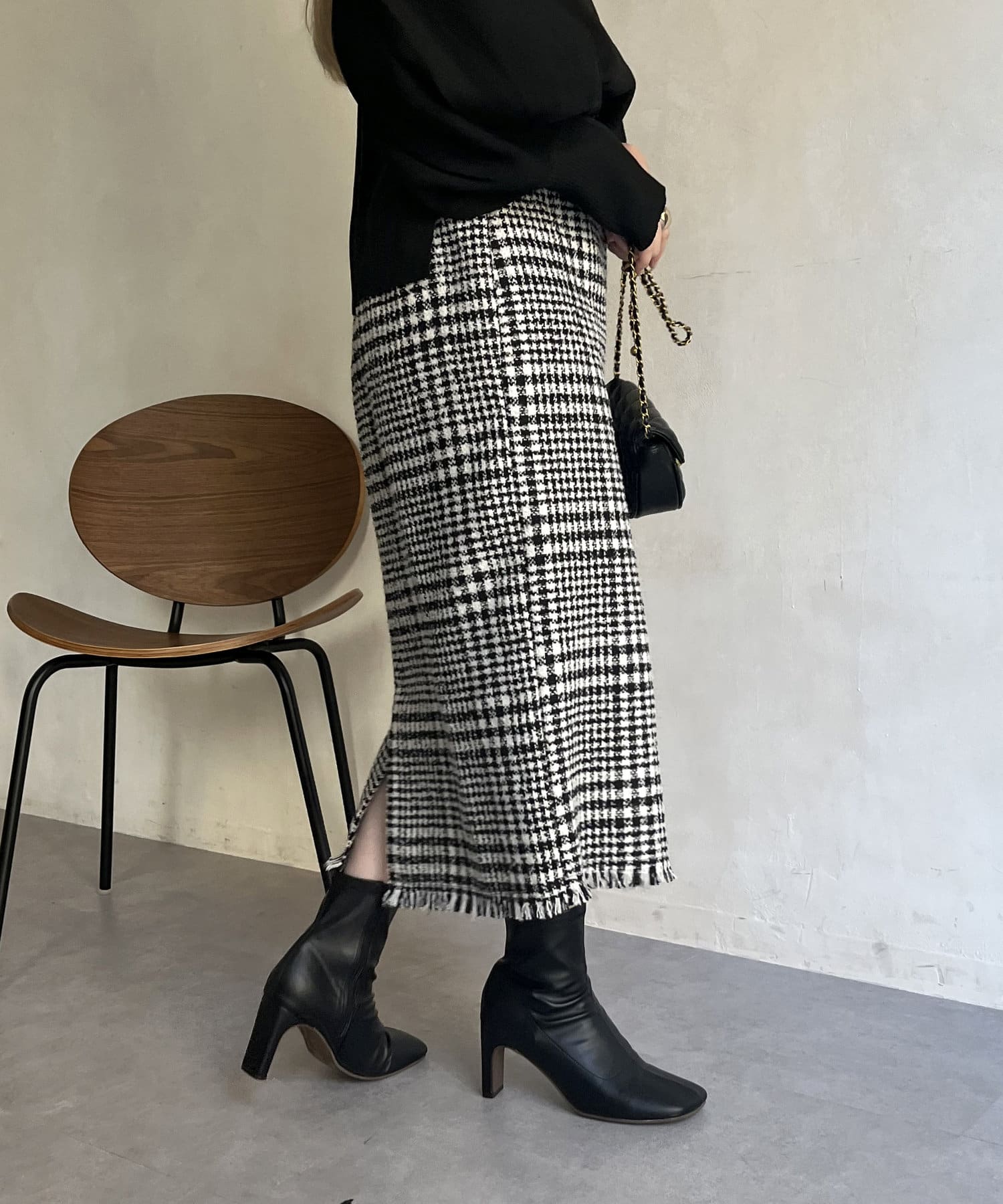 ツイードチェックが一気にシーズンムードにしてくれるタイトスカート