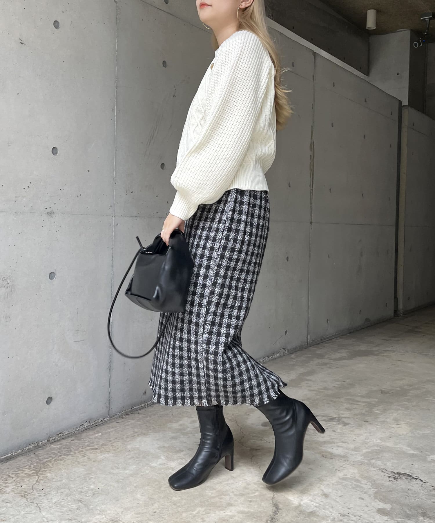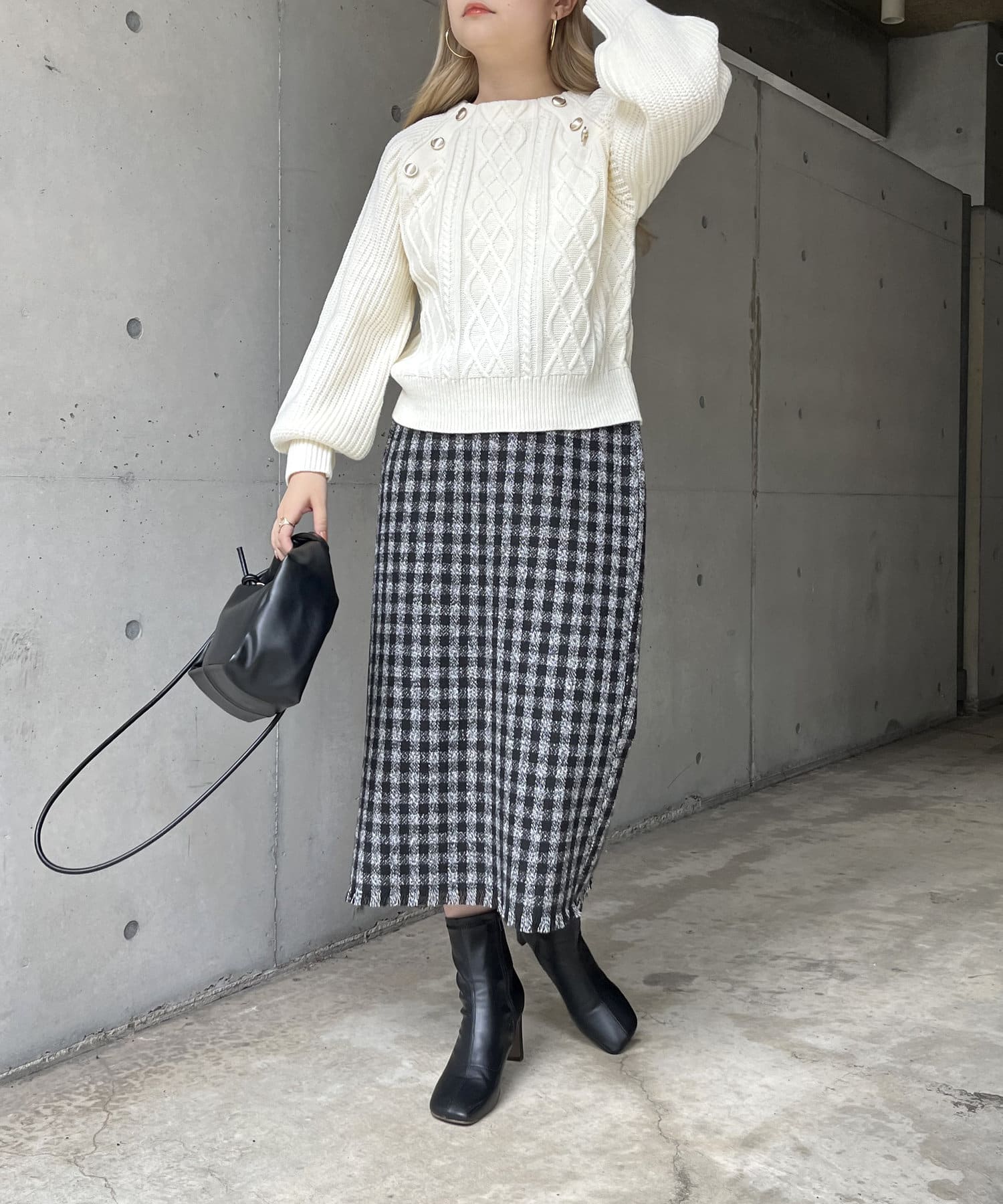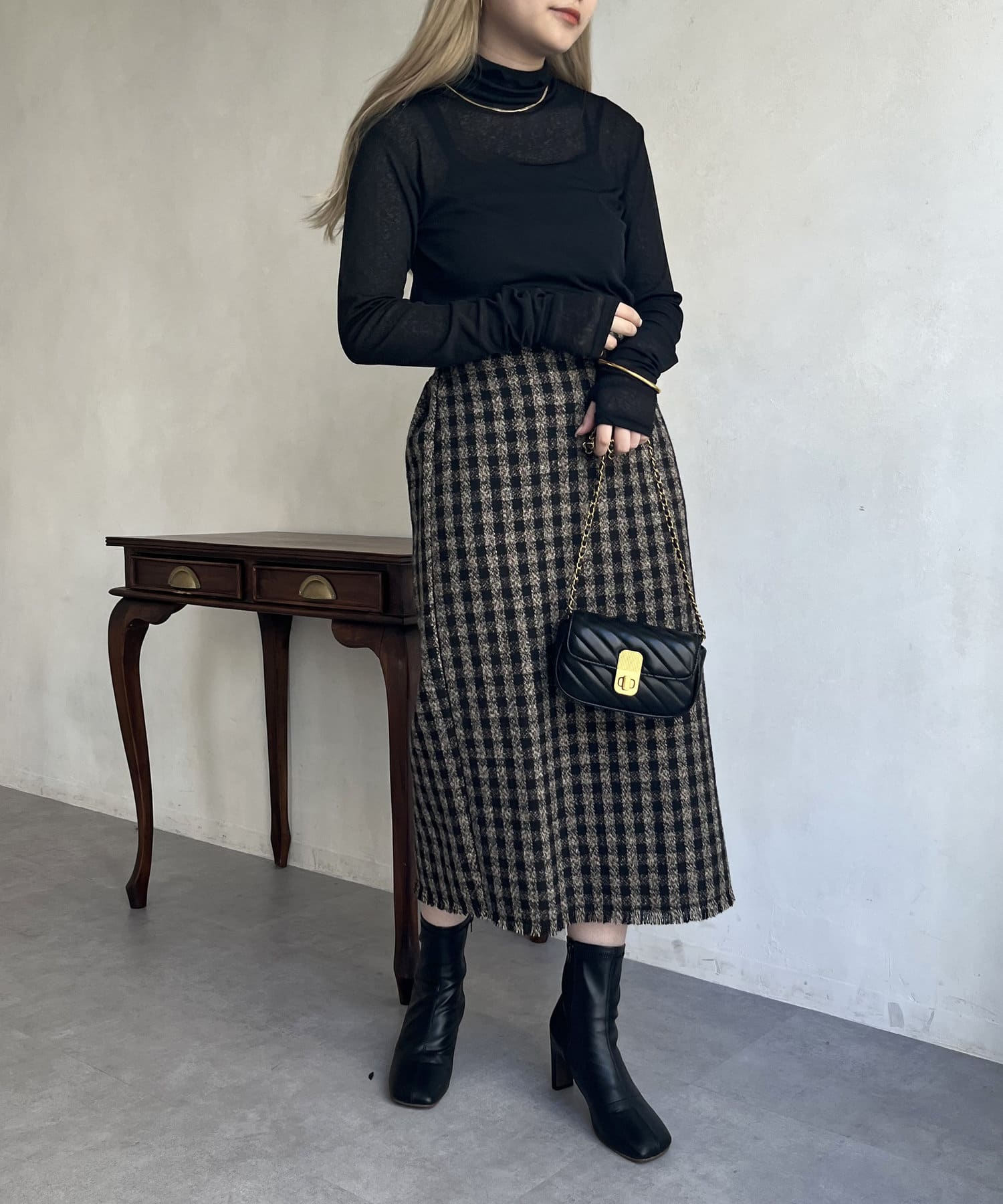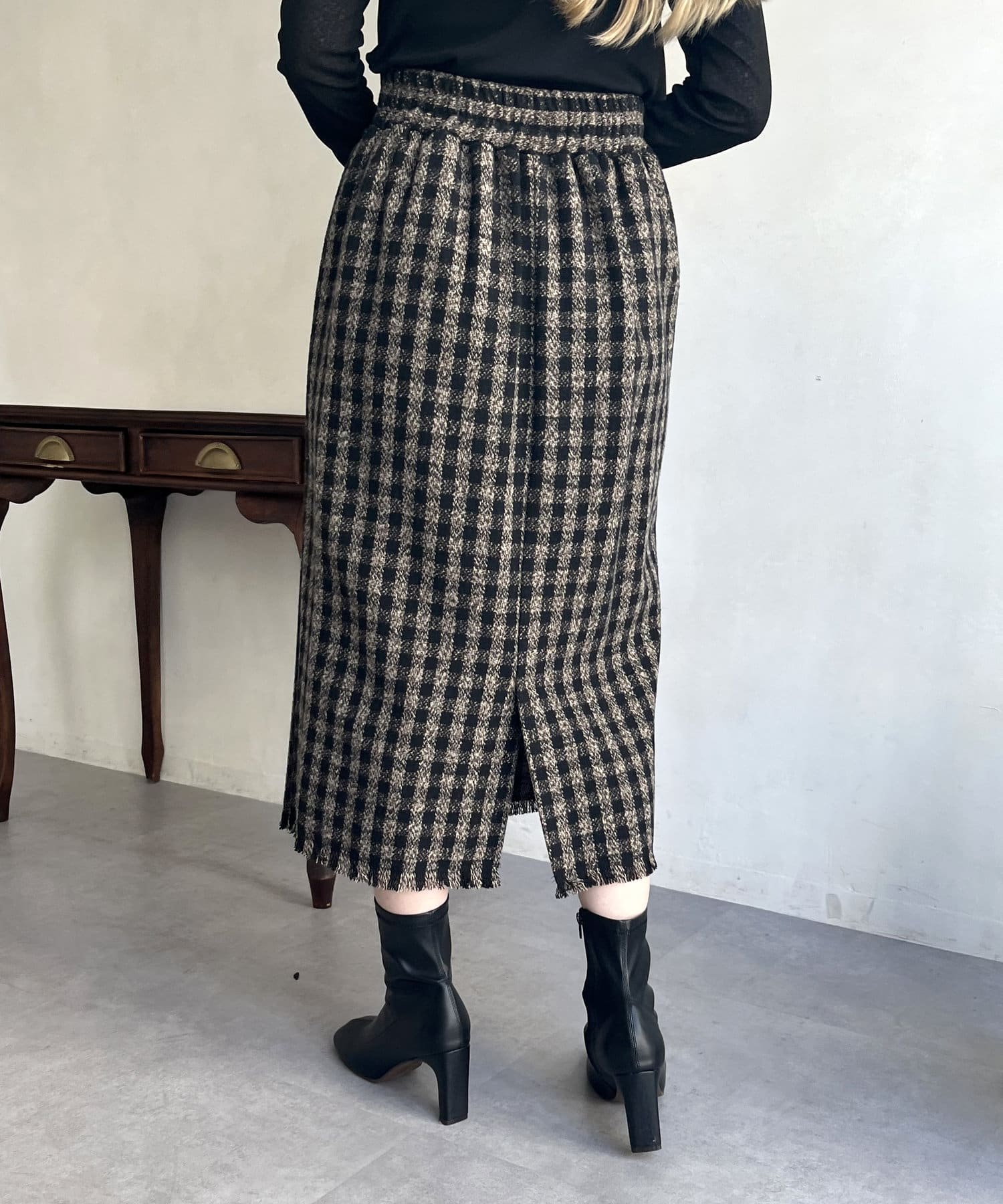 ツイードチェックが一気にシーズンムードにしてくれるタイトスカート