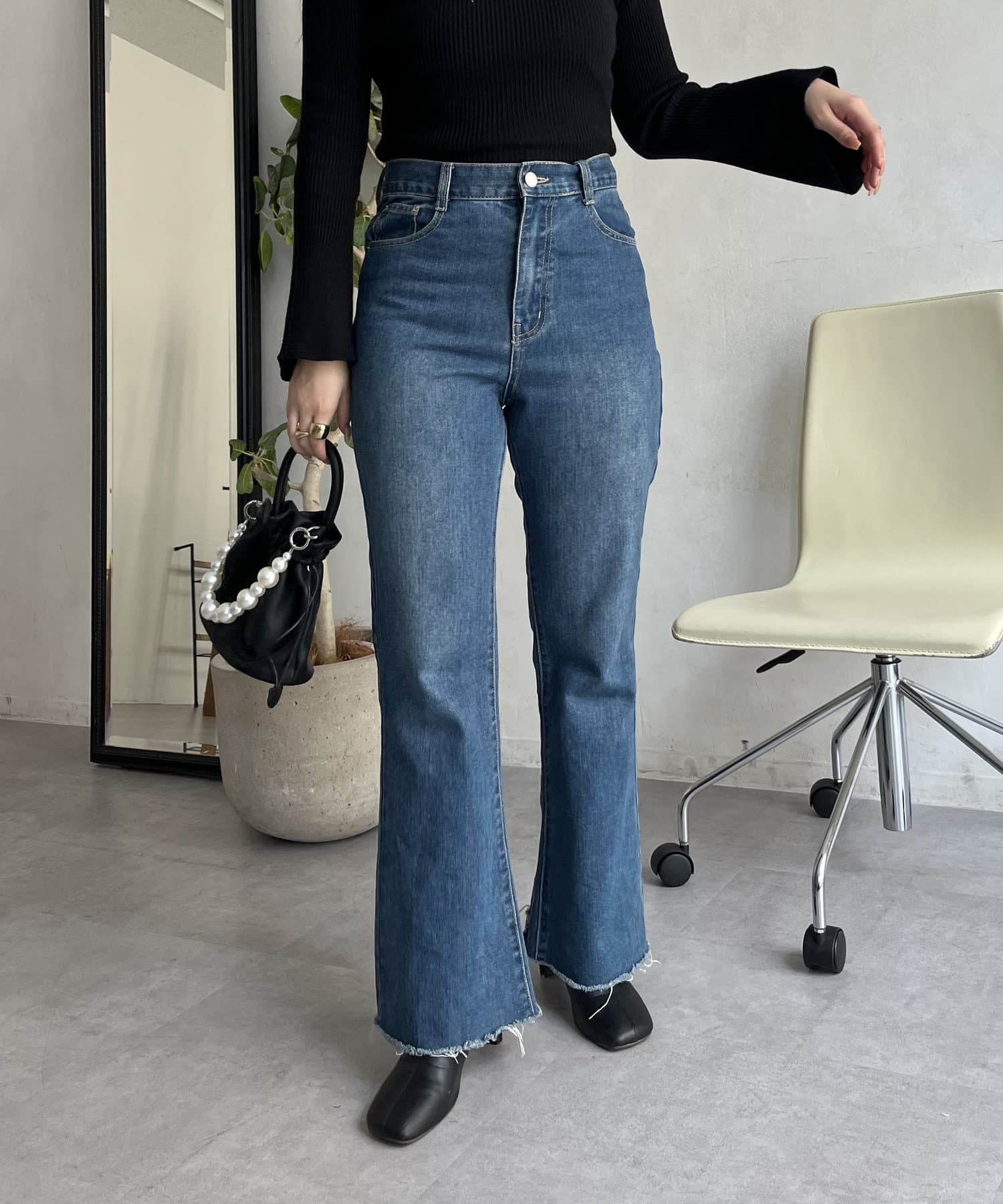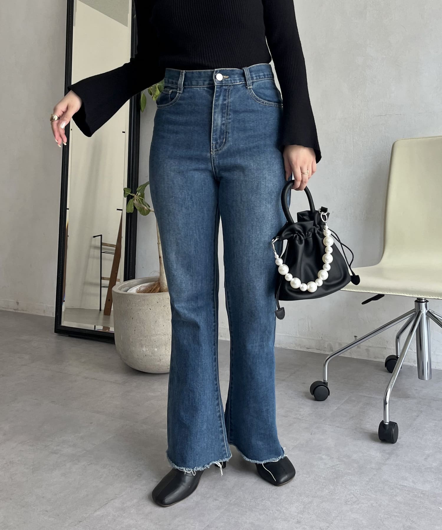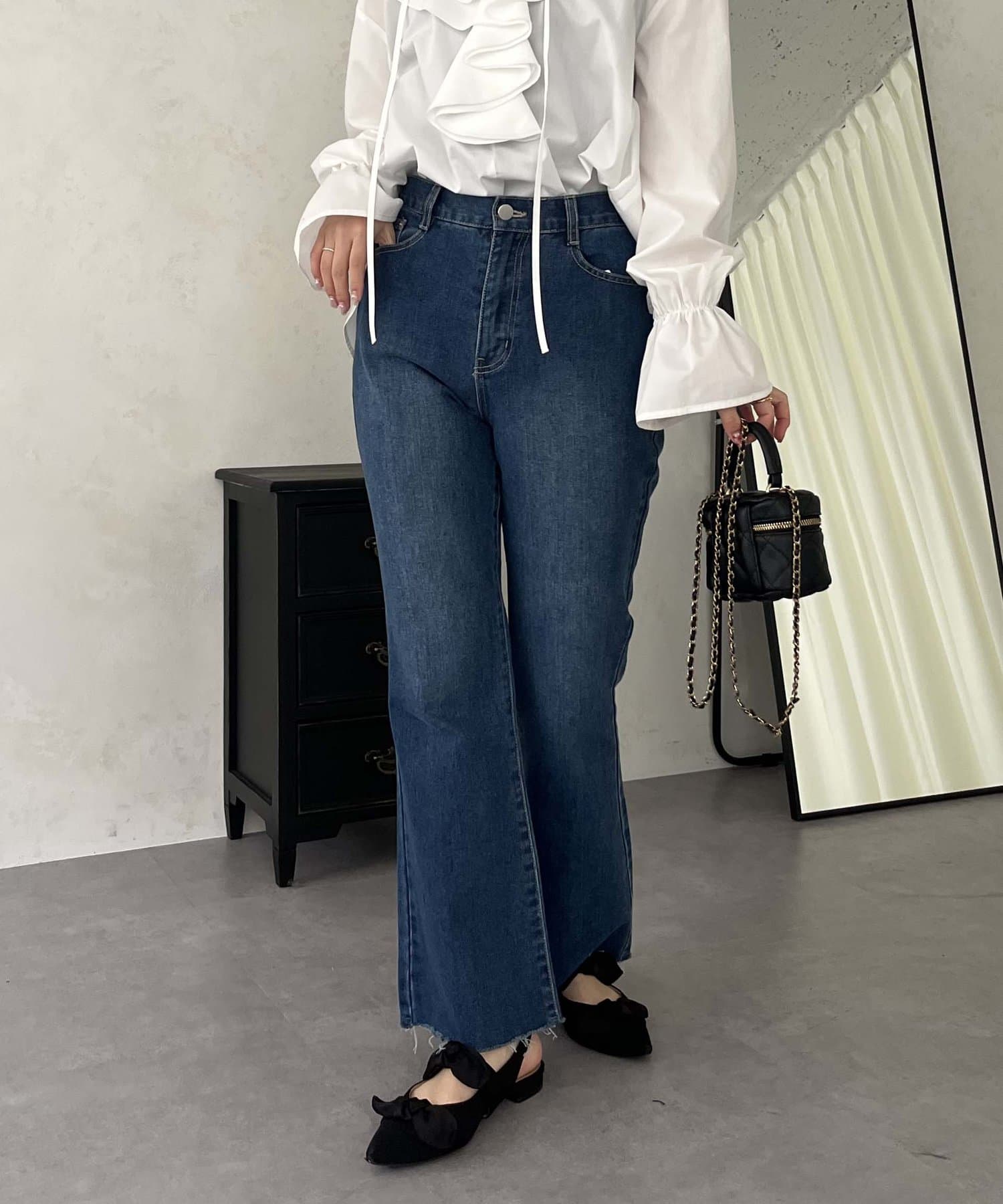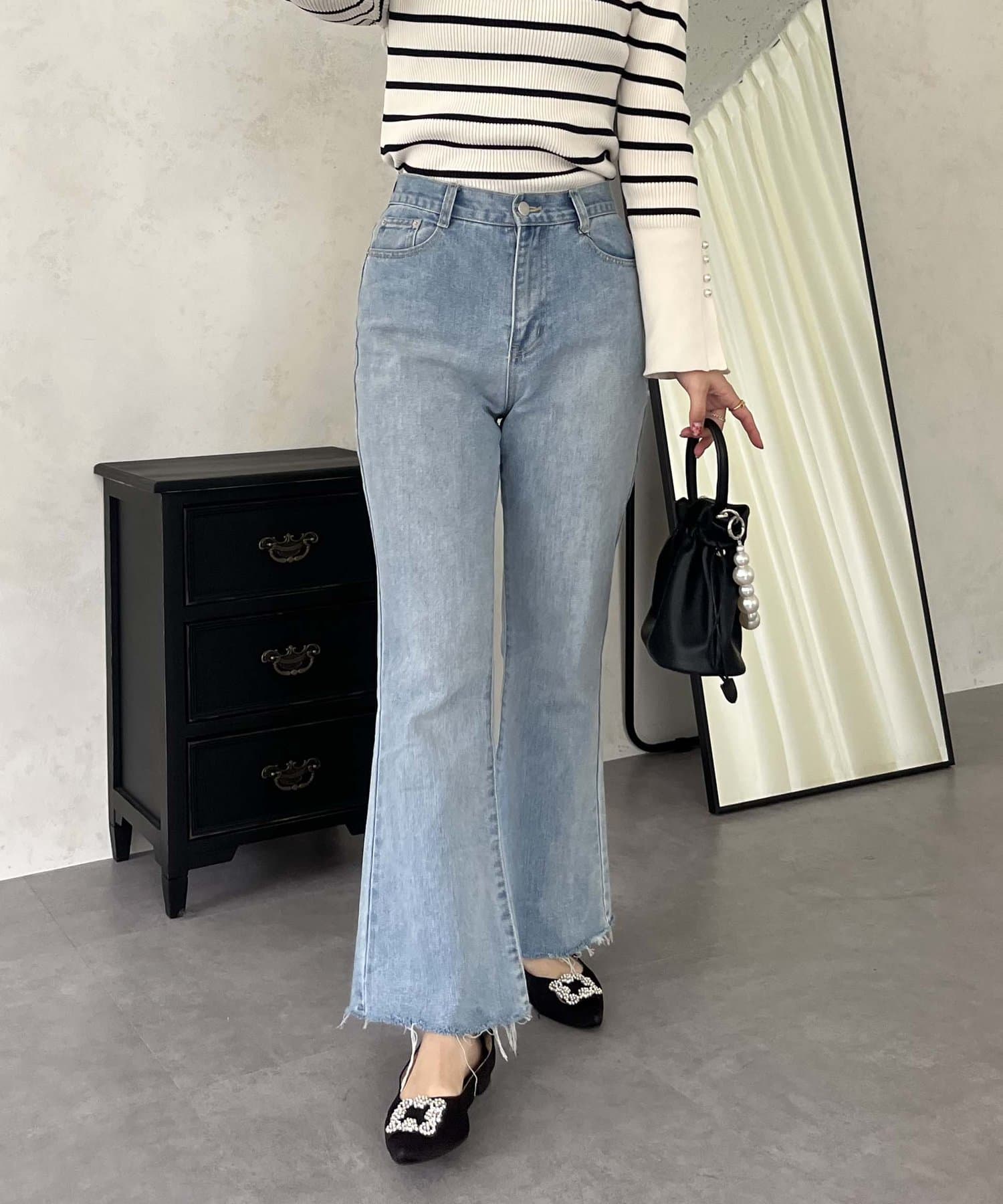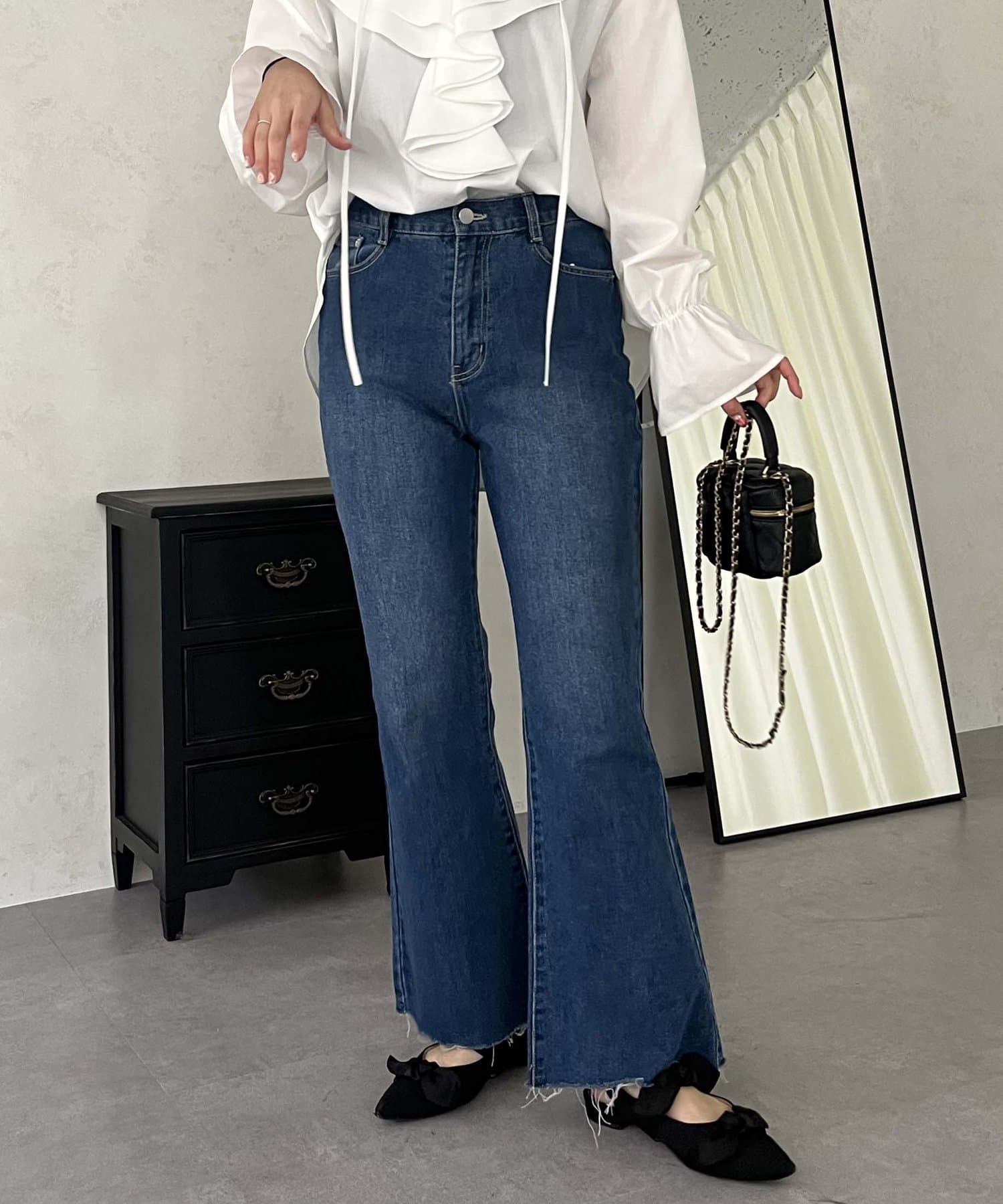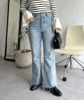 着回し抜群アイテム!美脚効果のフレアデニムパンツ