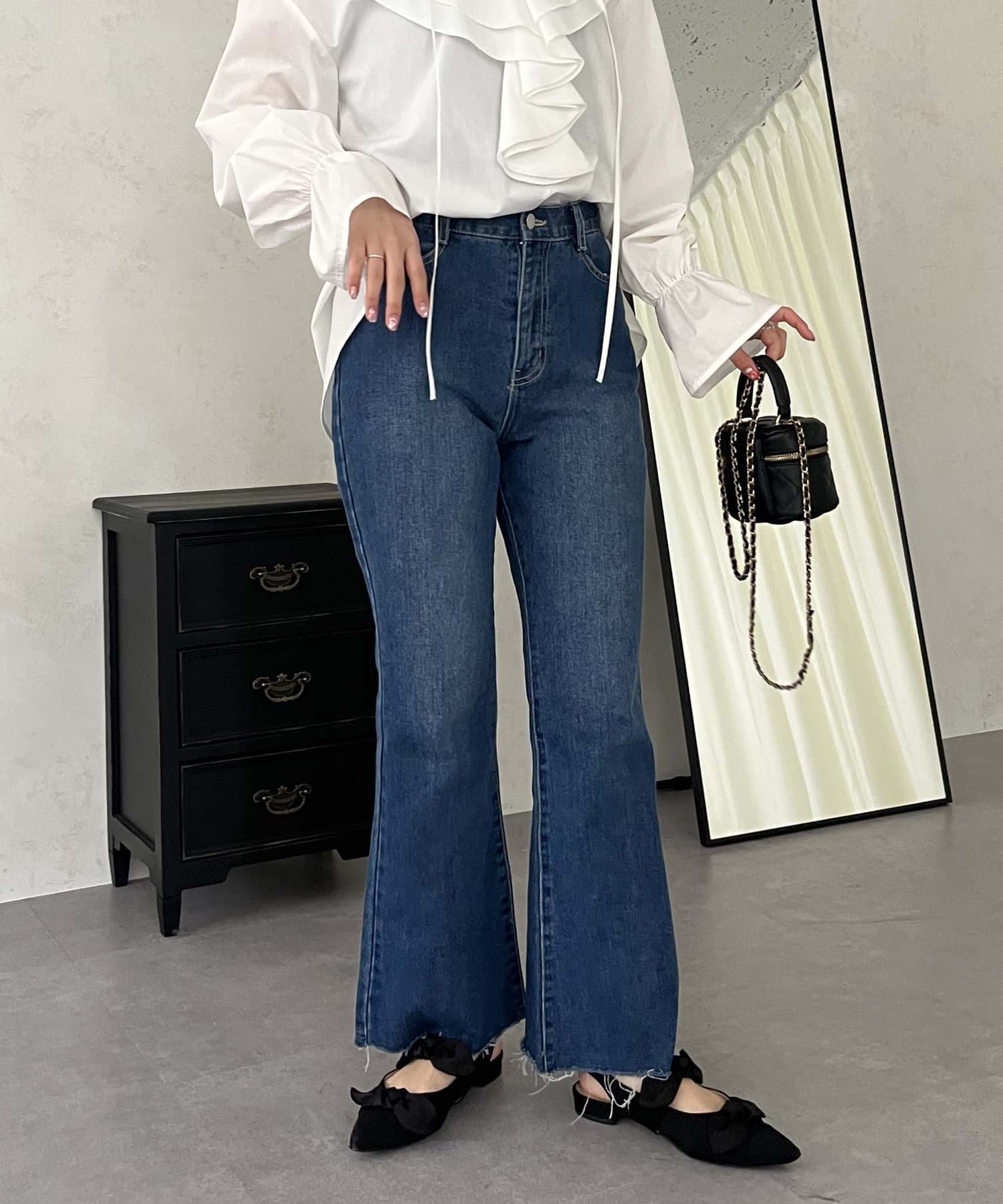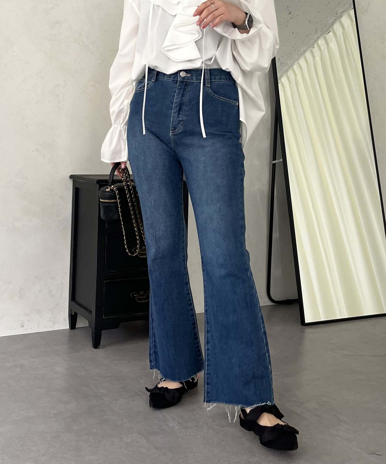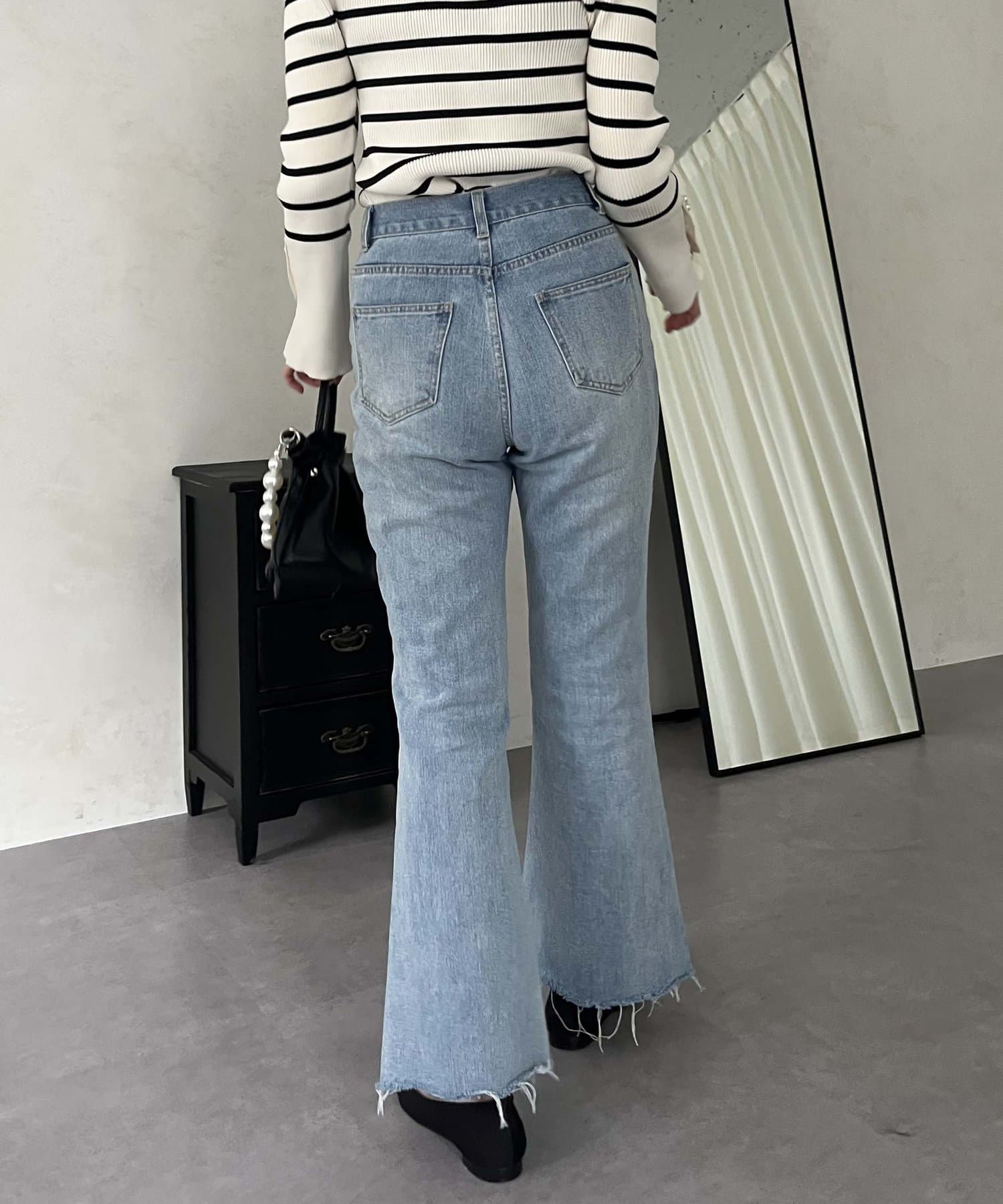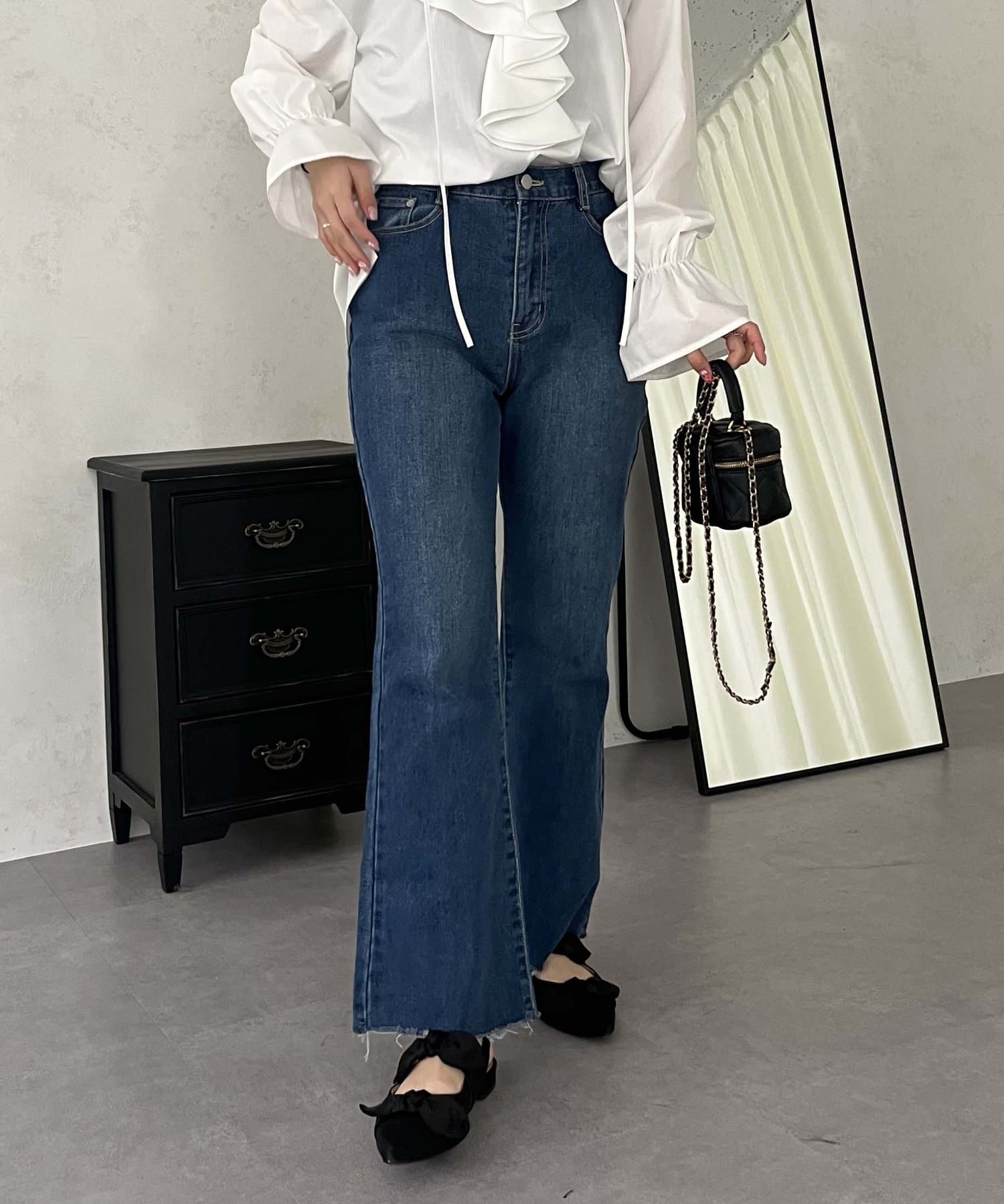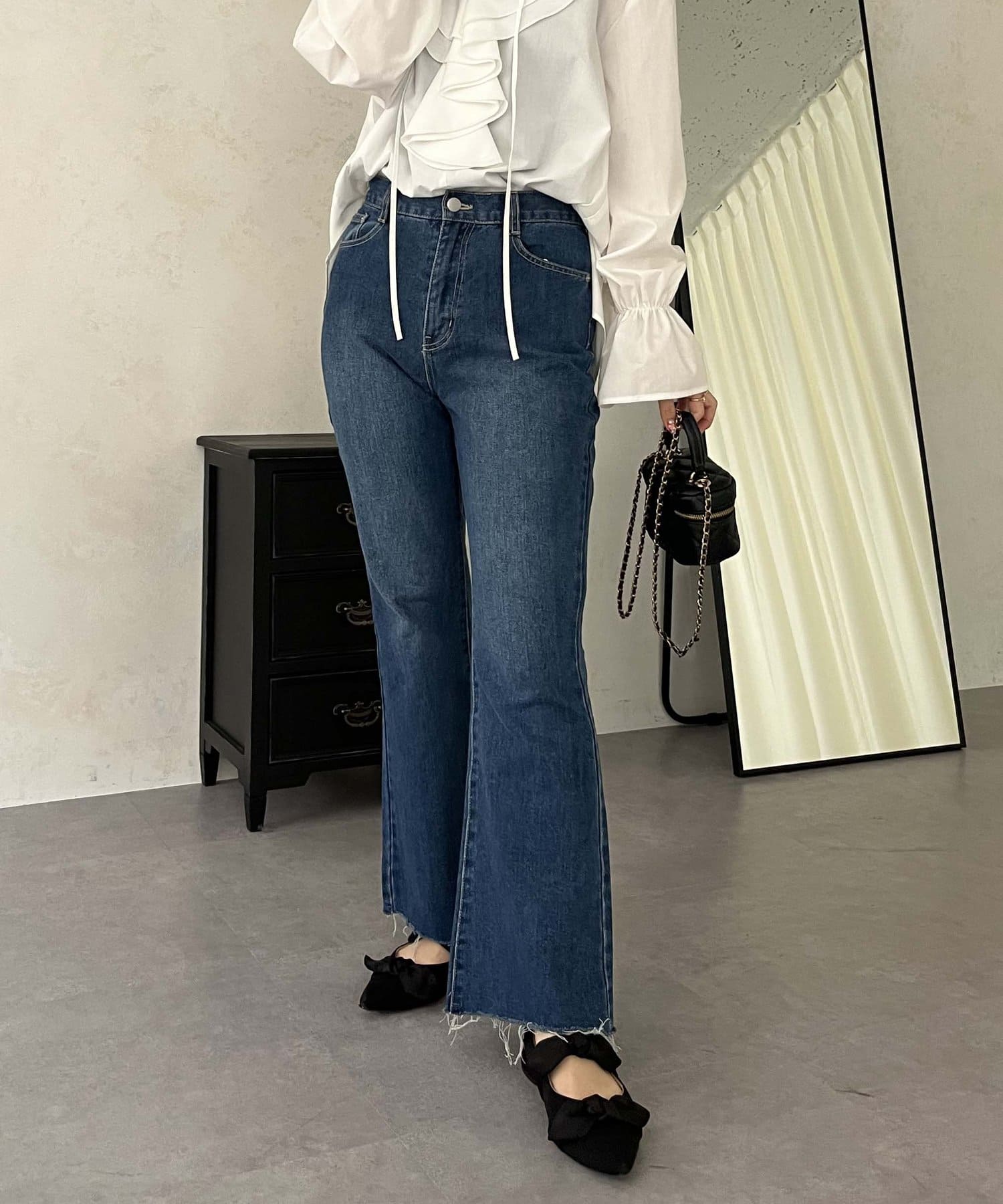 着回し抜群アイテム!美脚効果のフレアデニムパンツ