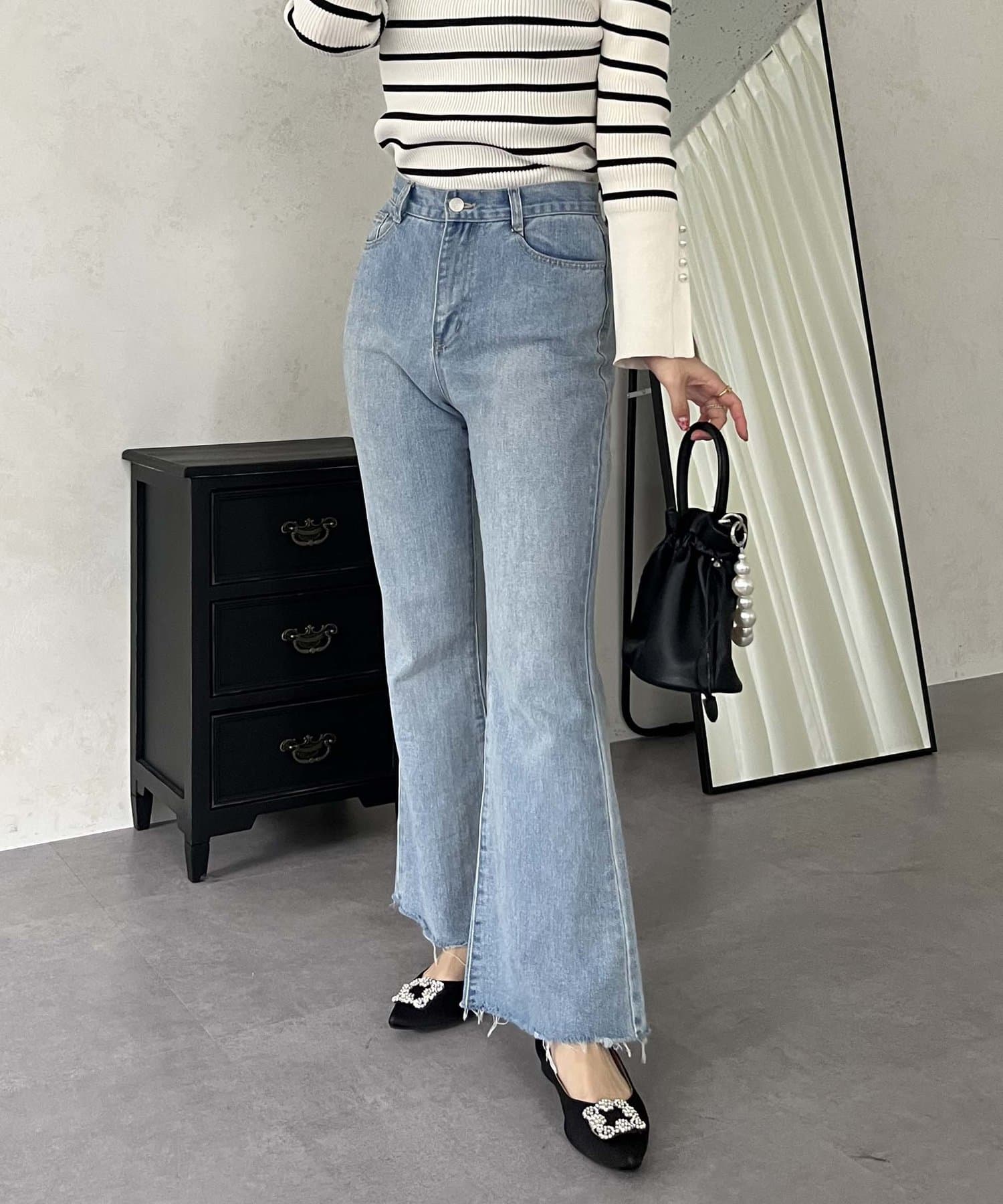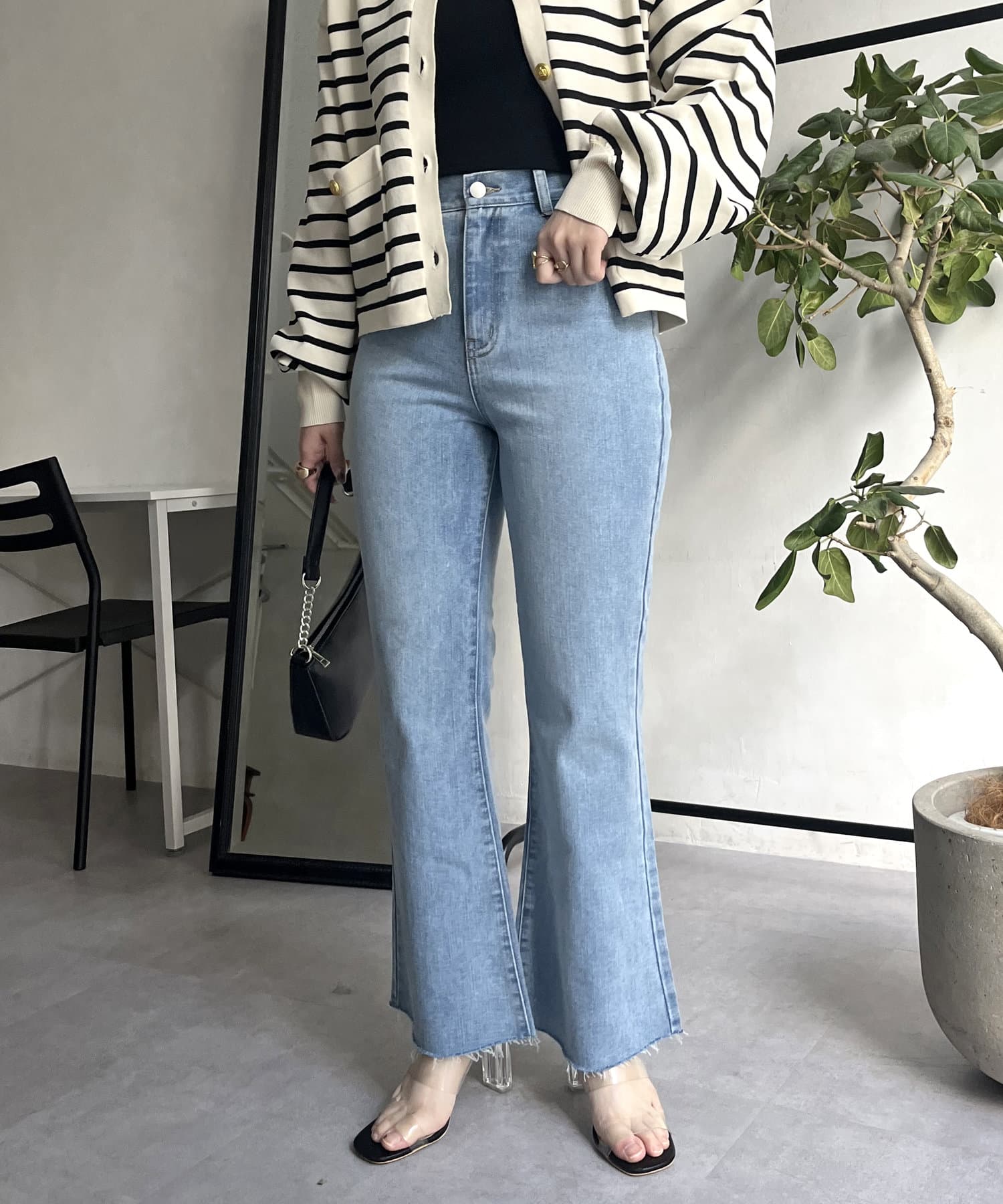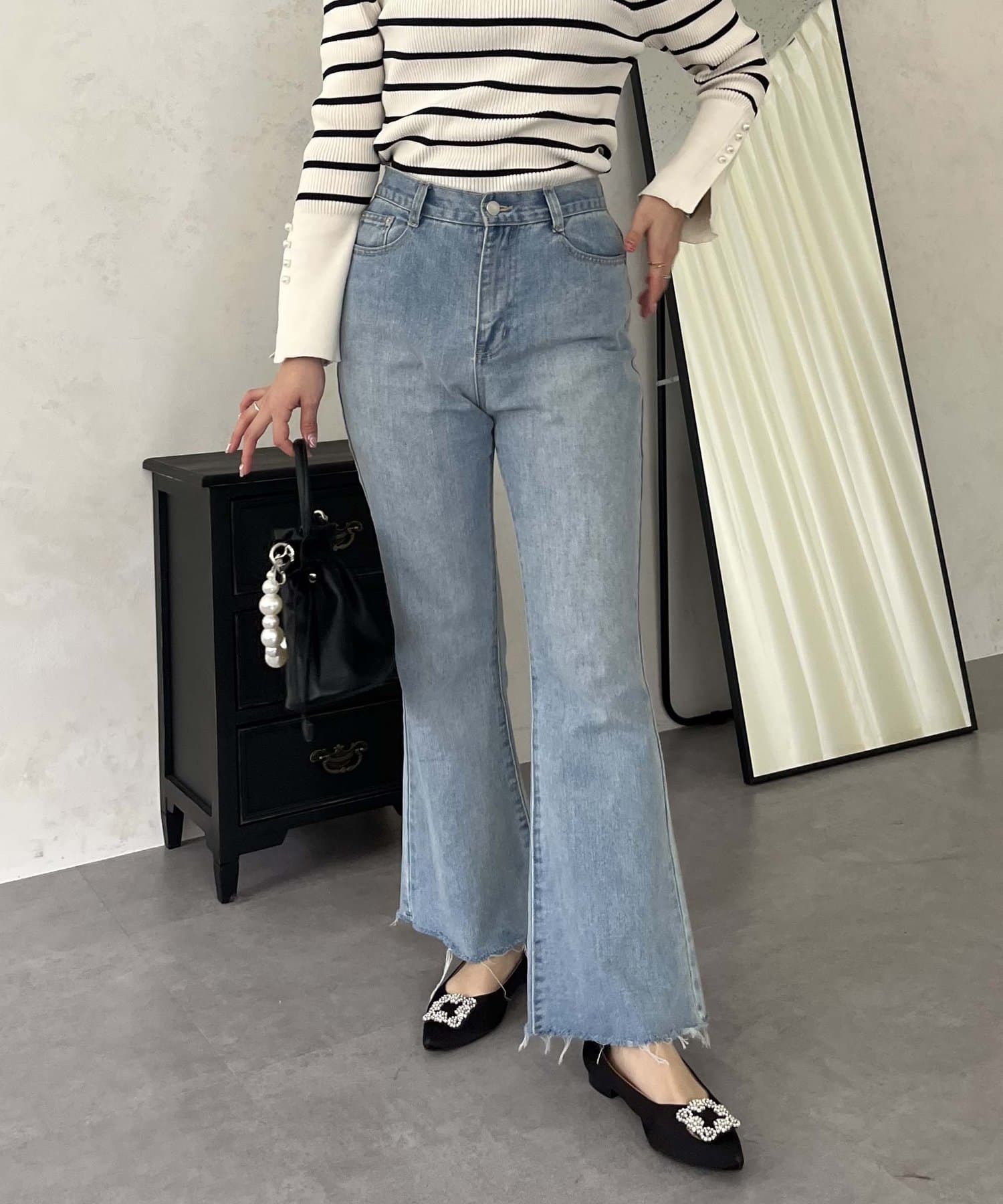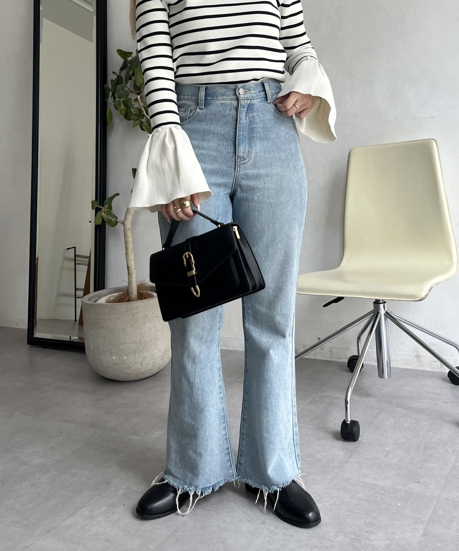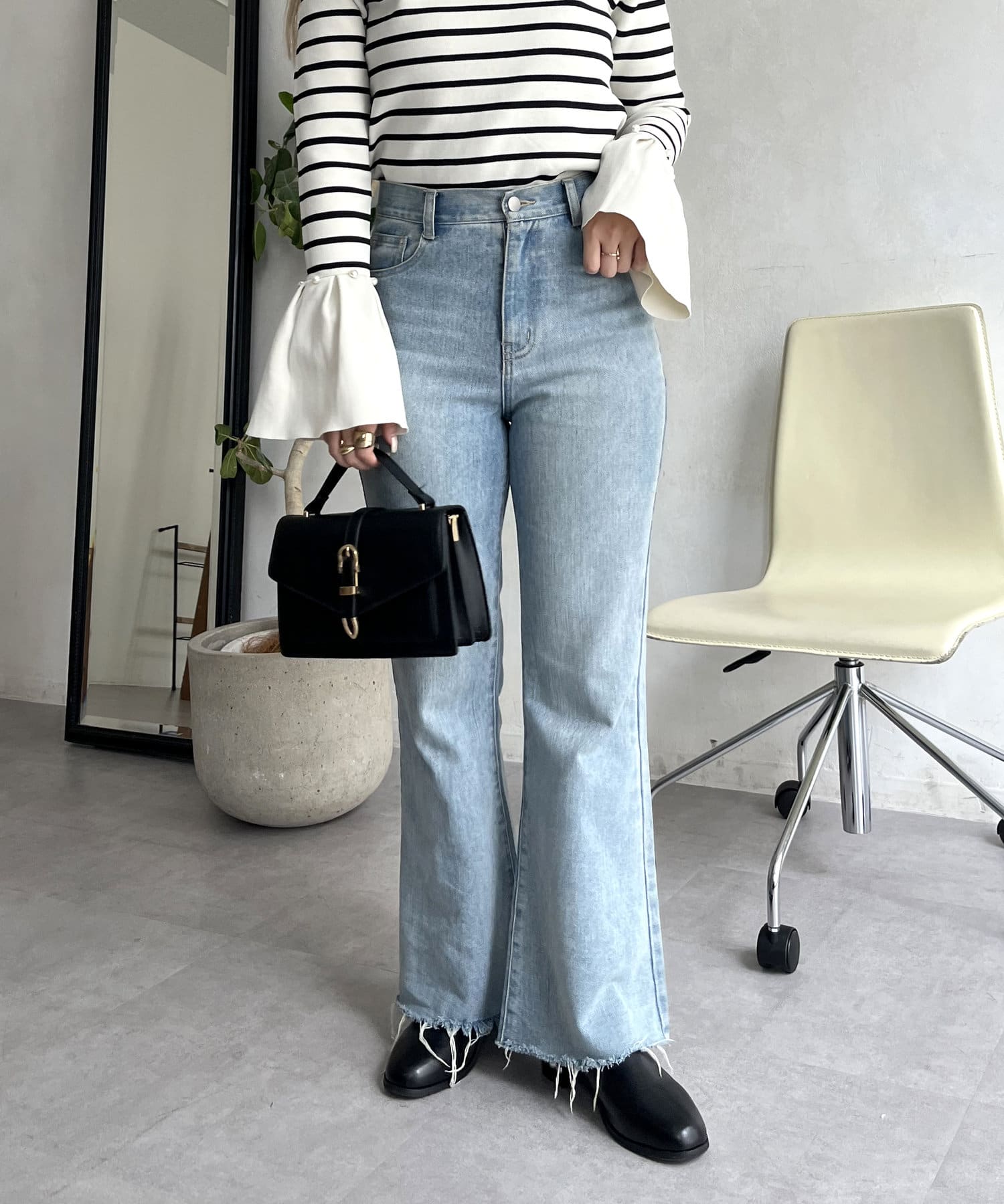 着回し抜群アイテム!美脚効果のフレアデニムパンツ