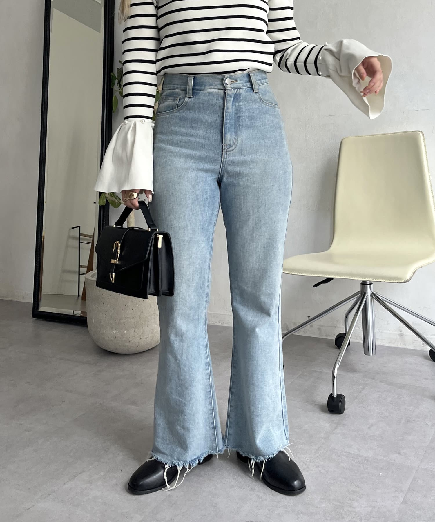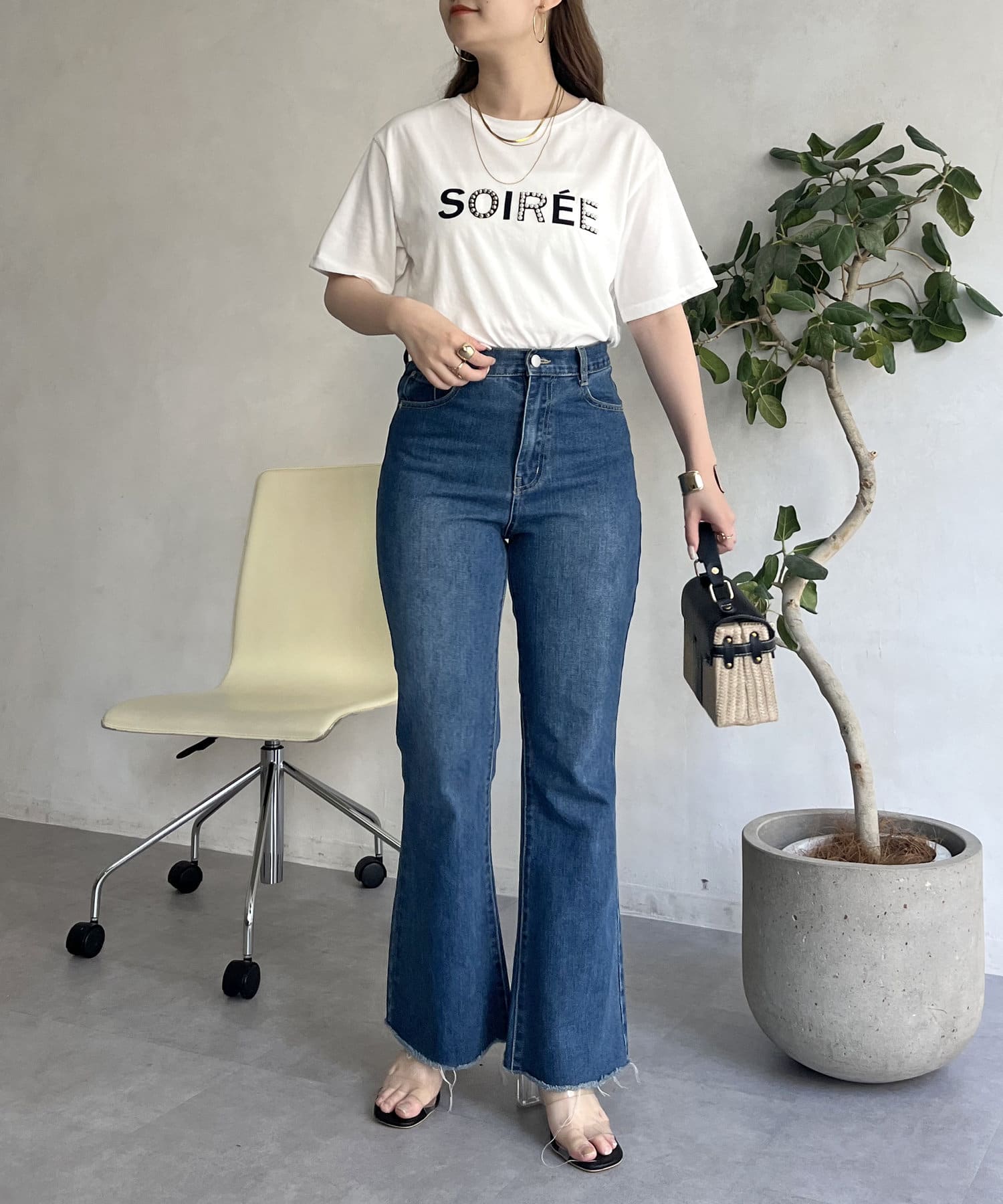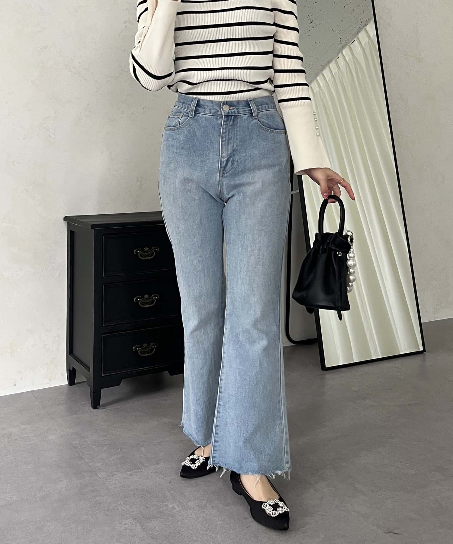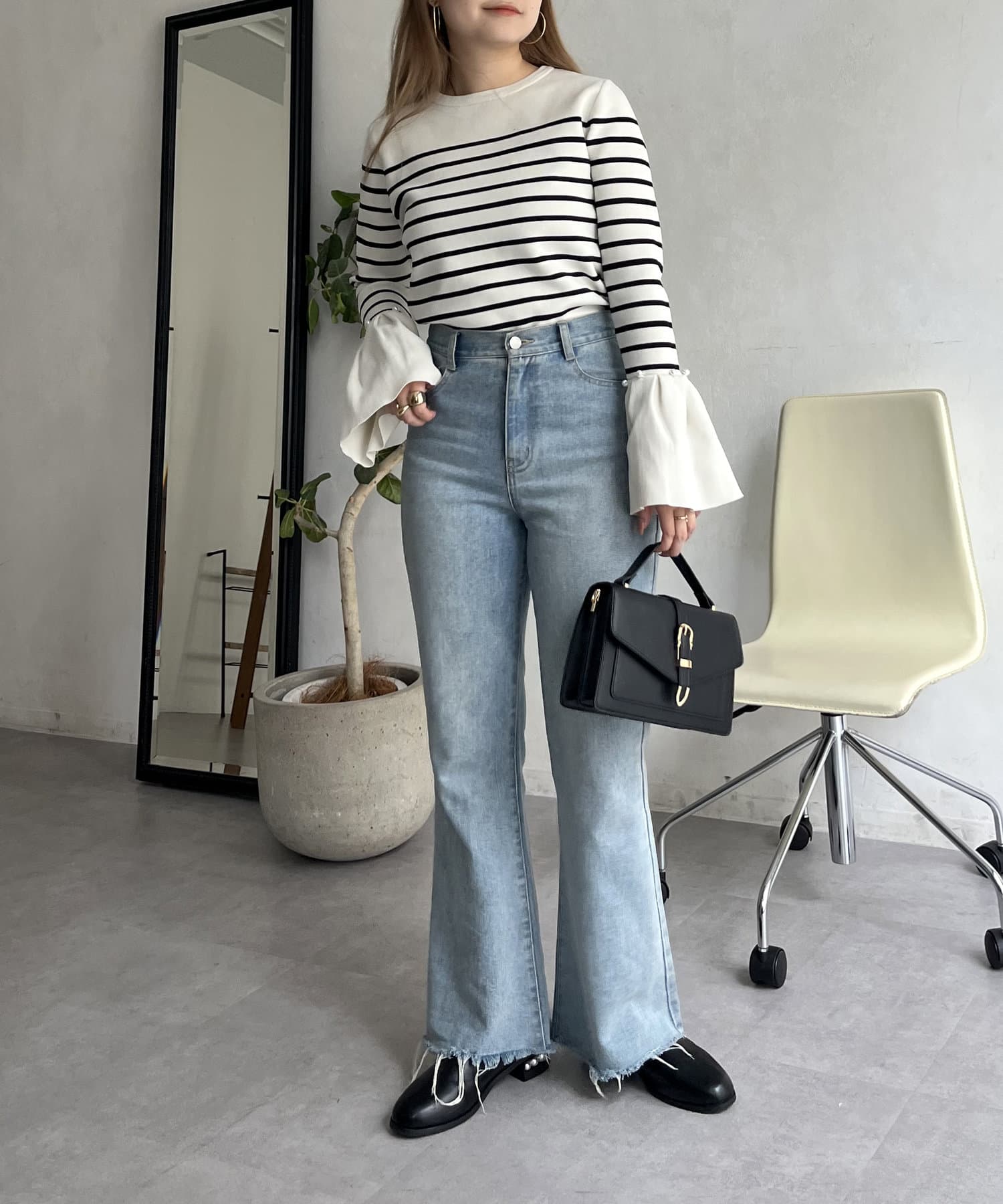 着回し抜群アイテム!美脚効果のフレアデニムパンツ