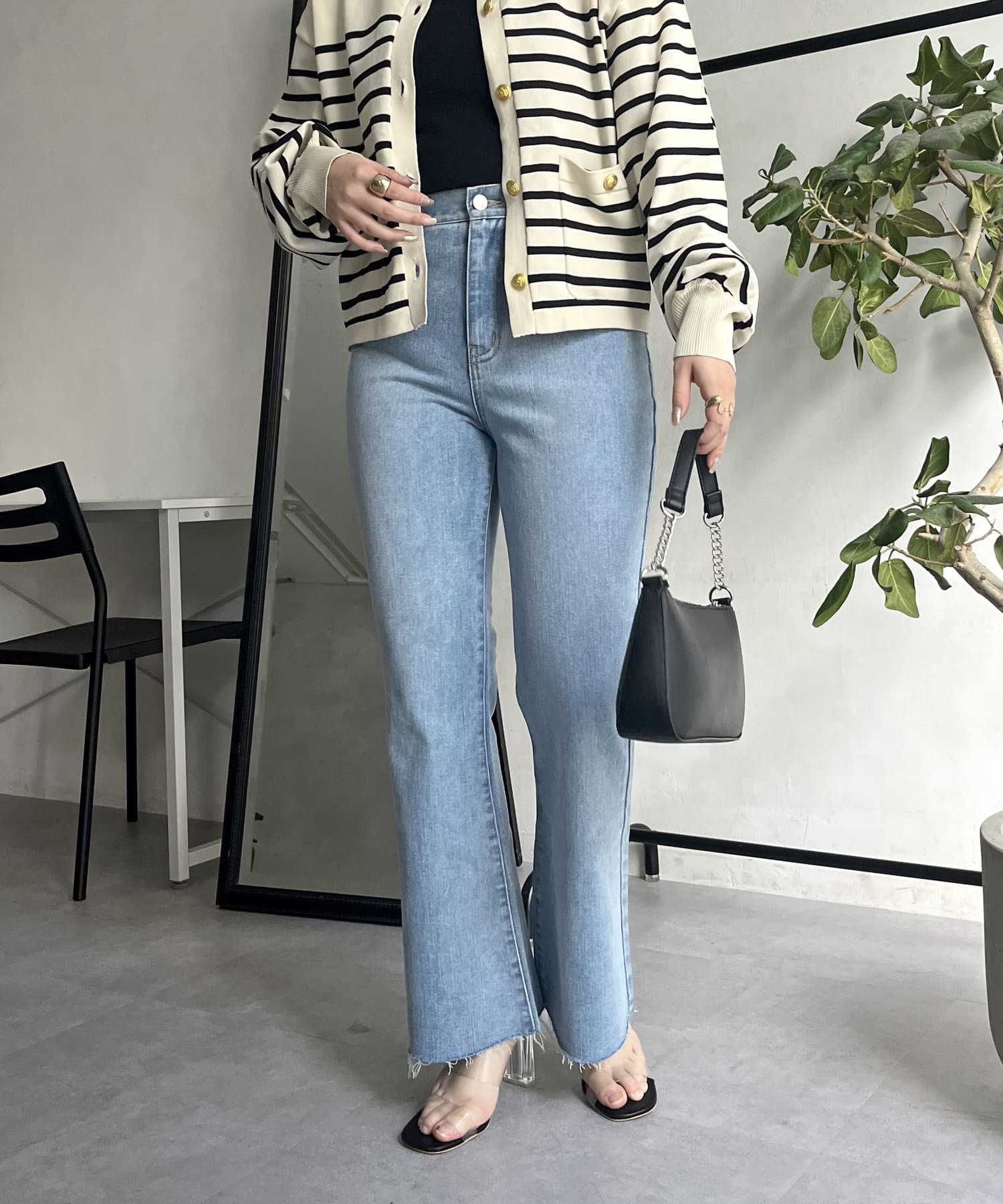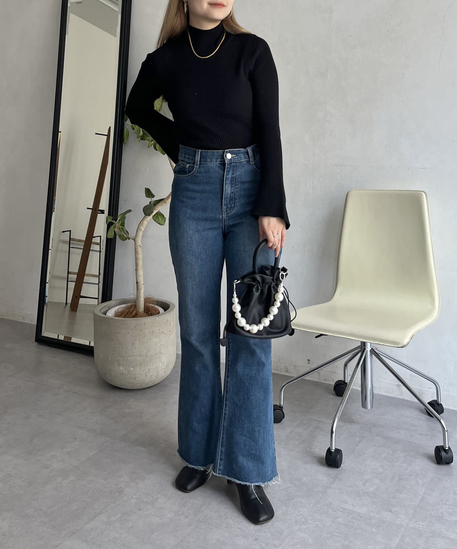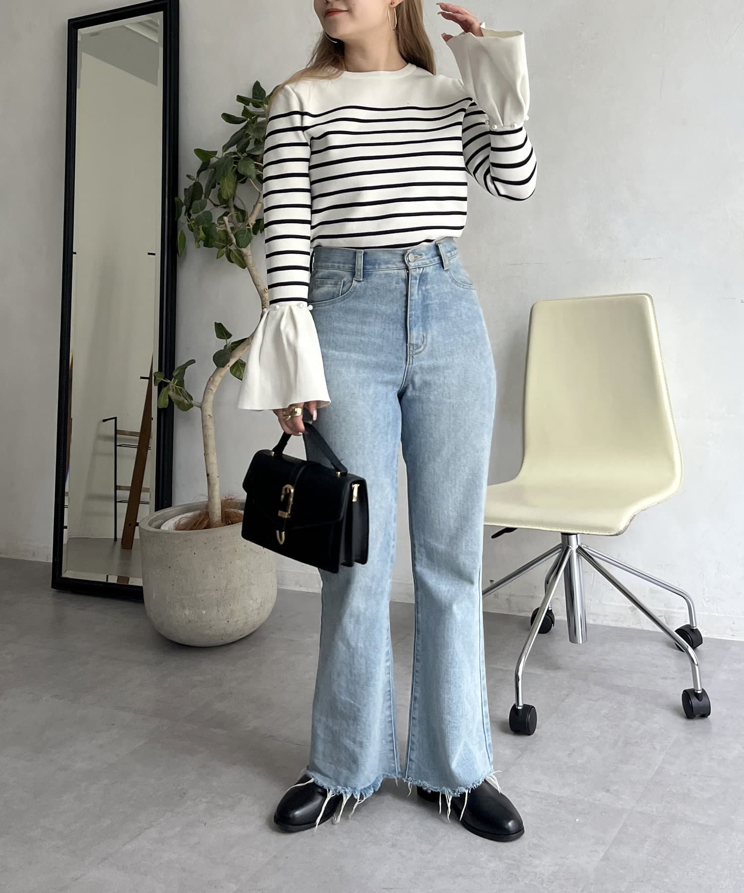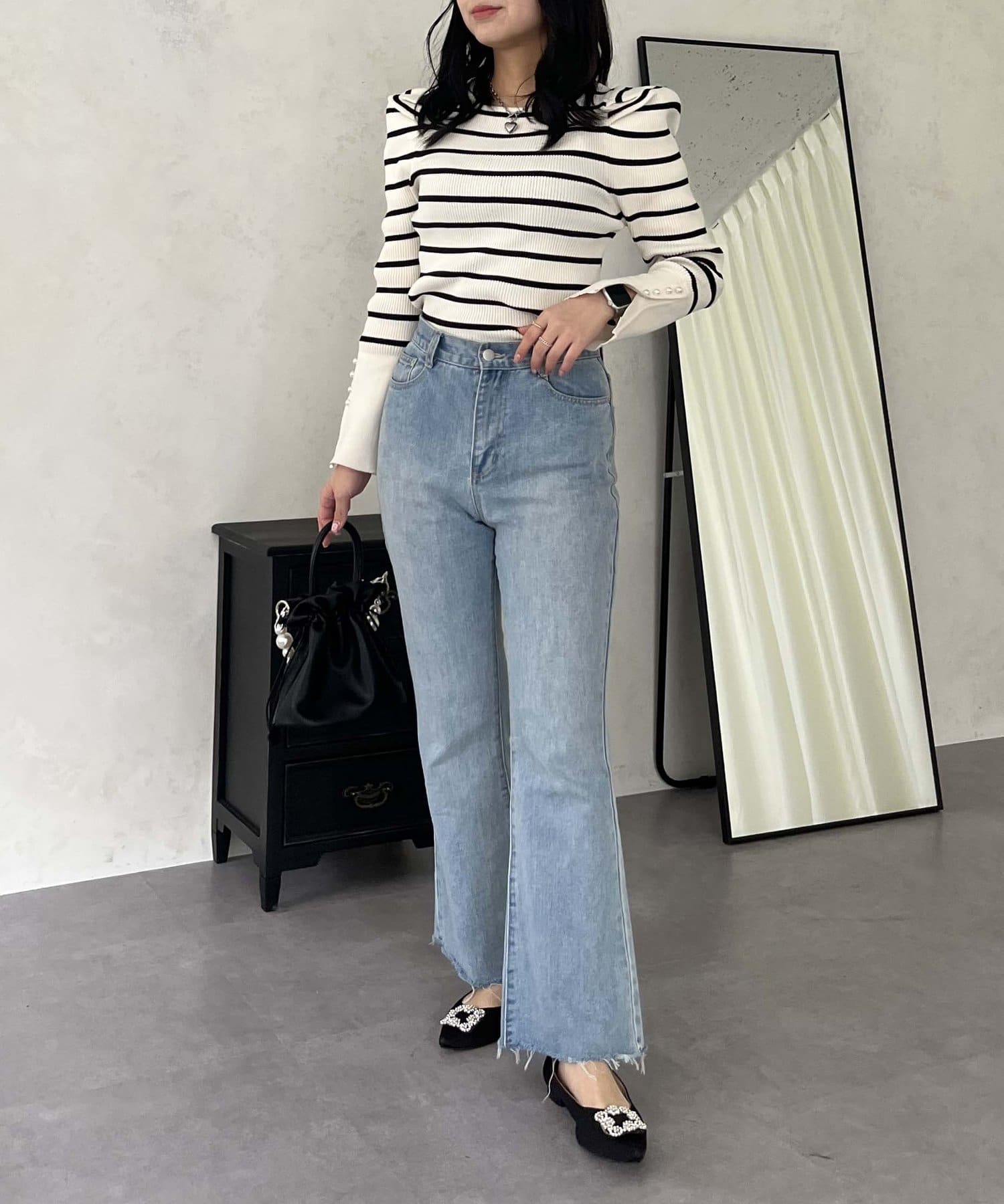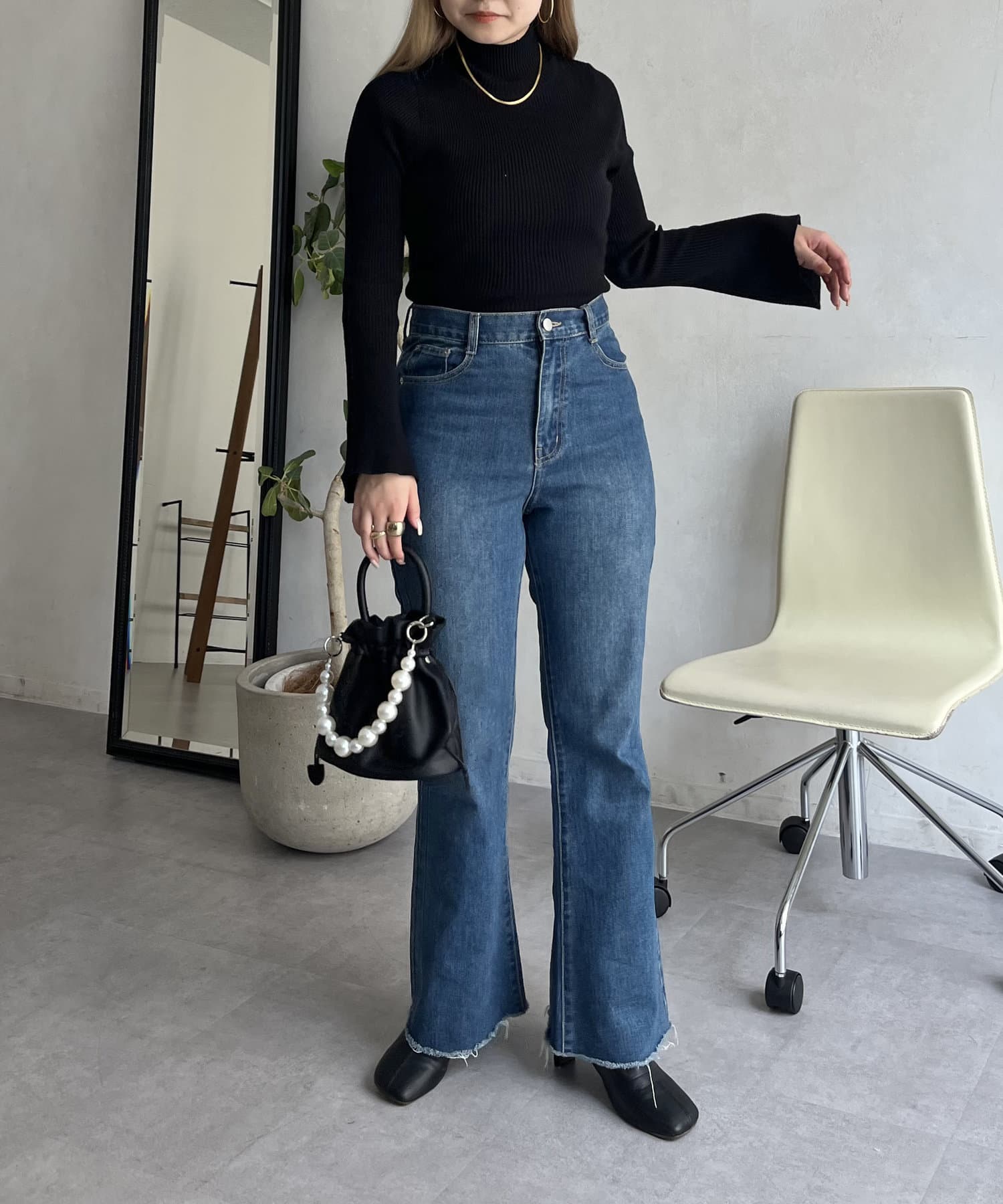 着回し抜群アイテム!美脚効果のフレアデニムパンツ