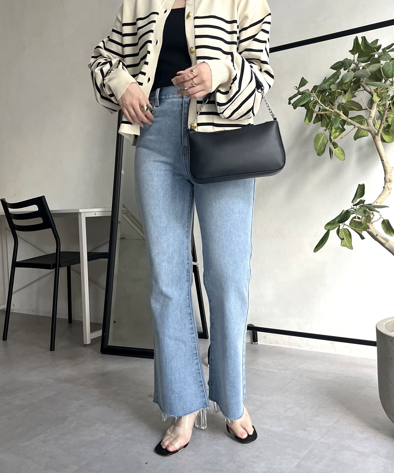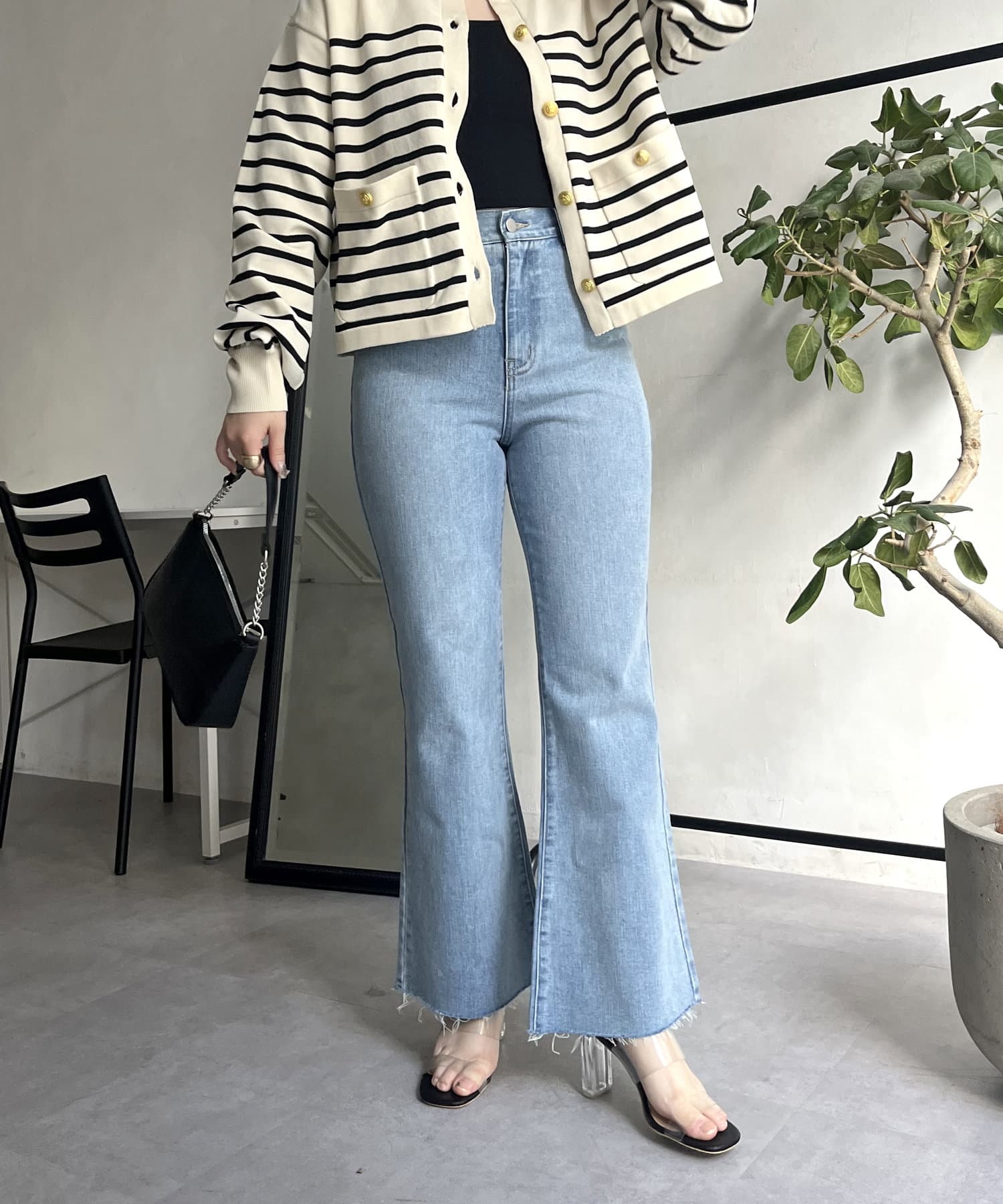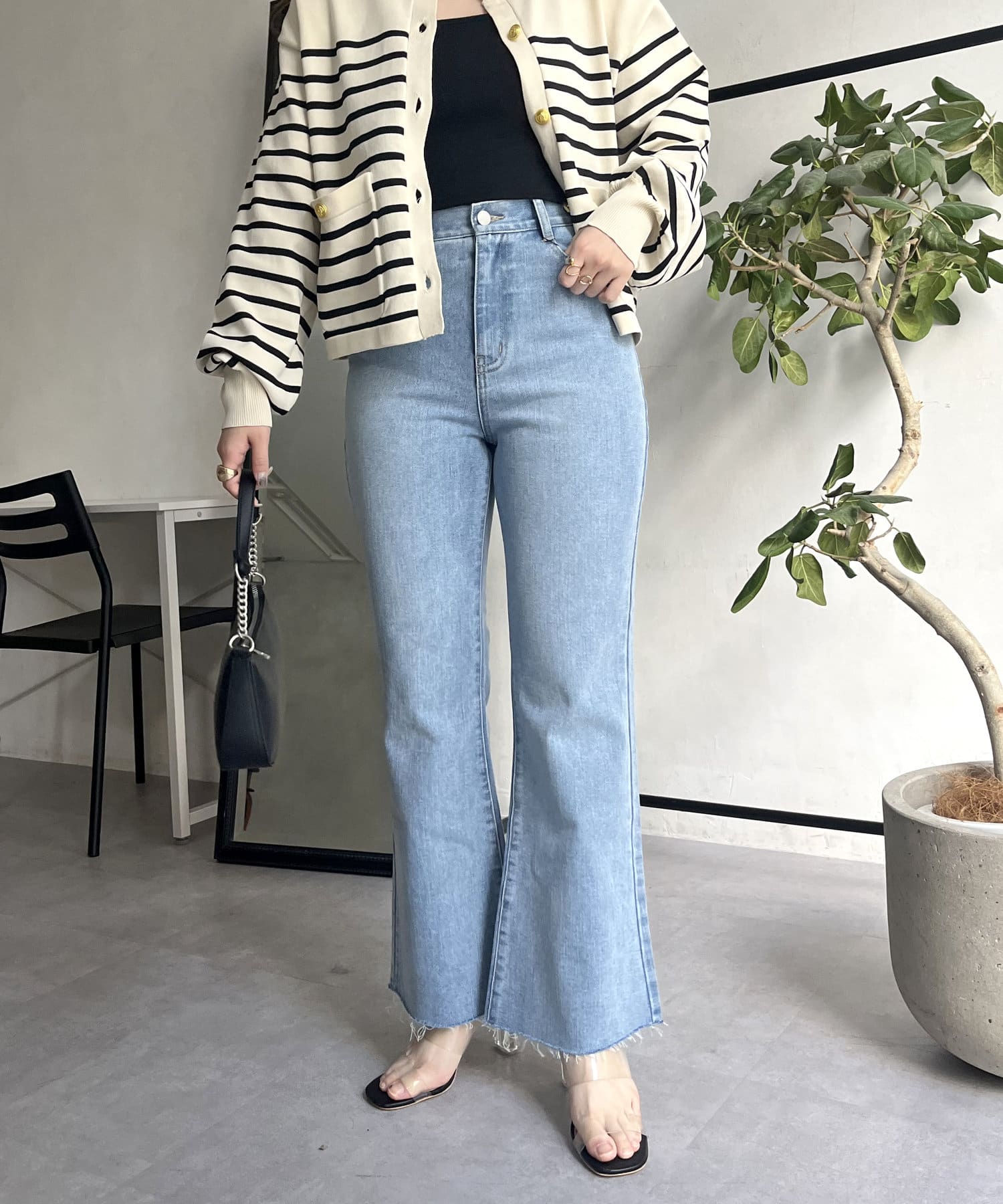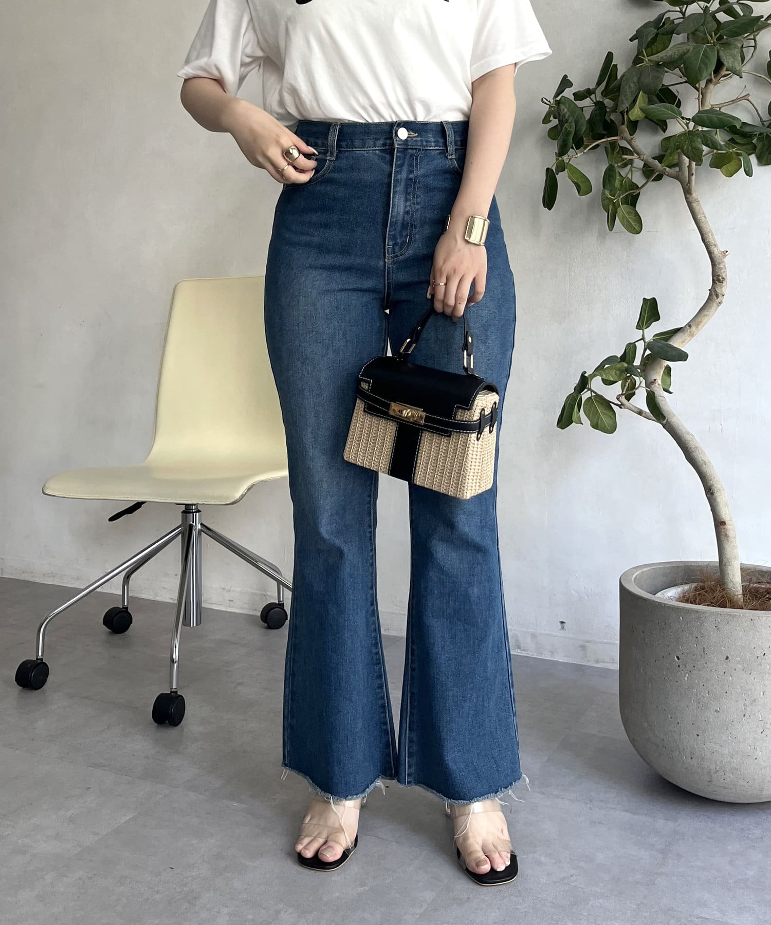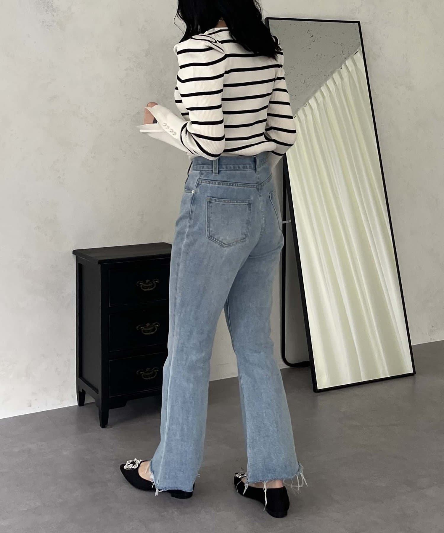 着回し抜群アイテム!美脚効果のフレアデニムパンツ