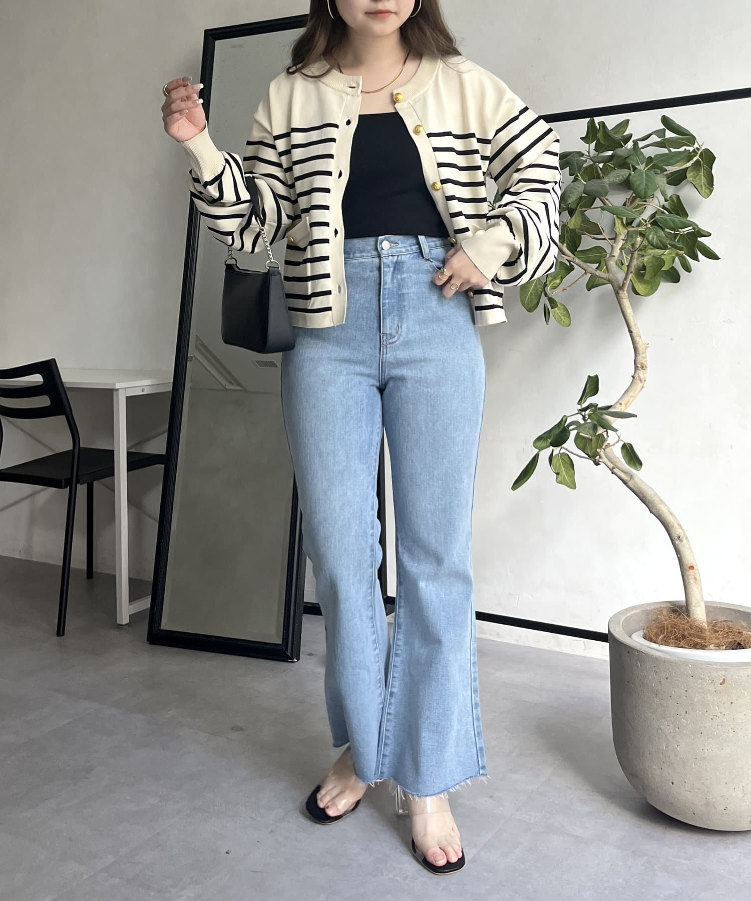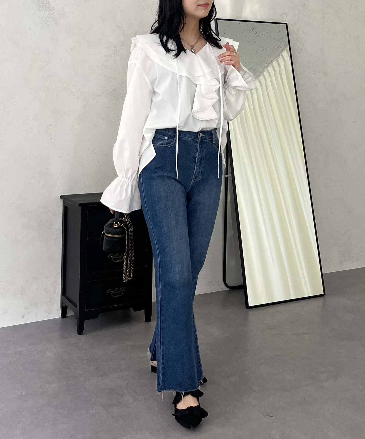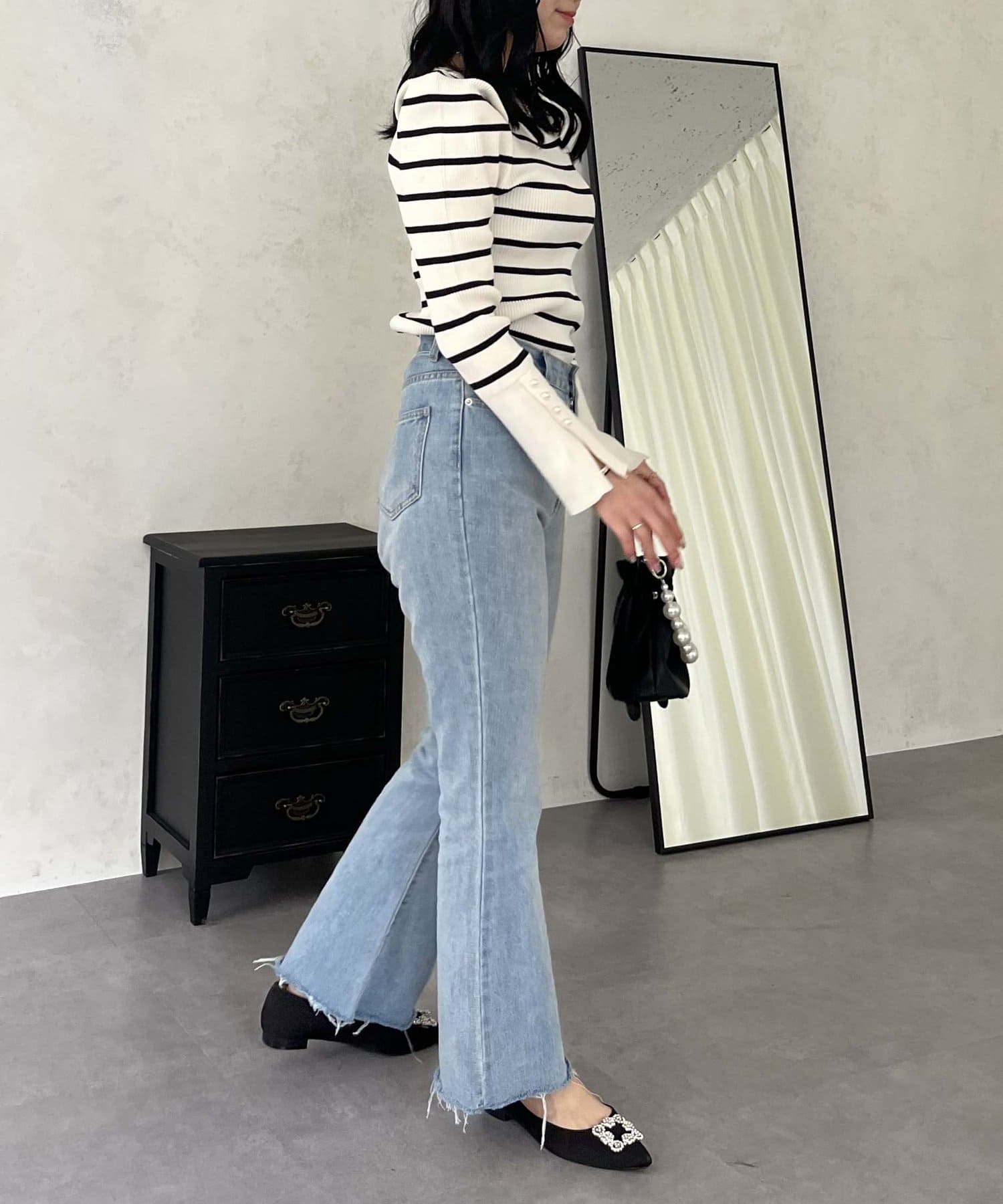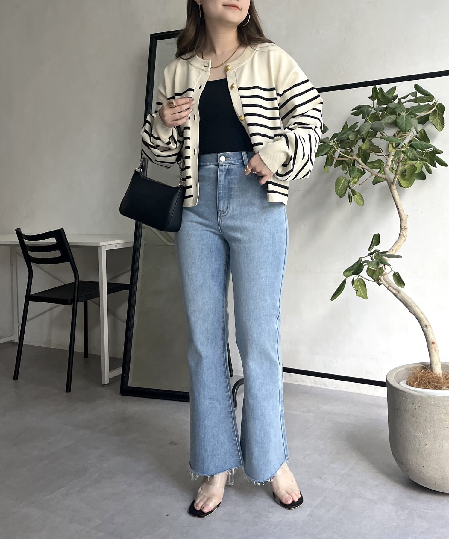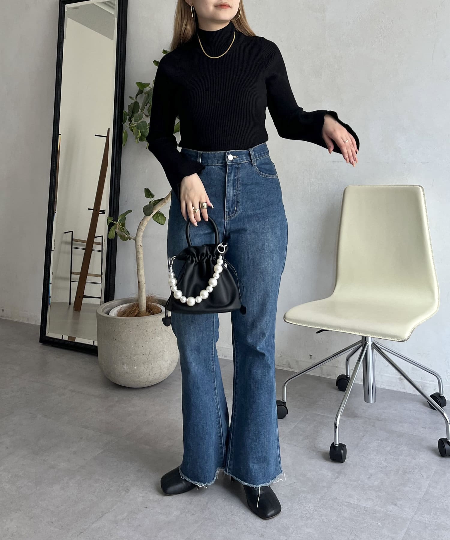 着回し抜群アイテム!美脚効果のフレアデニムパンツ