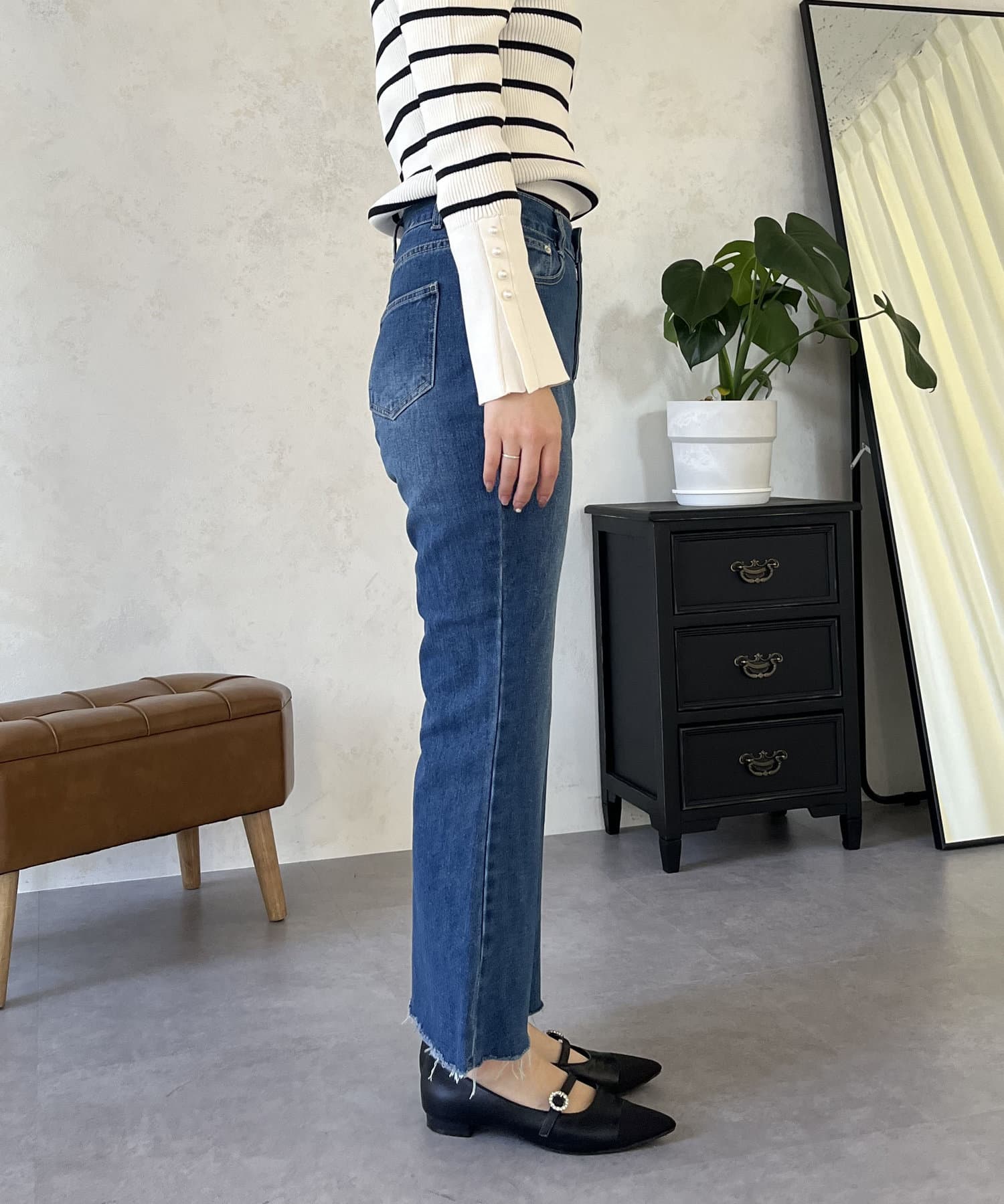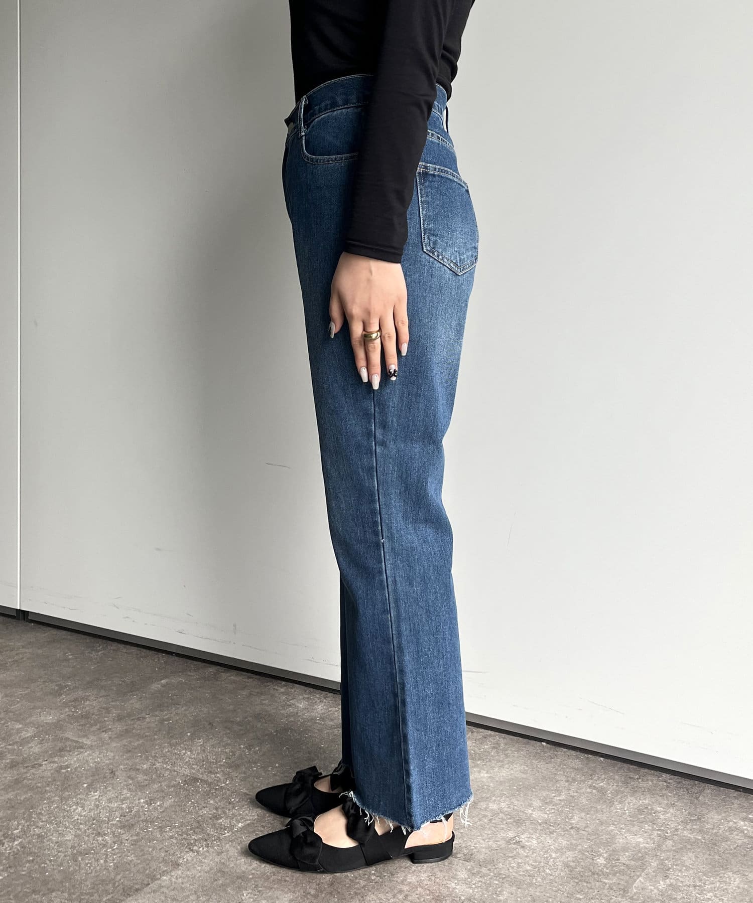 シンプルなトップスでもこのデニムを合わせると