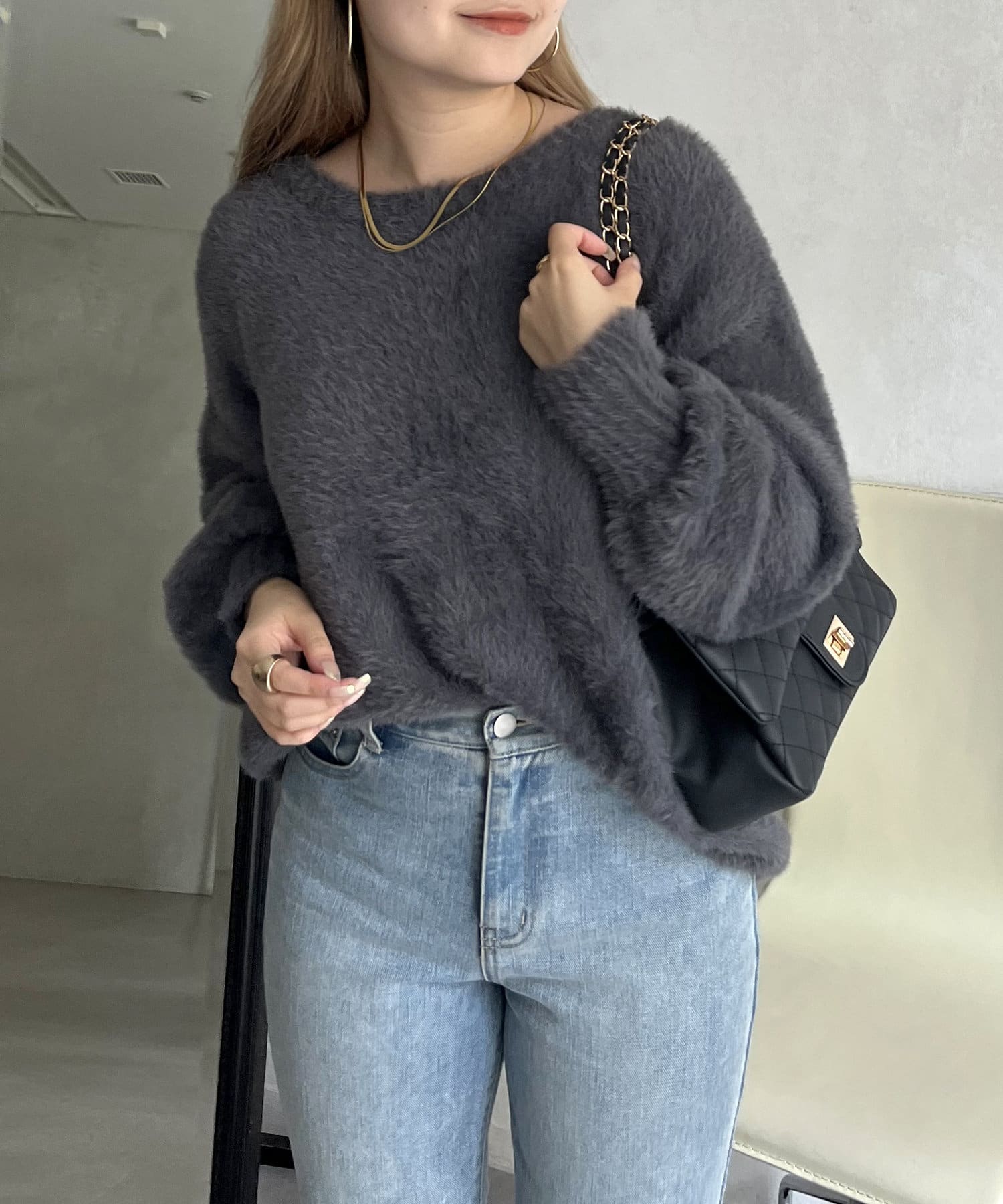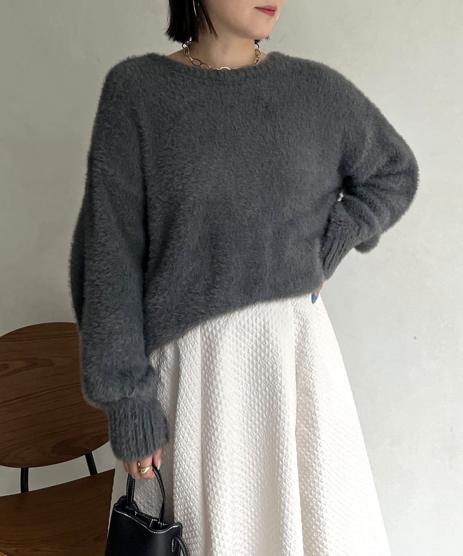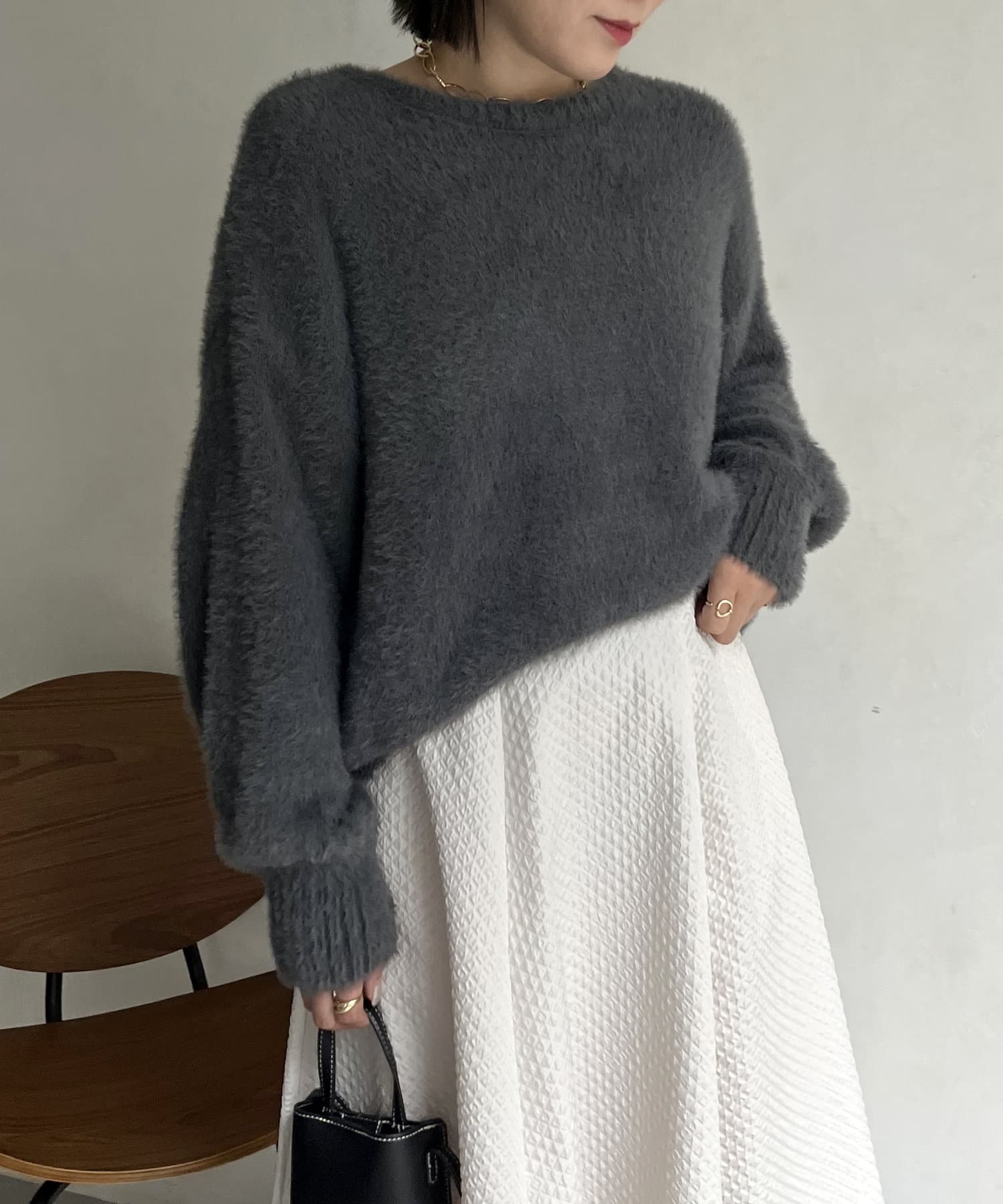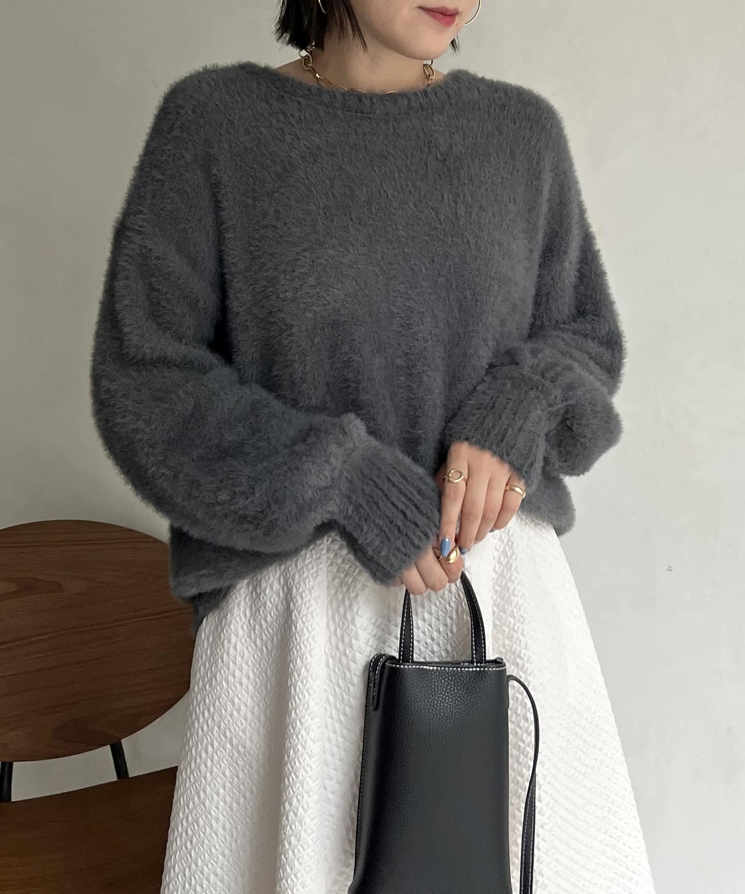 シャギー素材が女性らしく