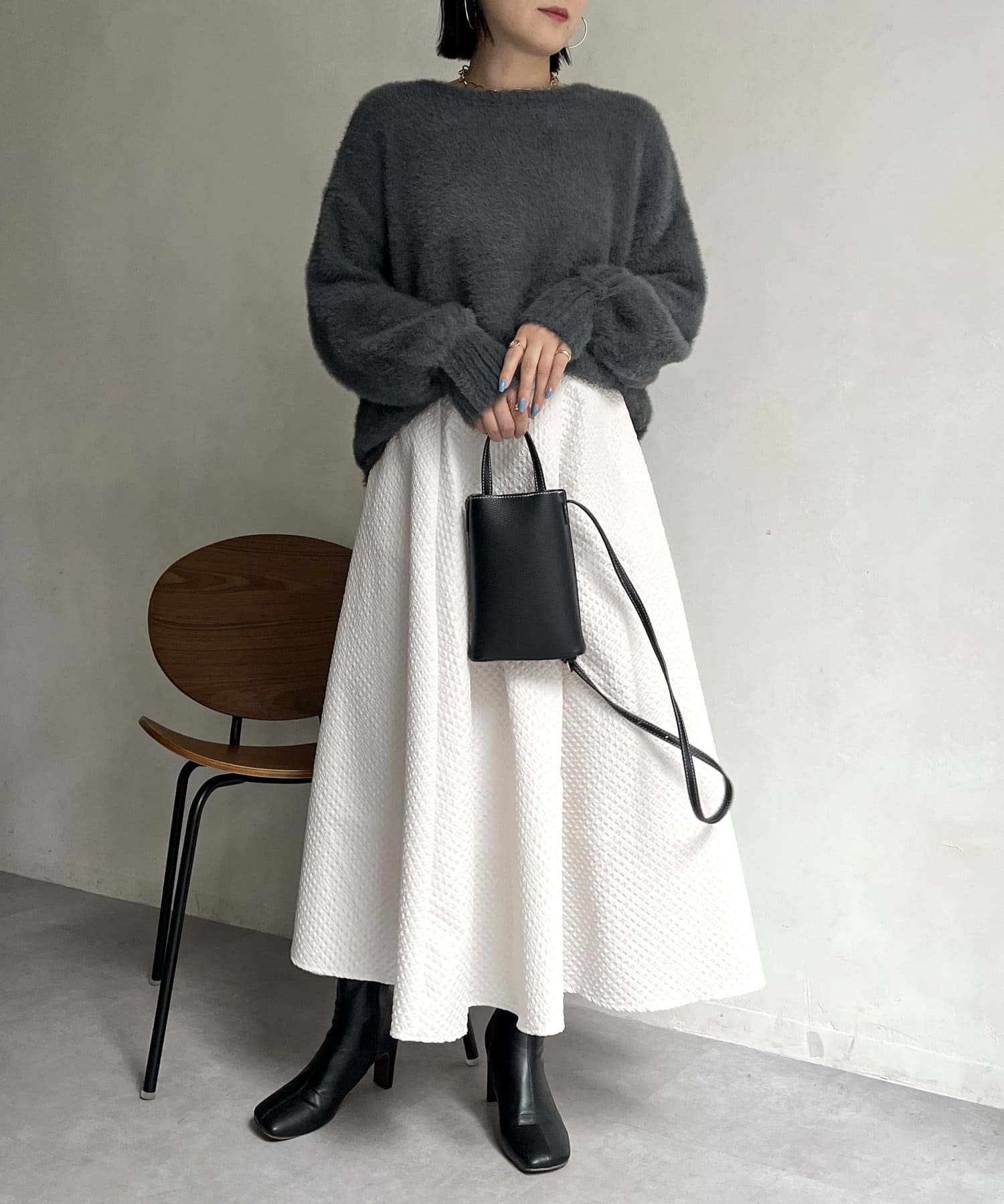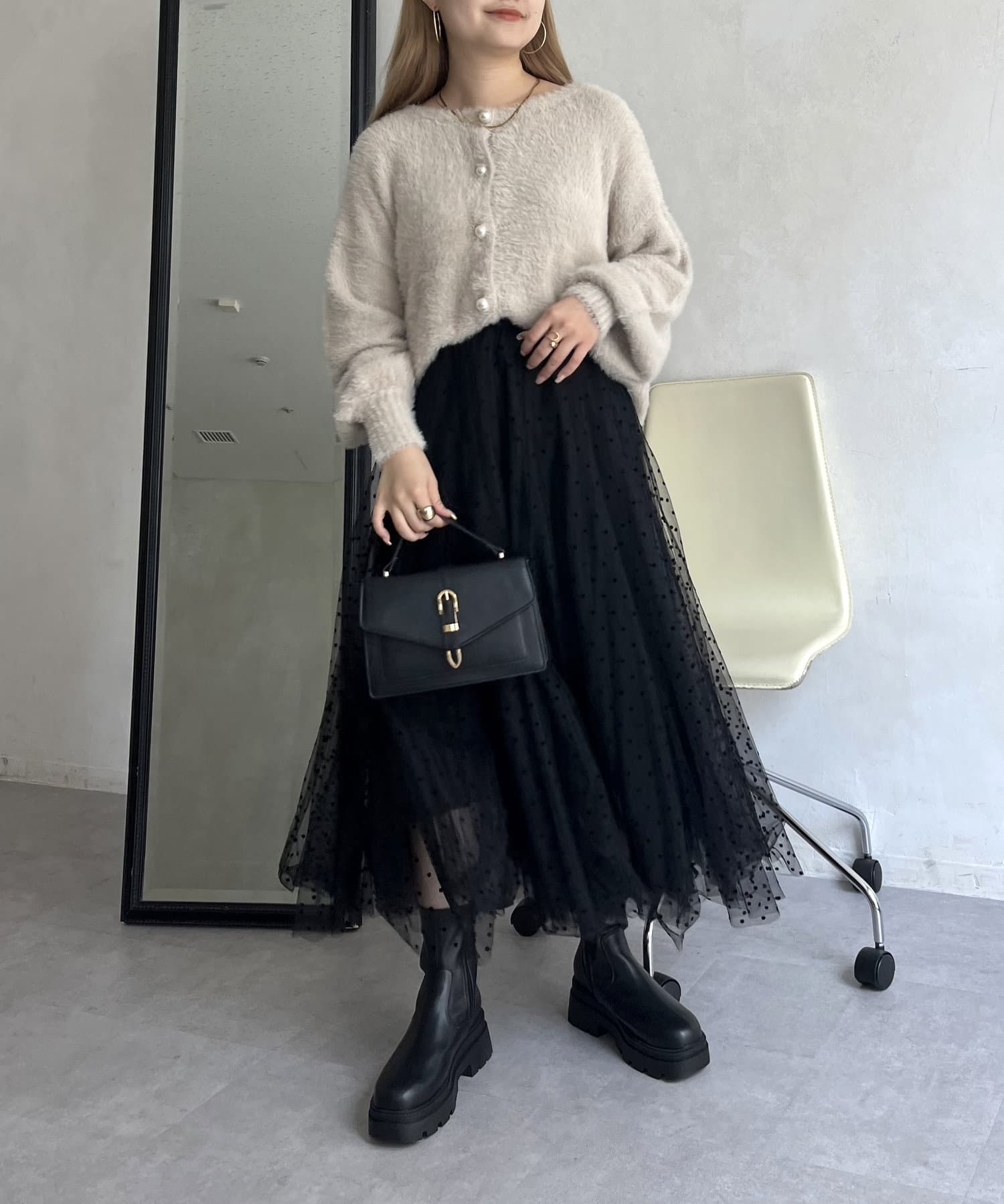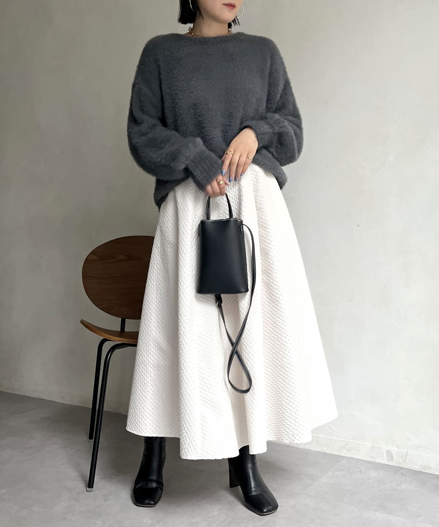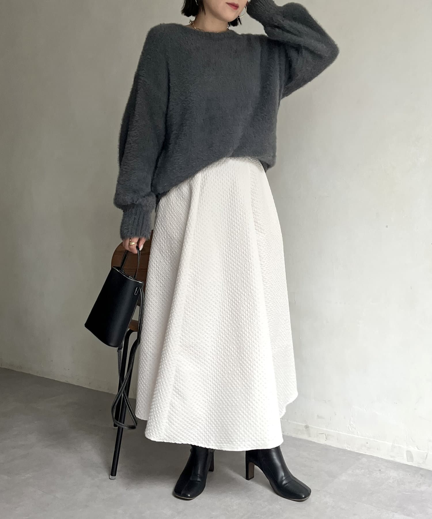 シャギー素材が女性らしく
