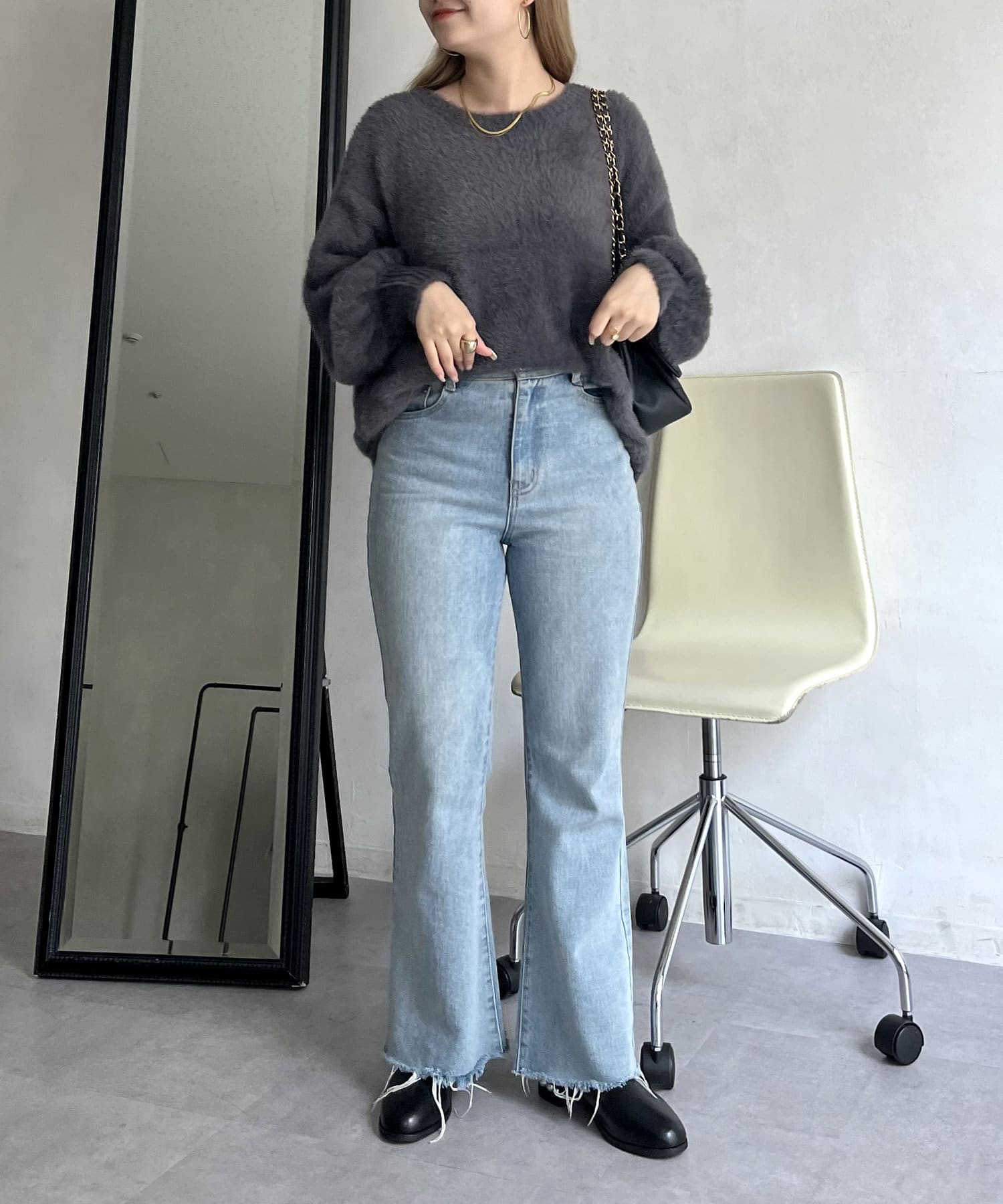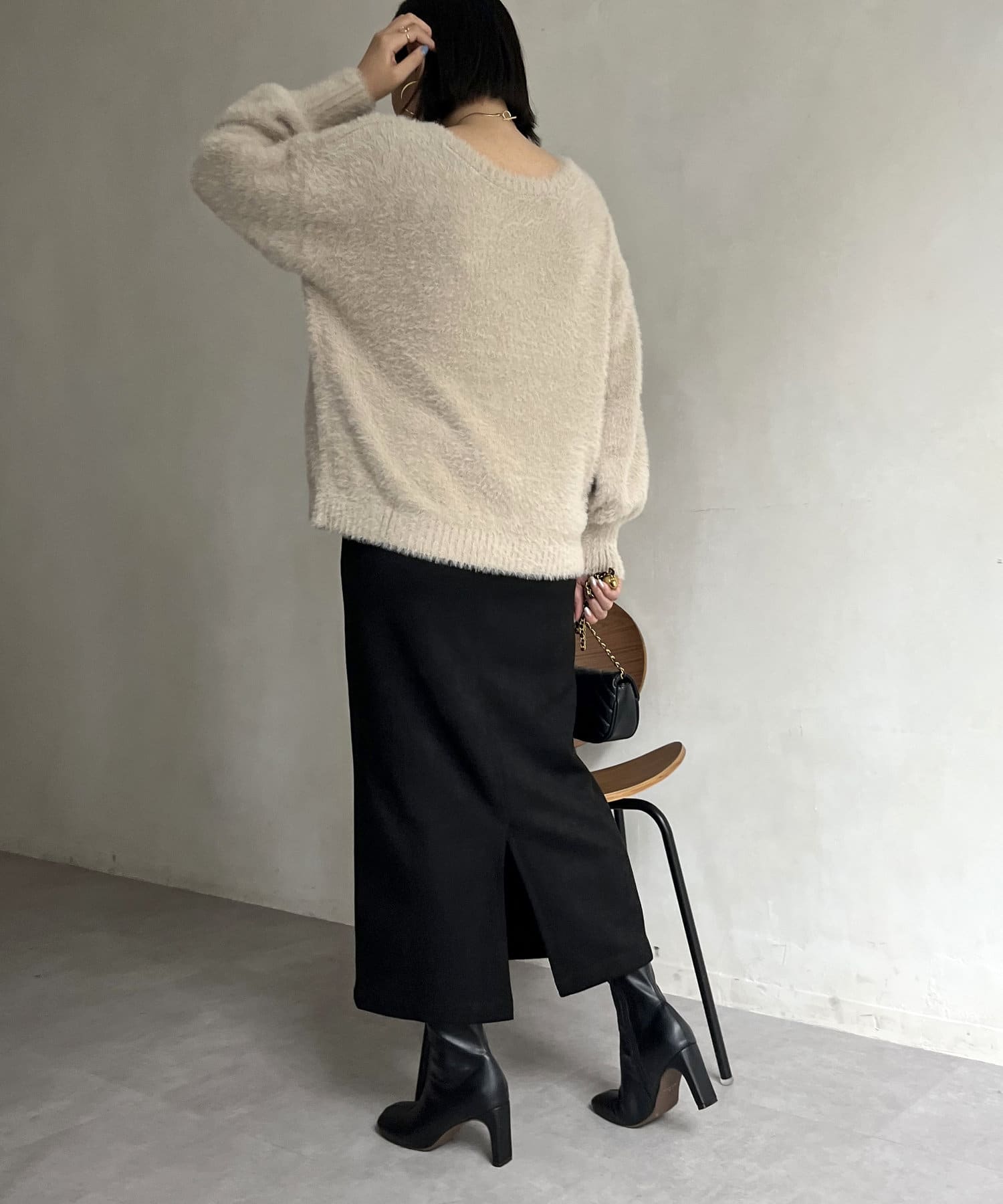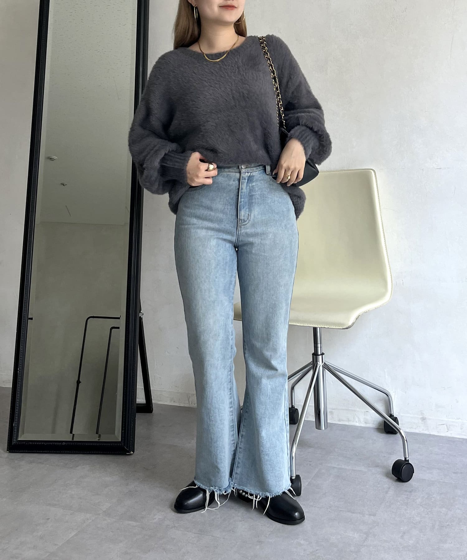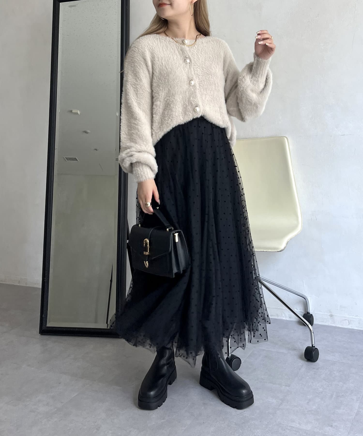 シャギー素材が女性らしく