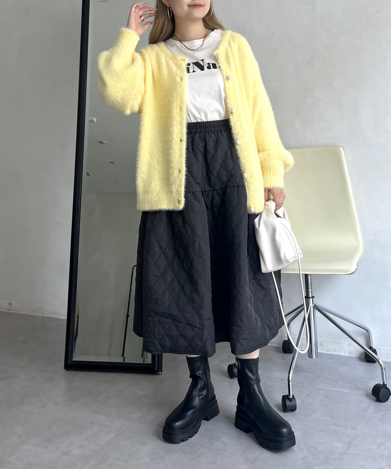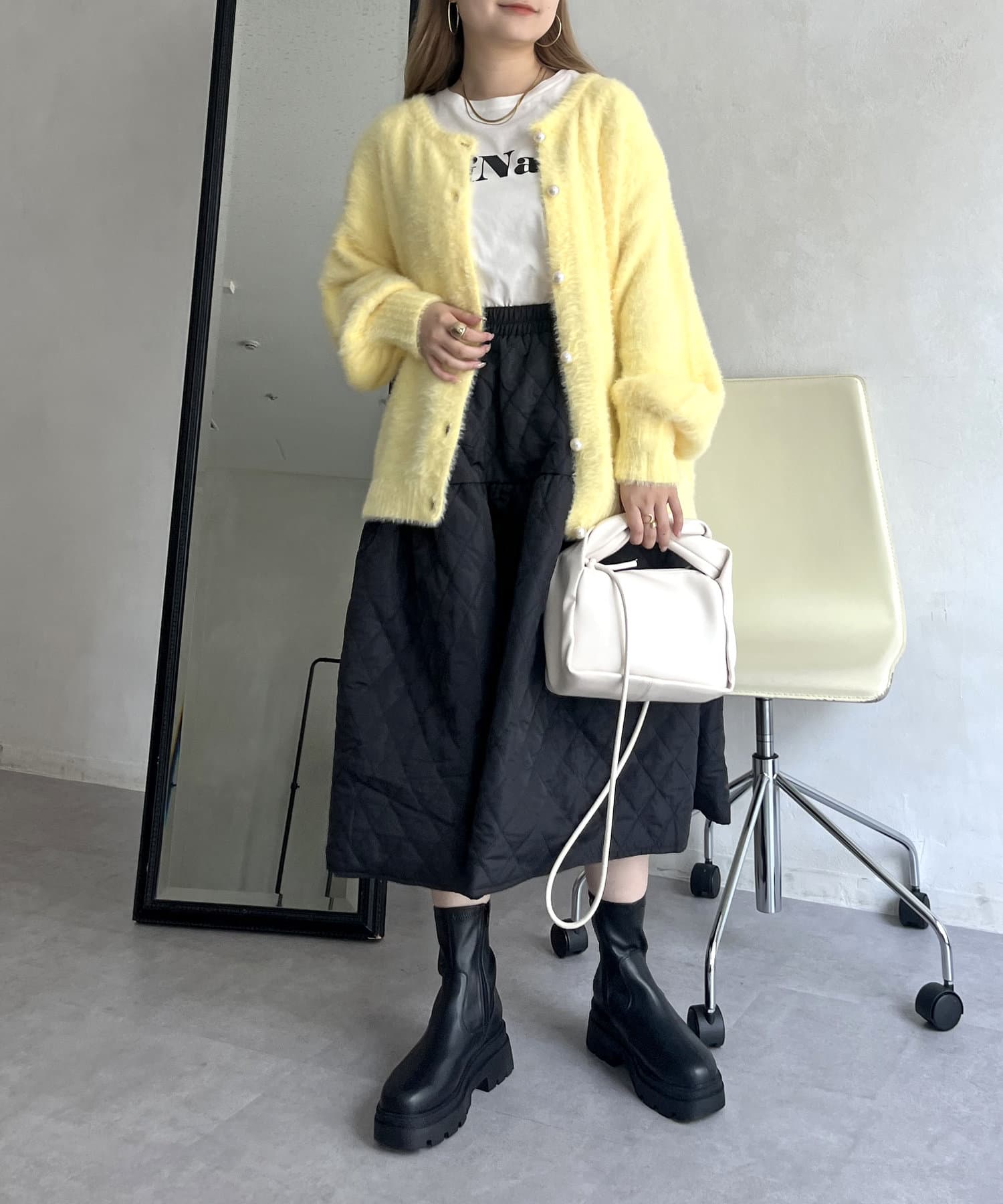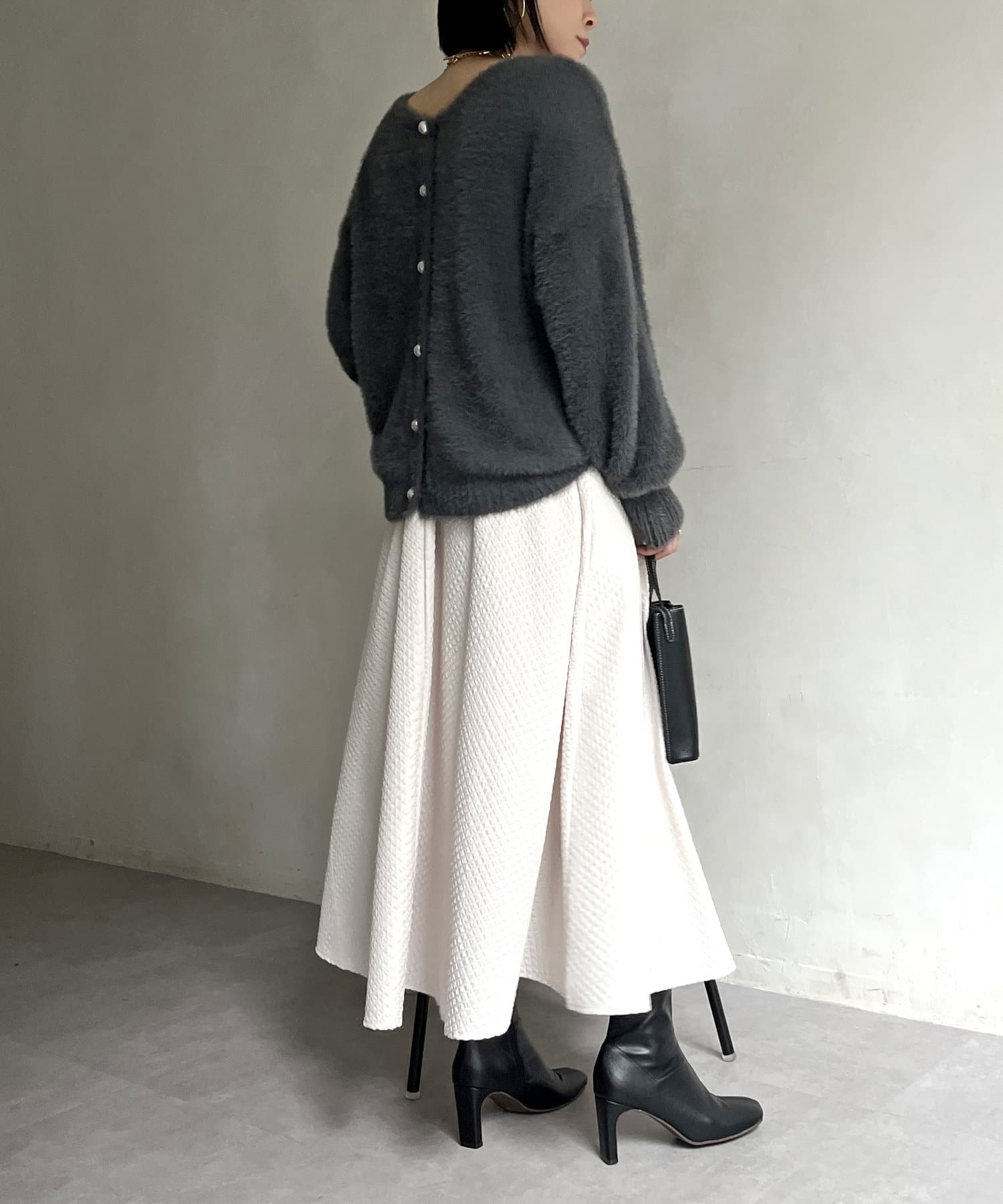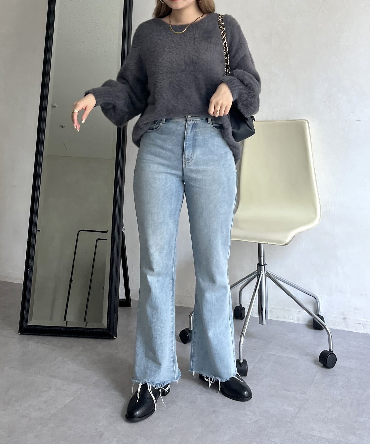 シャギー素材が女性らしく