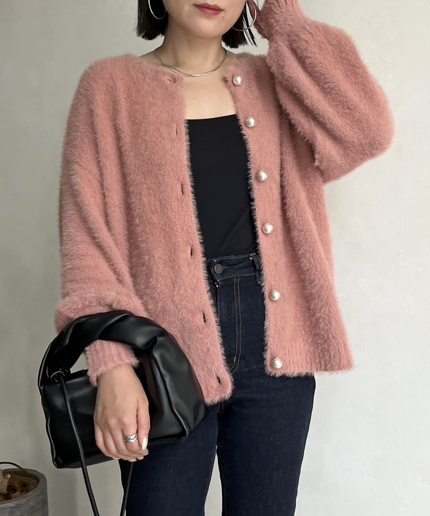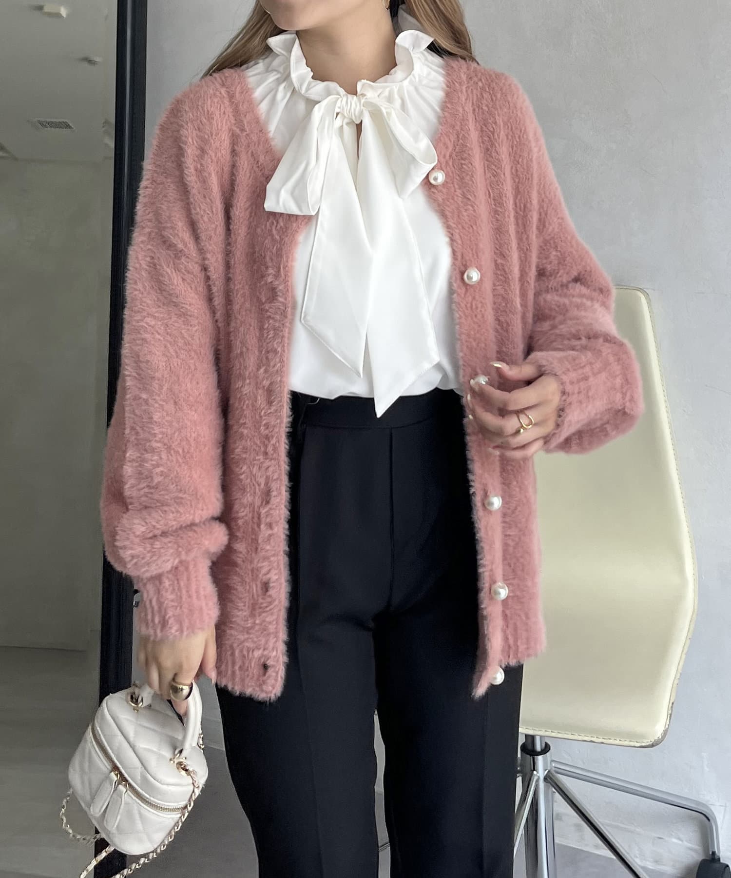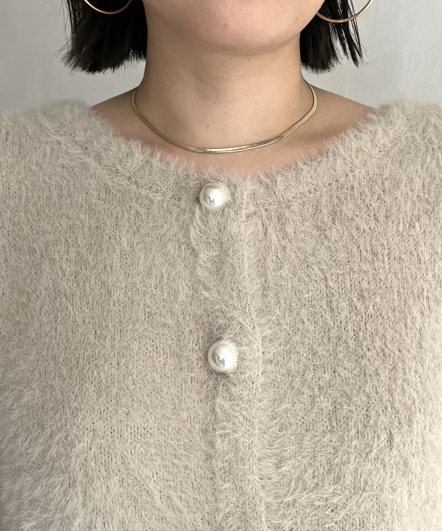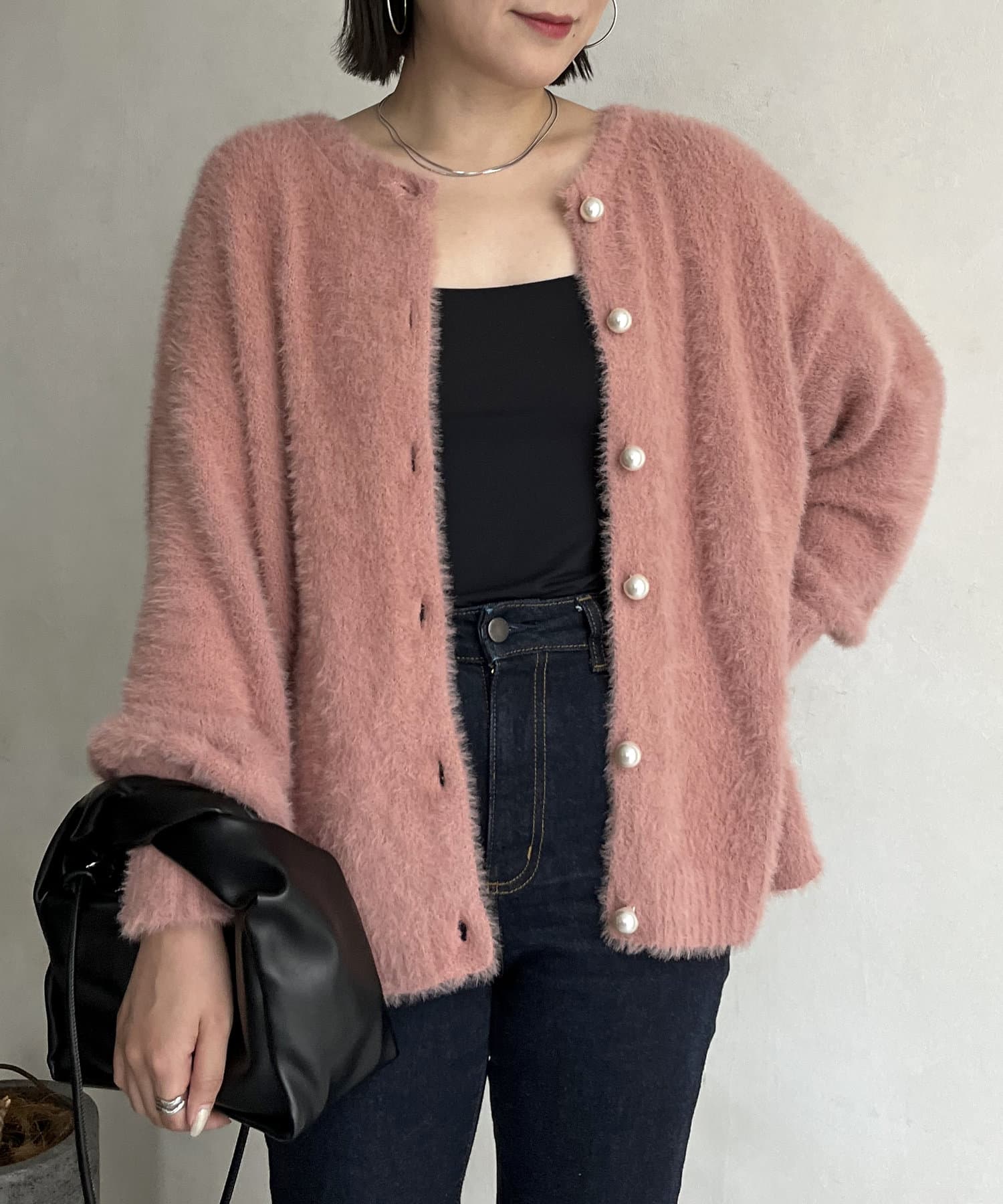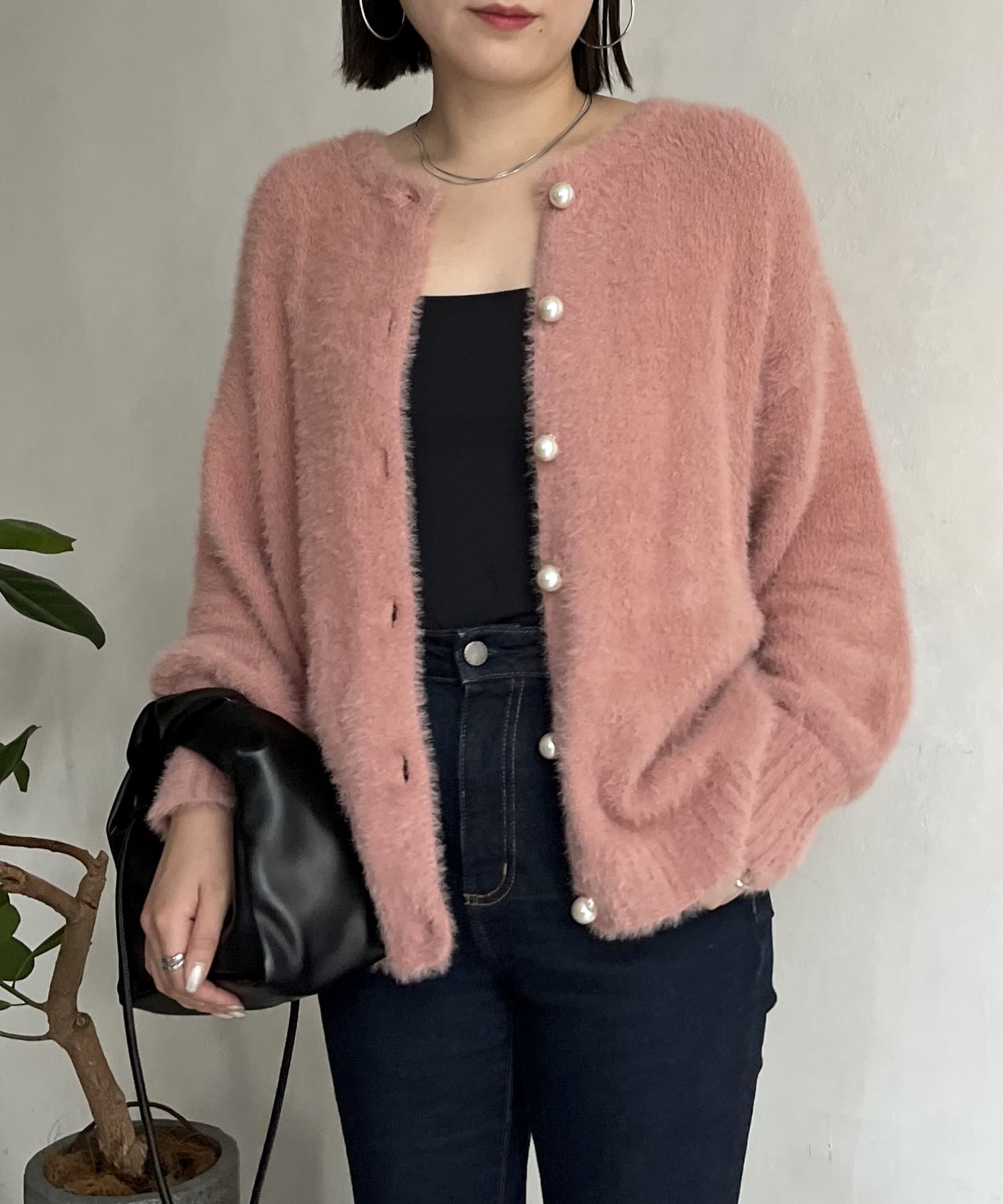 パールボタン2WAYシャギーニットカーデ
