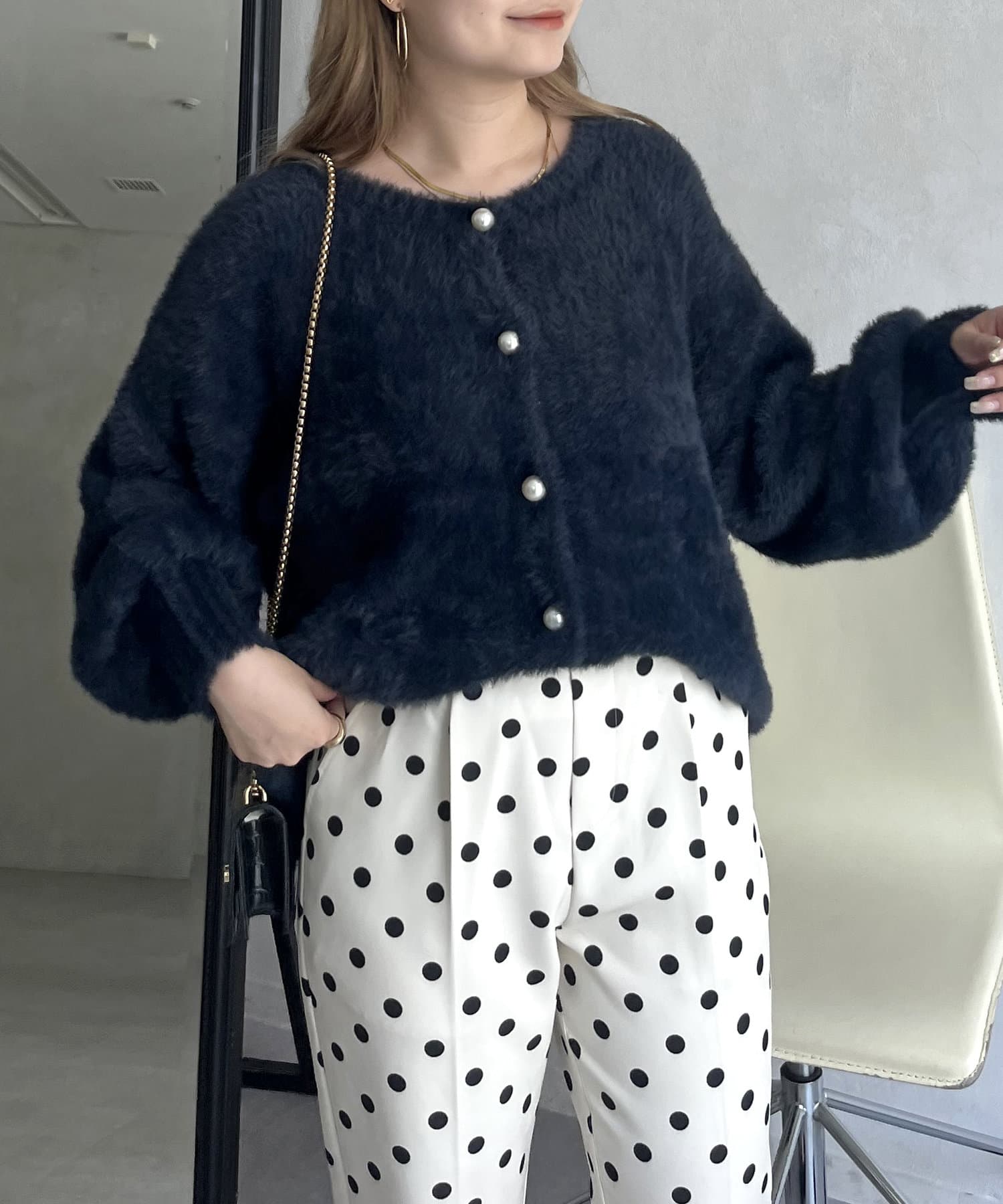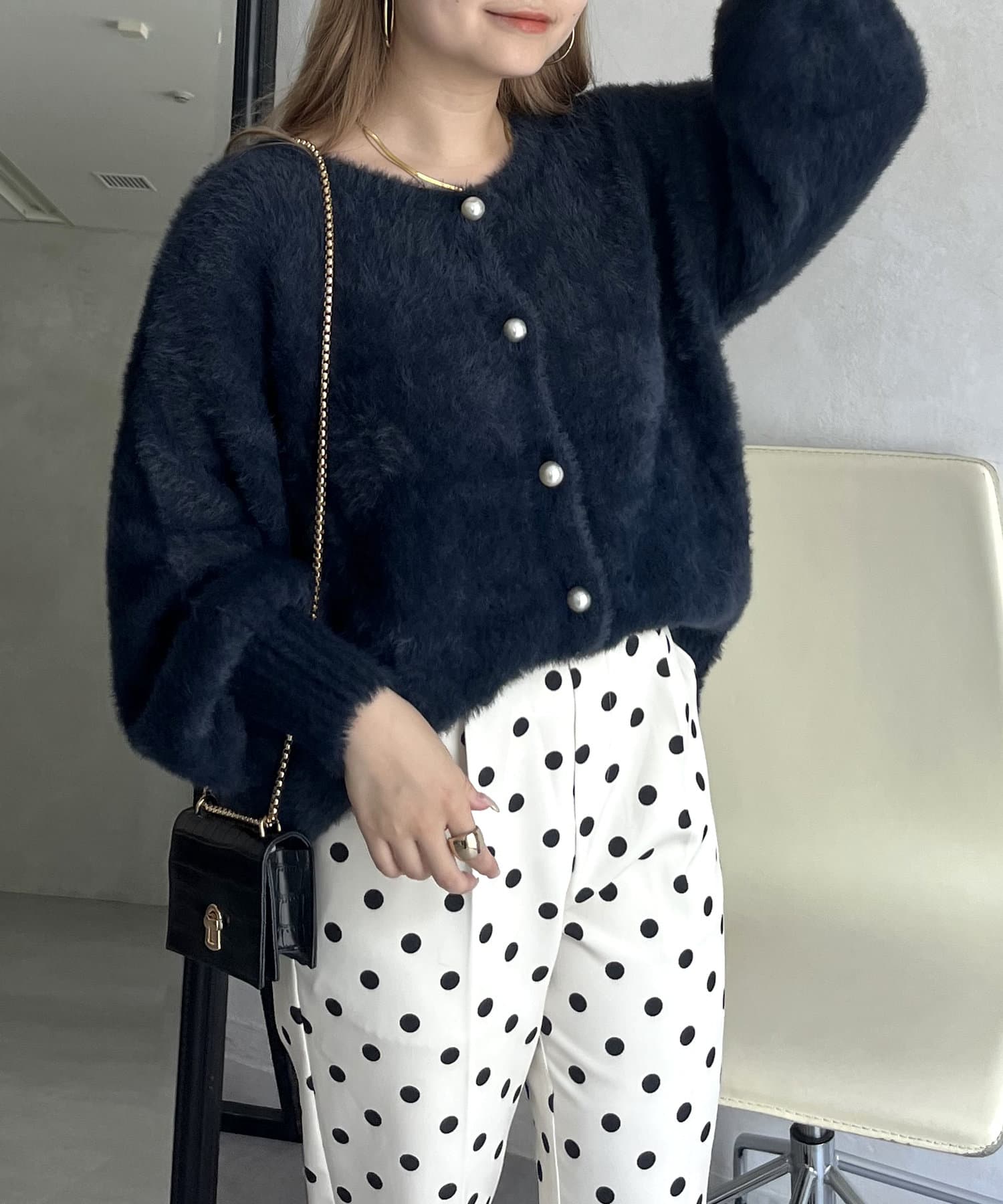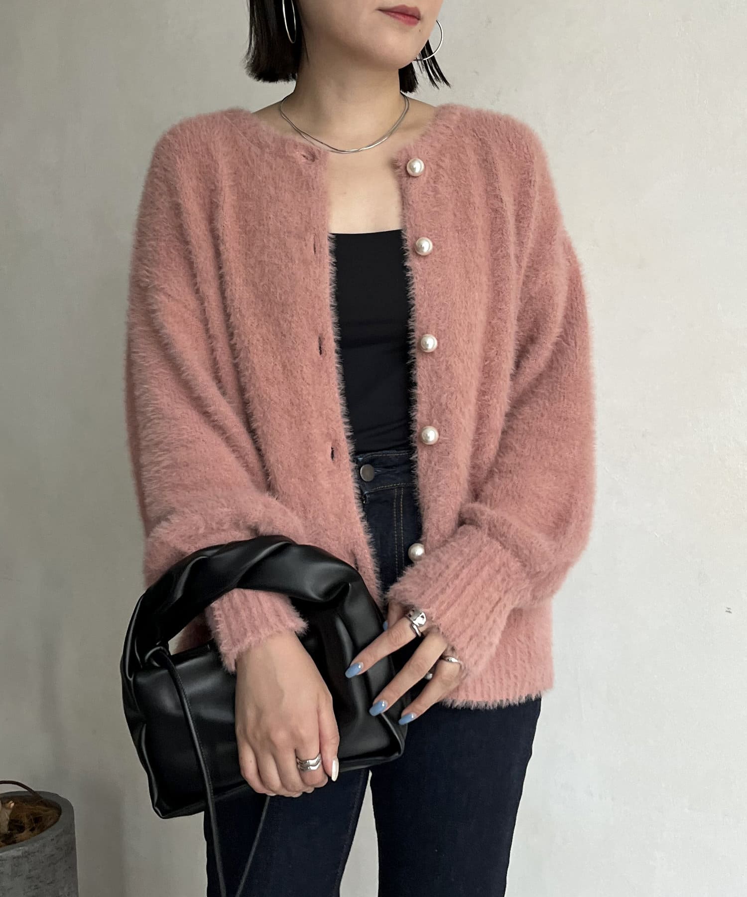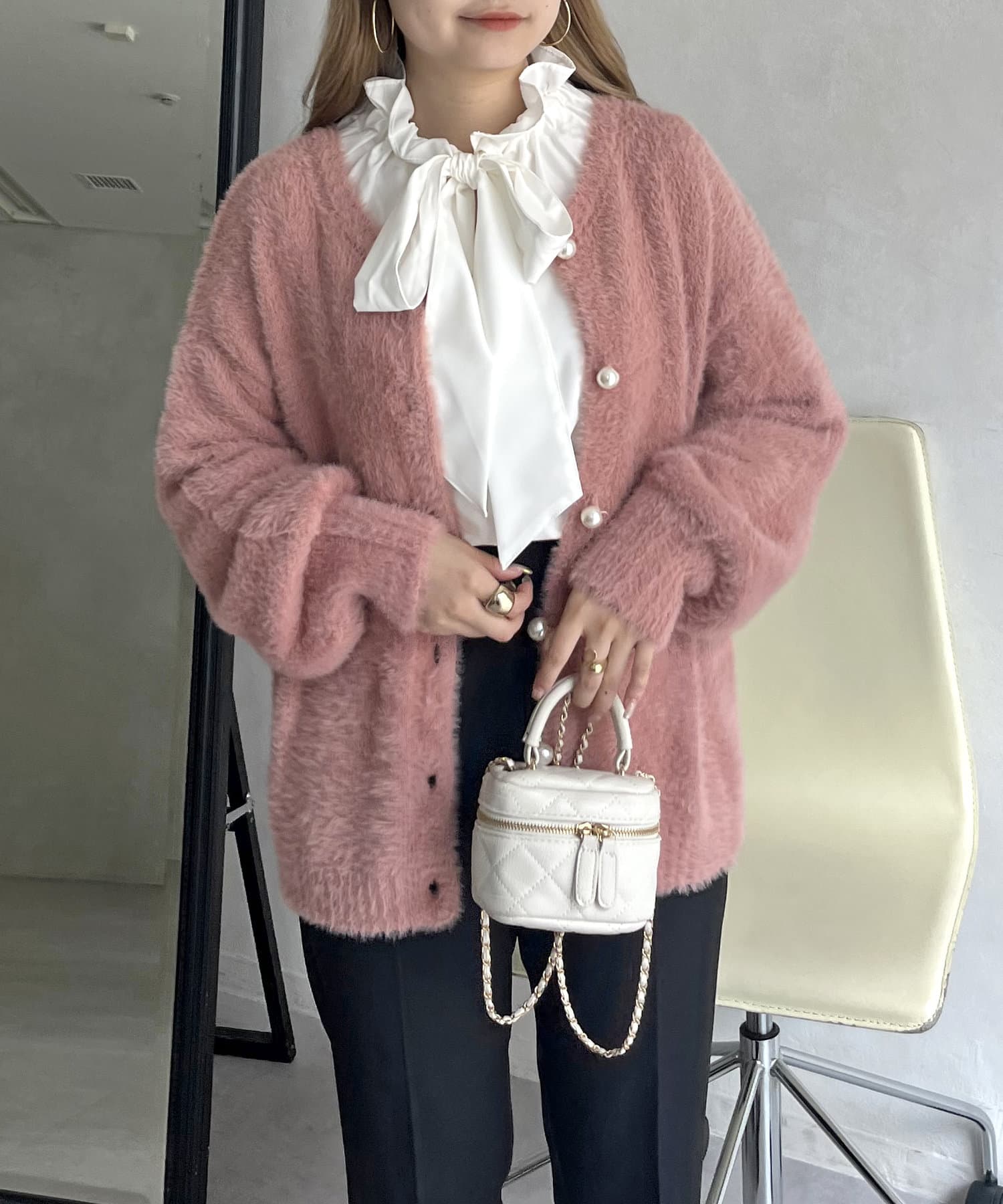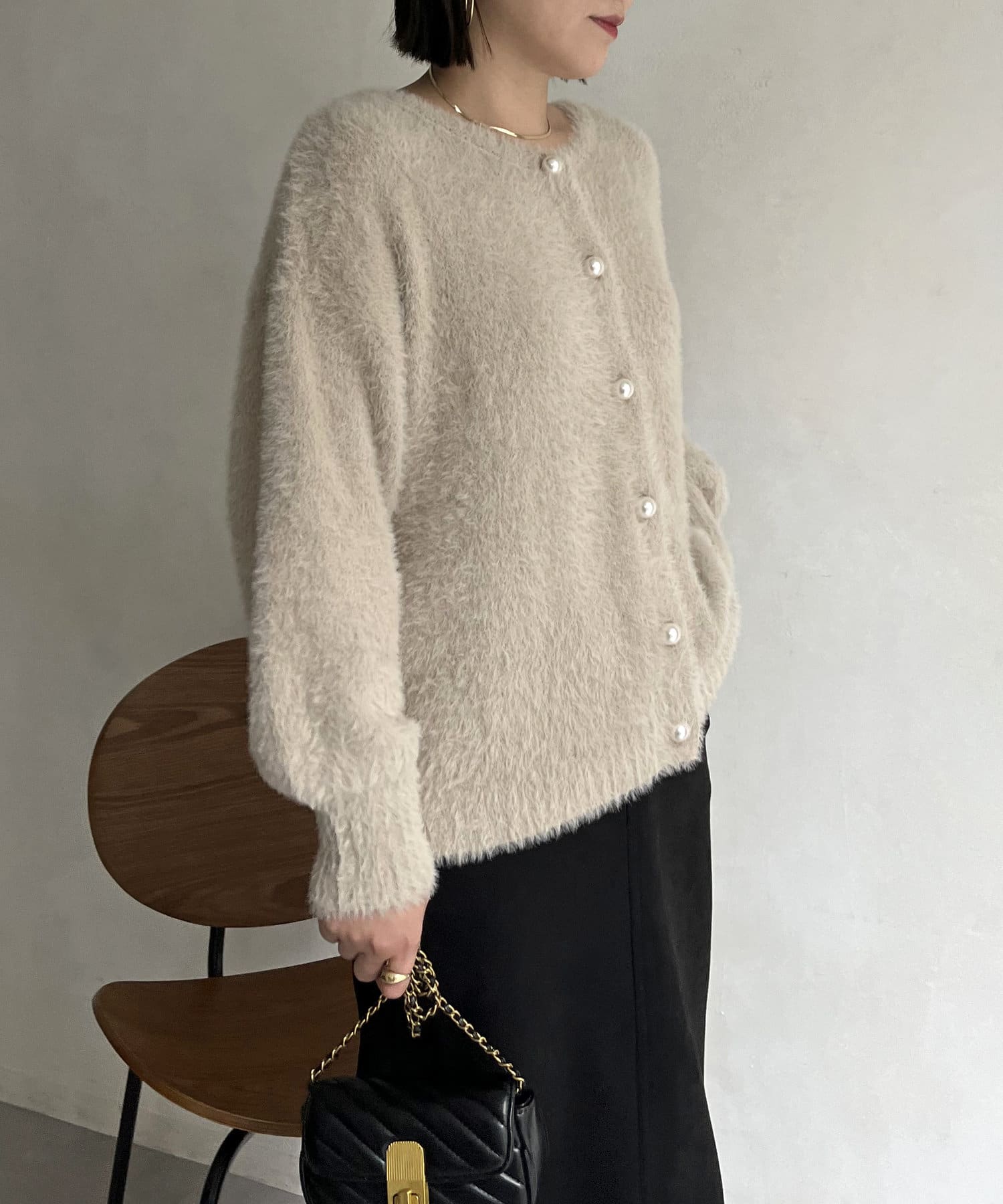 パールボタン2WAYシャギーニットカーデ