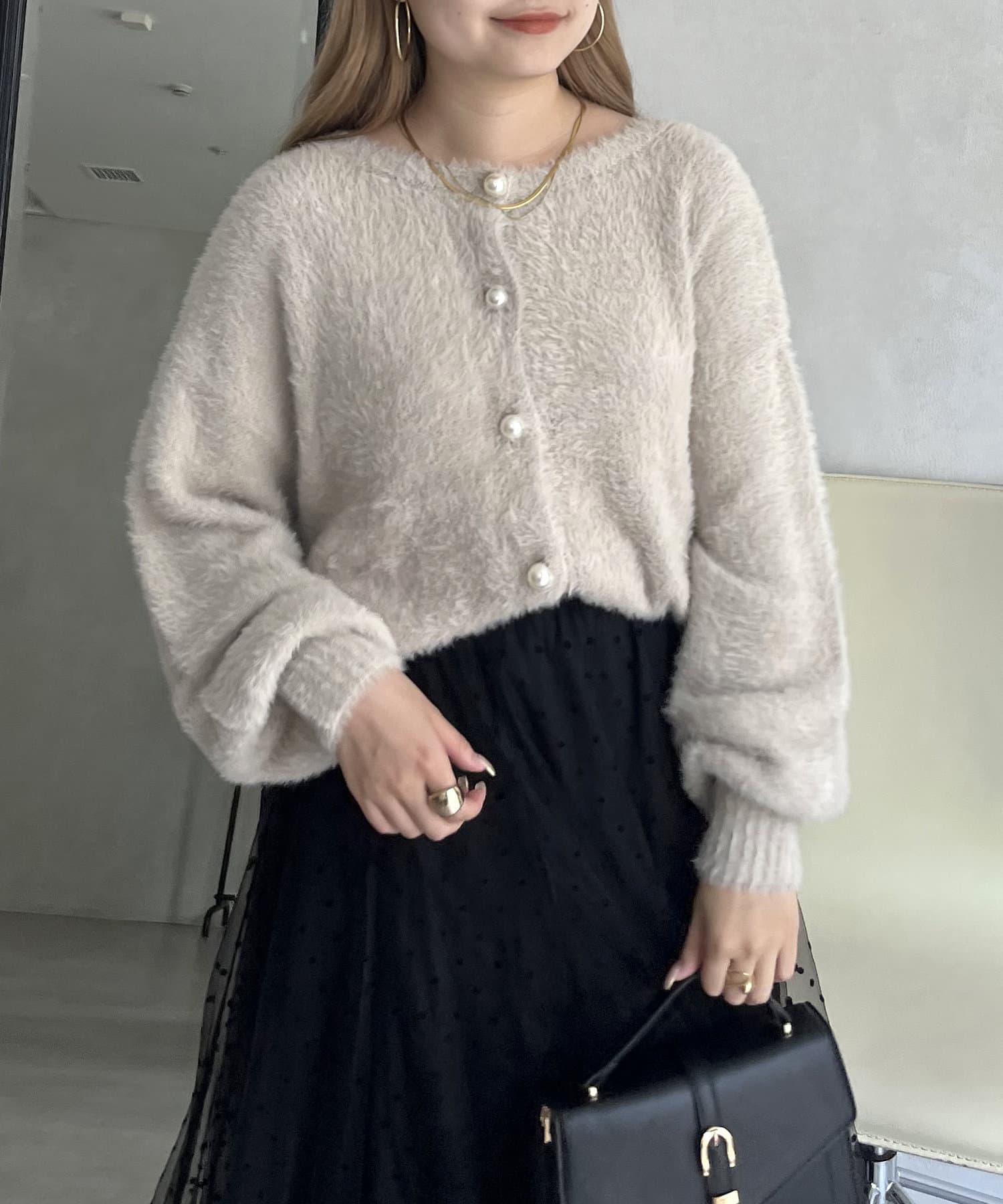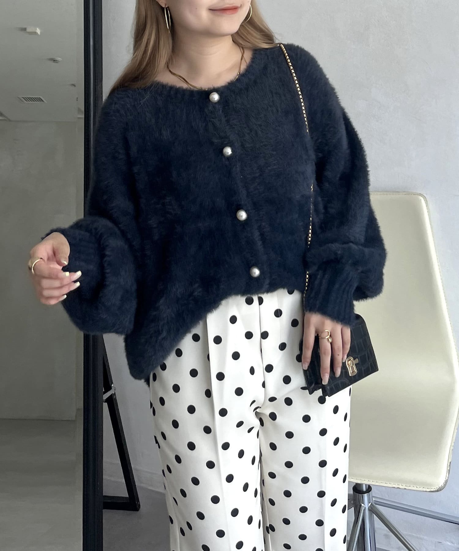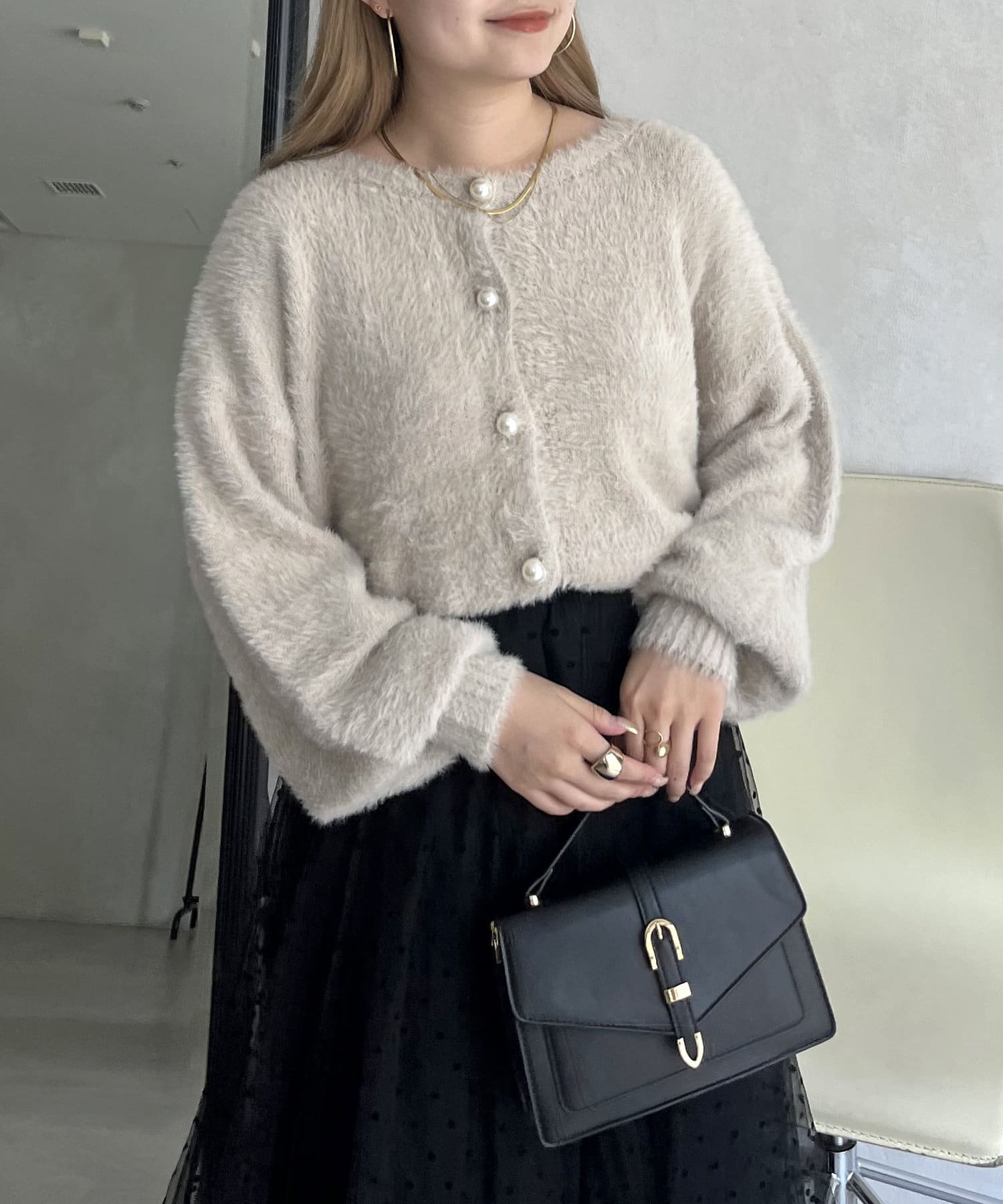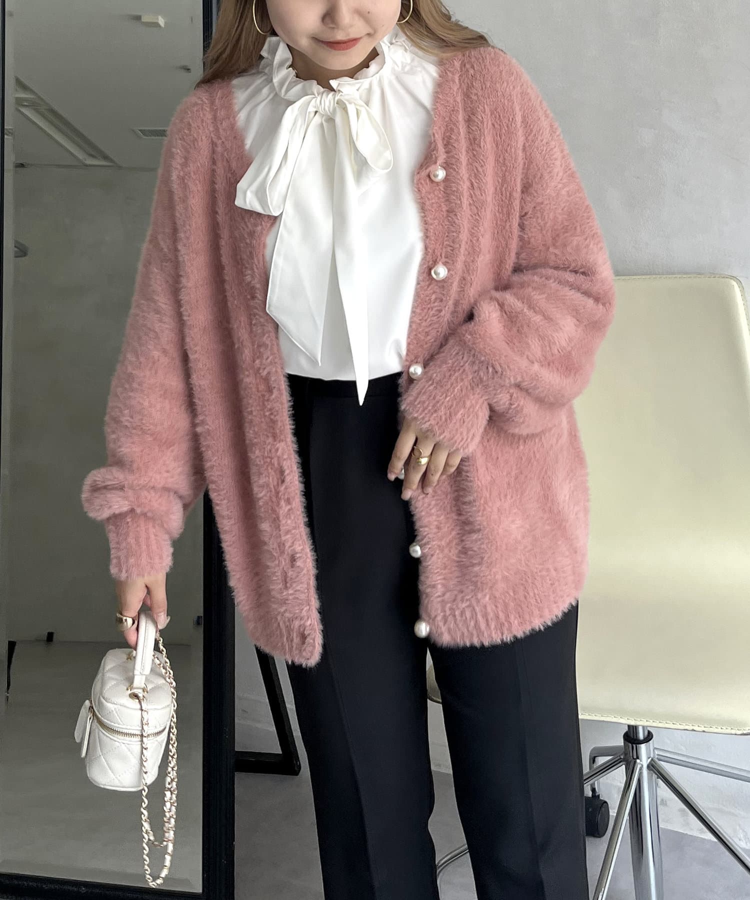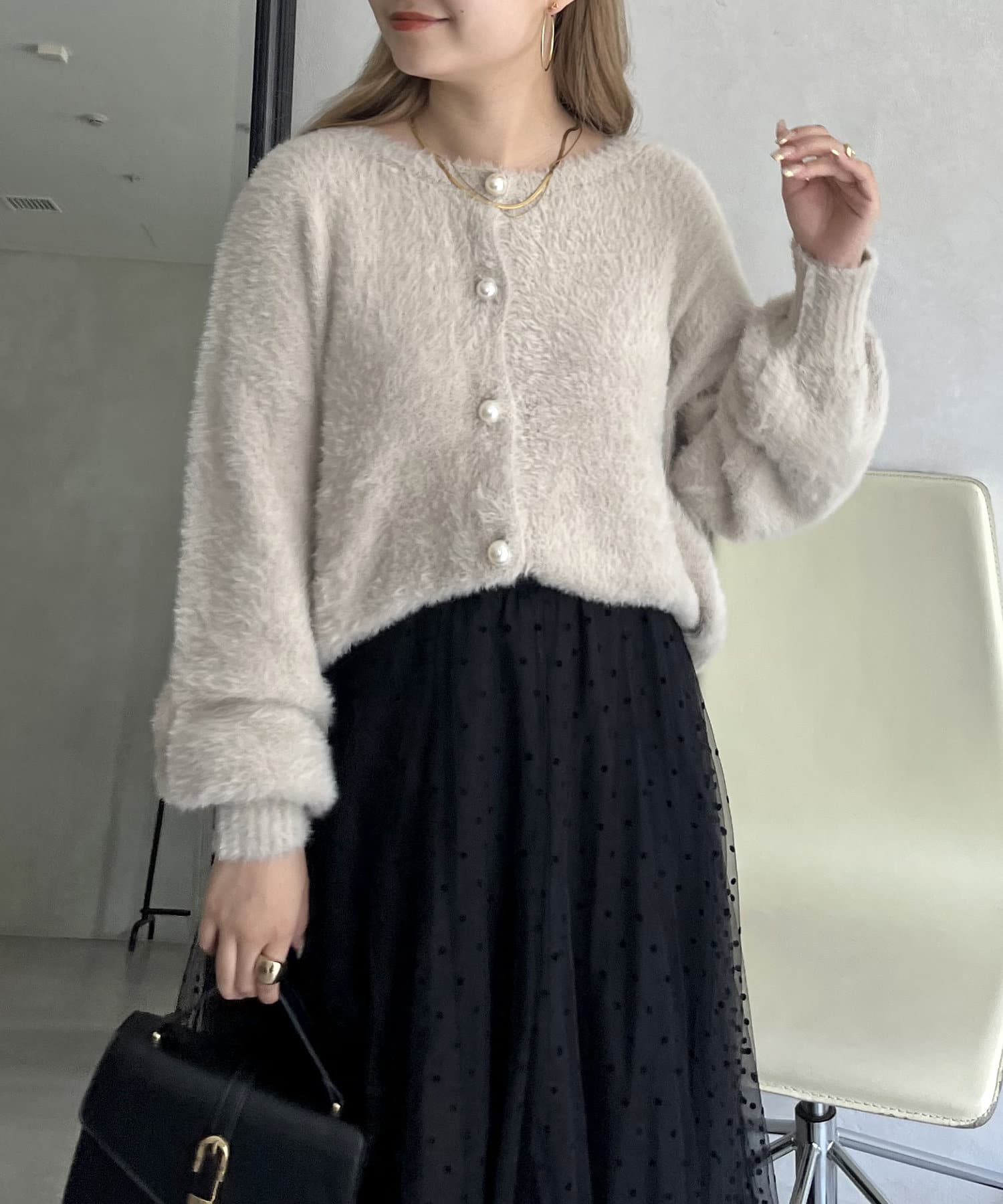 パールボタン2WAYシャギーニットカーデ
