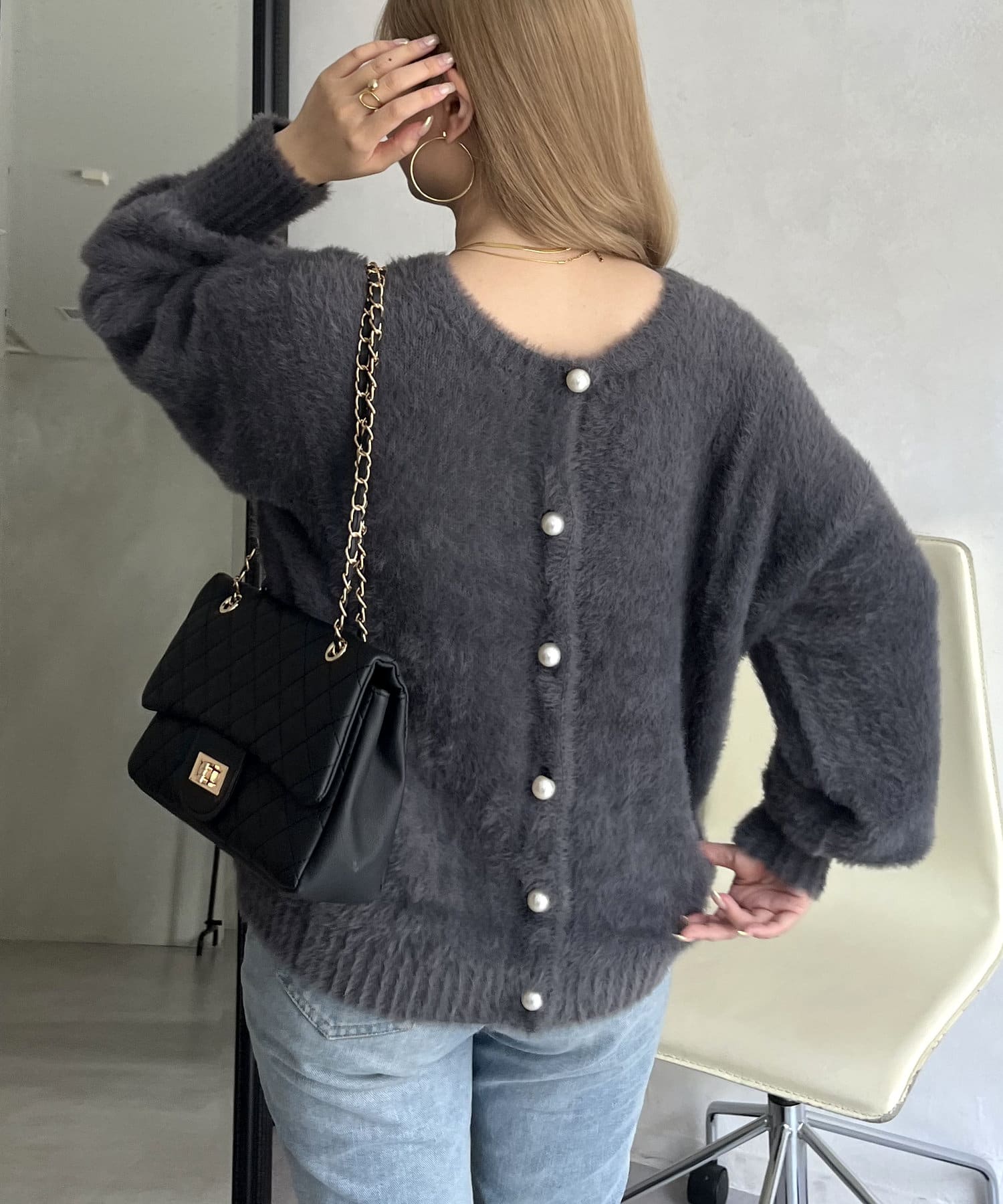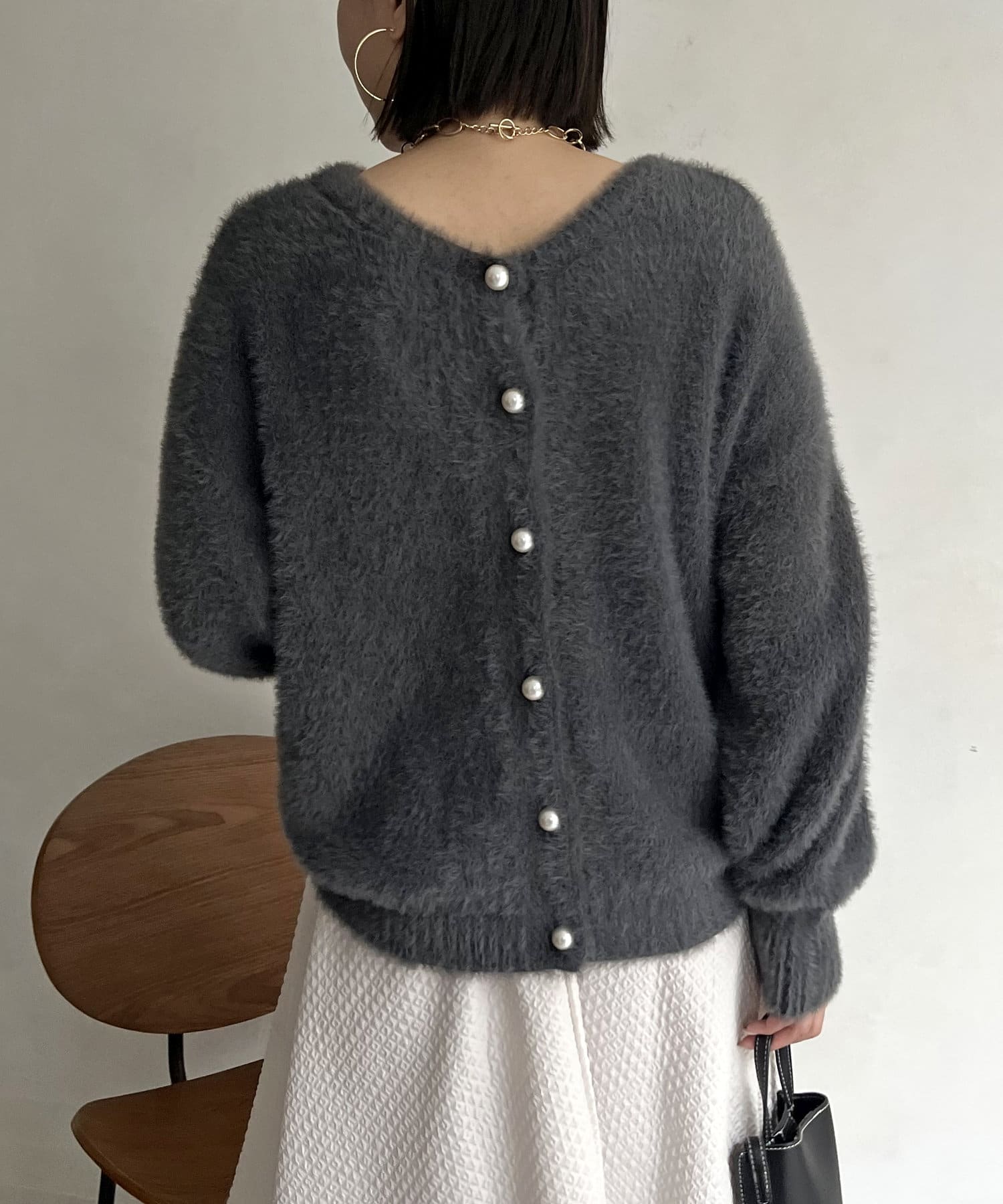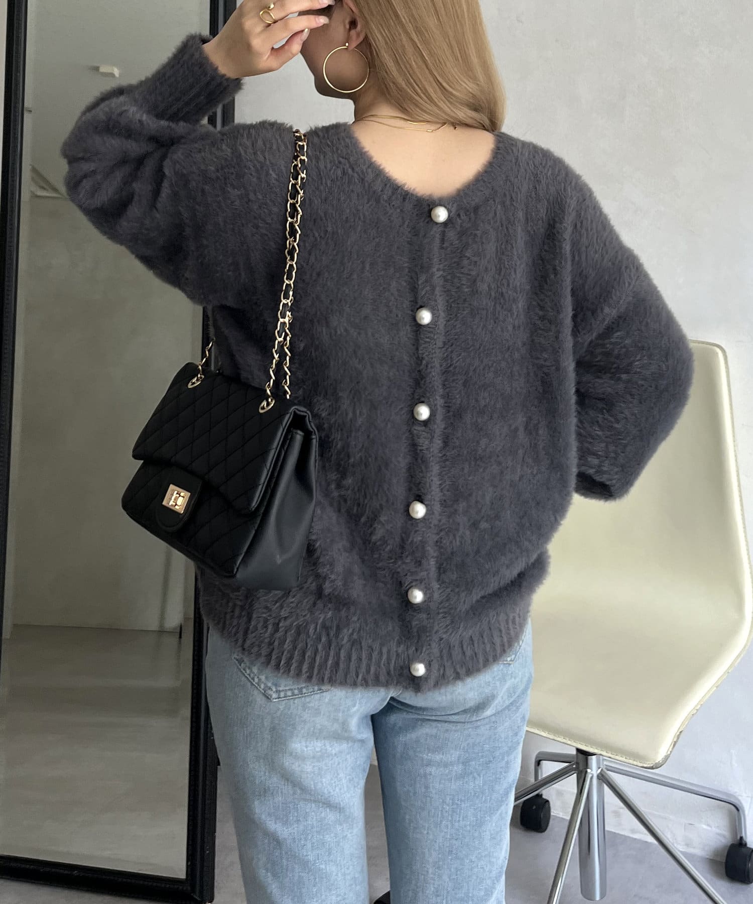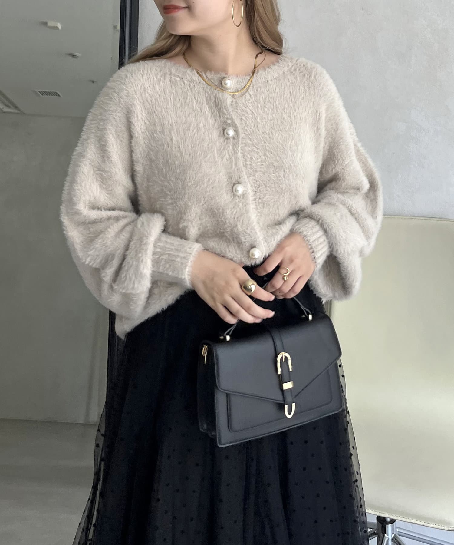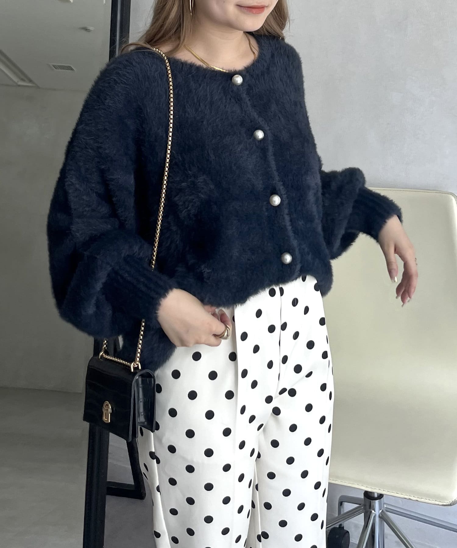 パールボタン2WAYシャギーニットカーデ