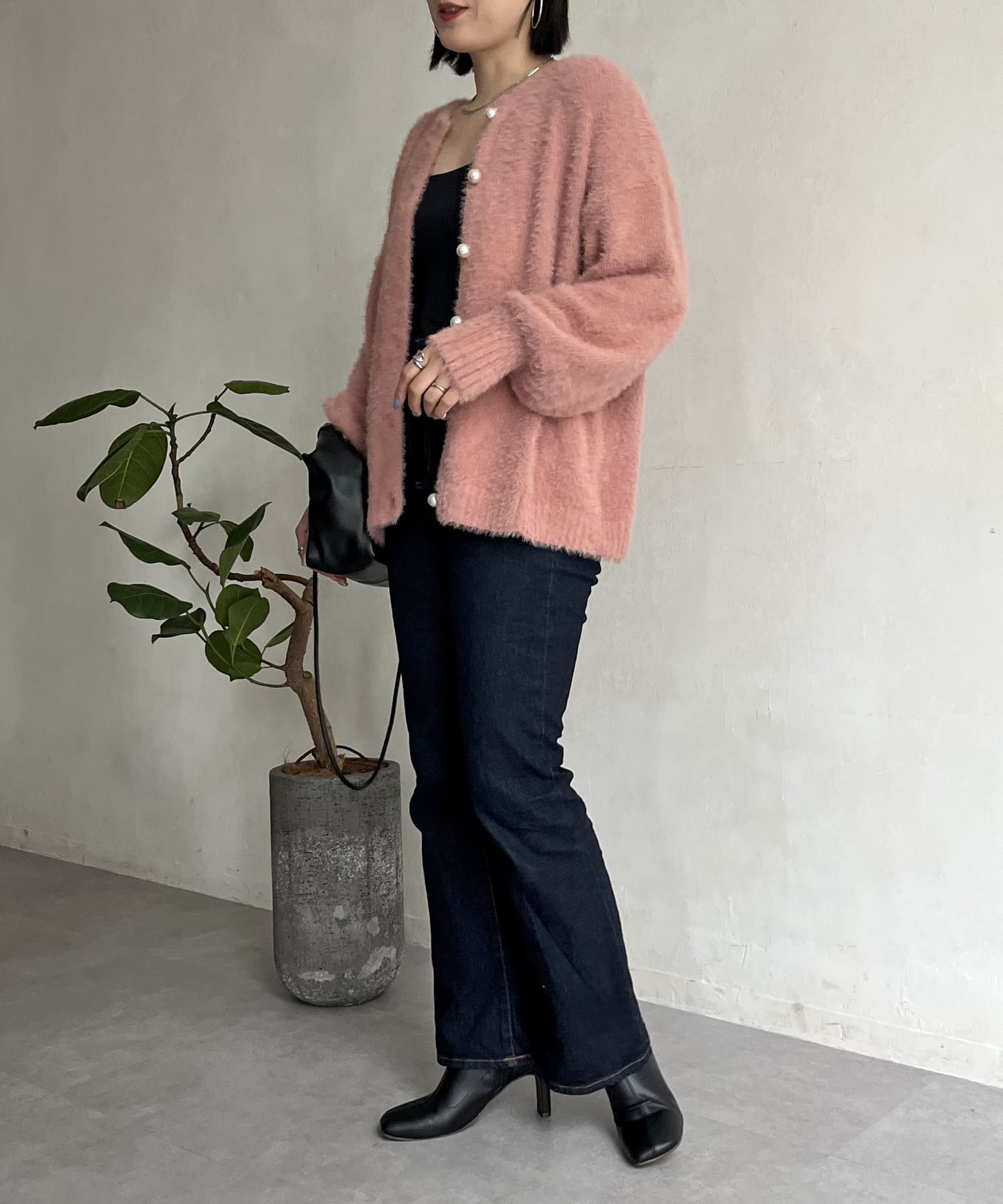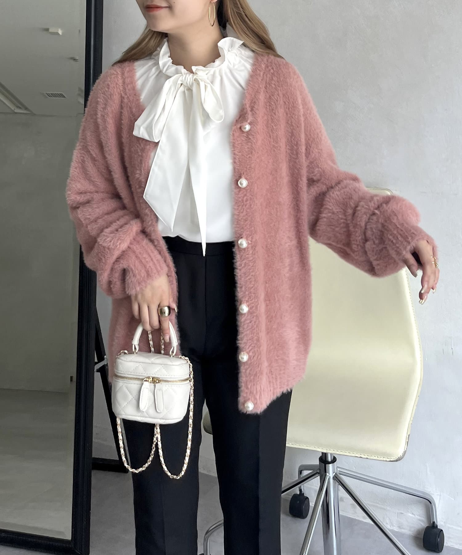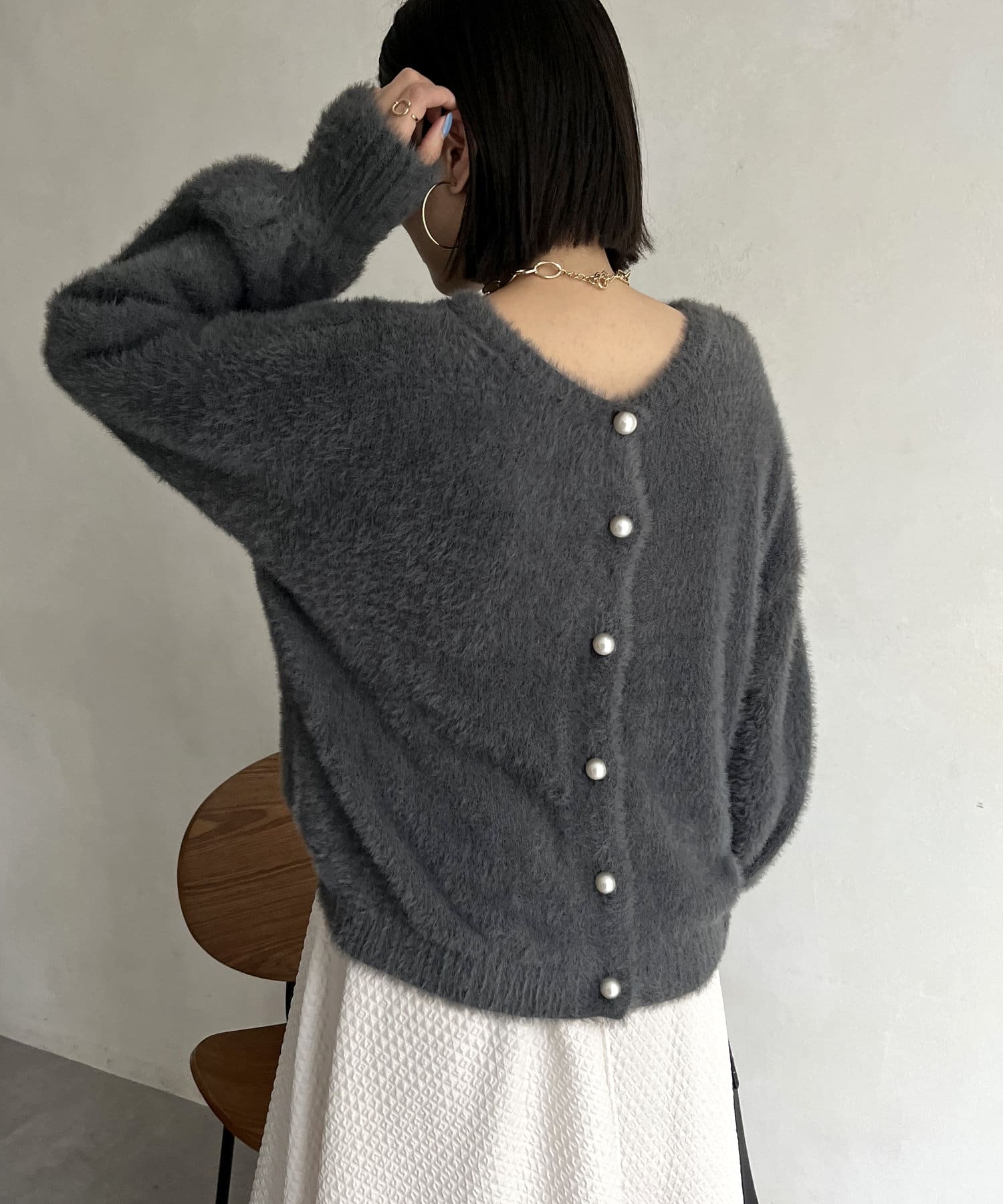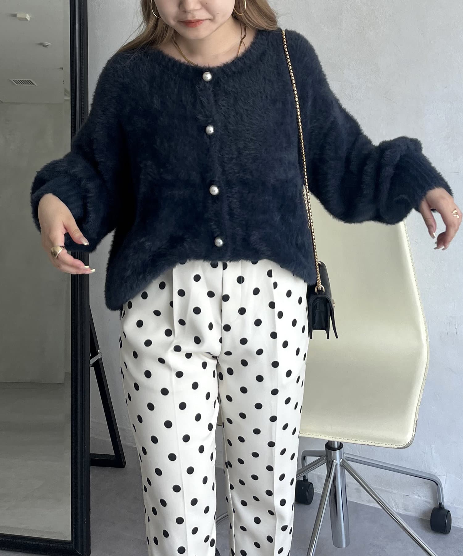 パールボタン2WAYシャギーニットカーデ