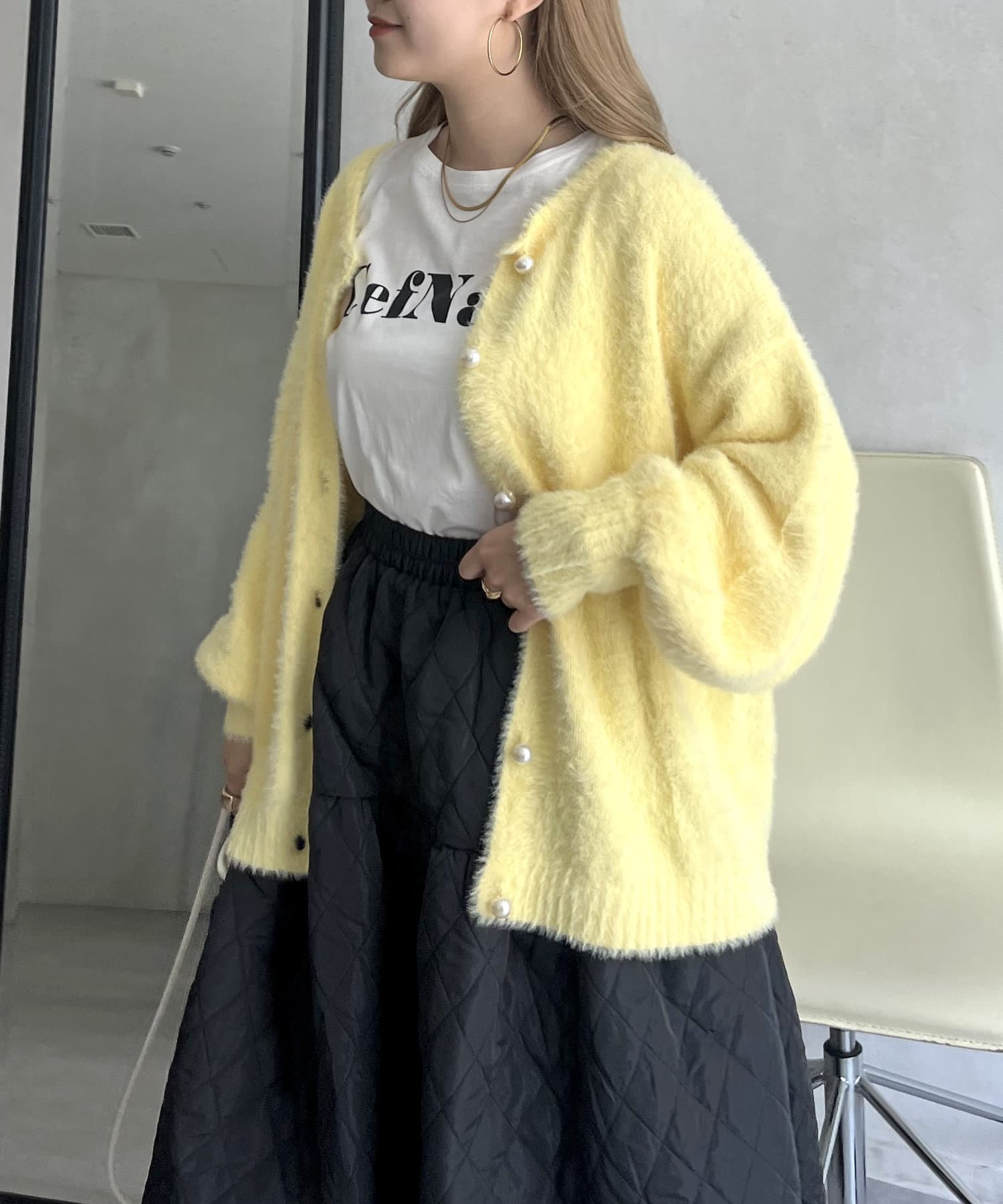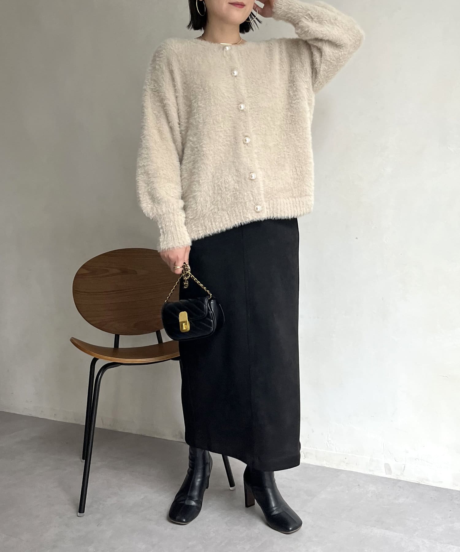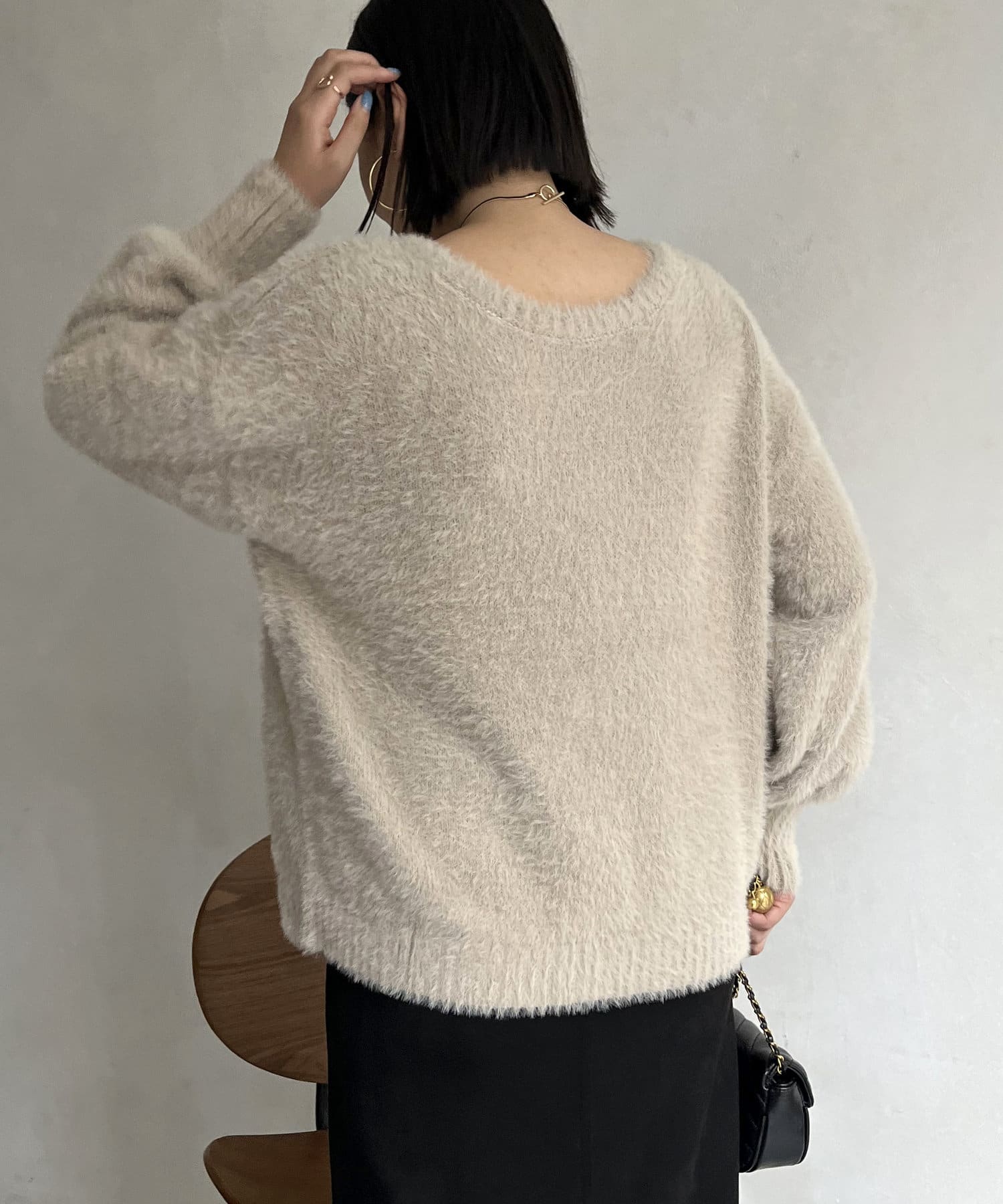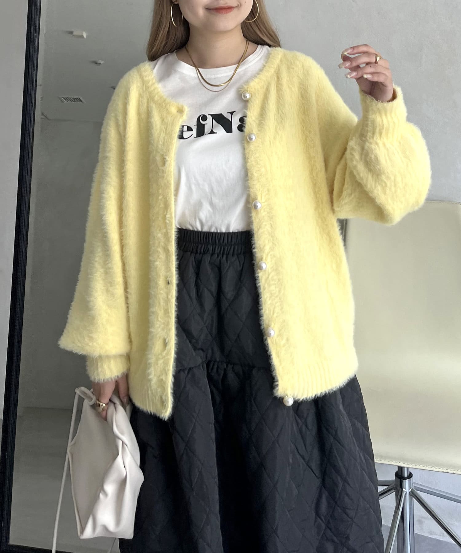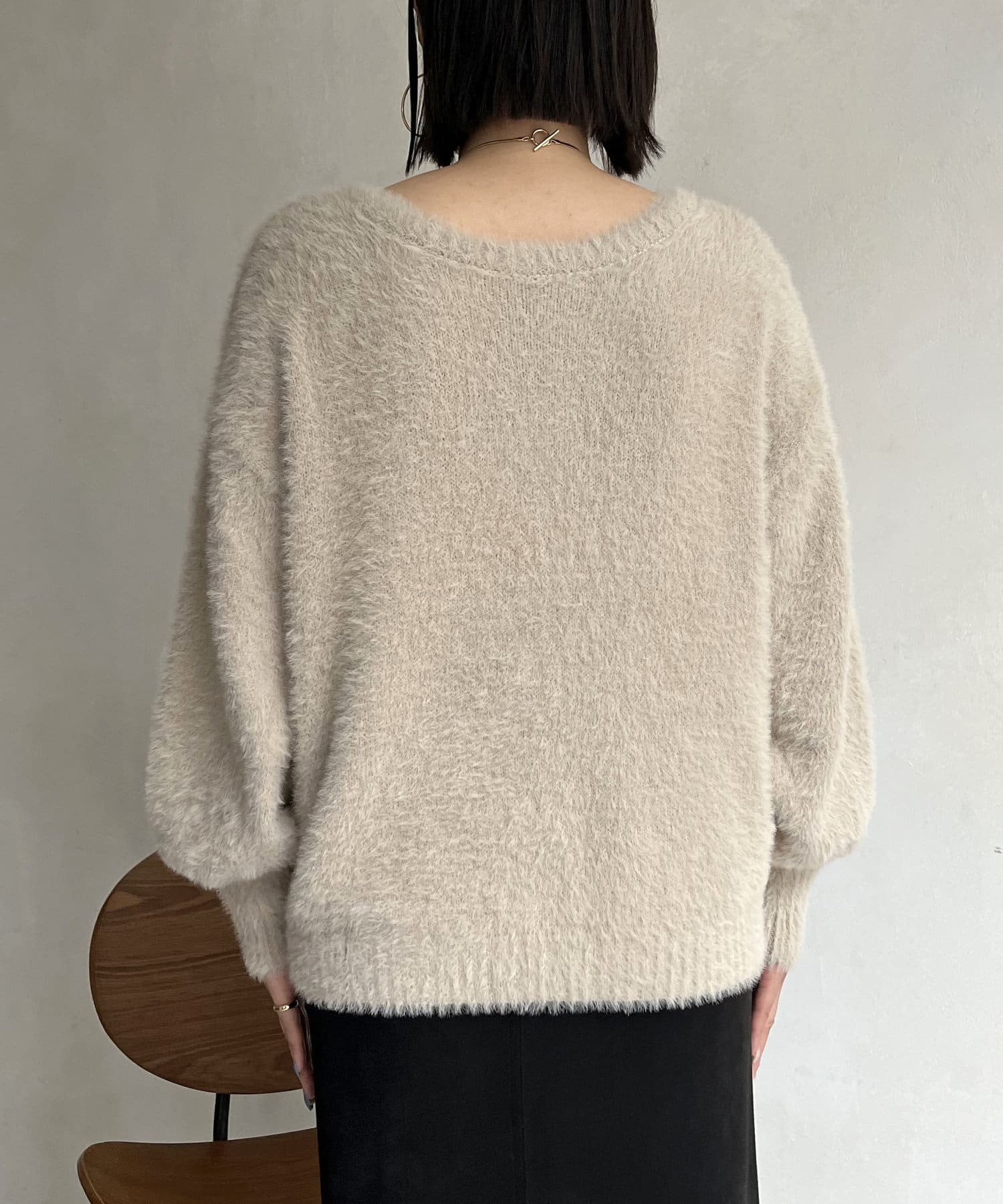パールボタン2WAYシャギーニットカーデ