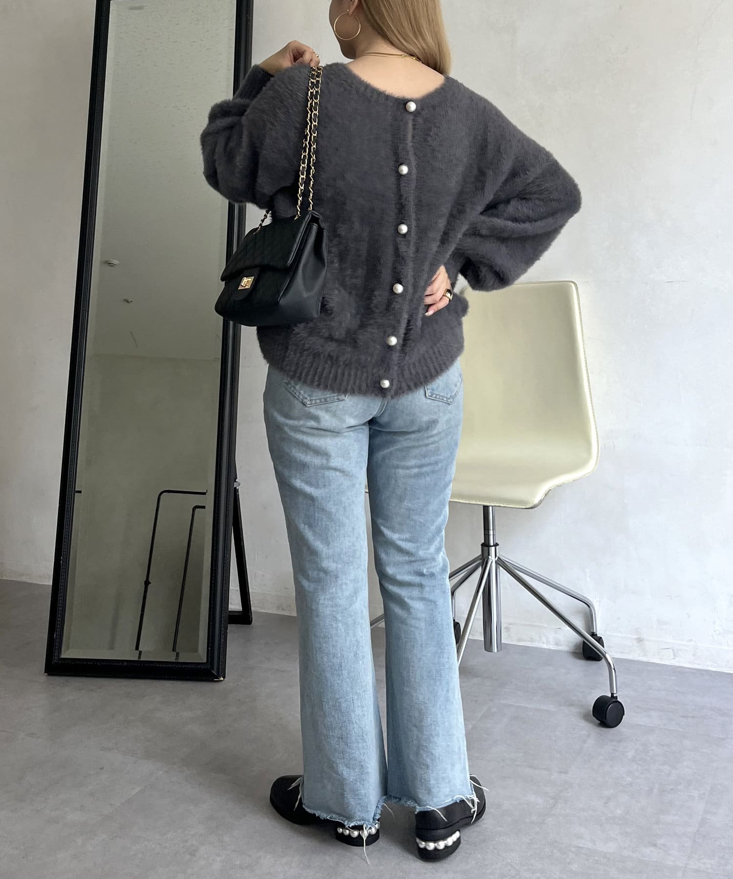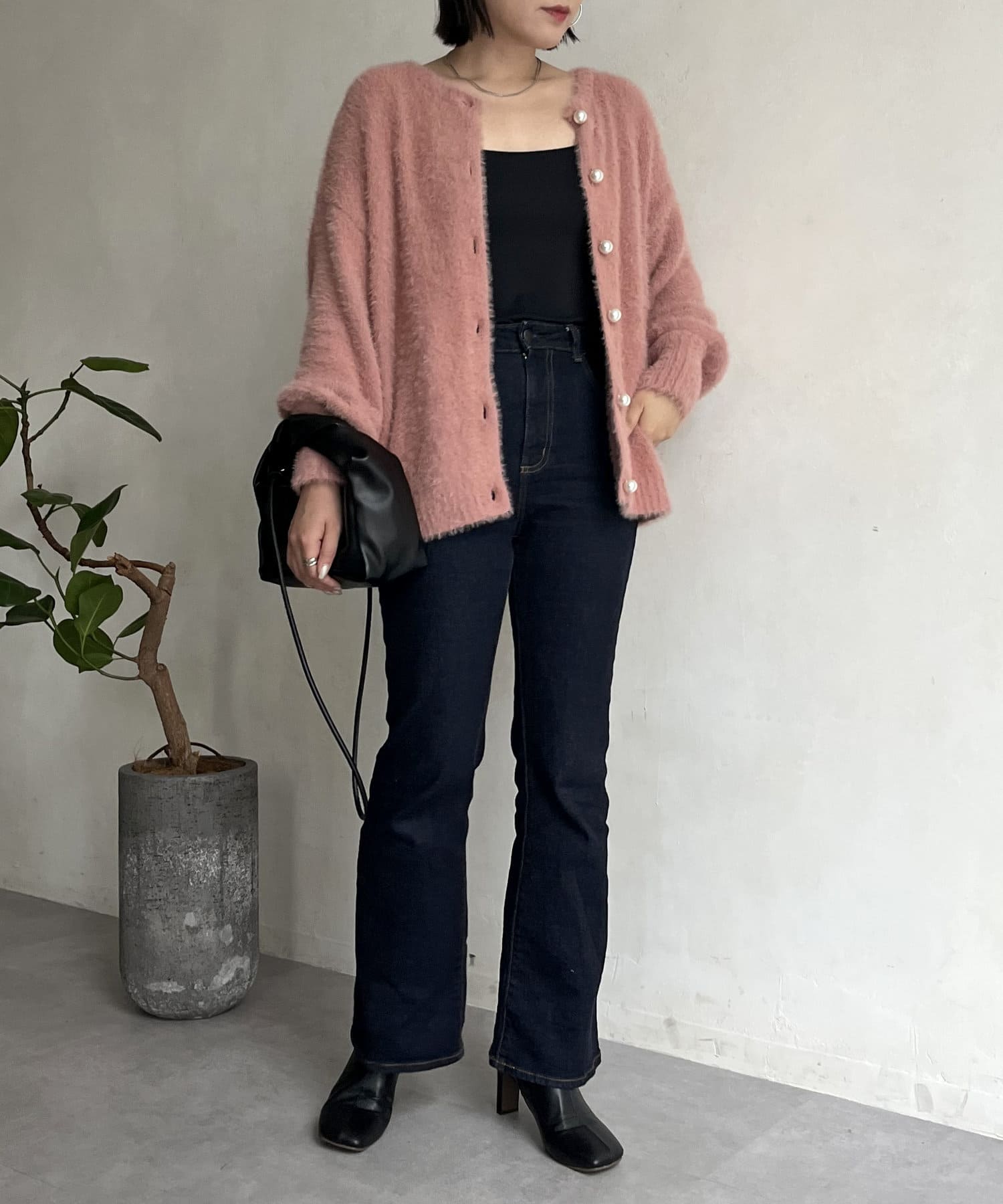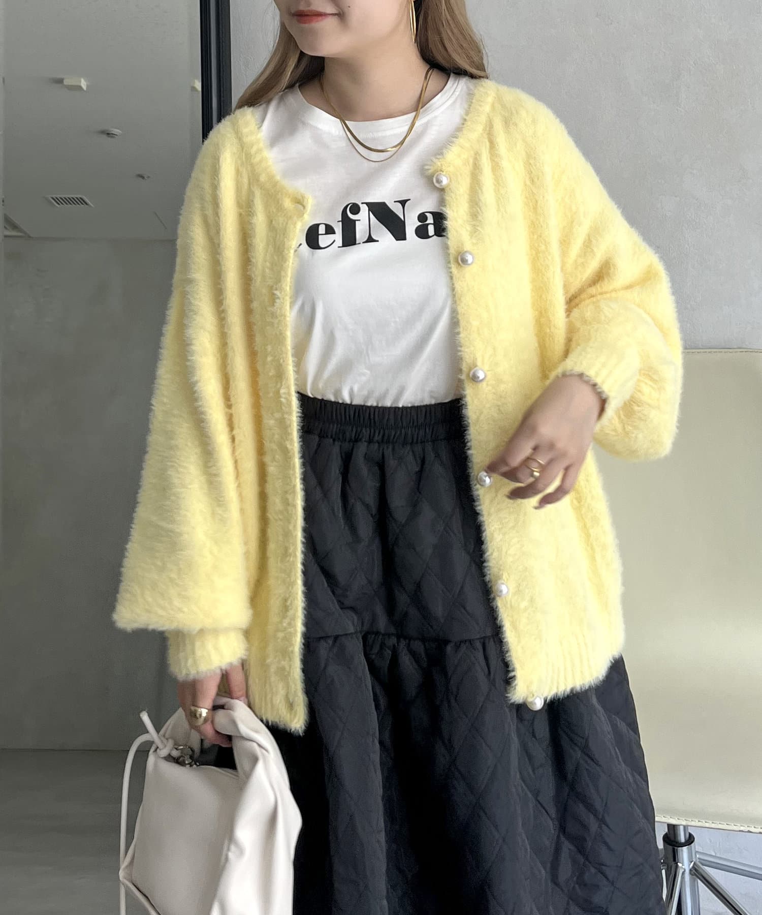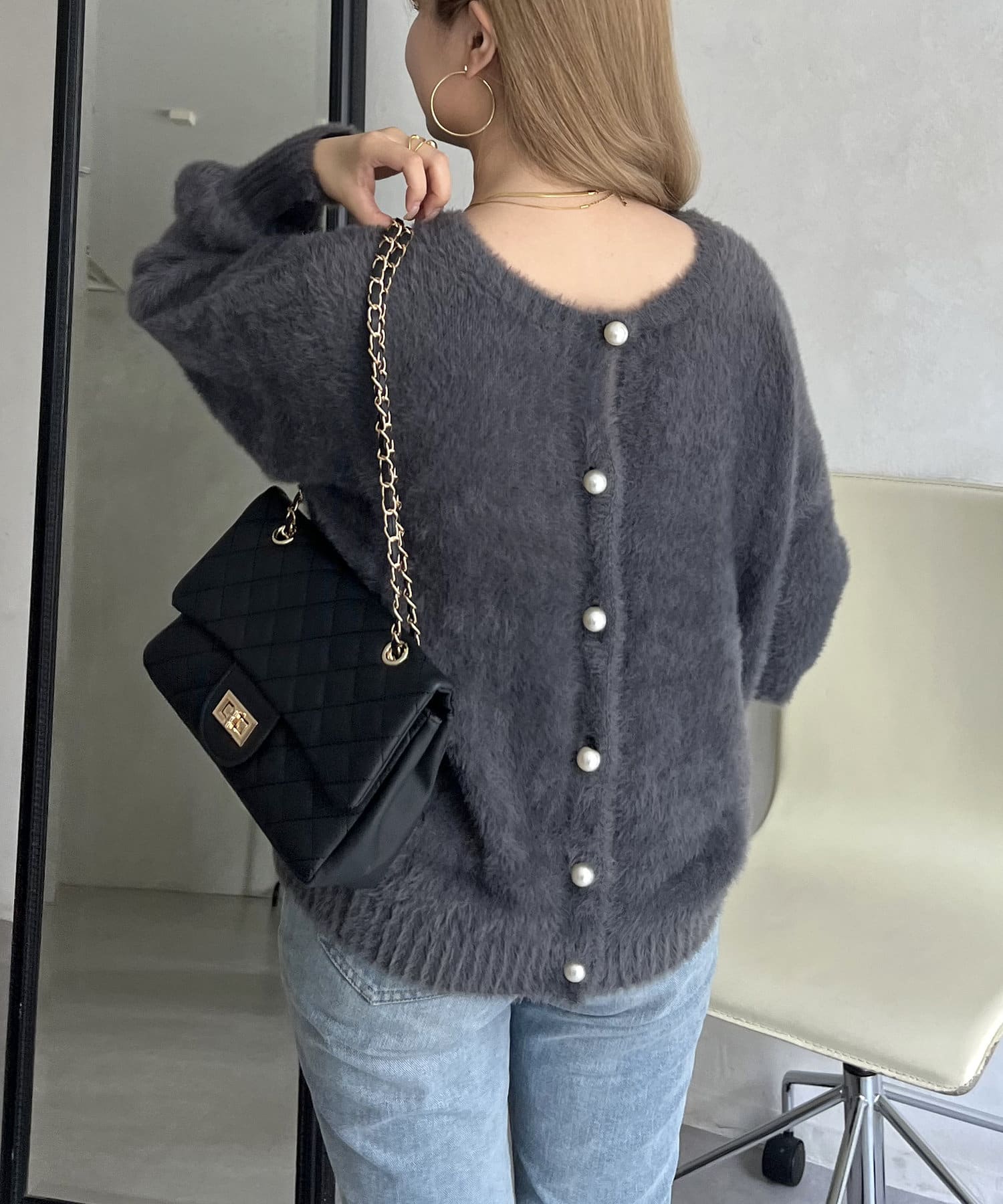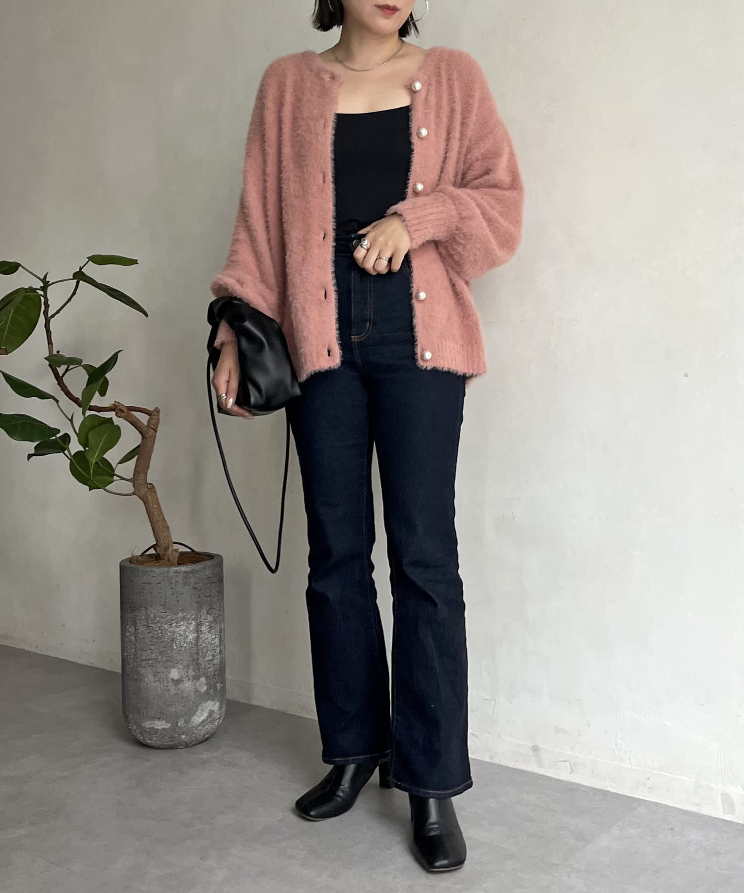 パールボタン2WAYシャギーニットカーデ