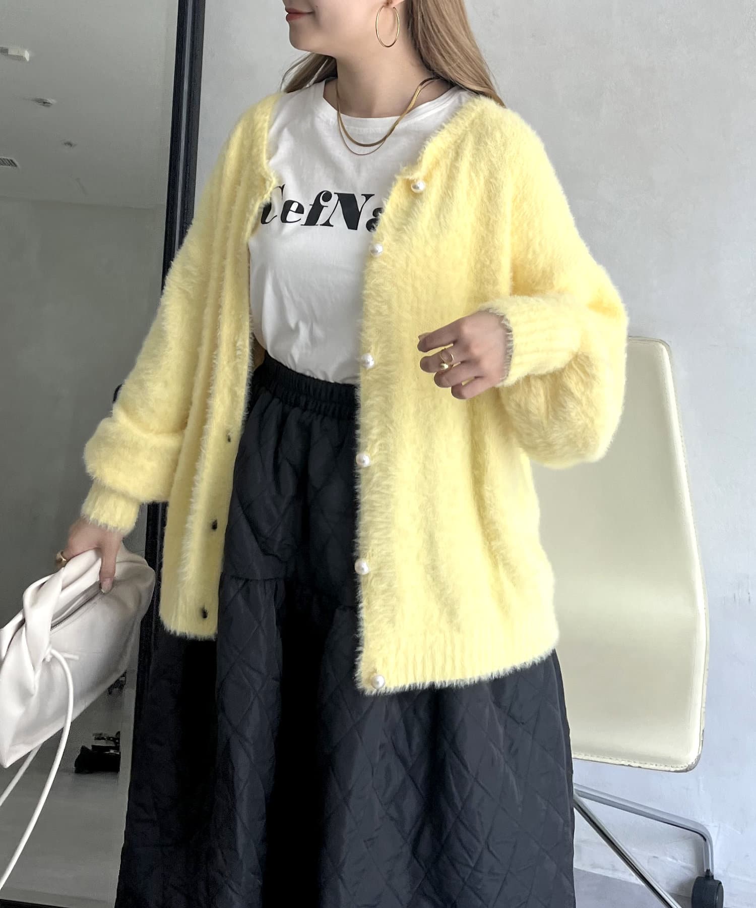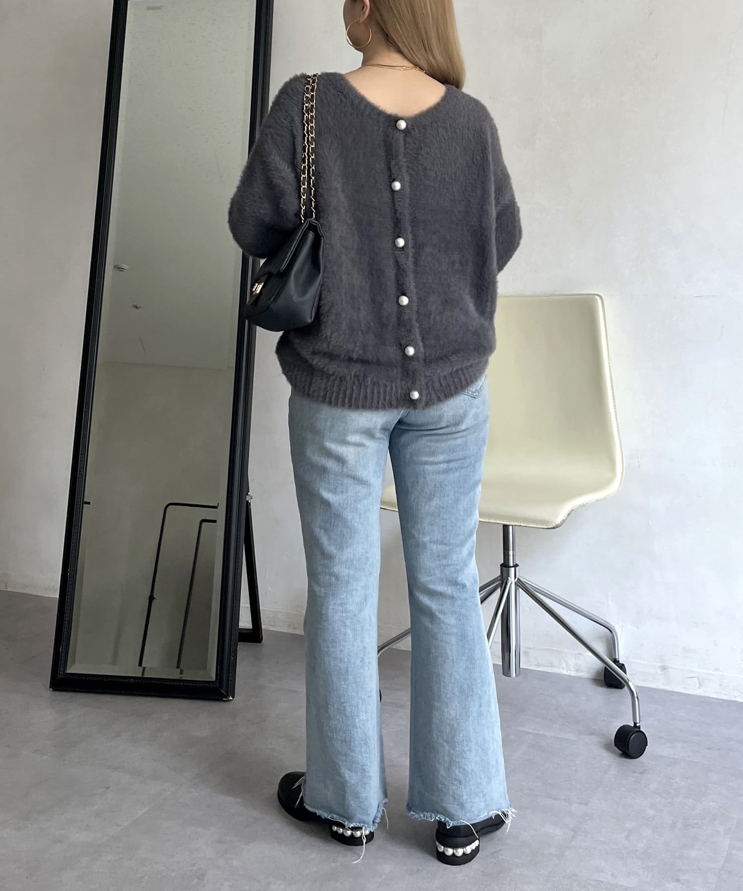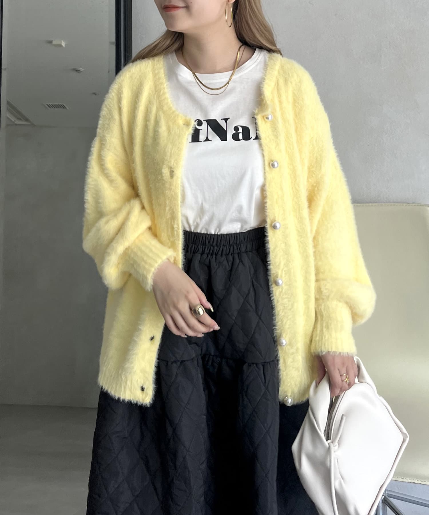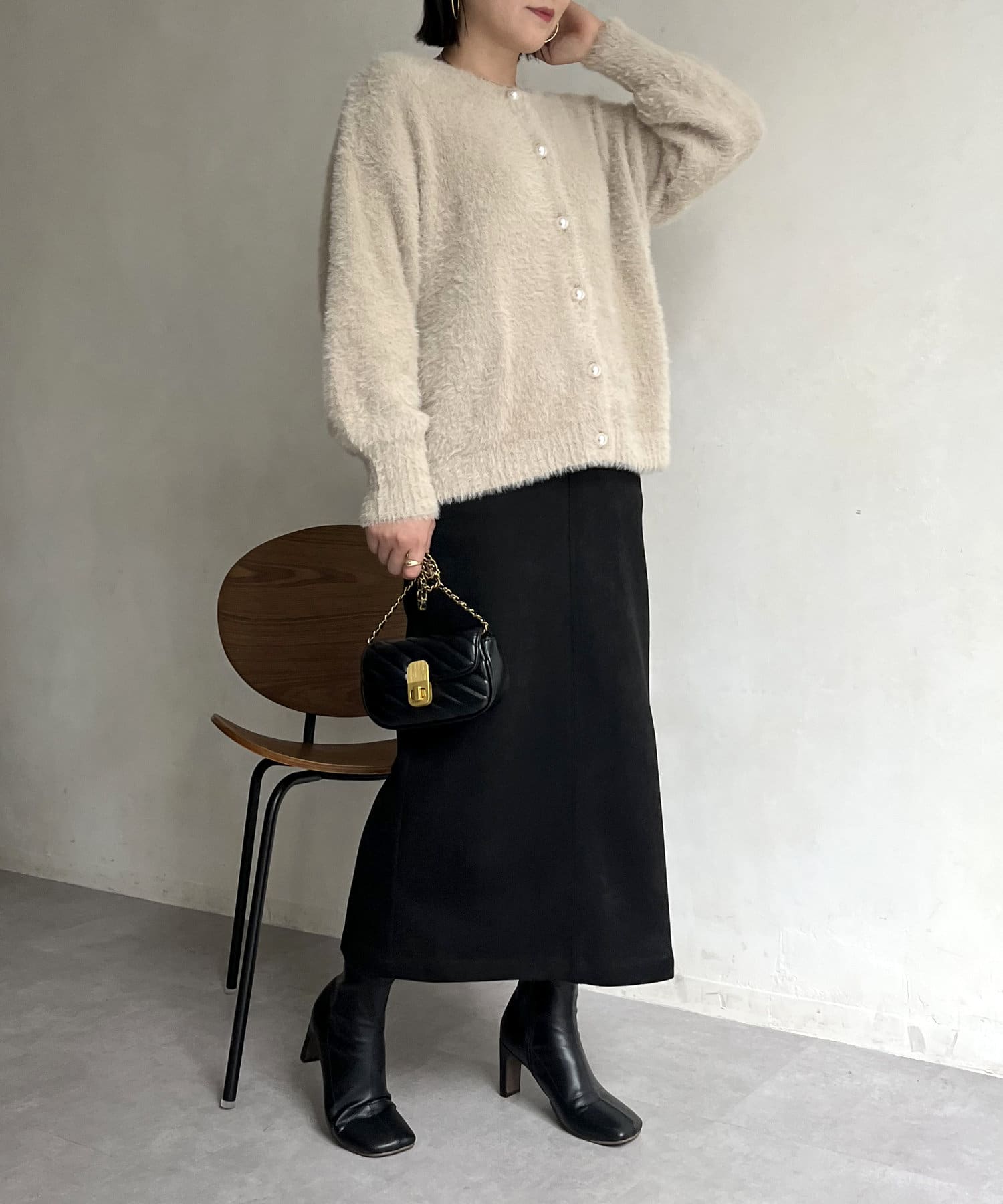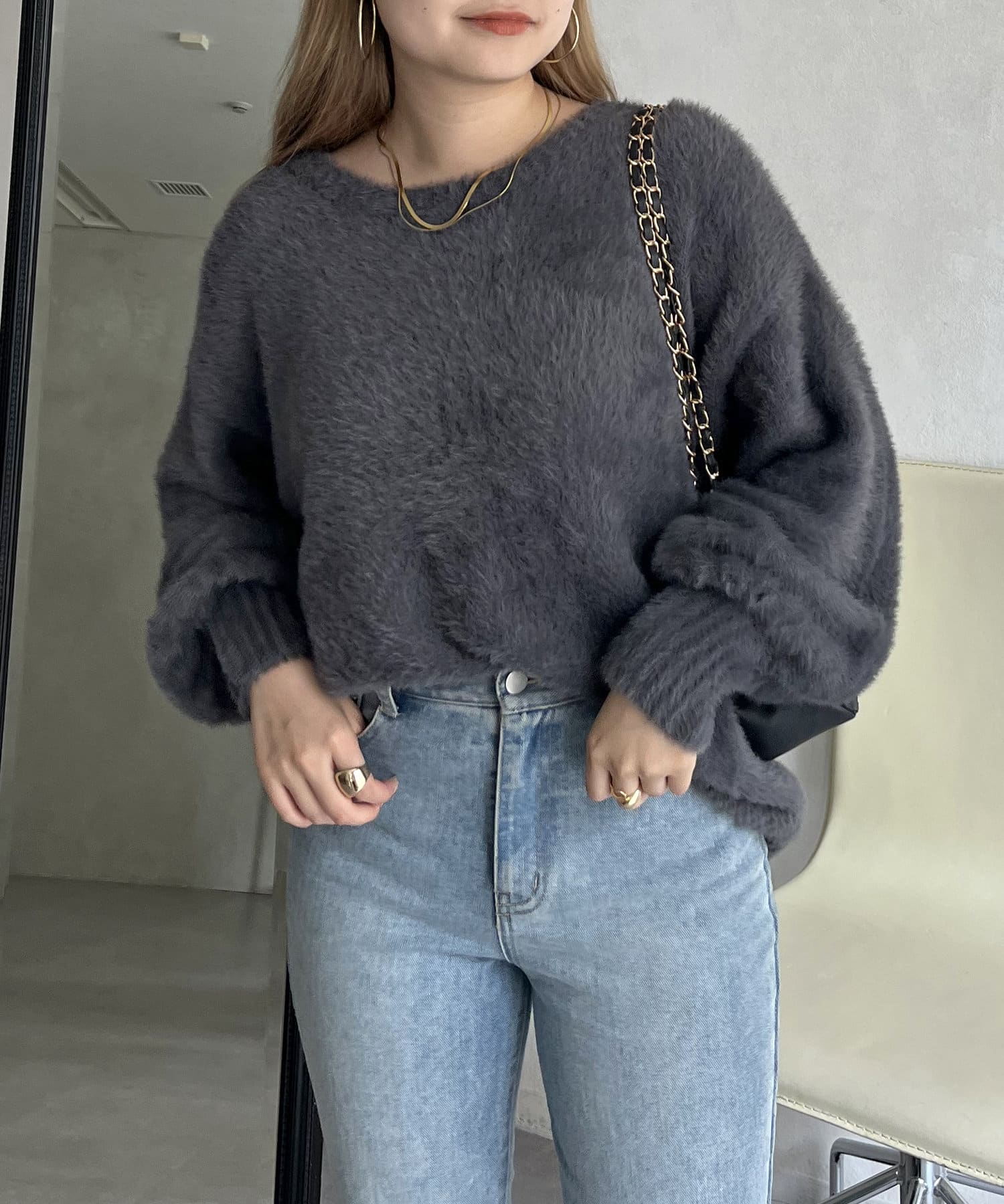 パールボタン2WAYシャギーニットカーデ